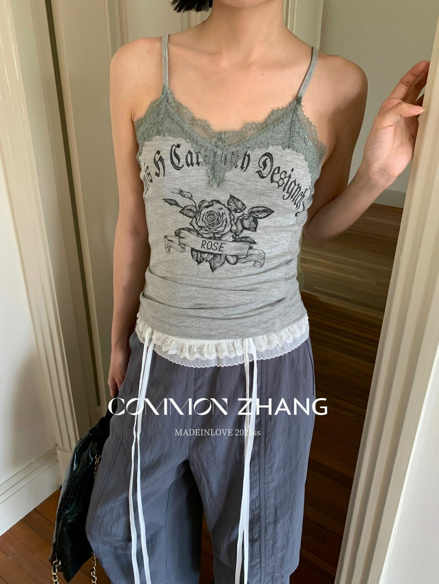 *o-ha-you*【FCZCB200766】夏季新韓版辣妹百搭小眾花卉字母印花露背吊帶-3色