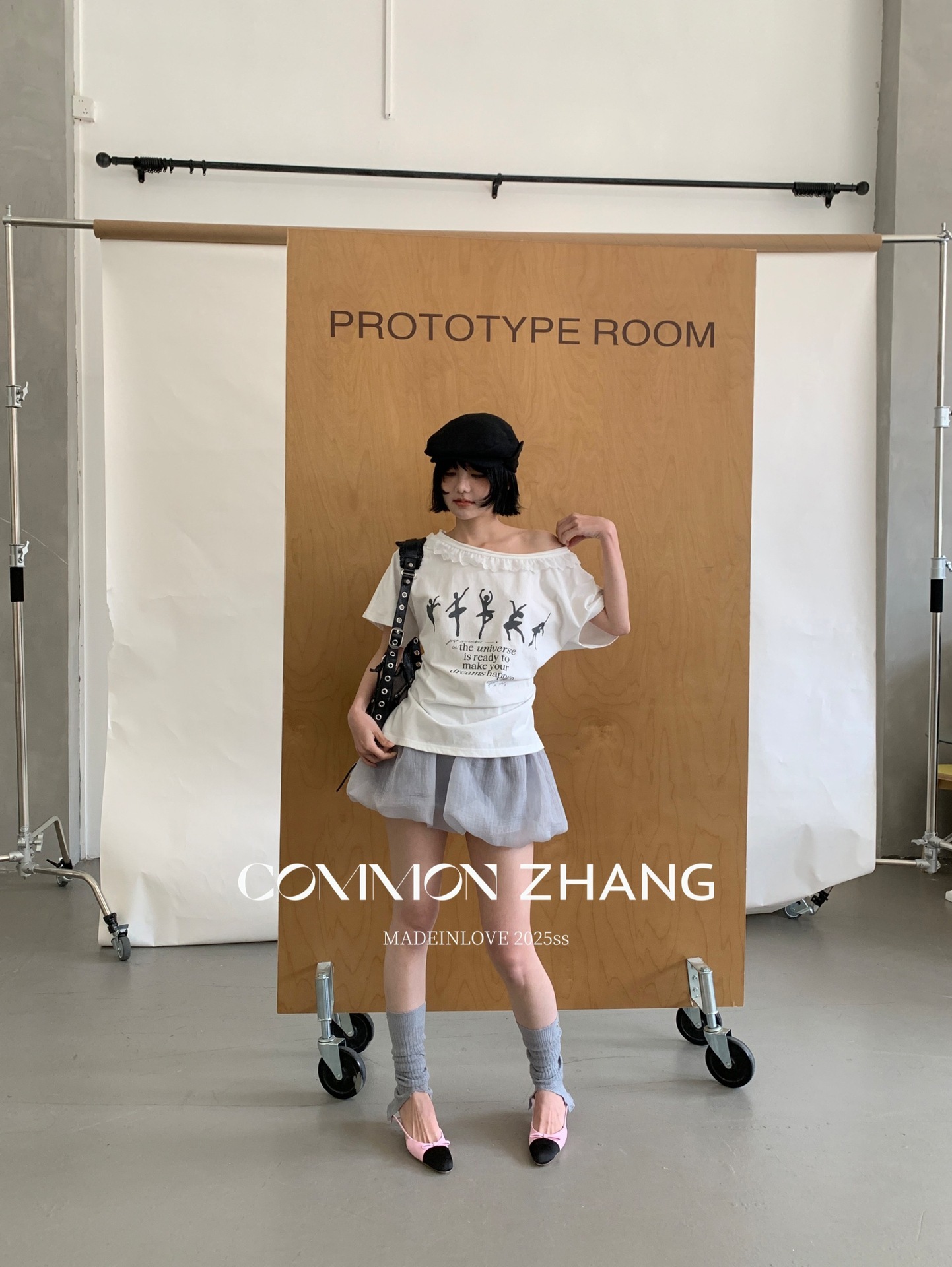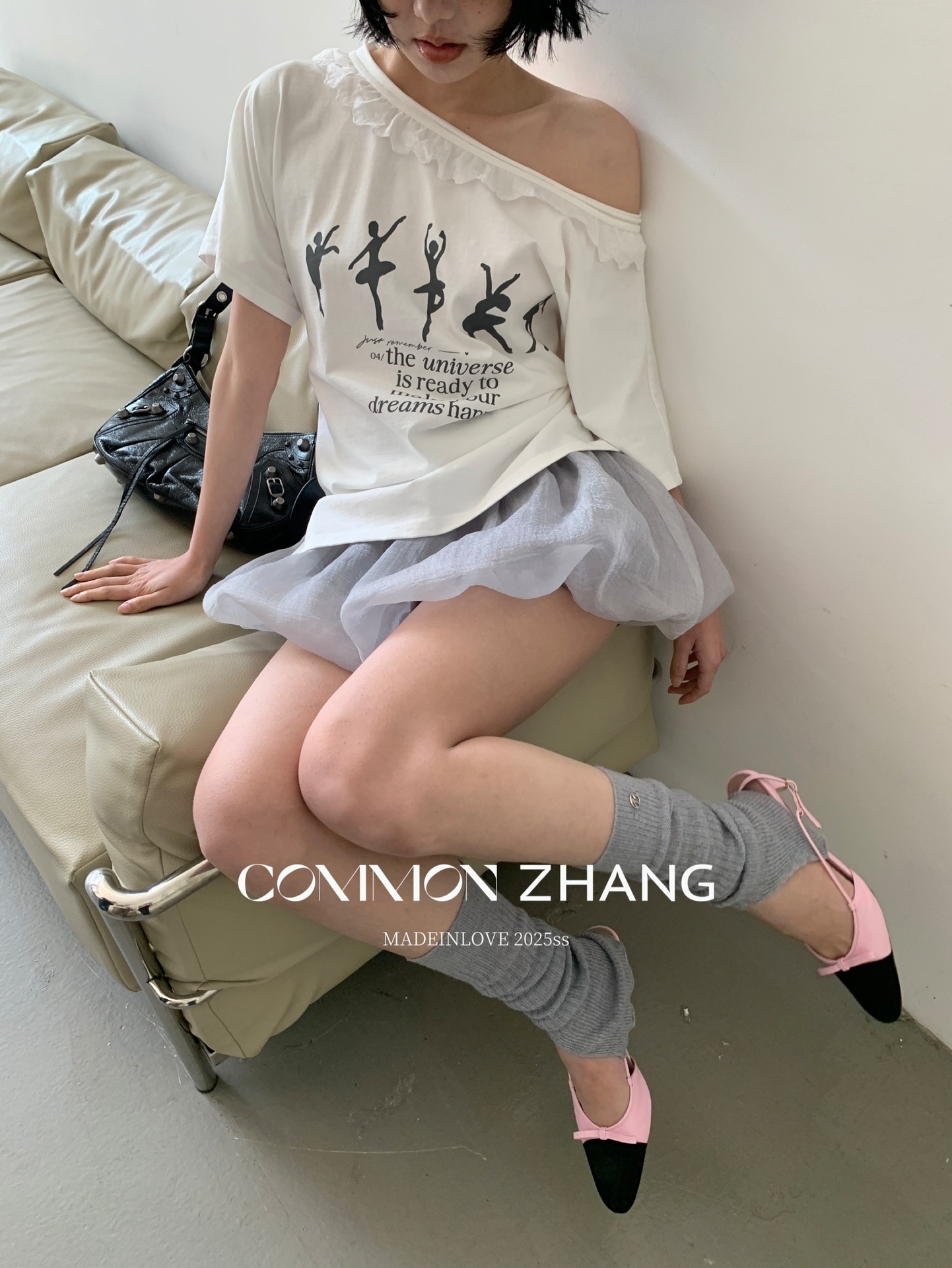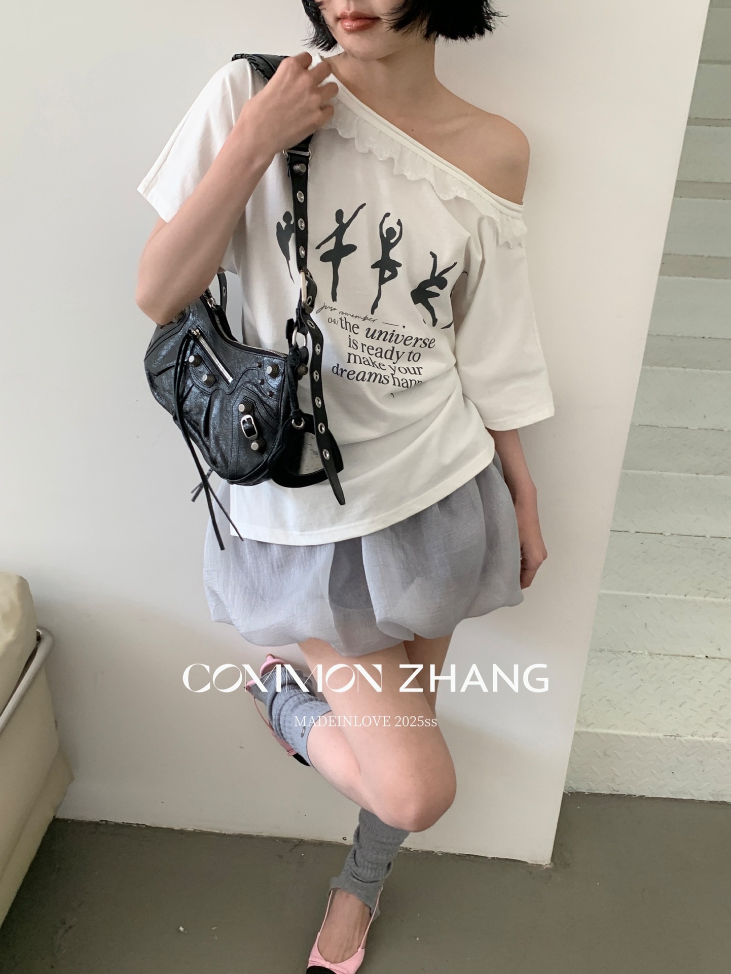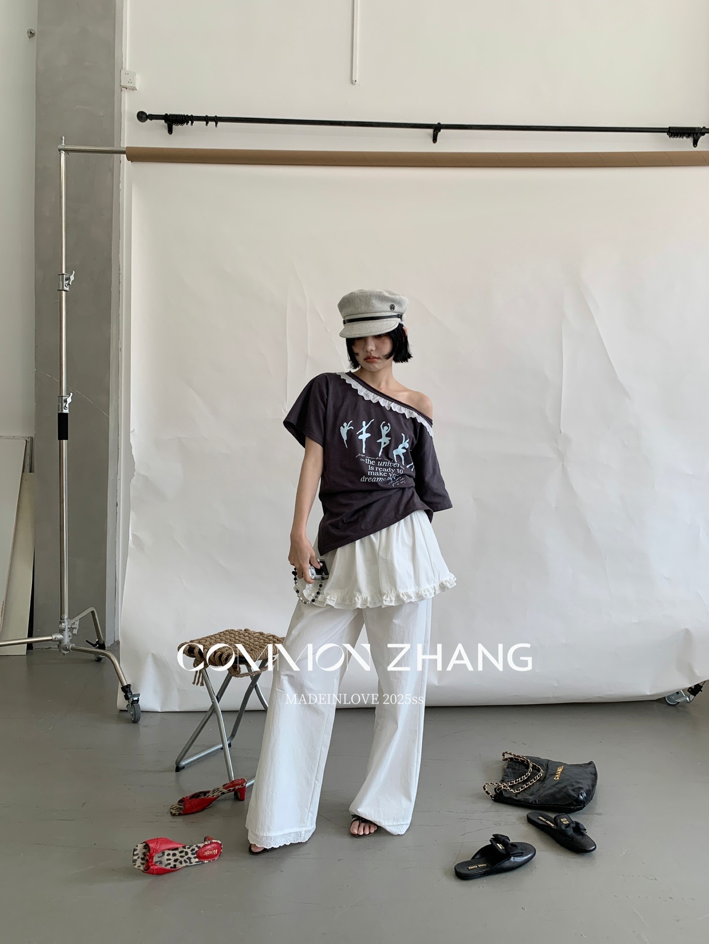 *o-ha-you*【FCZCB200805】夏季韓風減齡斜領蕾絲邊拼接印花寬鬆百搭短袖T恤-2色