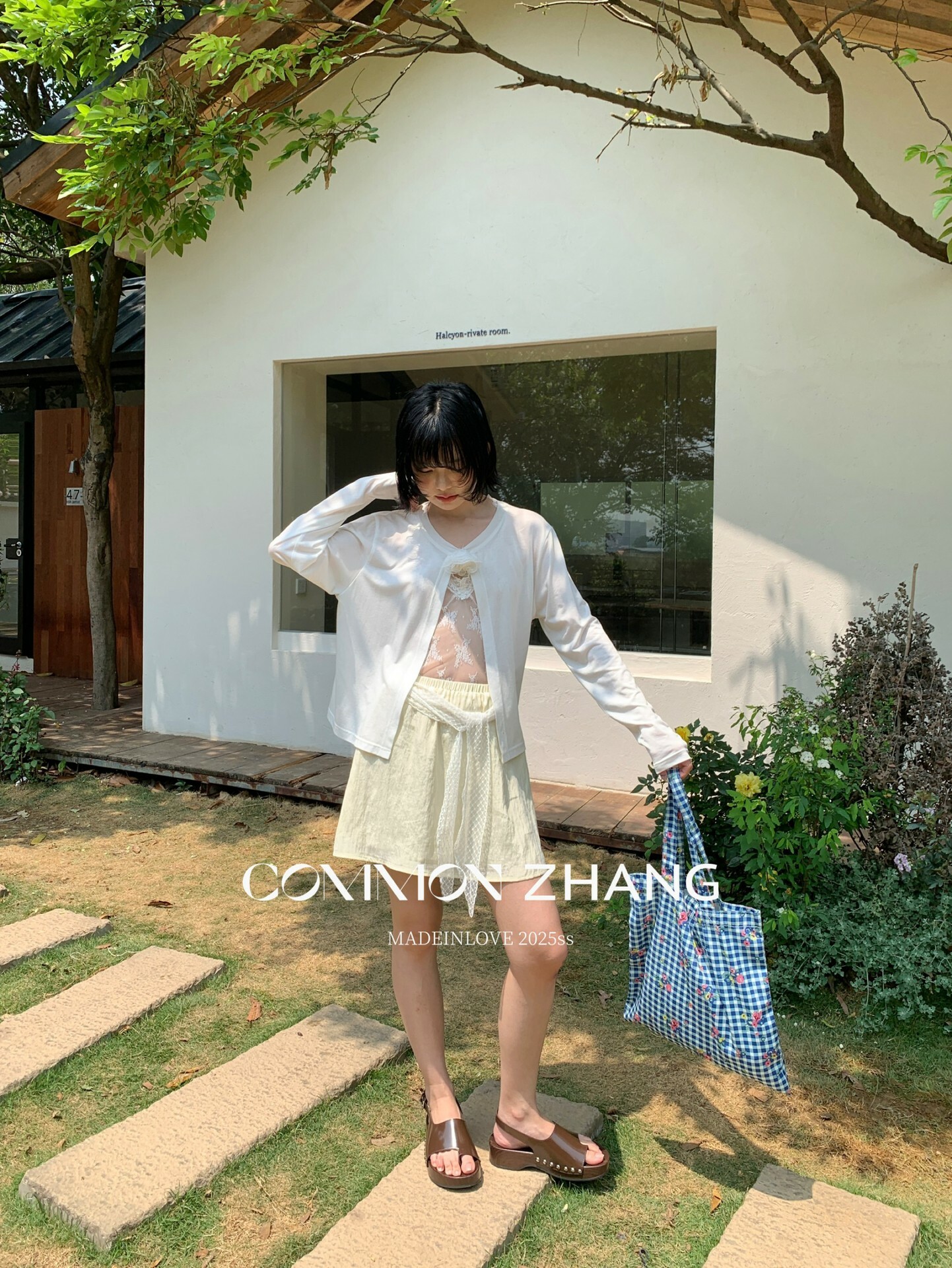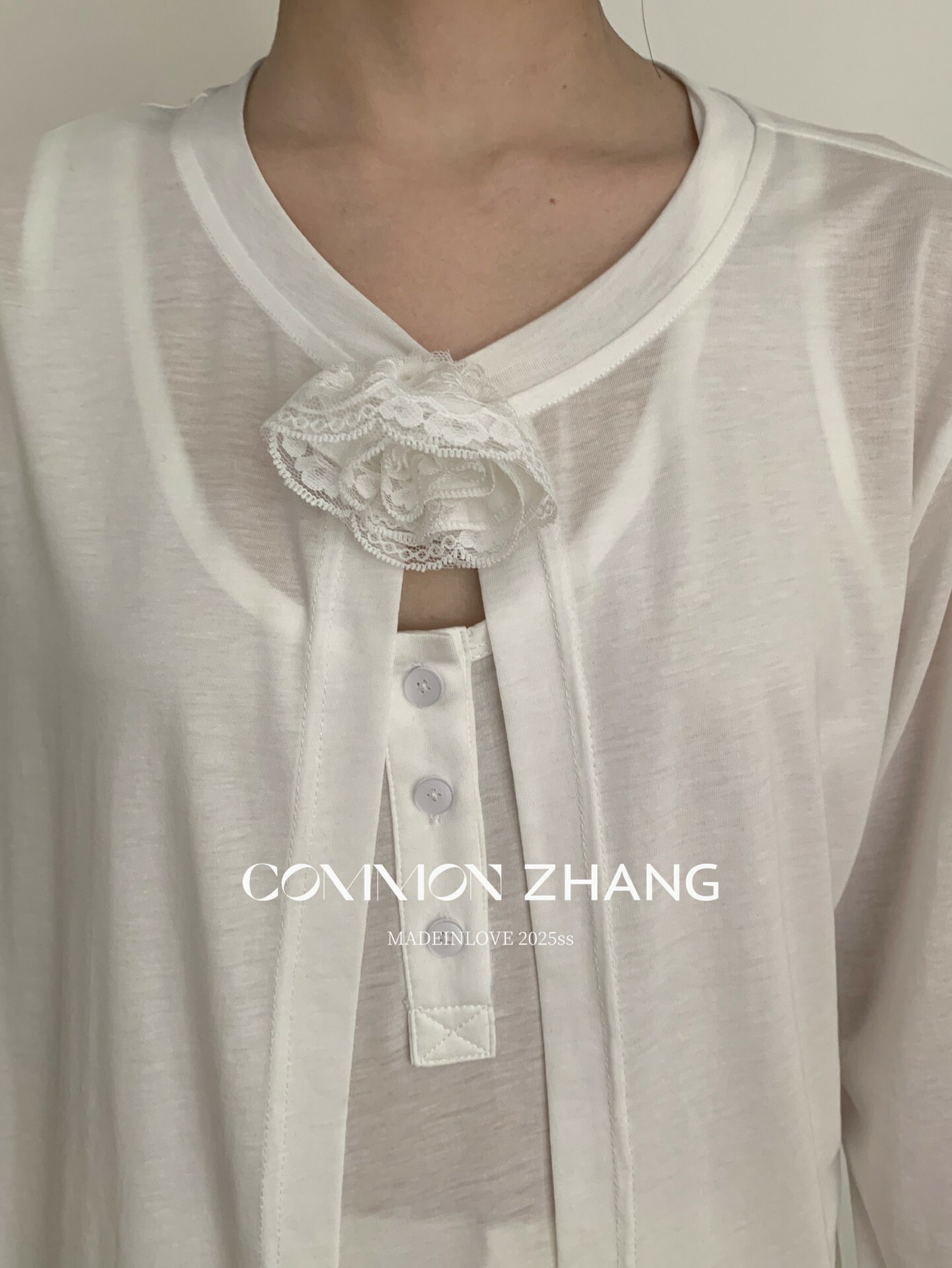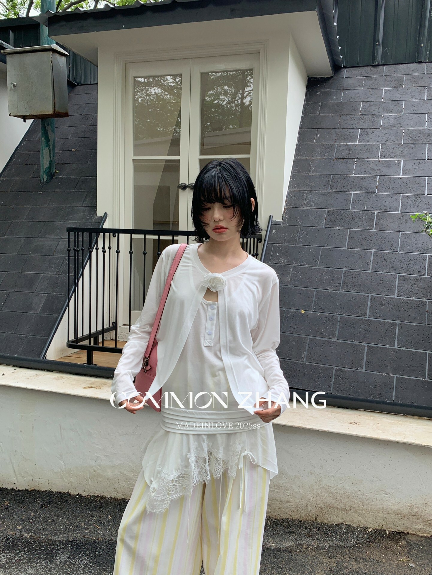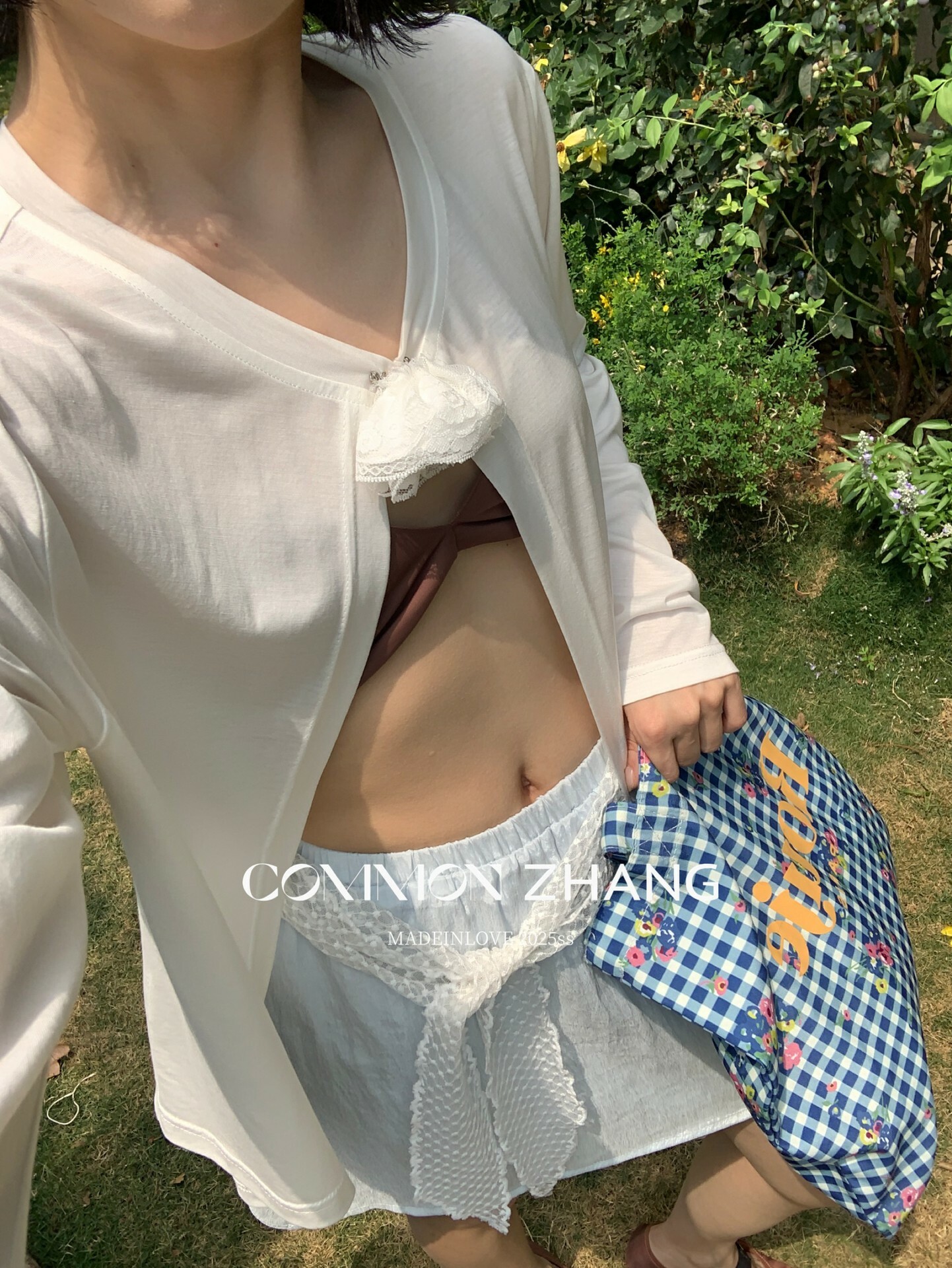 *o-ha-you*【FCZCB200832】夏季韓版少女減齡蕾絲花透視性感純色天絲長袖小衫-2色