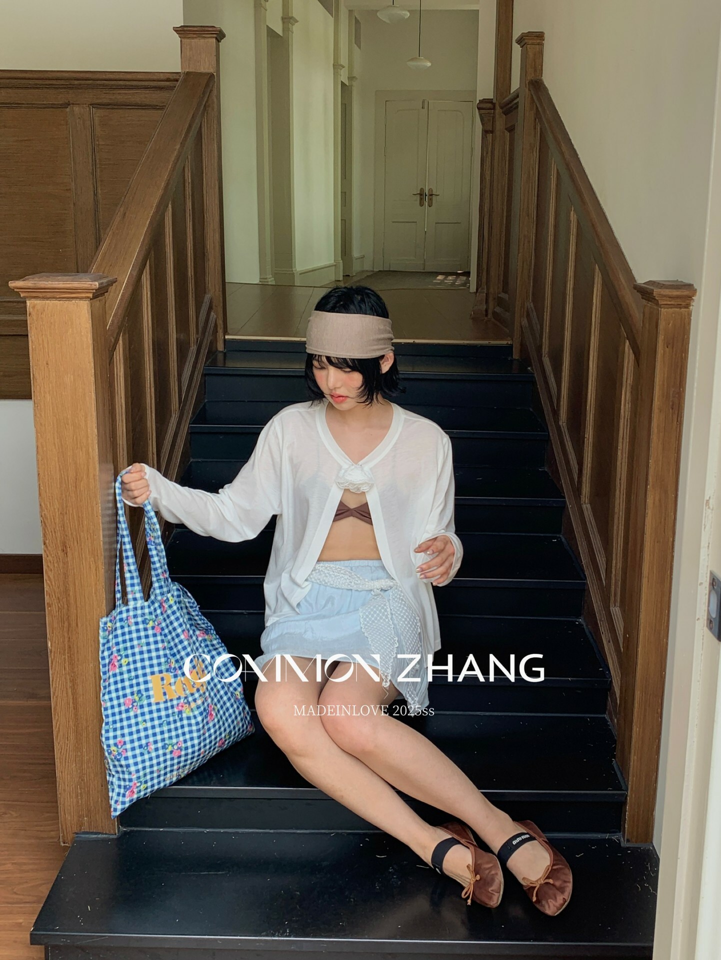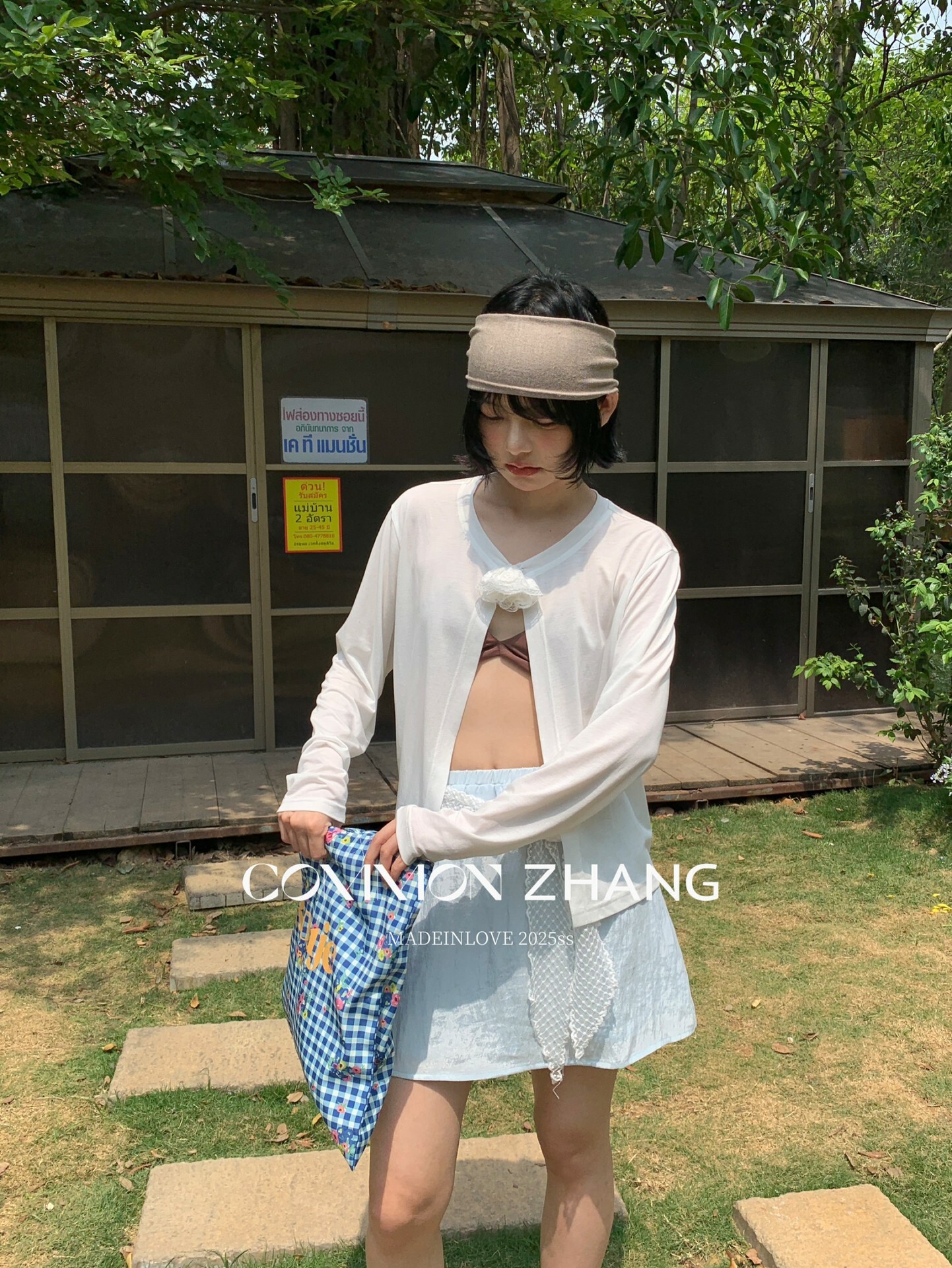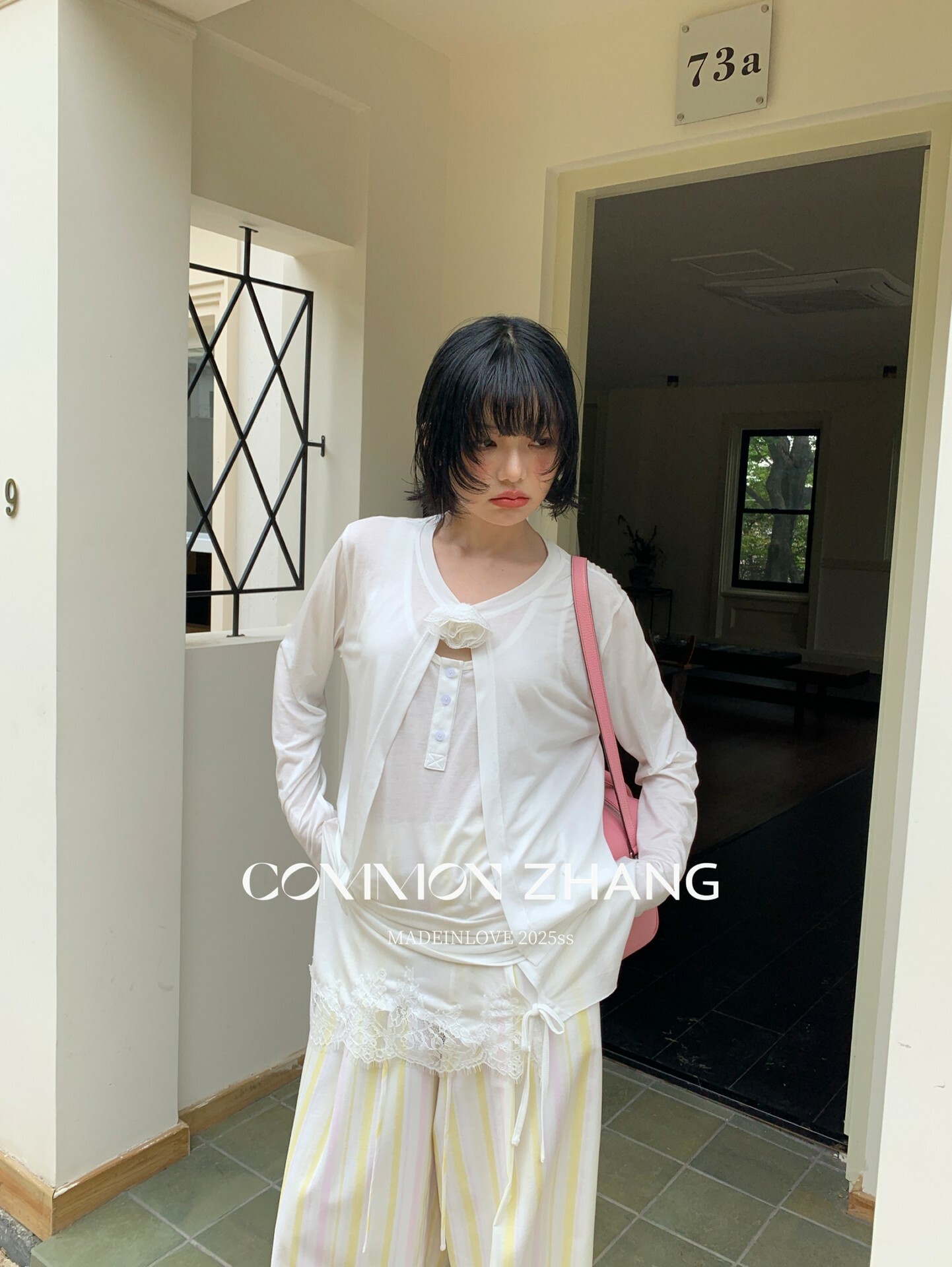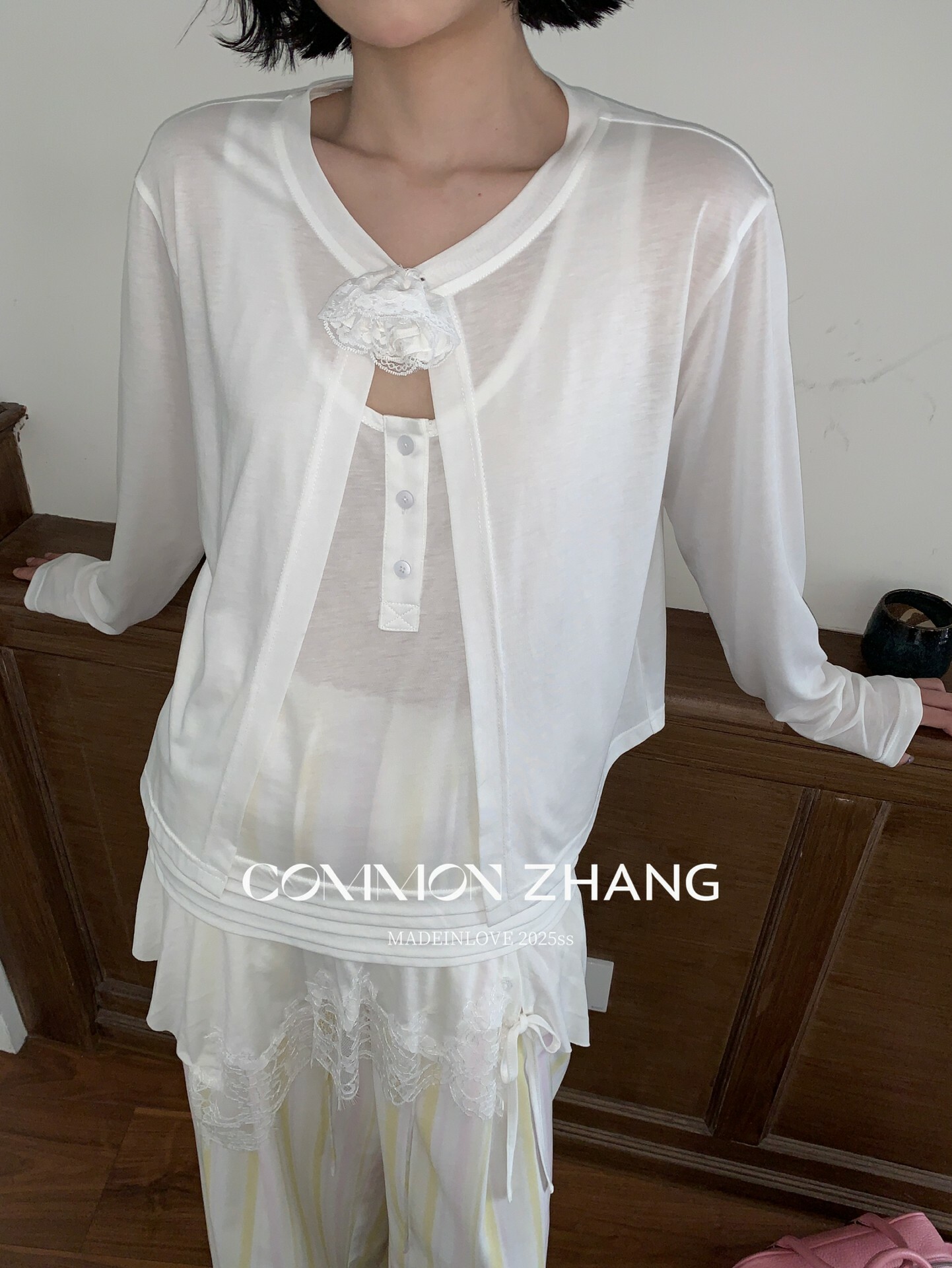 *o-ha-you*【FCZCB200832】夏季韓版少女減齡蕾絲花透視性感純色天絲長袖小衫-2色