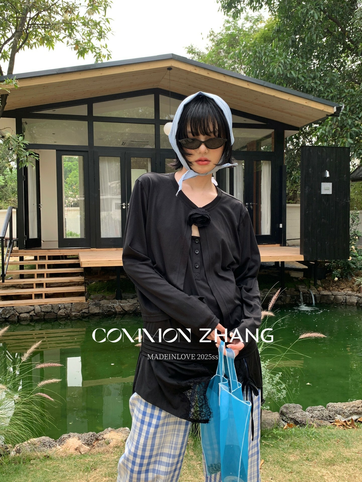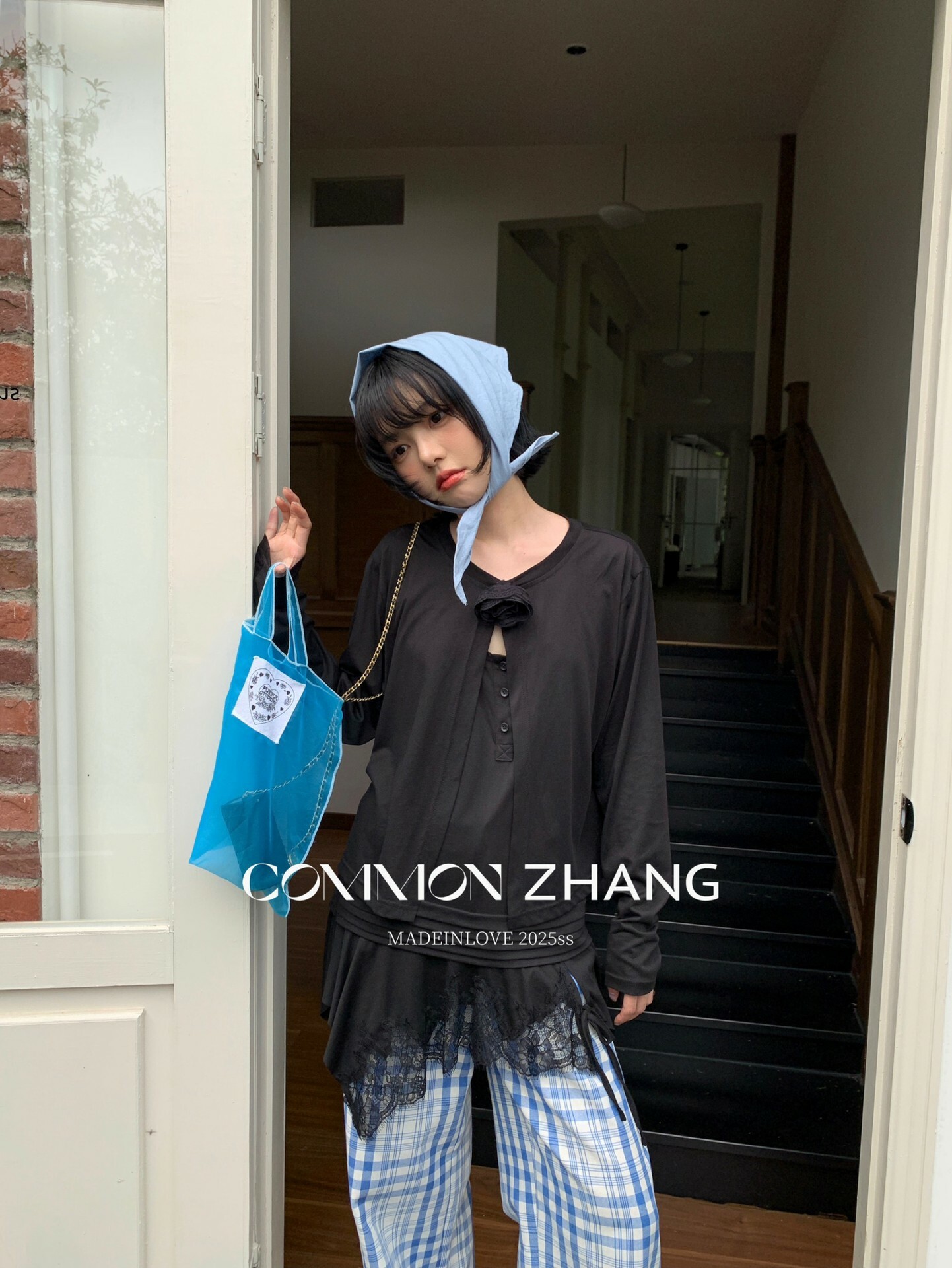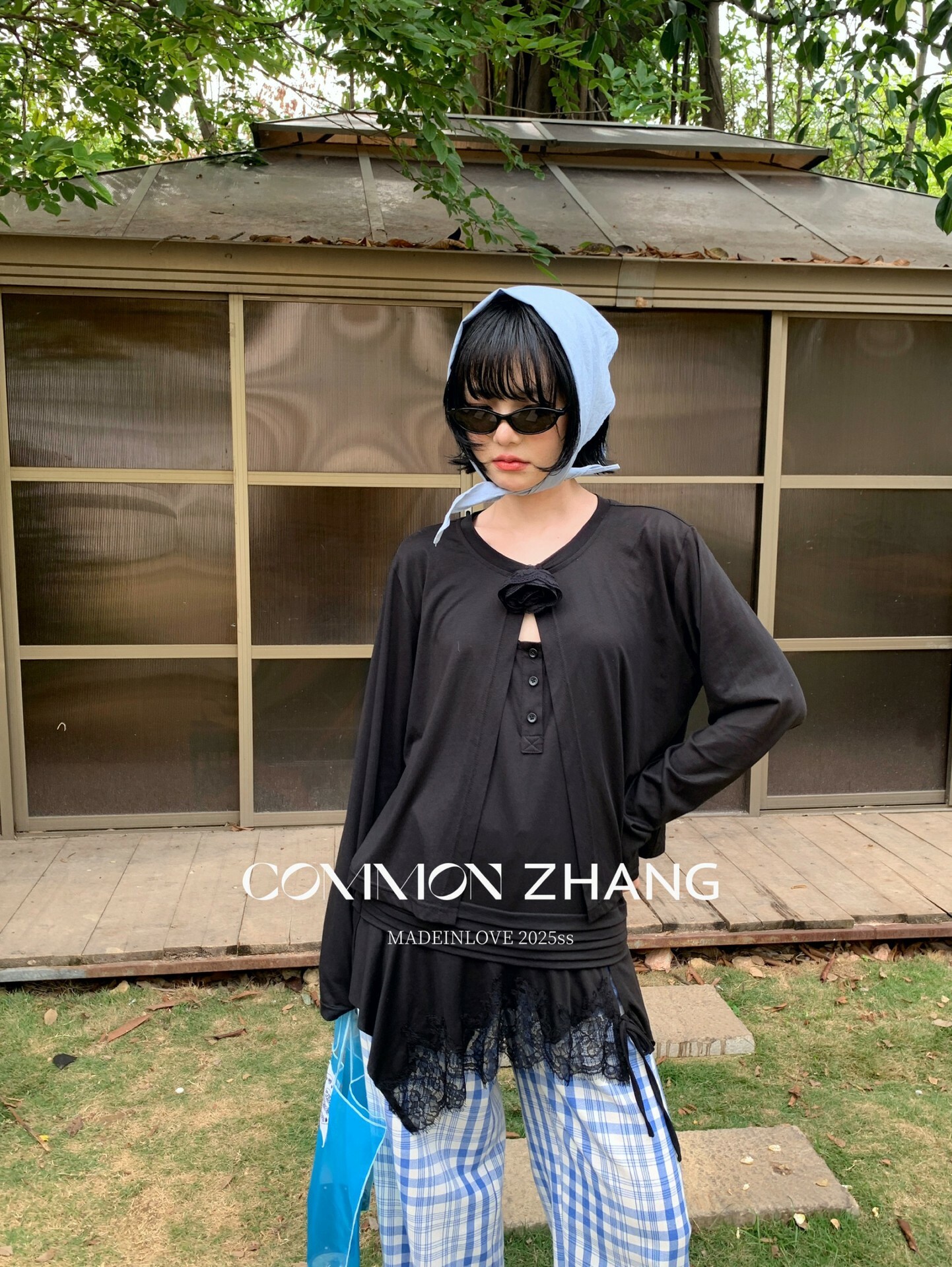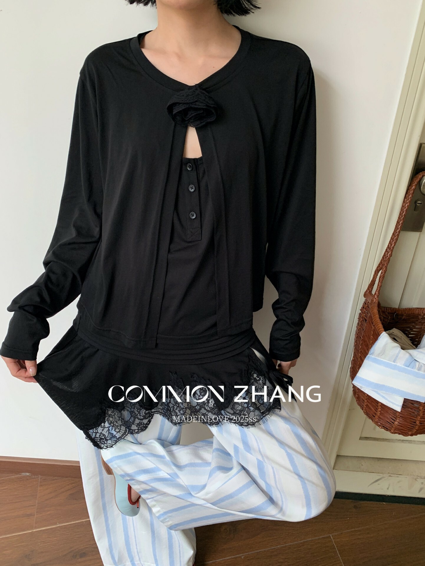 *o-ha-you*【FCZCB200832】夏季韓版少女減齡蕾絲花透視性感純色天絲長袖小衫-2色