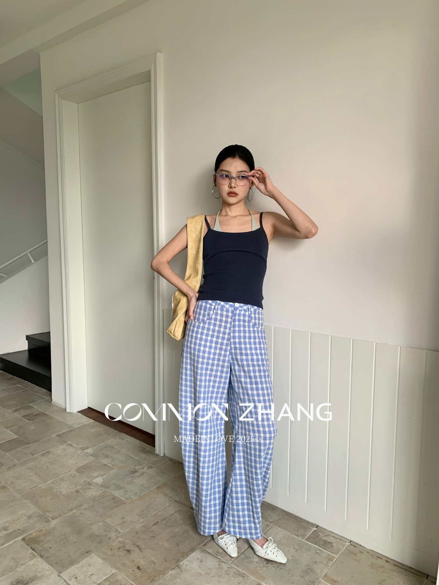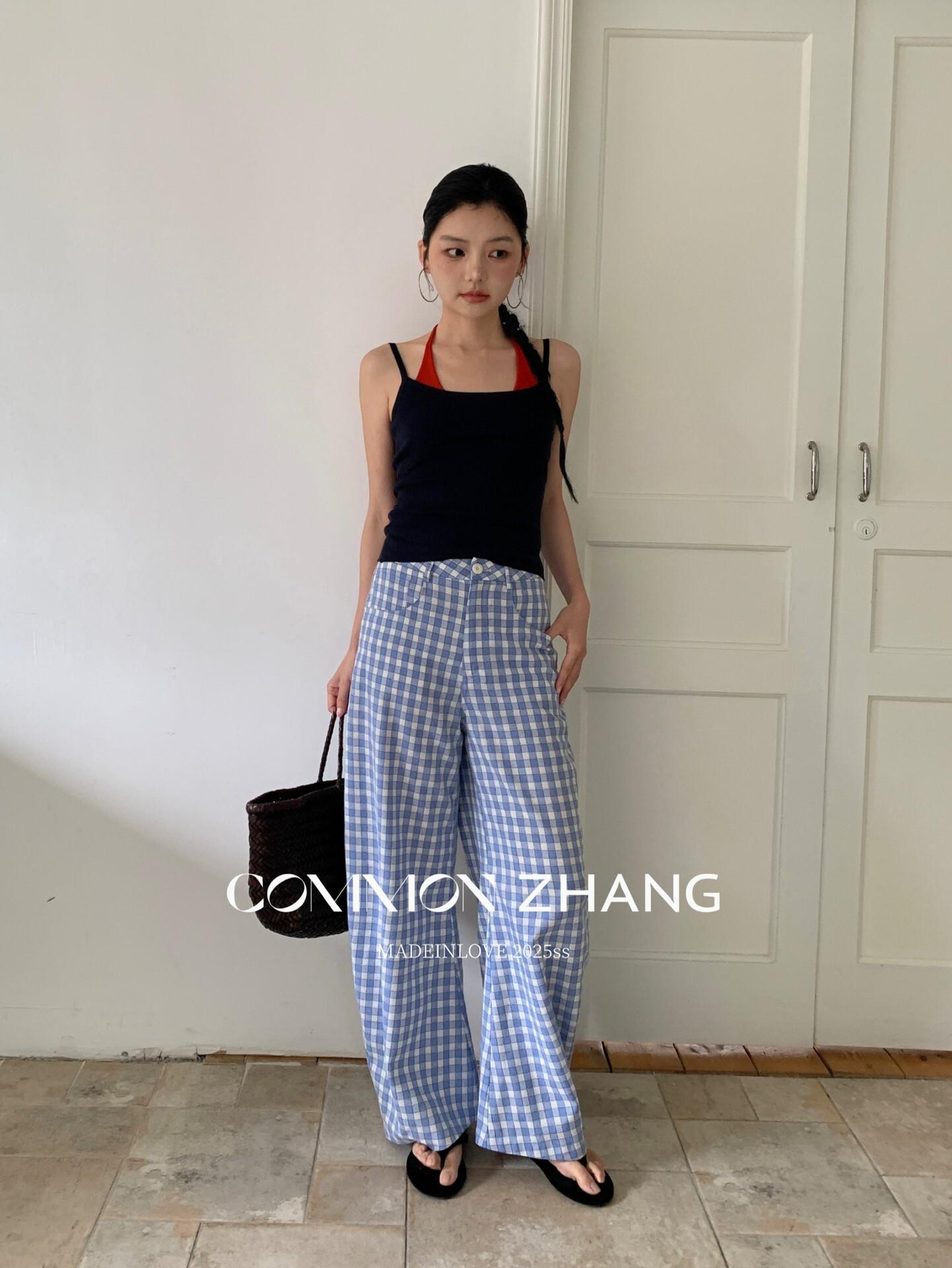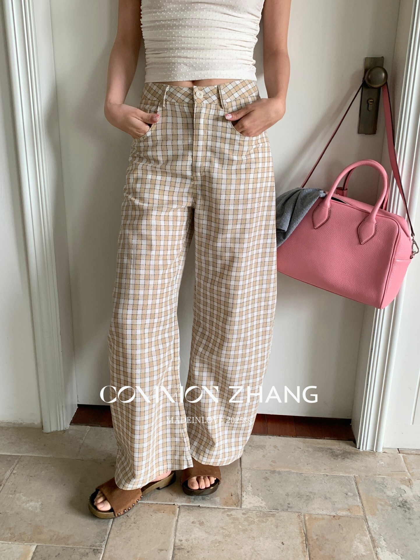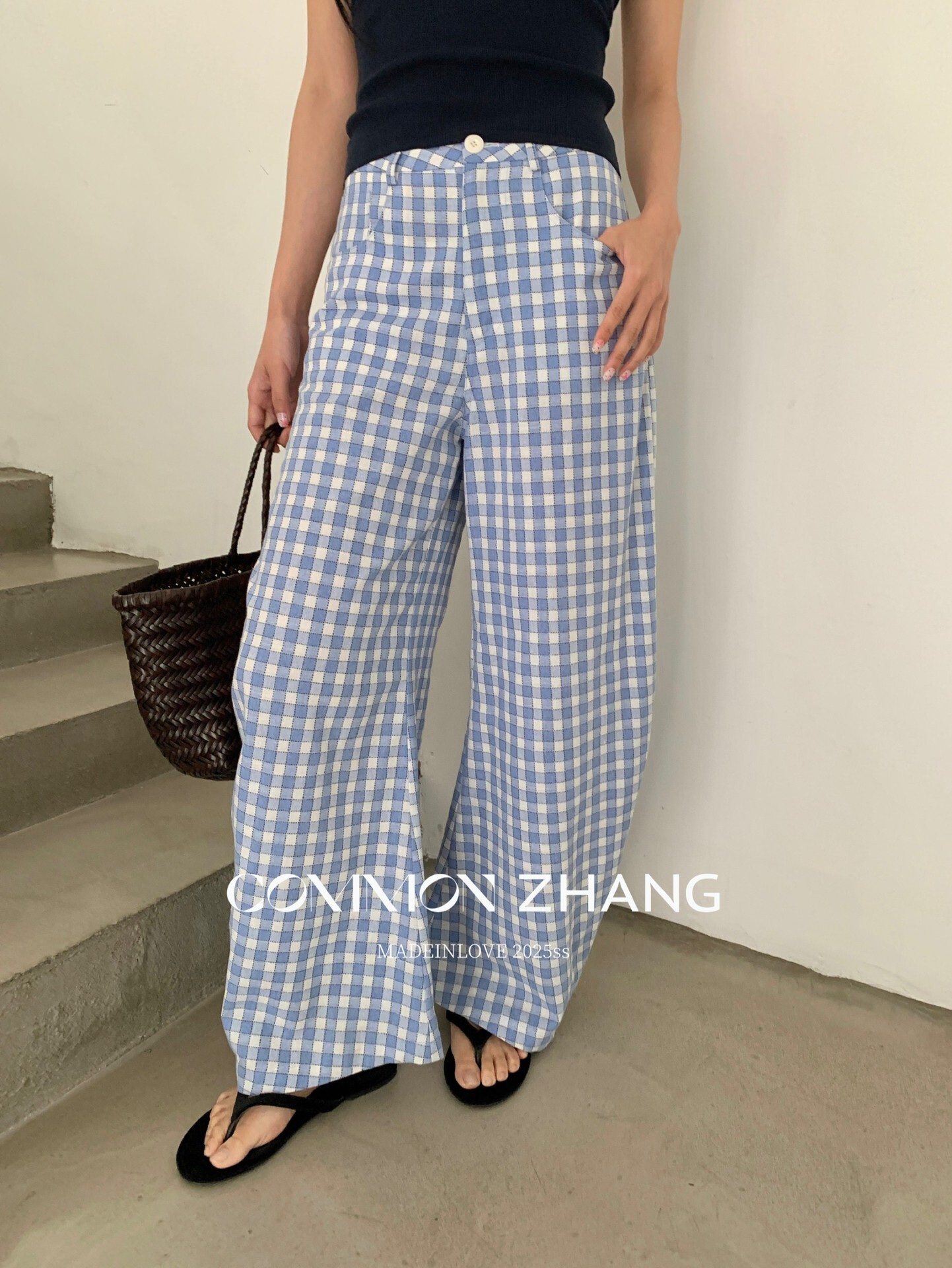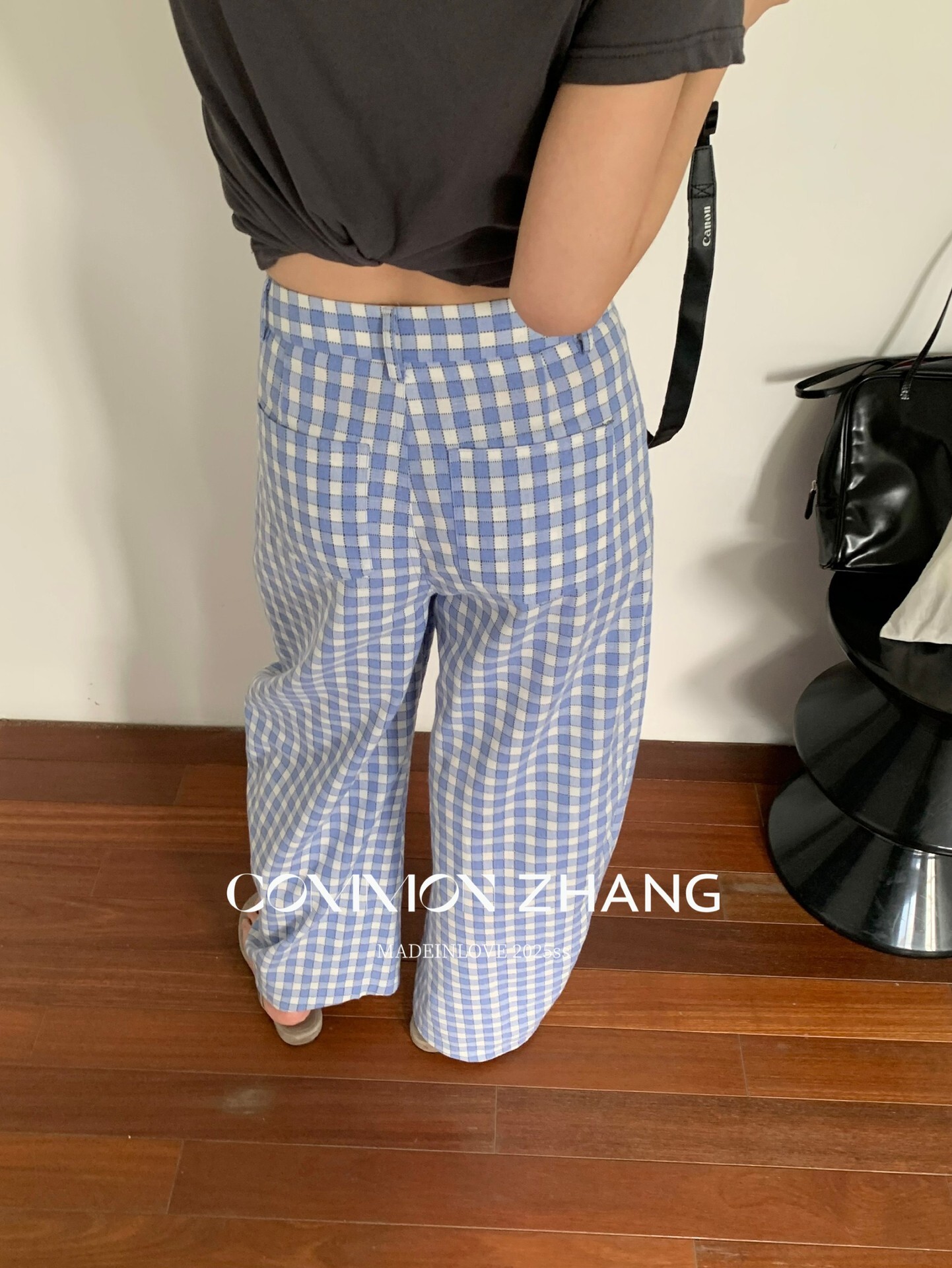 *o-ha-you*【FCZCB201715】夏季韓版慵懶休閒百搭條紋格子垂感闊腿拖地休閒褲-2色