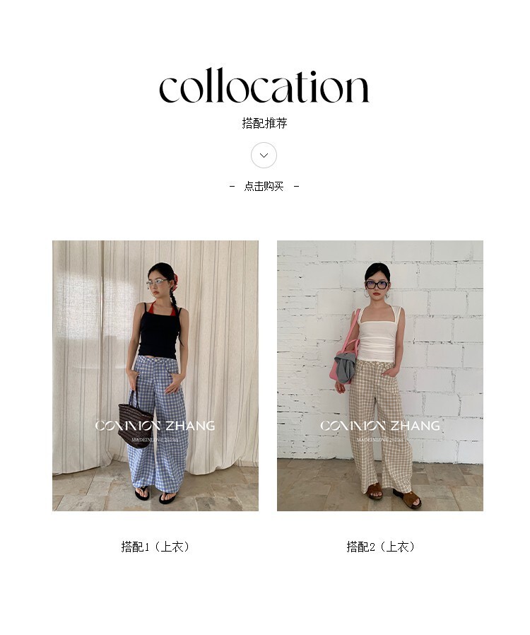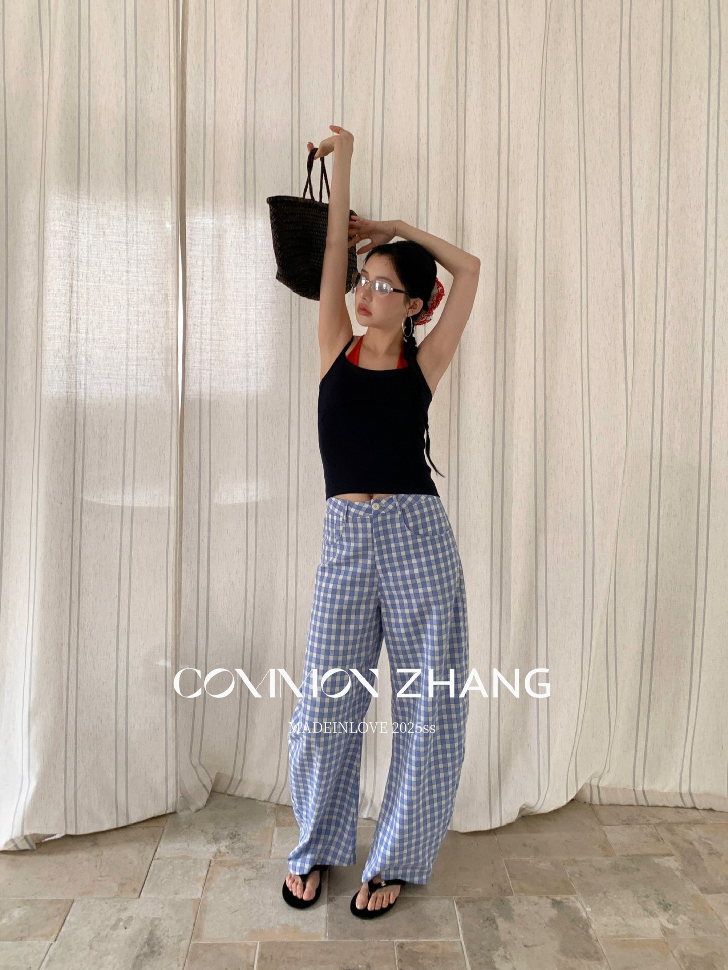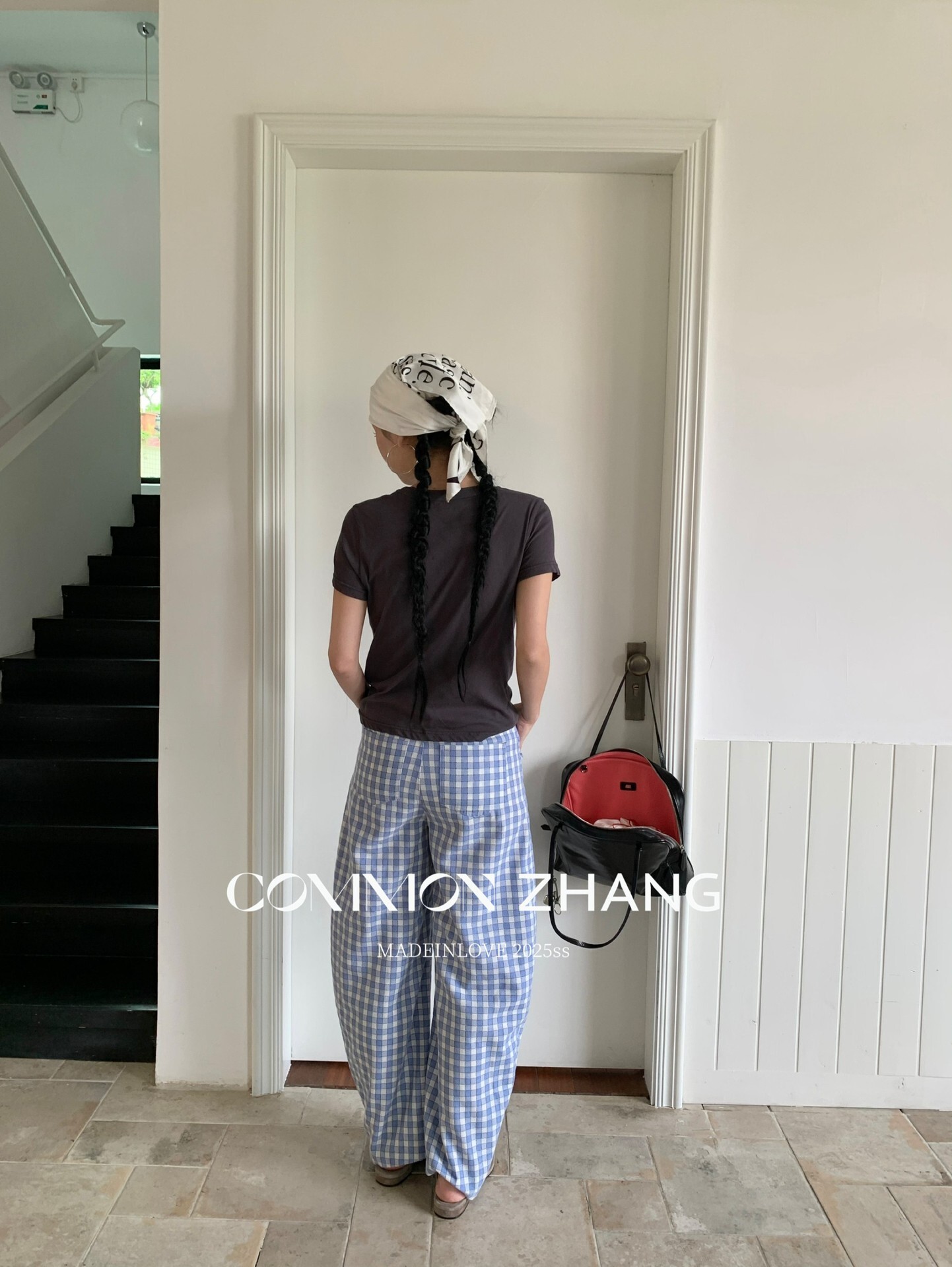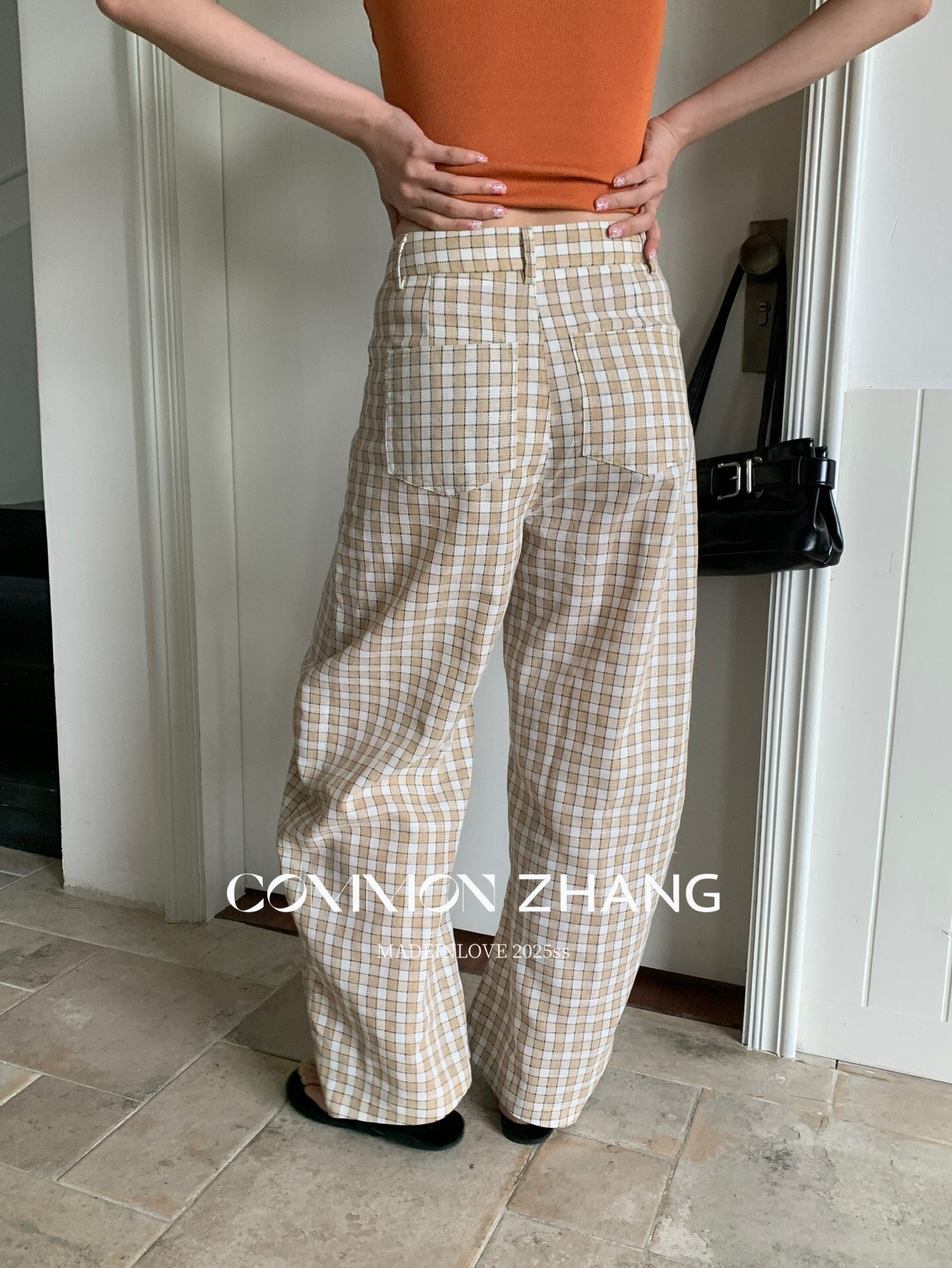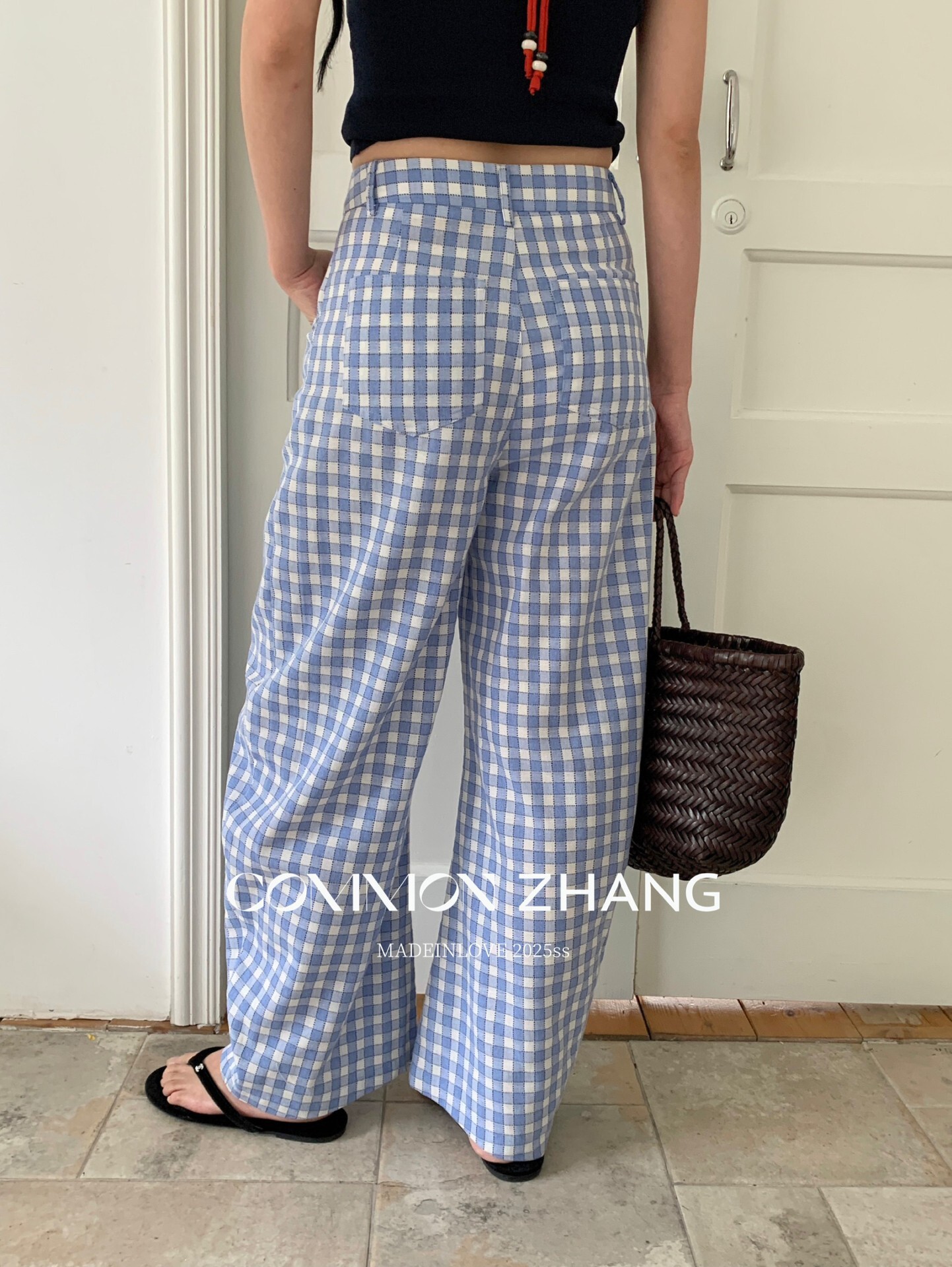 *o-ha-you*【FCZCB201715】夏季韓版慵懶休閒百搭條紋格子垂感闊腿拖地休閒褲-2色