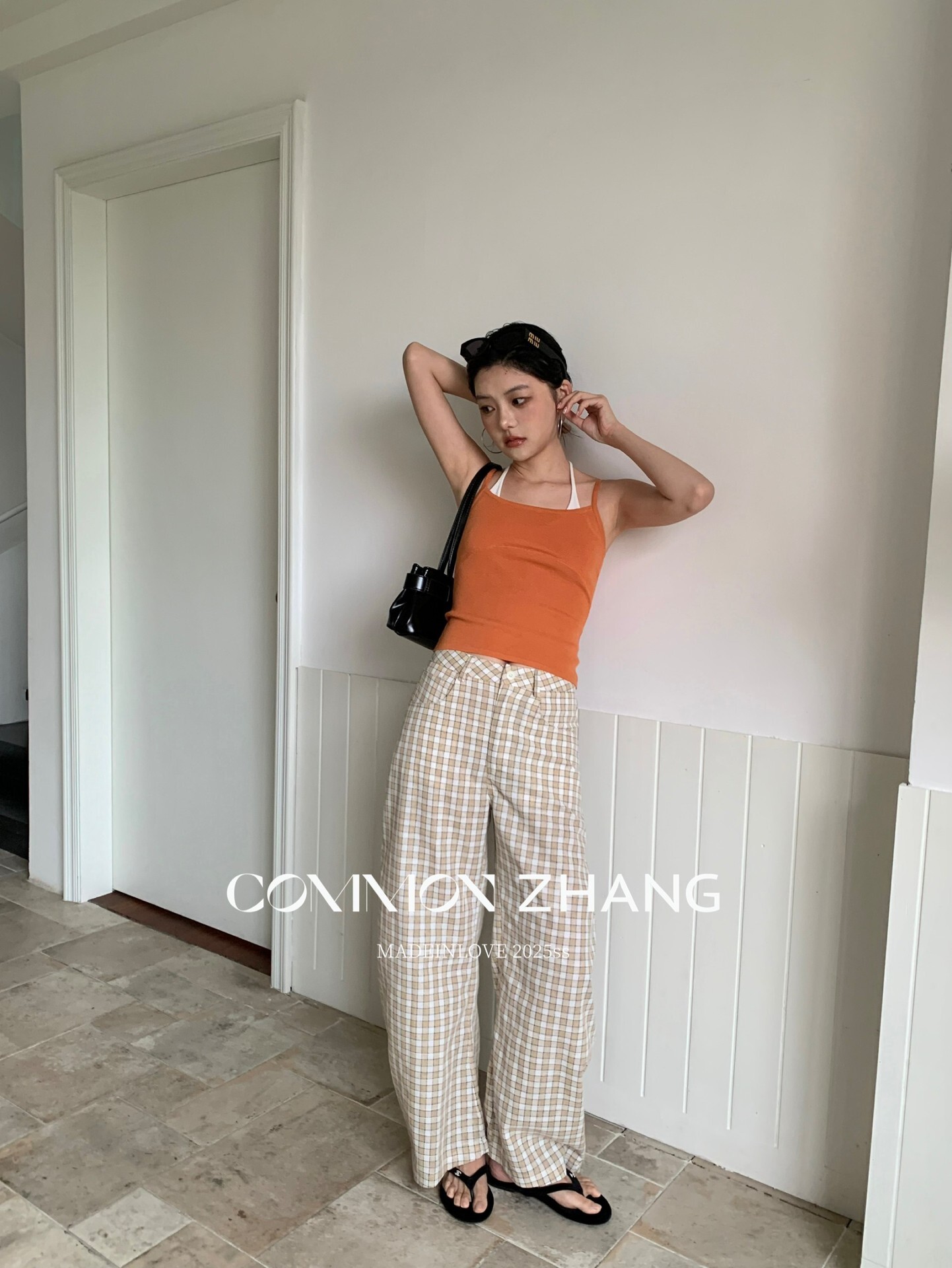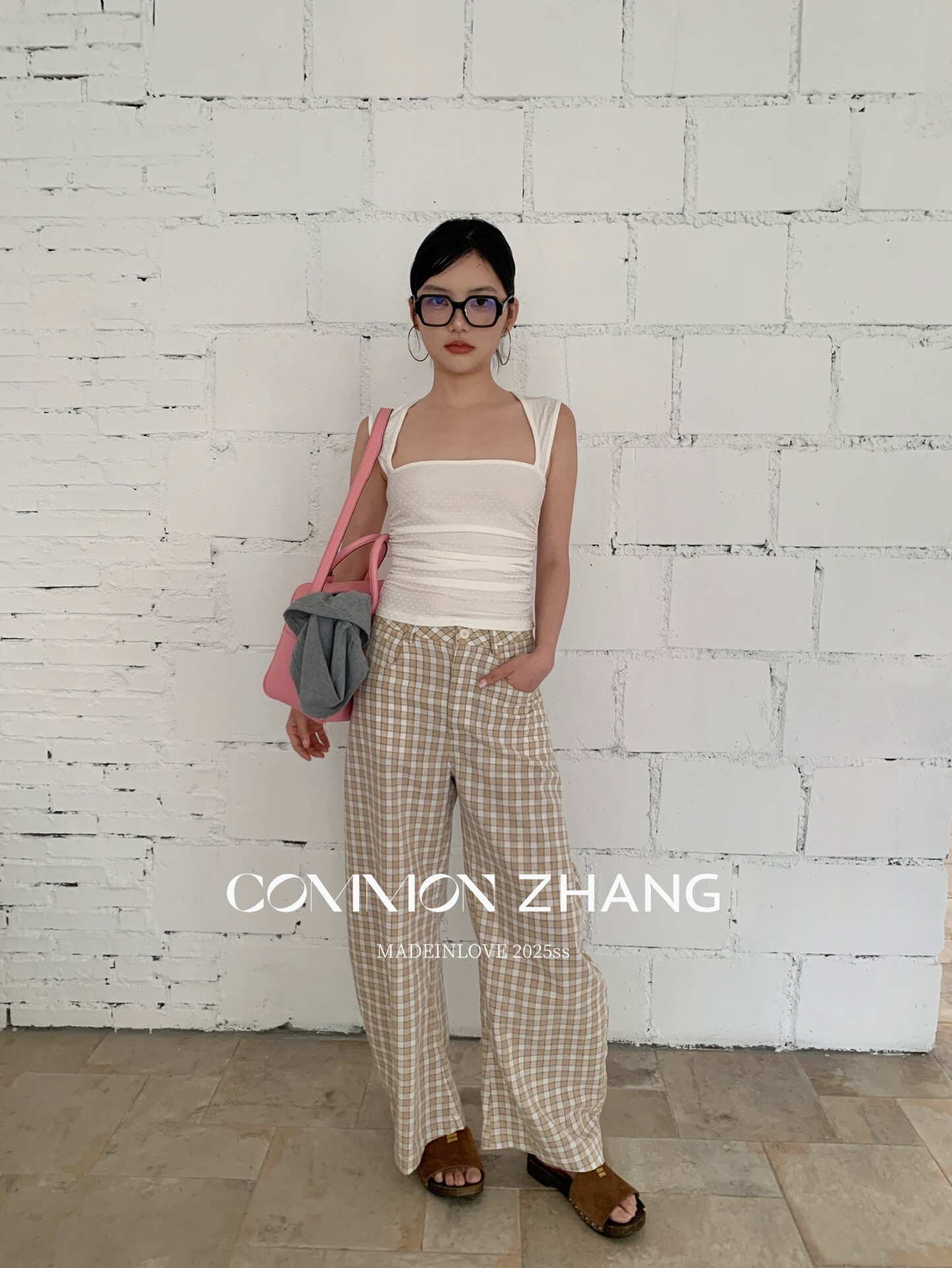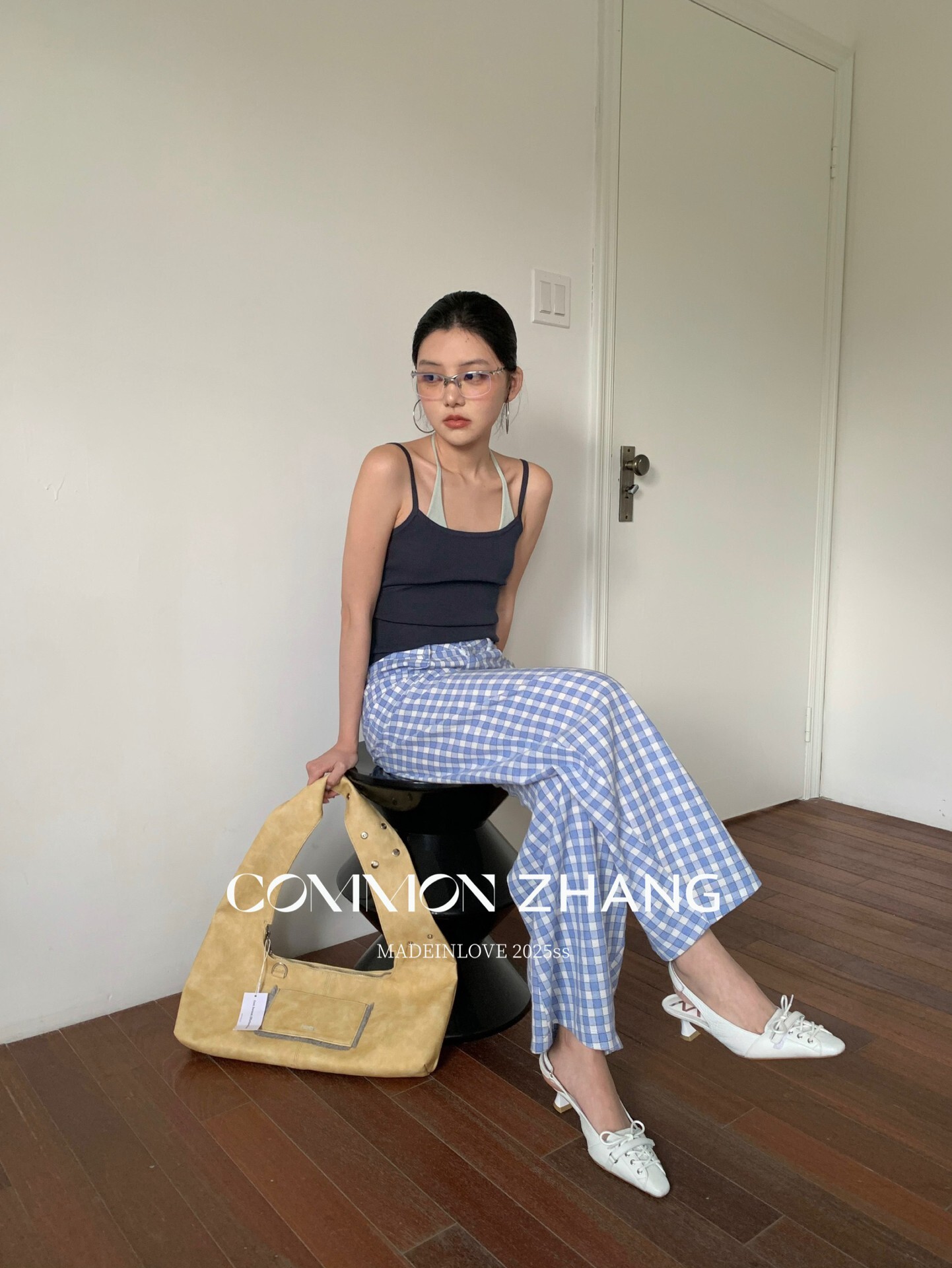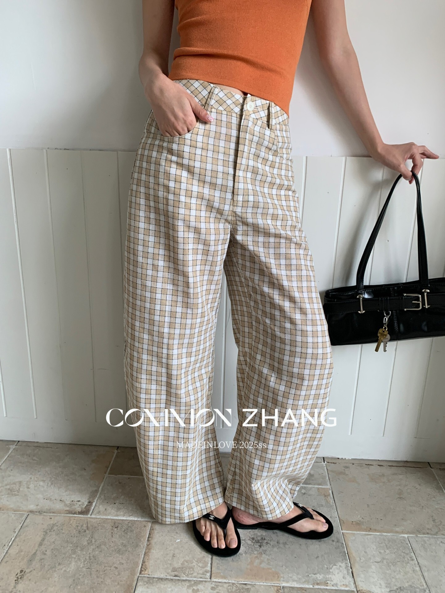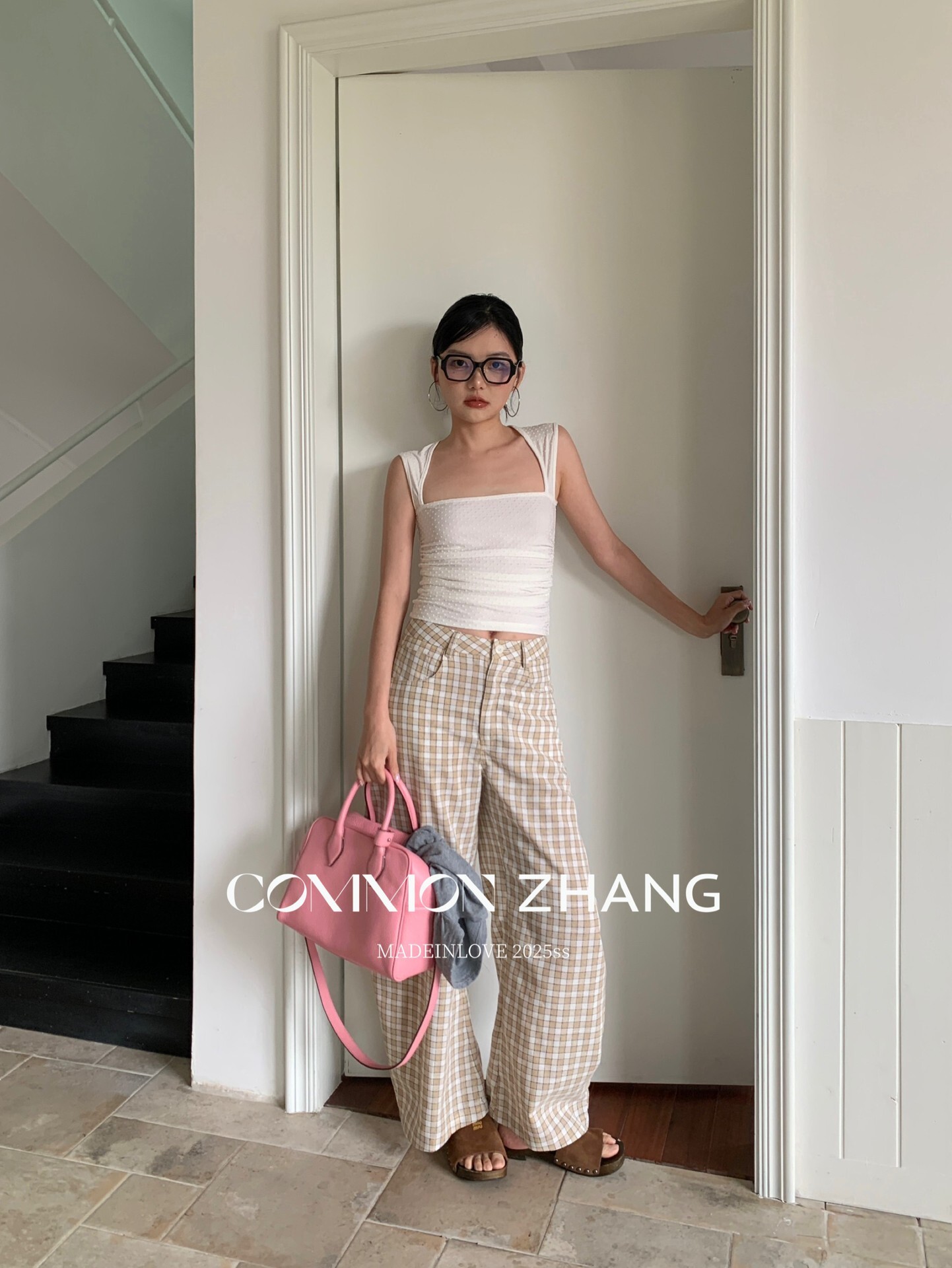 *o-ha-you*【FCZCB201715】夏季韓版慵懶休閒百搭條紋格子垂感闊腿拖地休閒褲-2色