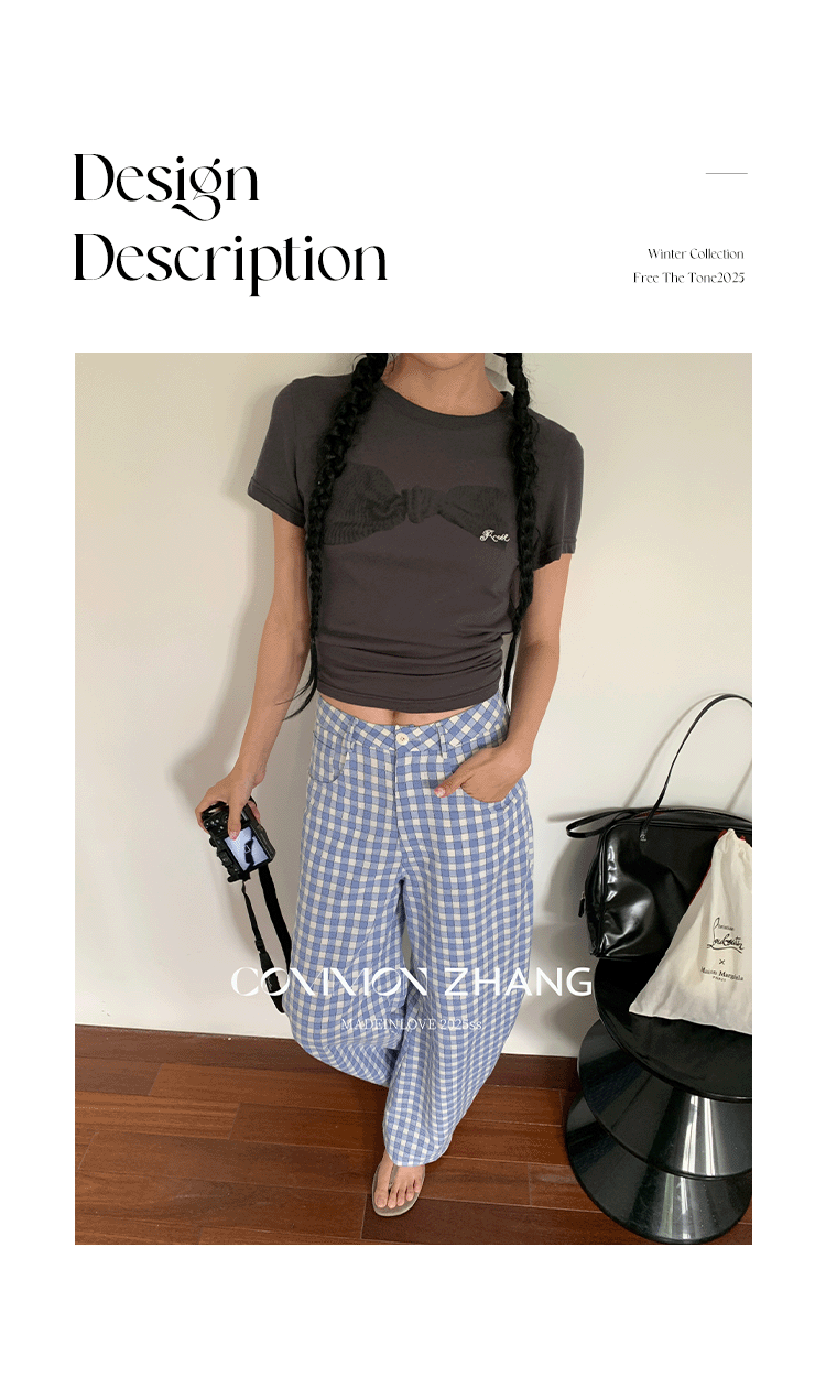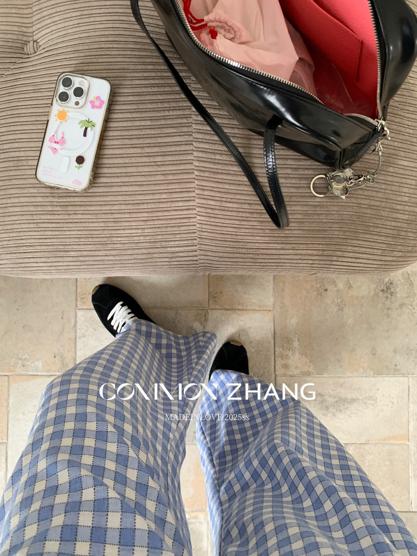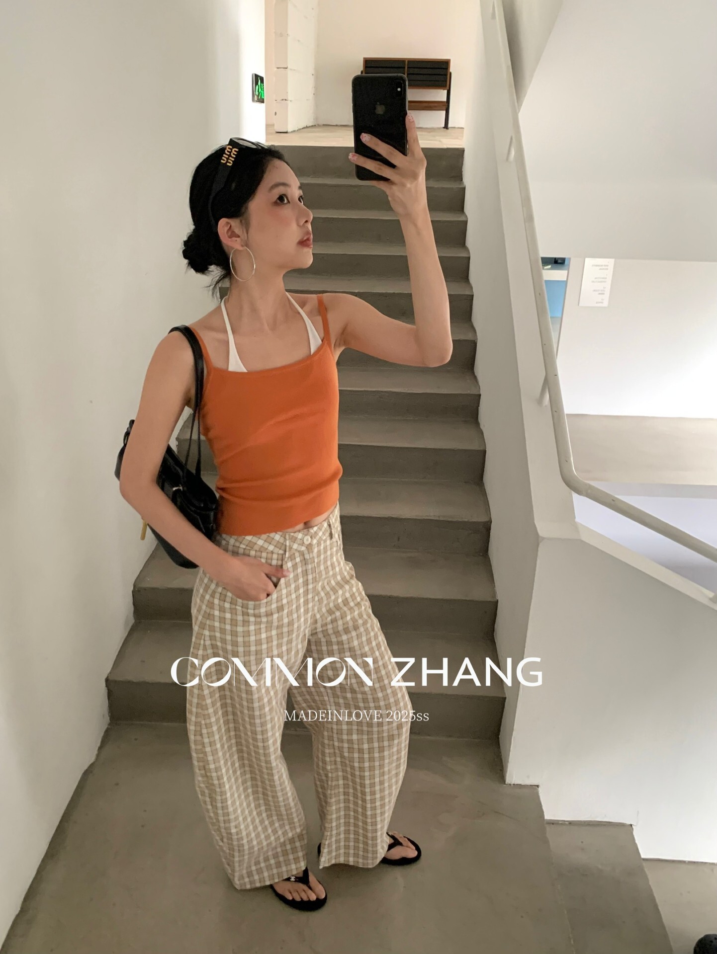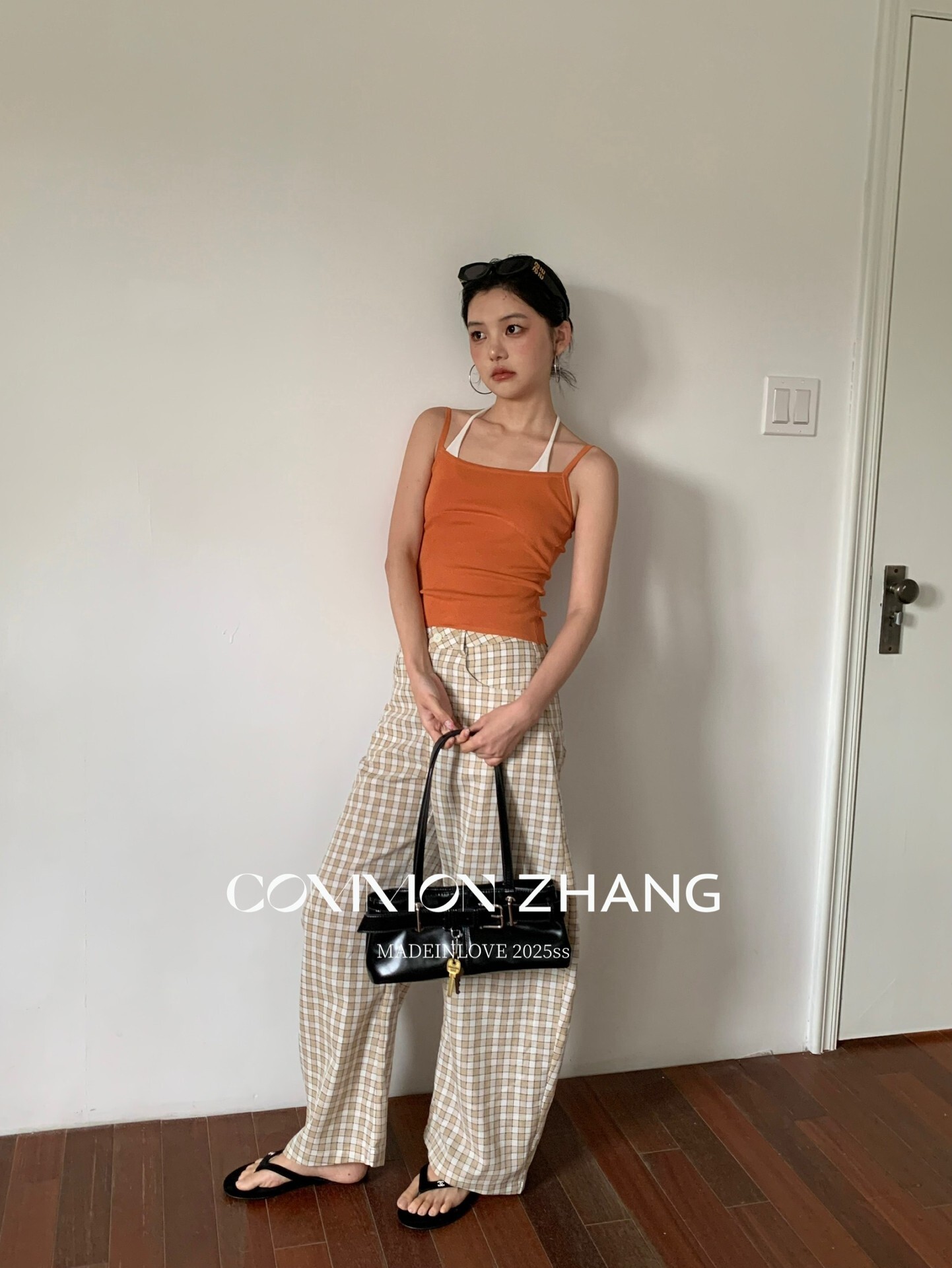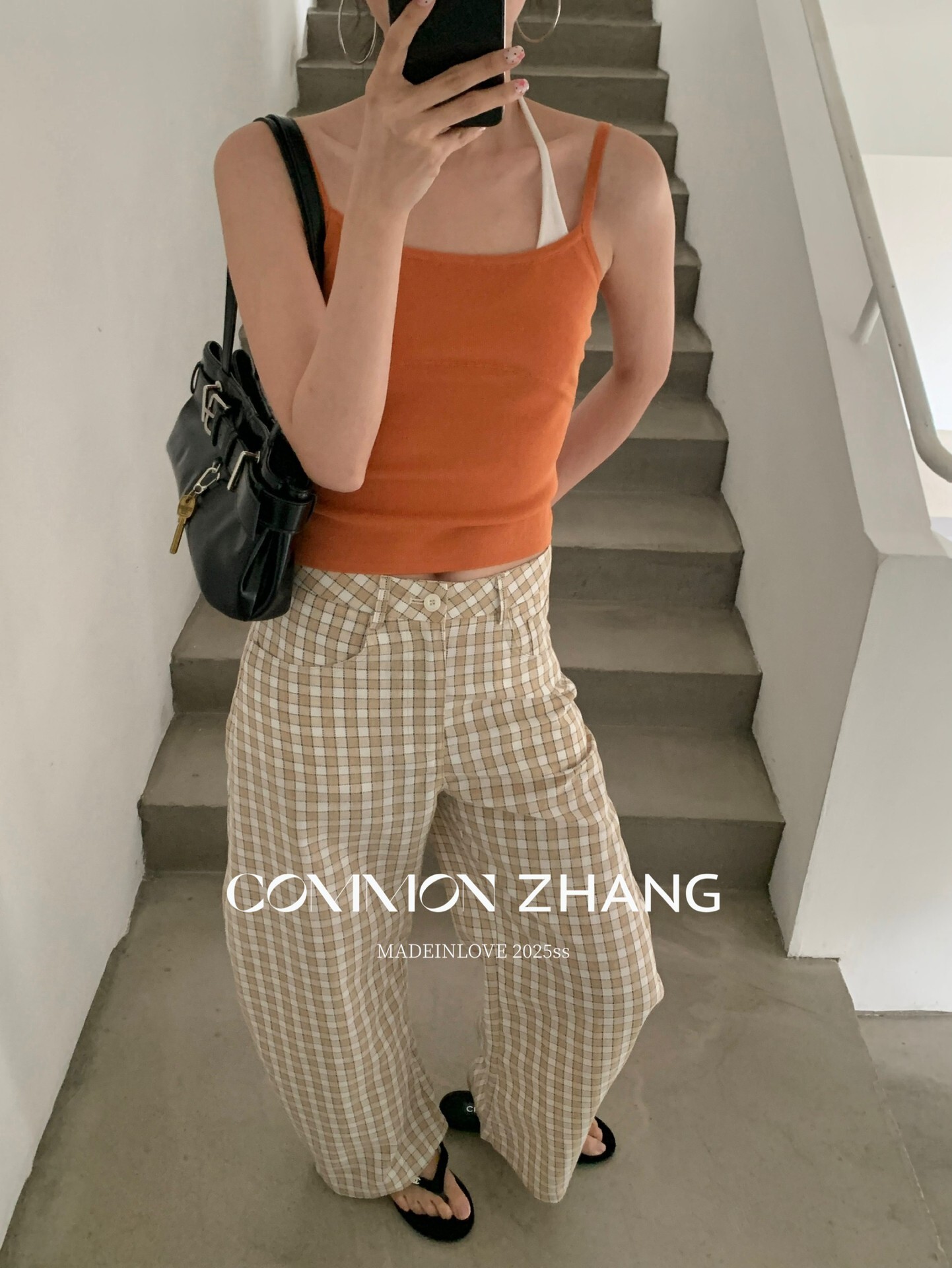 *o-ha-you*【FCZCB201715】夏季韓版慵懶休閒百搭條紋格子垂感闊腿拖地休閒褲-2色