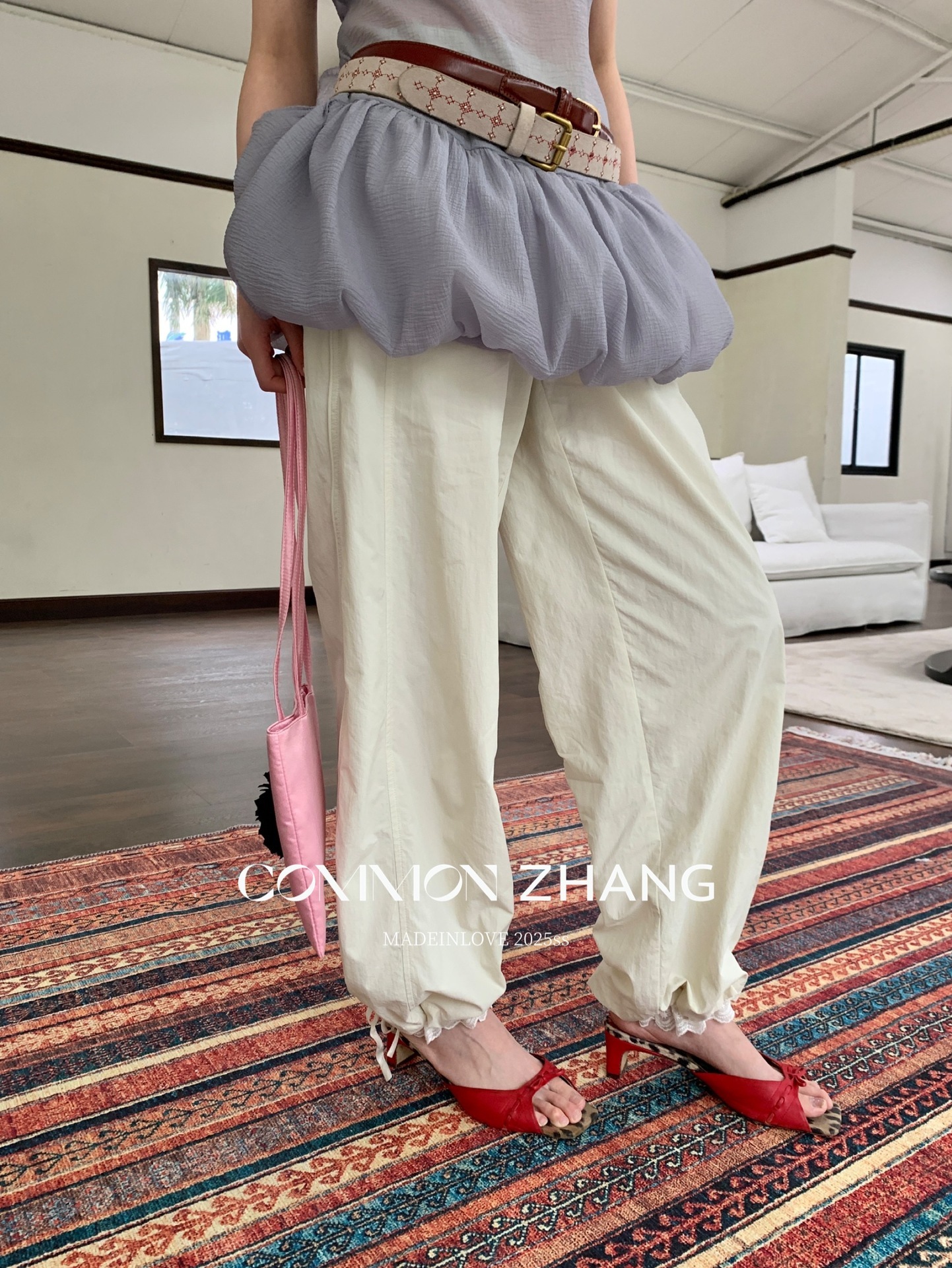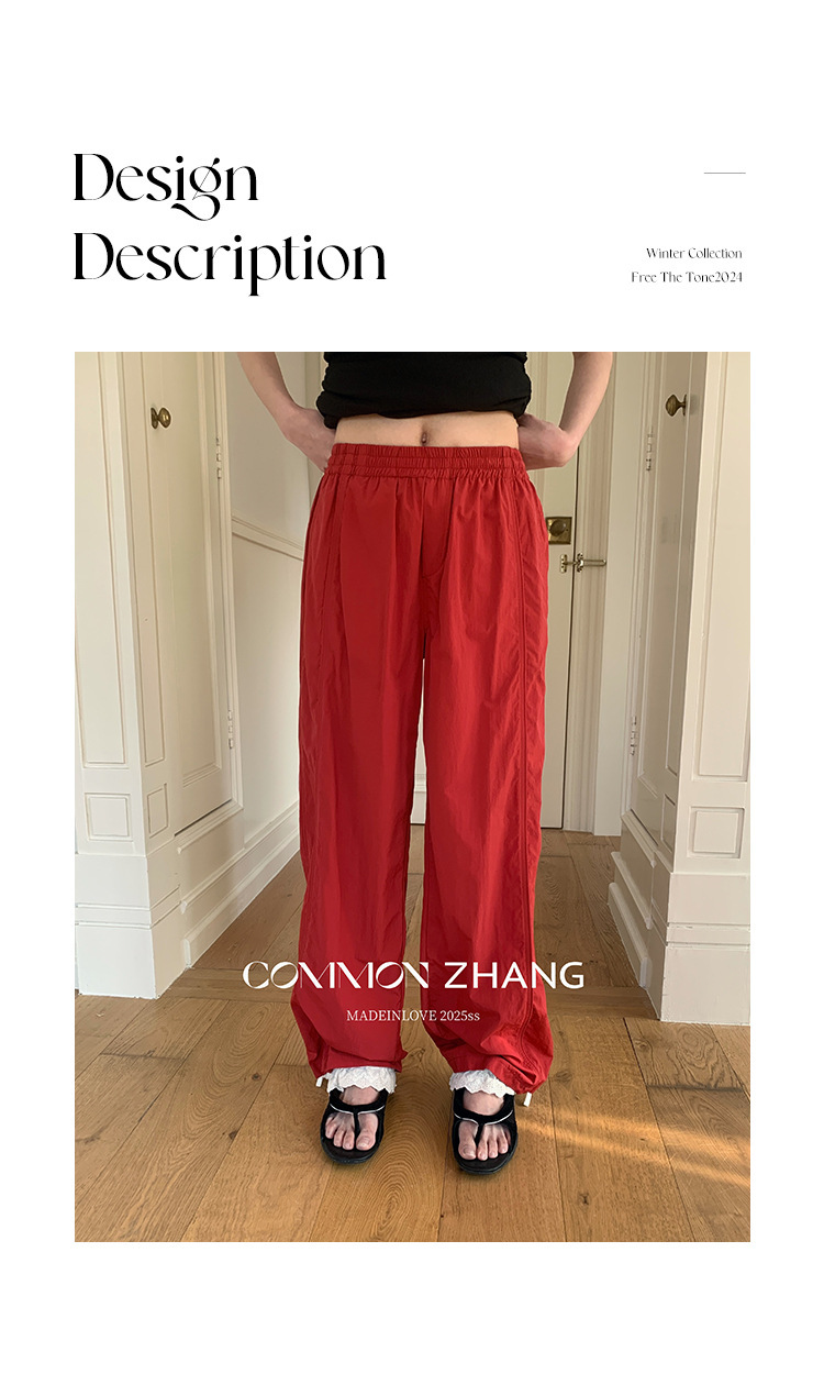 *o-ha-you*【FCZCB201733】夏季韓風速乾小眾蕾絲邊低腰直筒純色百搭休閒褲-5色-如有需要請先諮詢