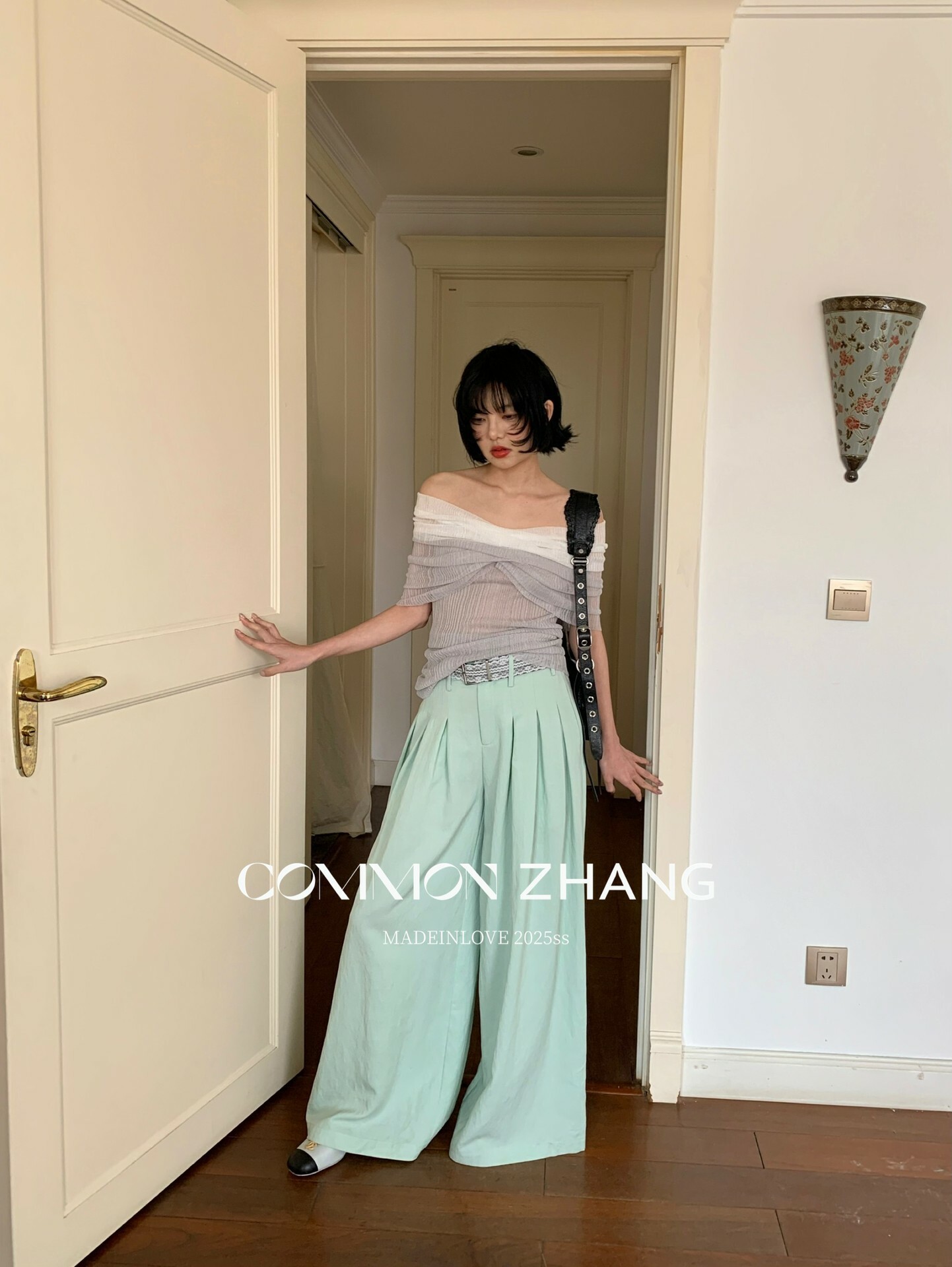 *o-ha-you*【FCZCB201746】夏季新款韓版都會通勤低腰闊腿拖地百搭純色休閒褲-5色
