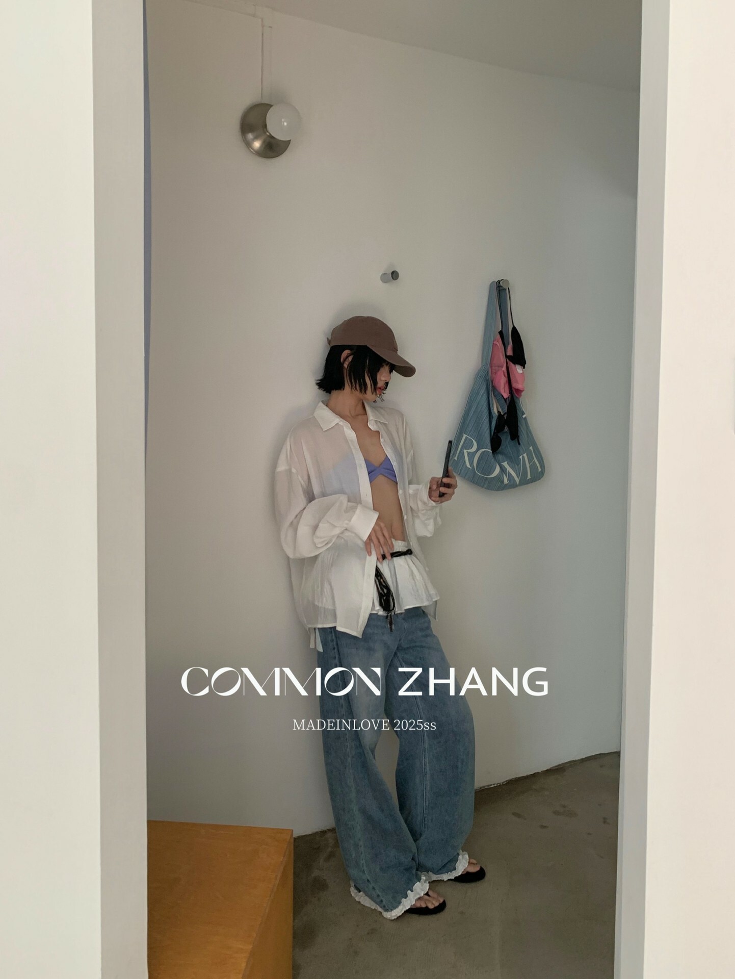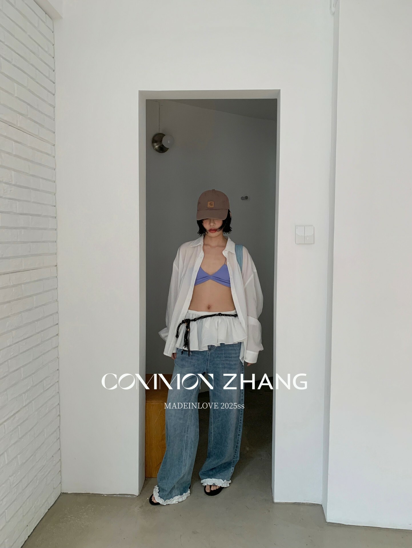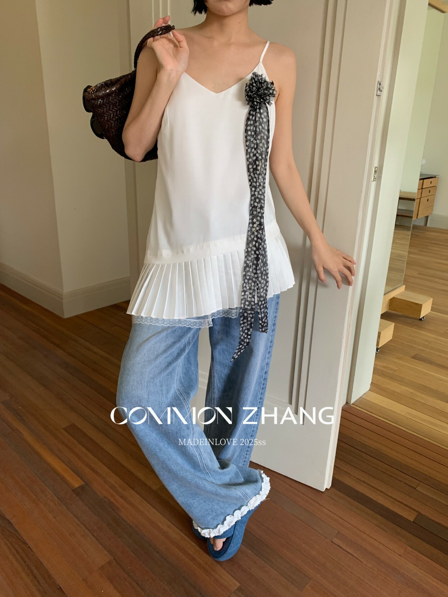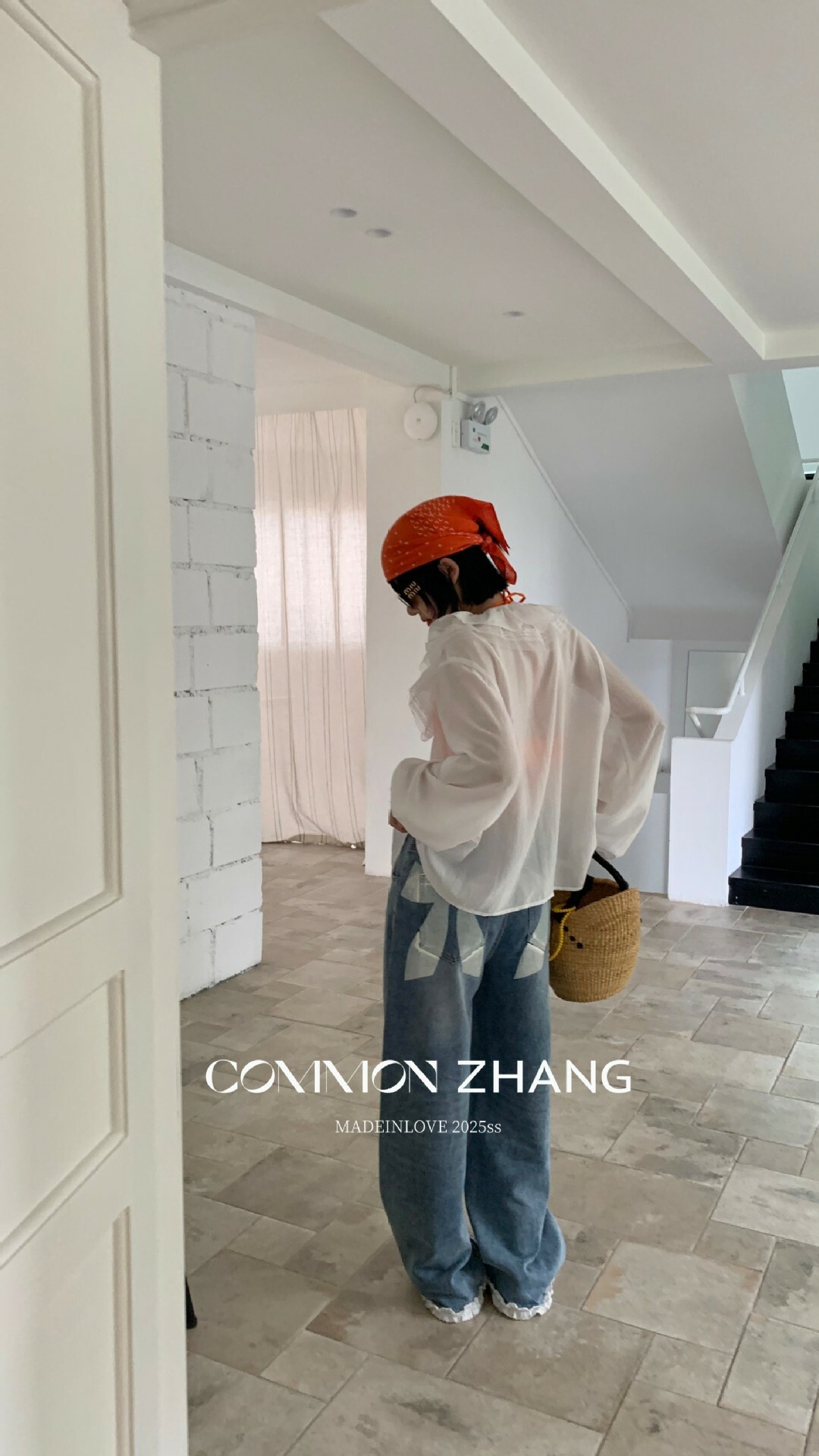 *o-ha-you*【FCZCB201750】夏日韓版蝴蝶結印花低腰垂感闊腿蕾絲拼接牛仔褲