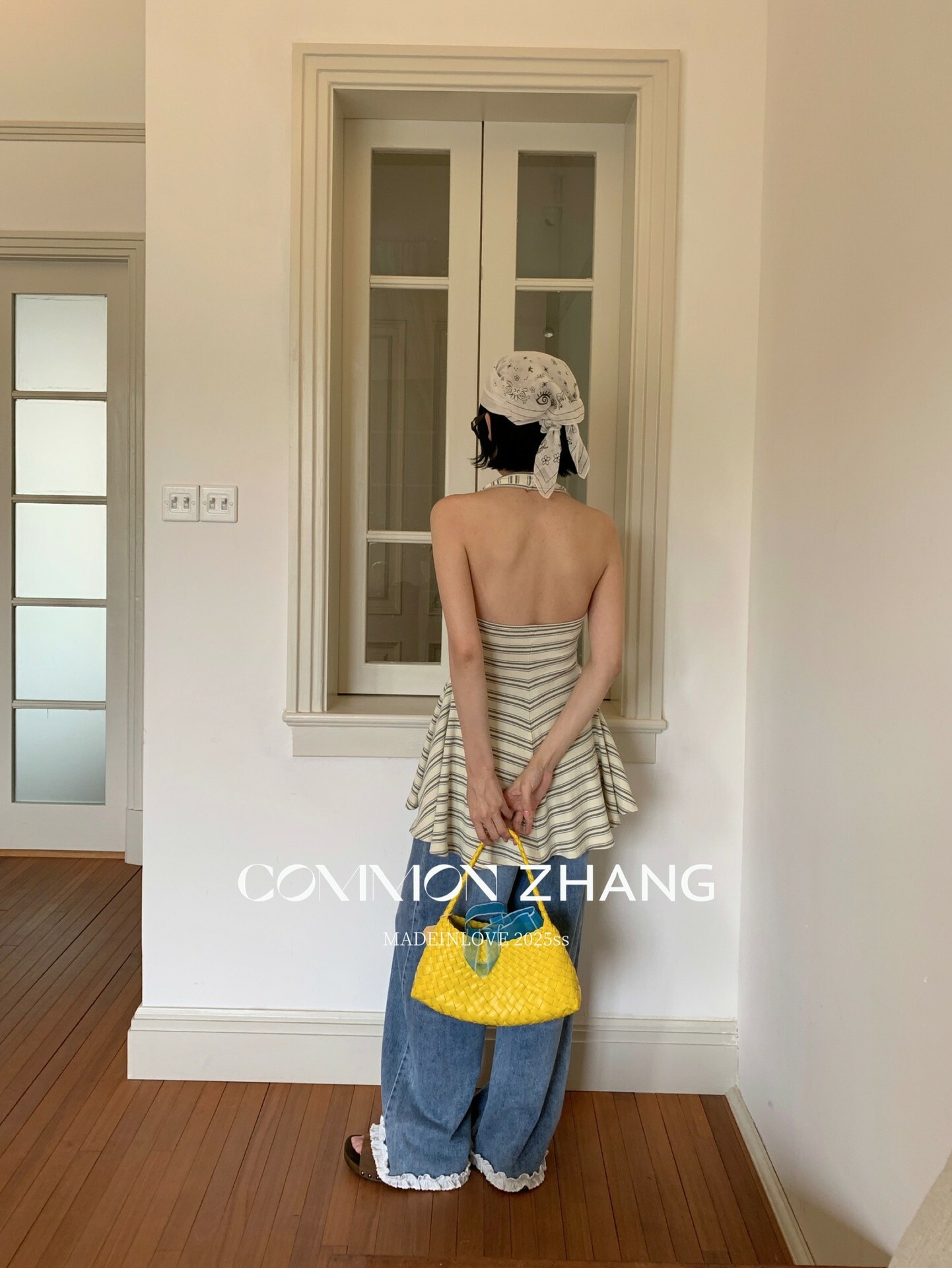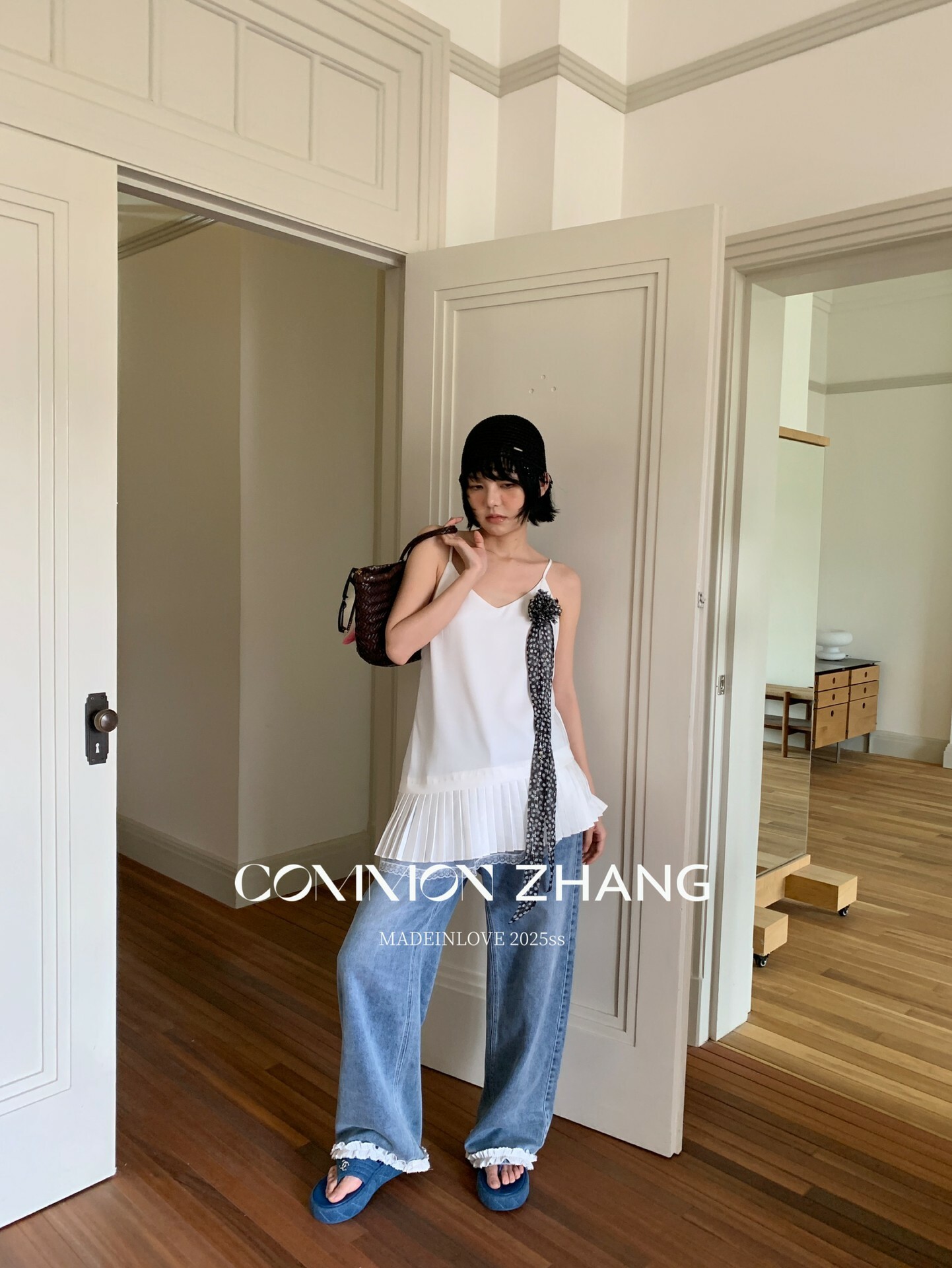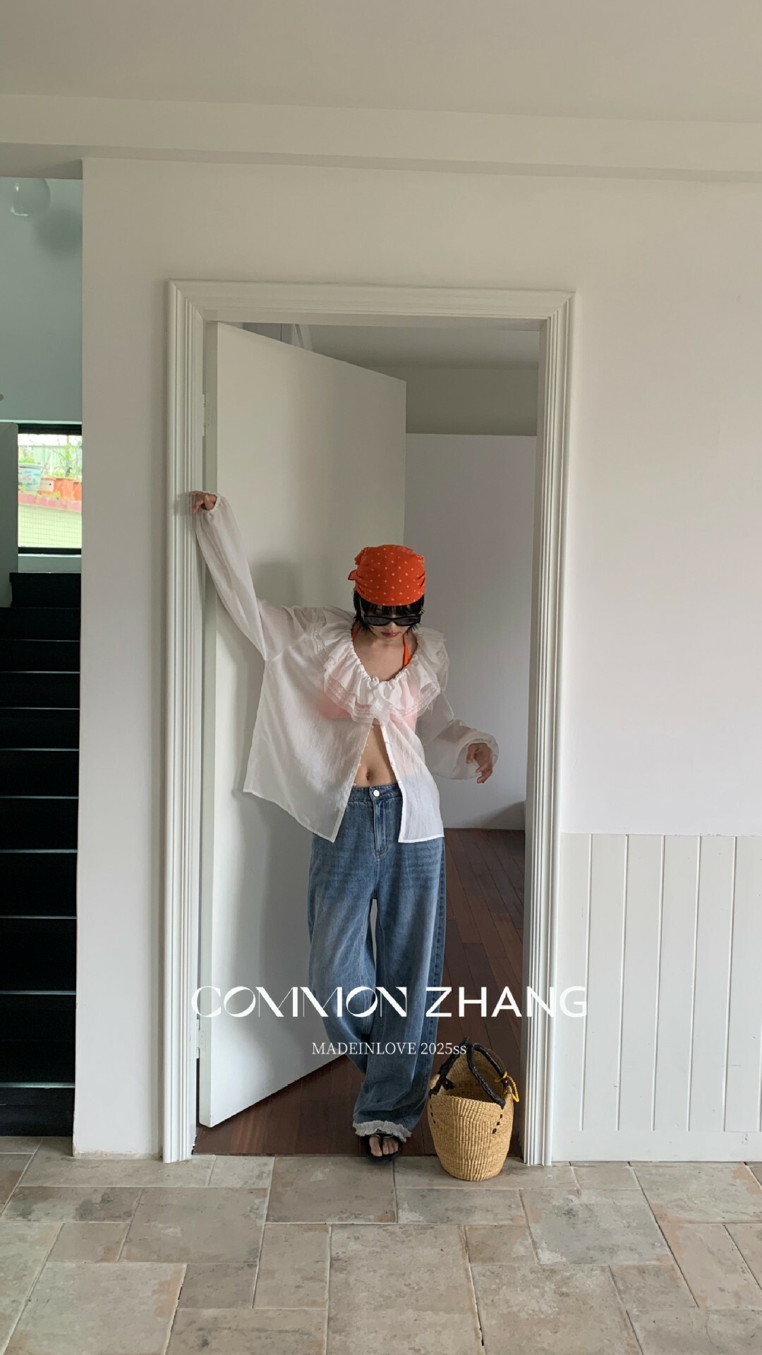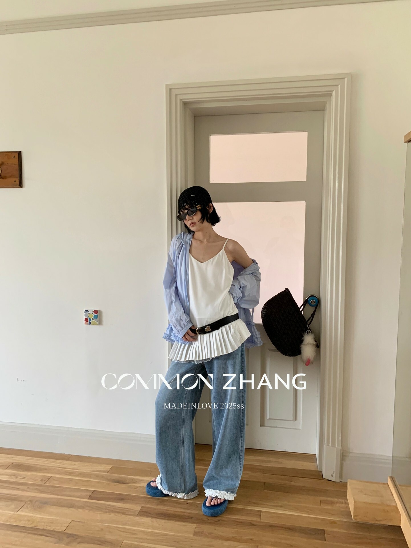 *o-ha-you*【FCZCB201750】夏日韓版蝴蝶結印花低腰垂感闊腿蕾絲拼接牛仔褲