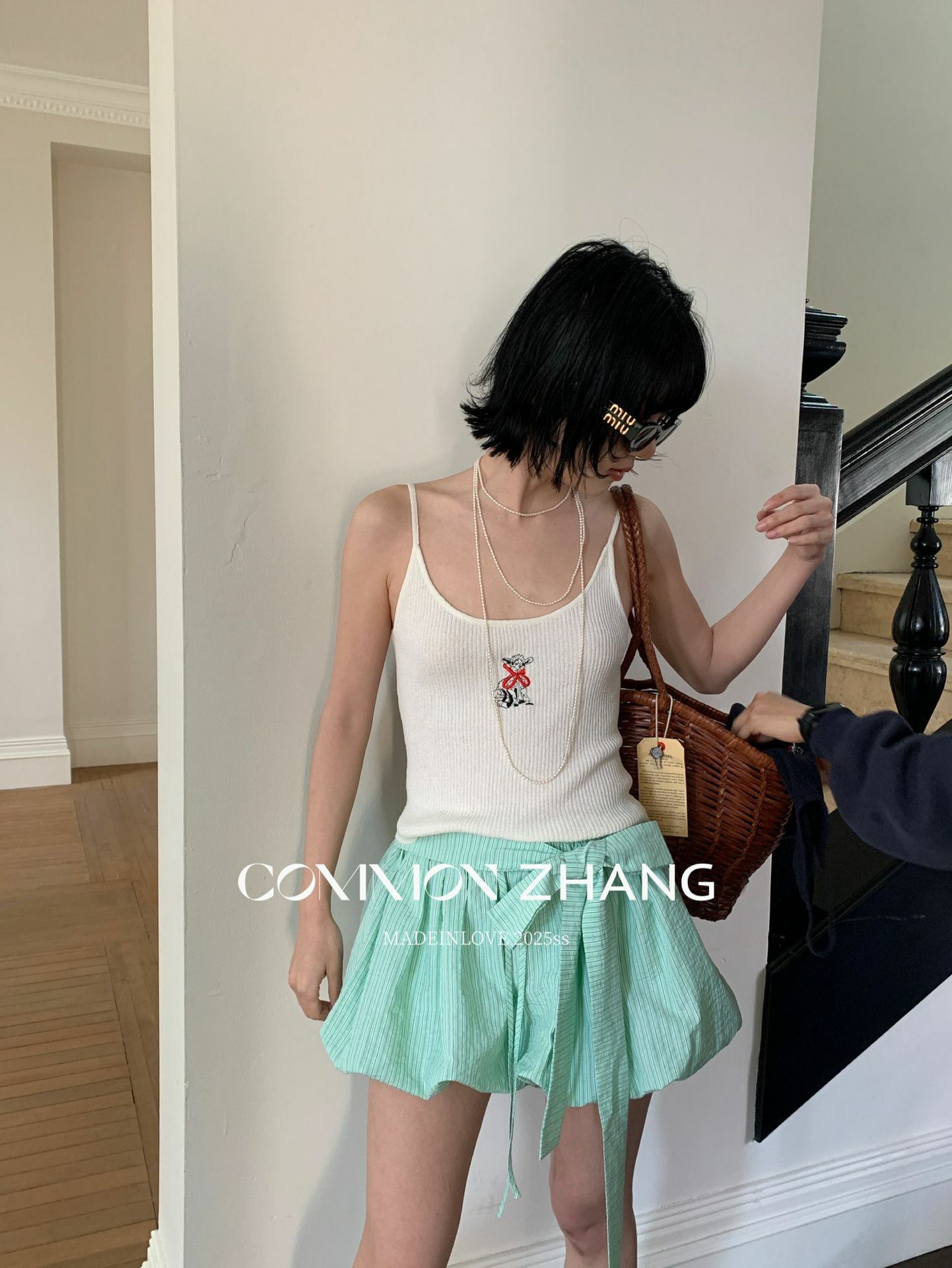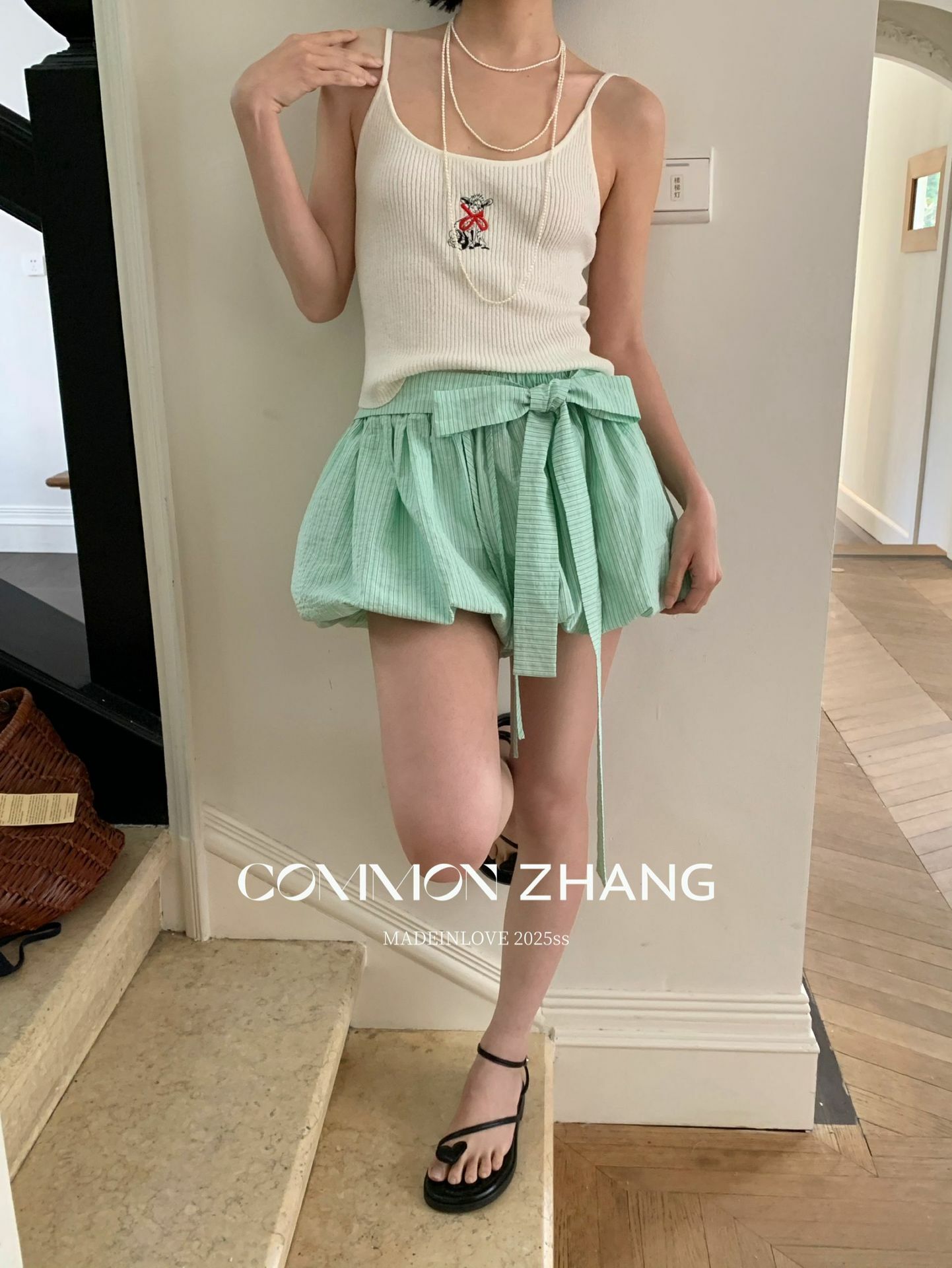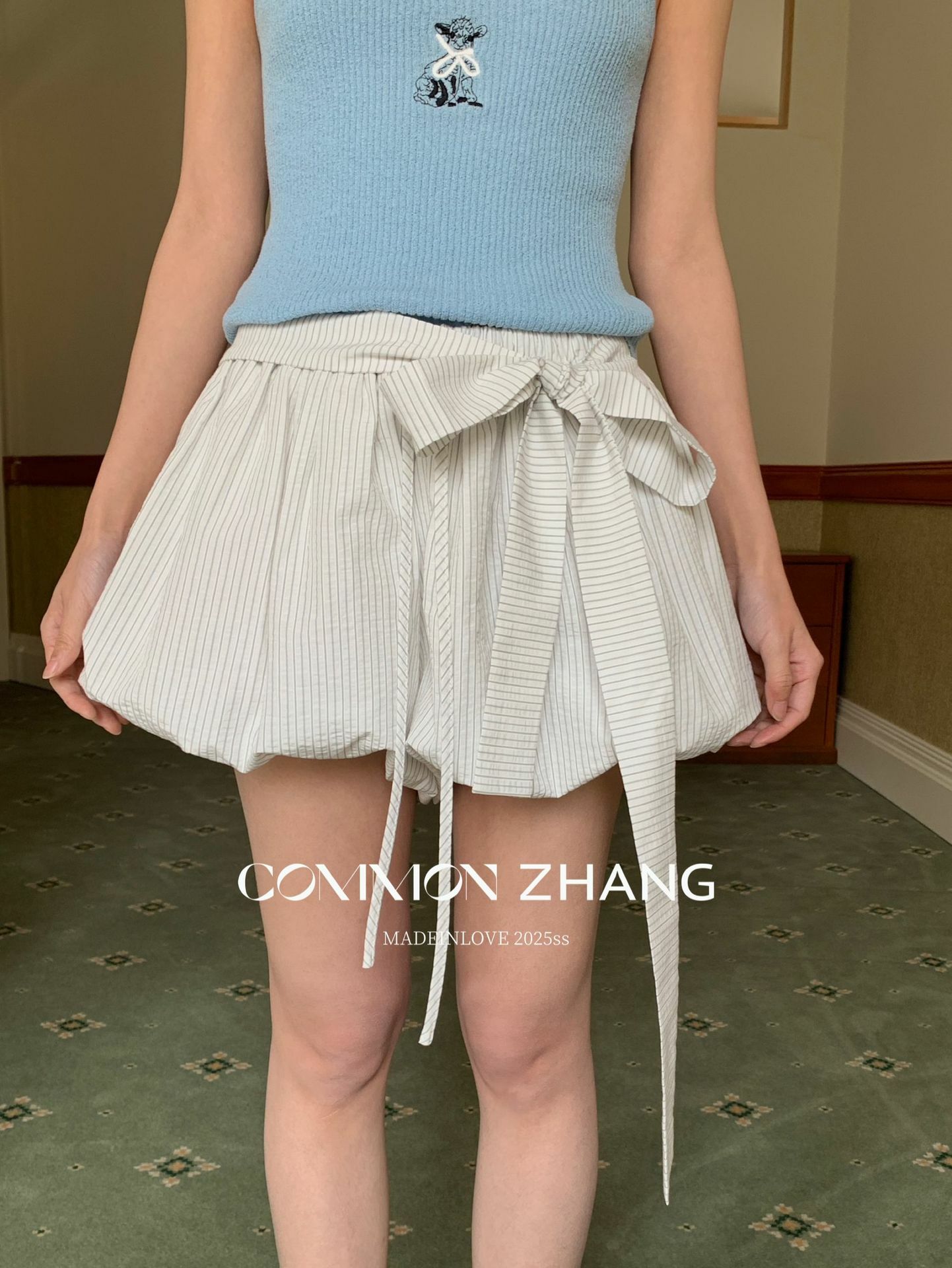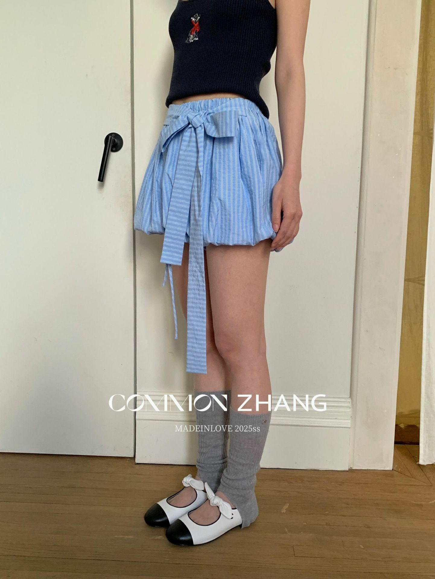 *o-ha-you*【FCZCB201768】夏季法式減齡女孩感條紋格子蝴蝶結繫帶低腰短褲-3色-如有需要請先諮詢