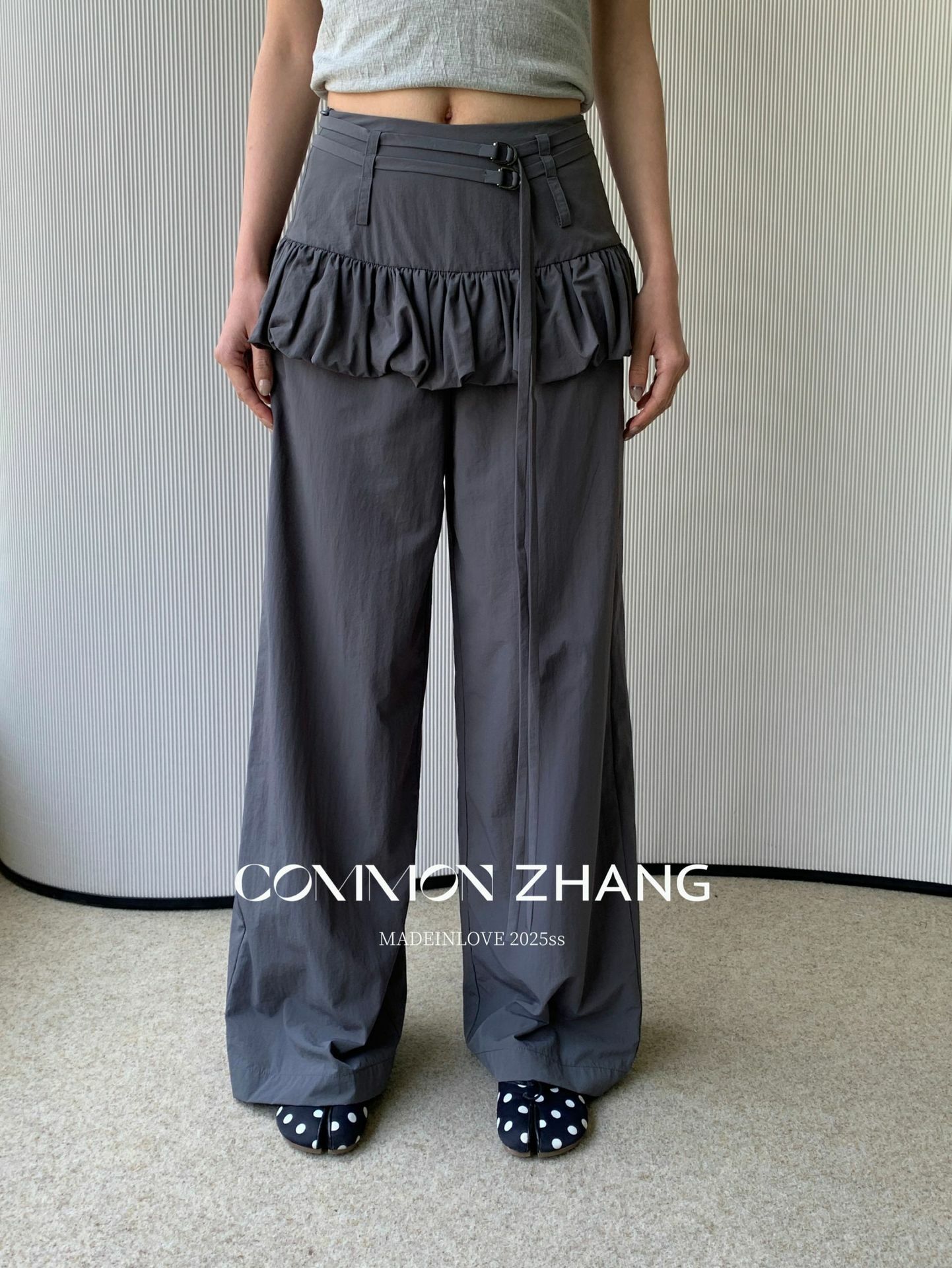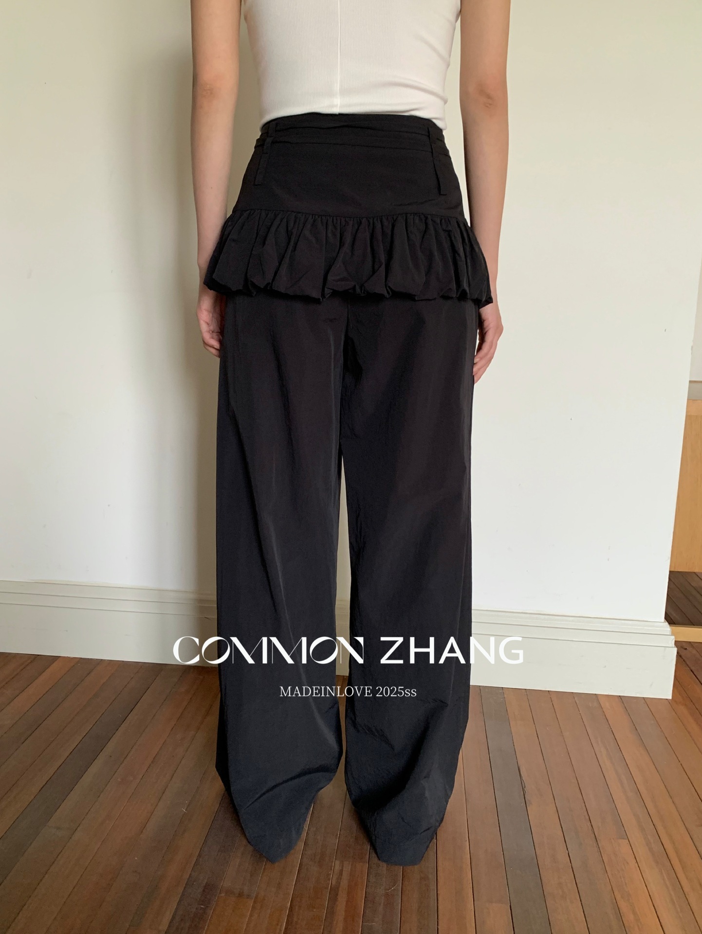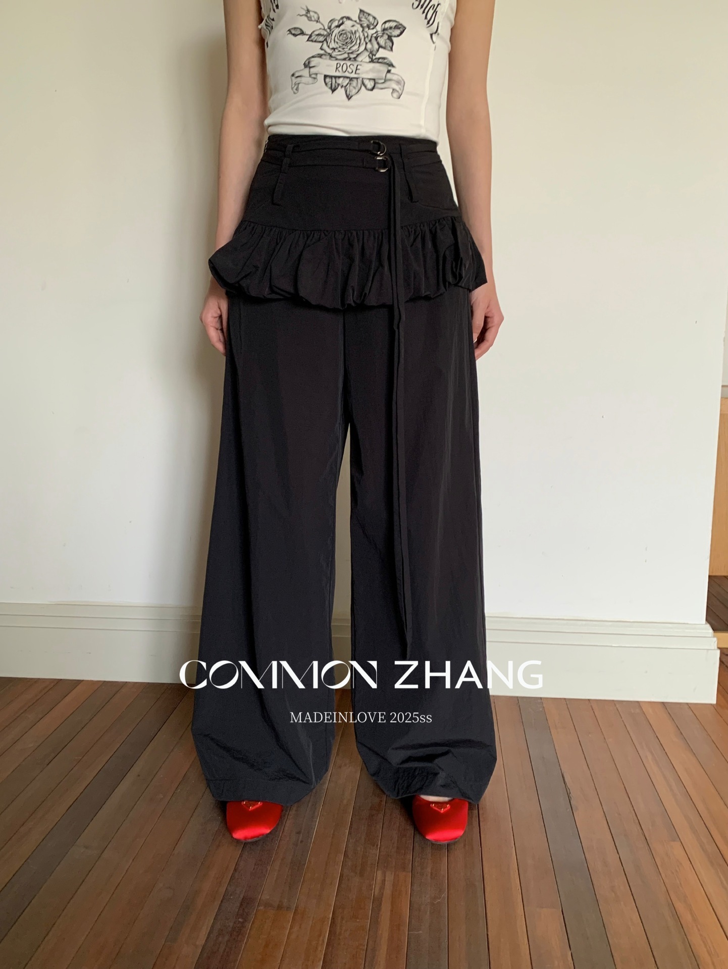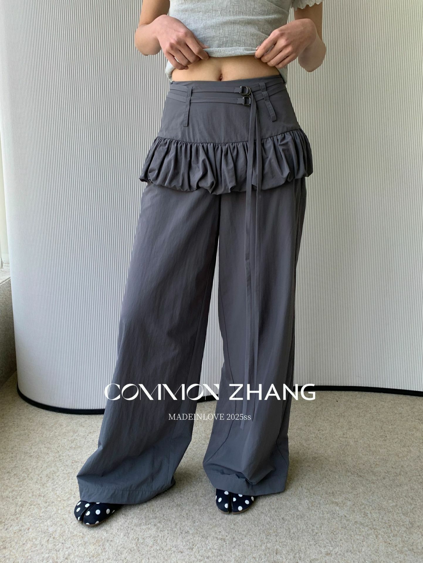 *o-ha-you*【FCZCB201779】夏季韓版都會通勤低腰垂感闊腿屁簾休閒褲假兩件-2色