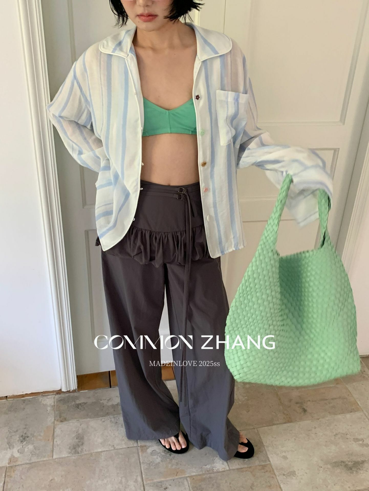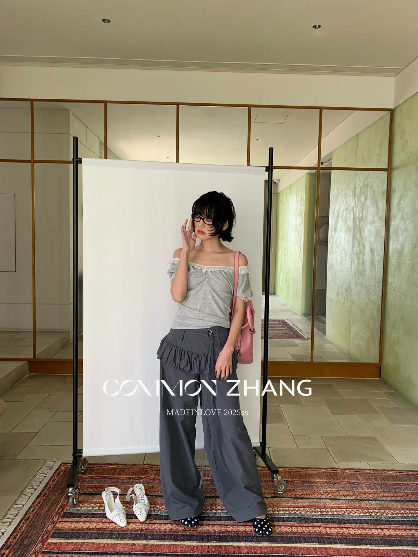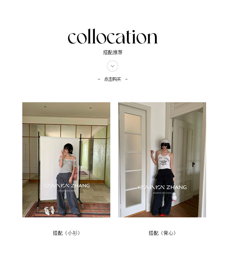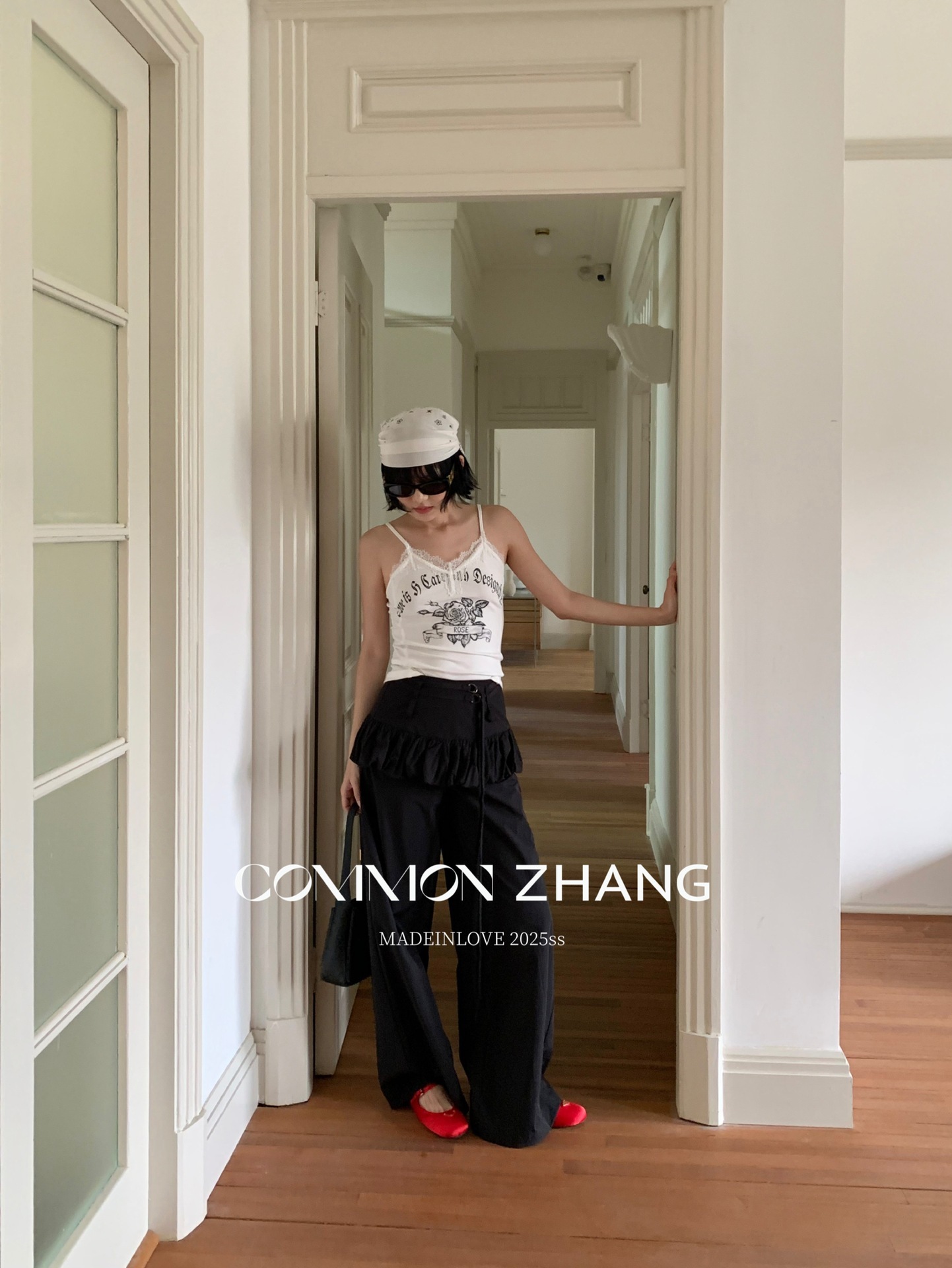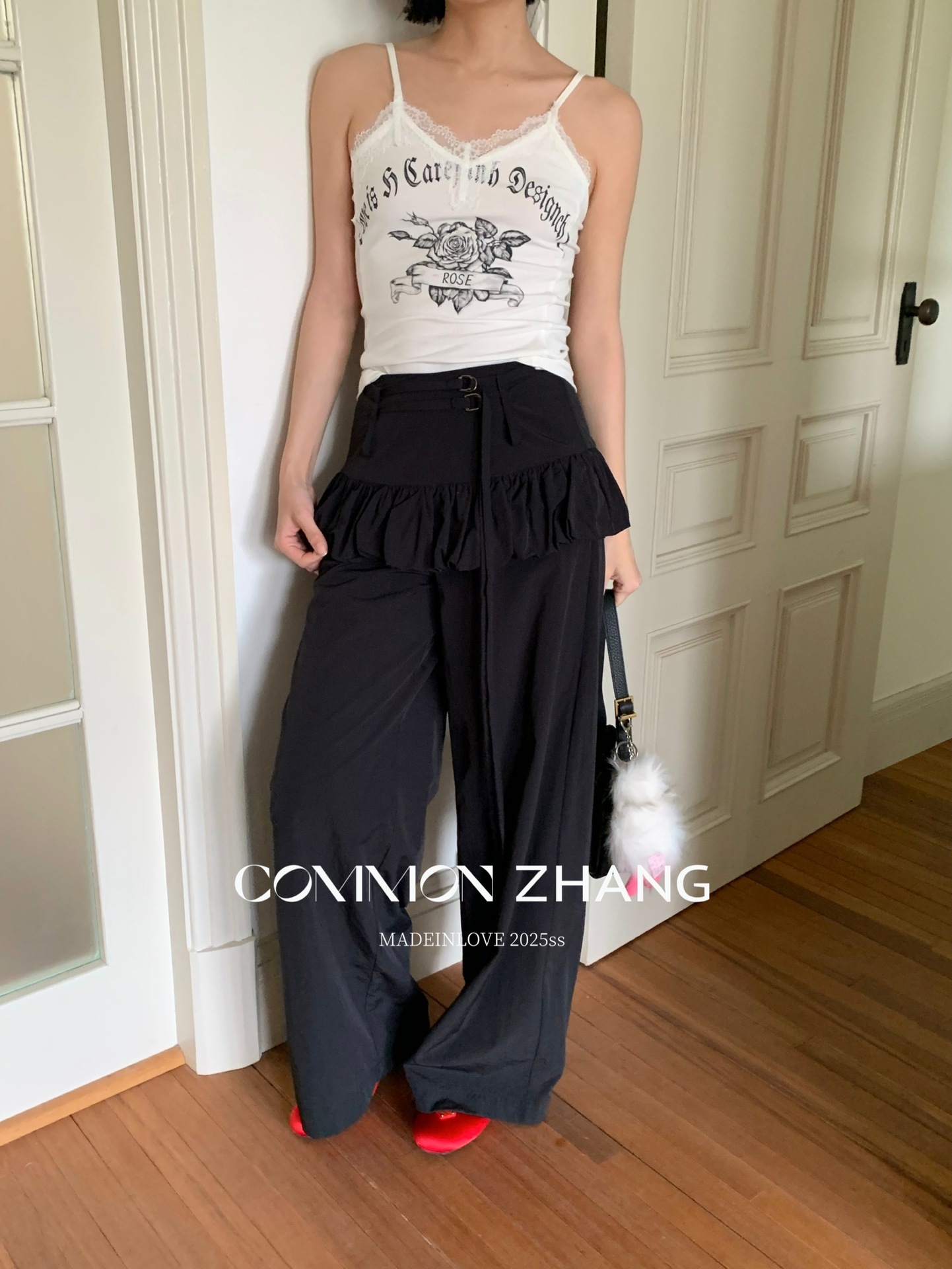 *o-ha-you*【FCZCB201779】夏季韓版都會通勤低腰垂感闊腿屁簾休閒褲假兩件-2色