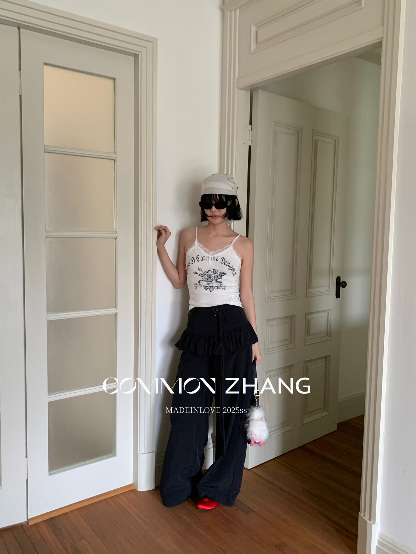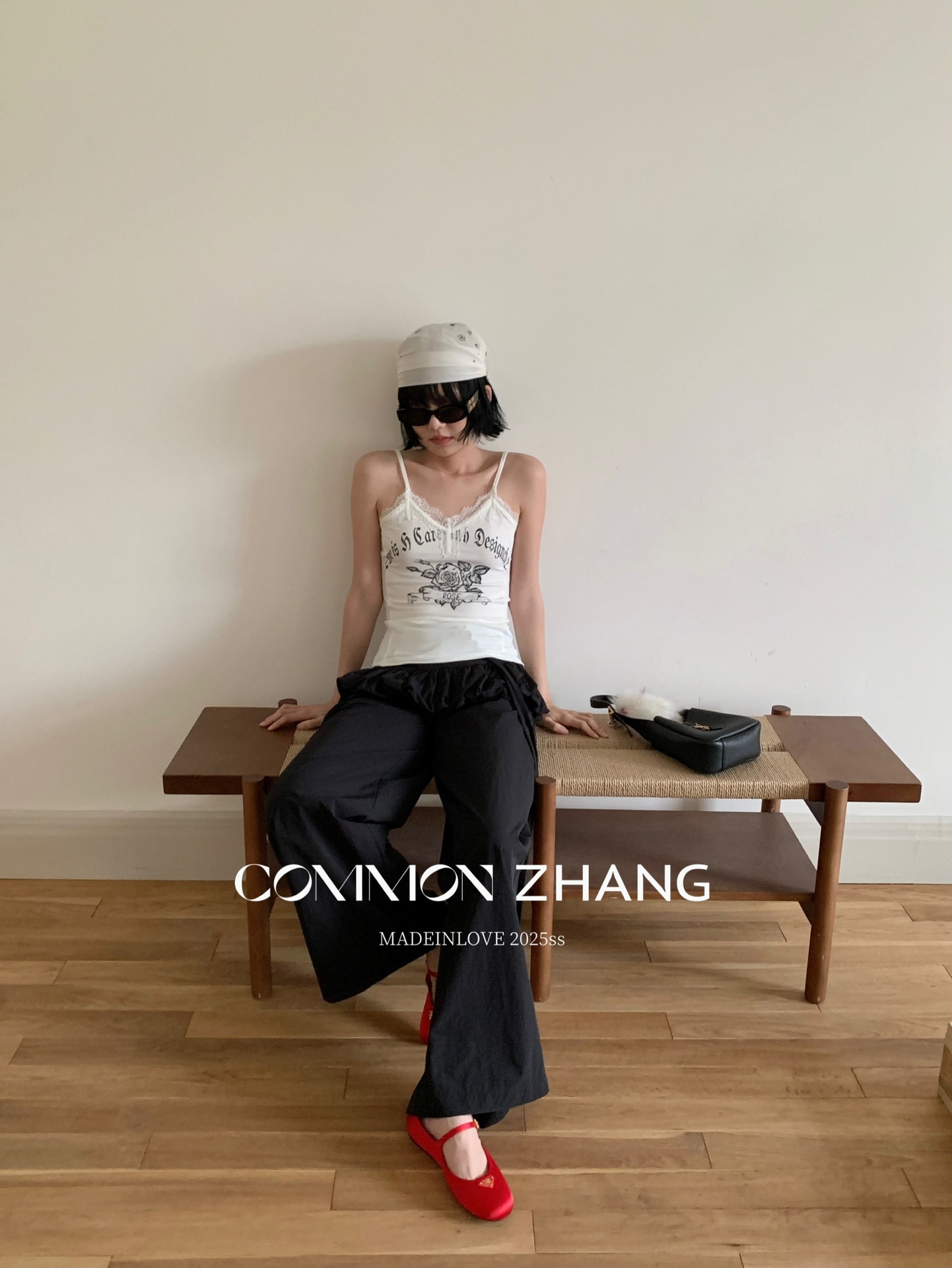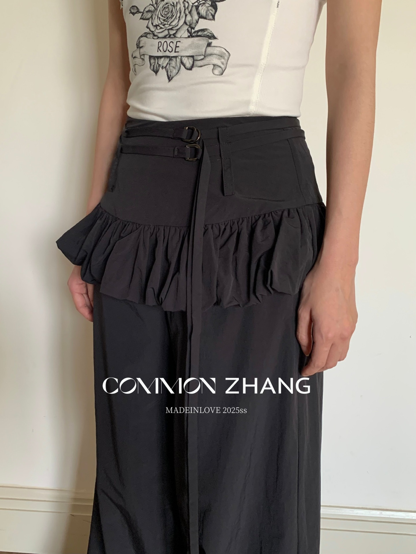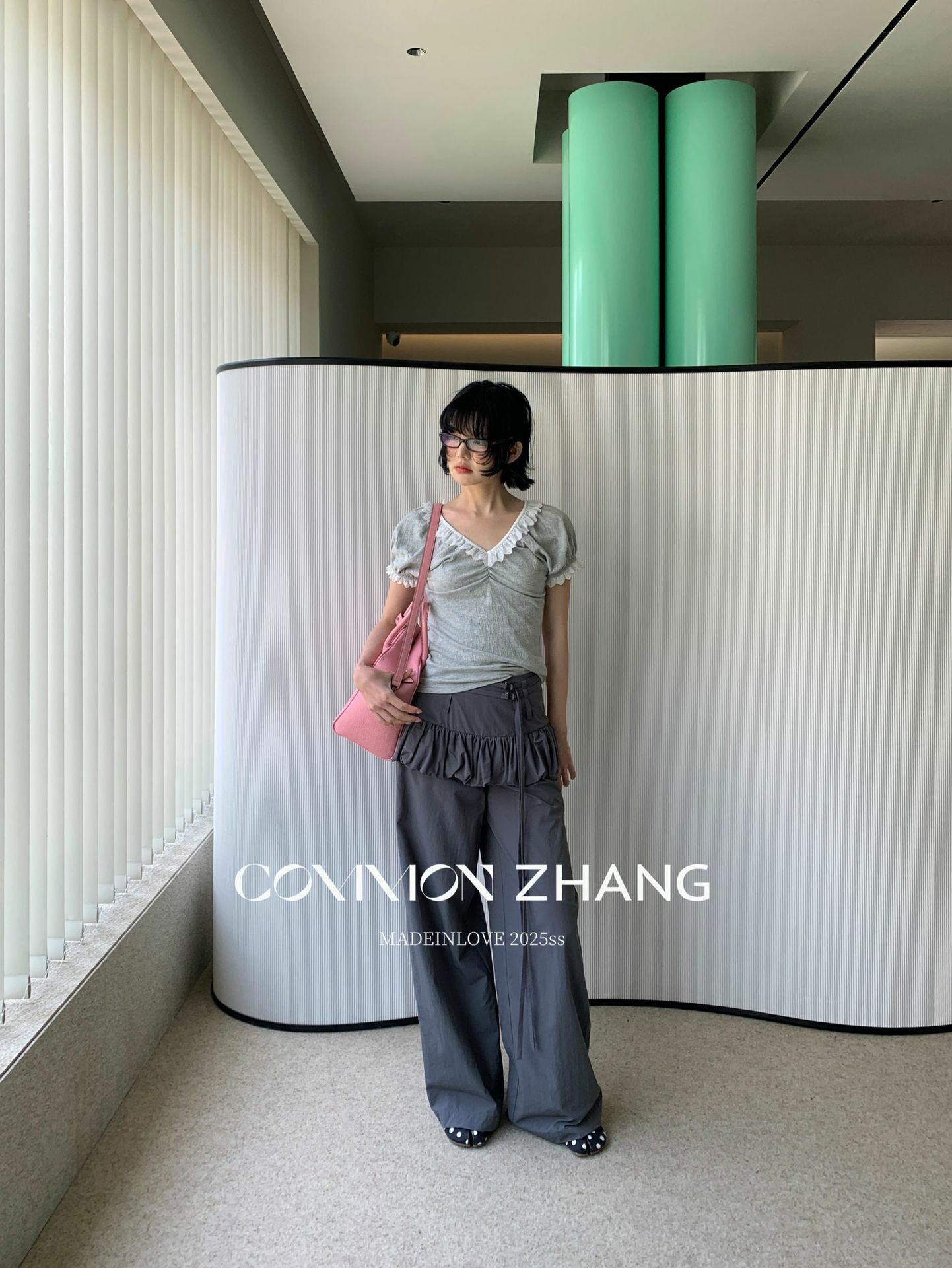 *o-ha-you*【FCZCB201779】夏季韓版都會通勤低腰垂感闊腿屁簾休閒褲假兩件-2色