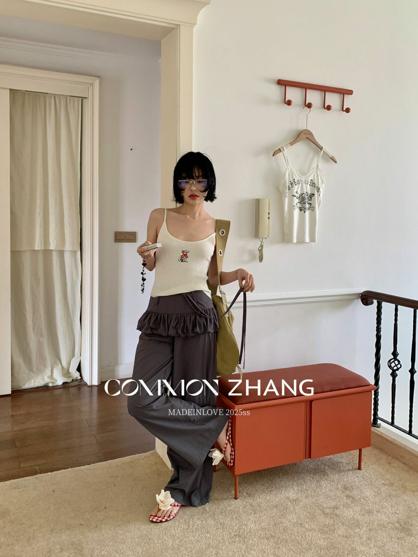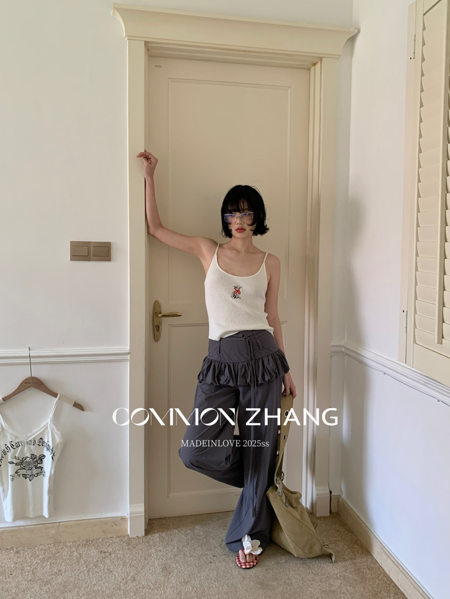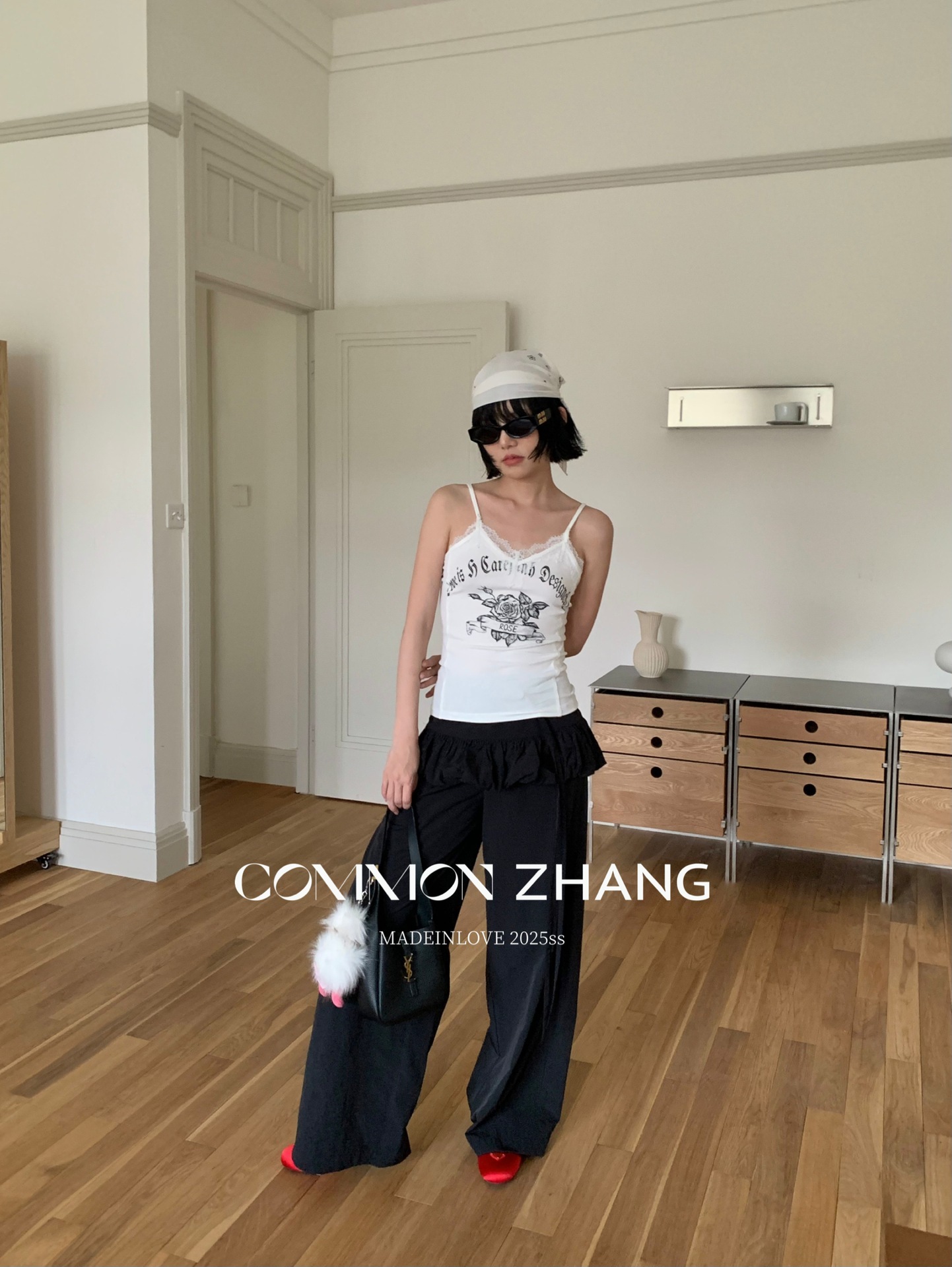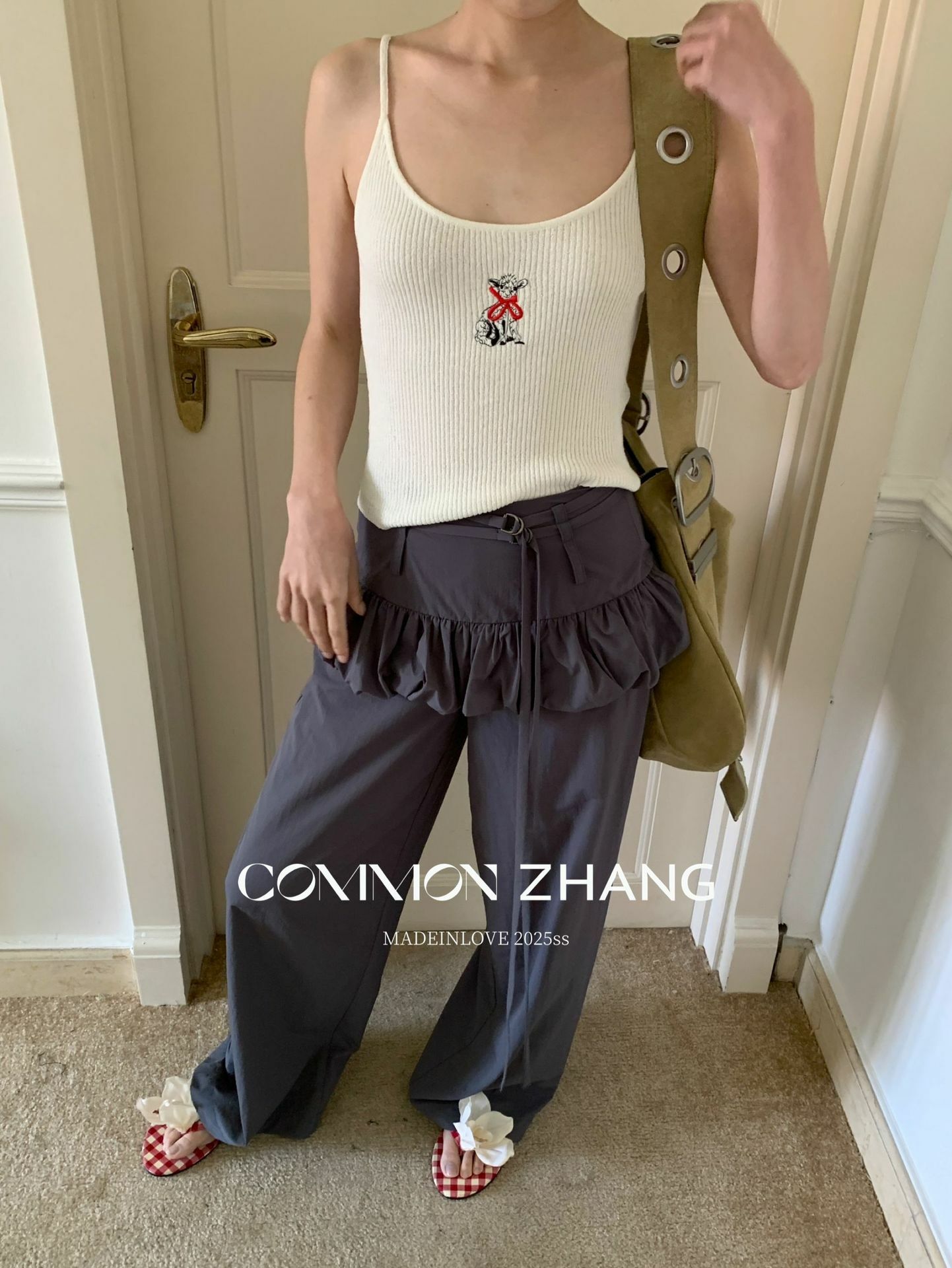*o-ha-you*【FCZCB201779】夏季韓版都會通勤低腰垂感闊腿屁簾休閒褲假兩件-2色