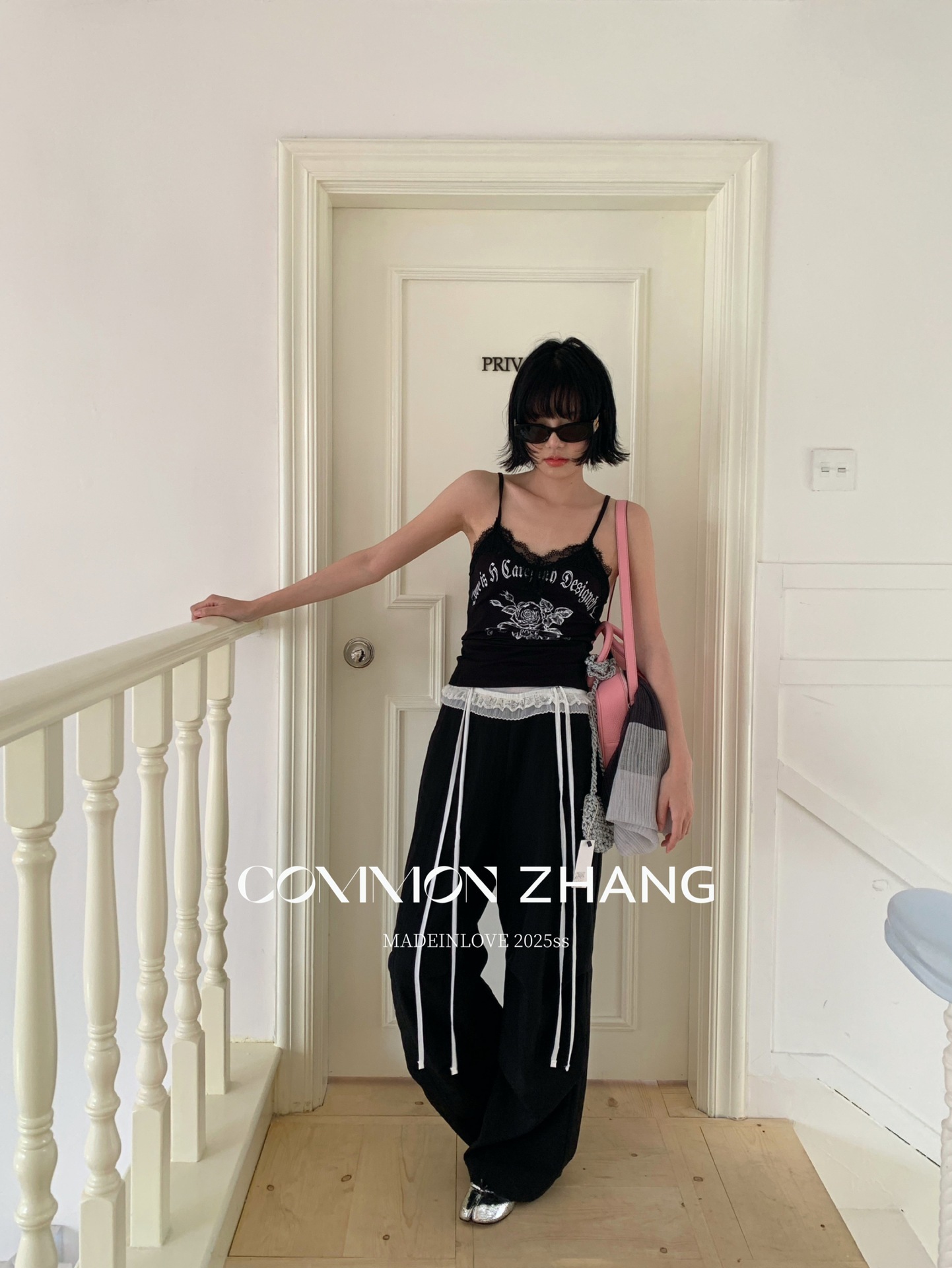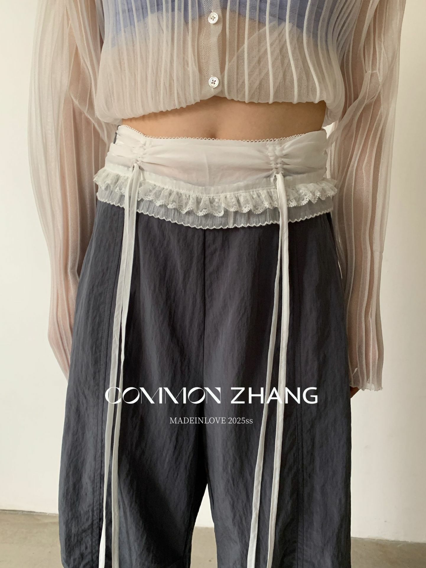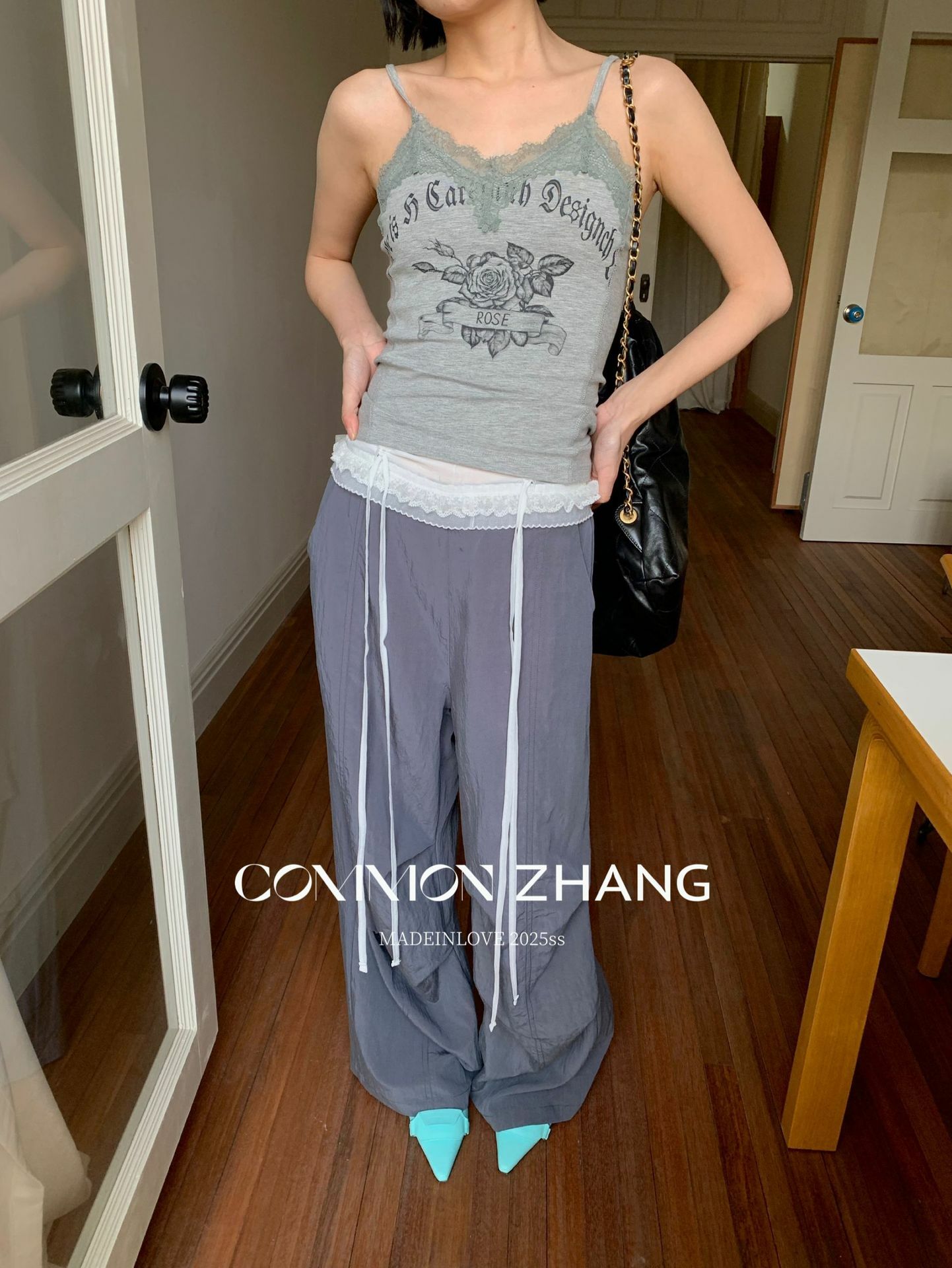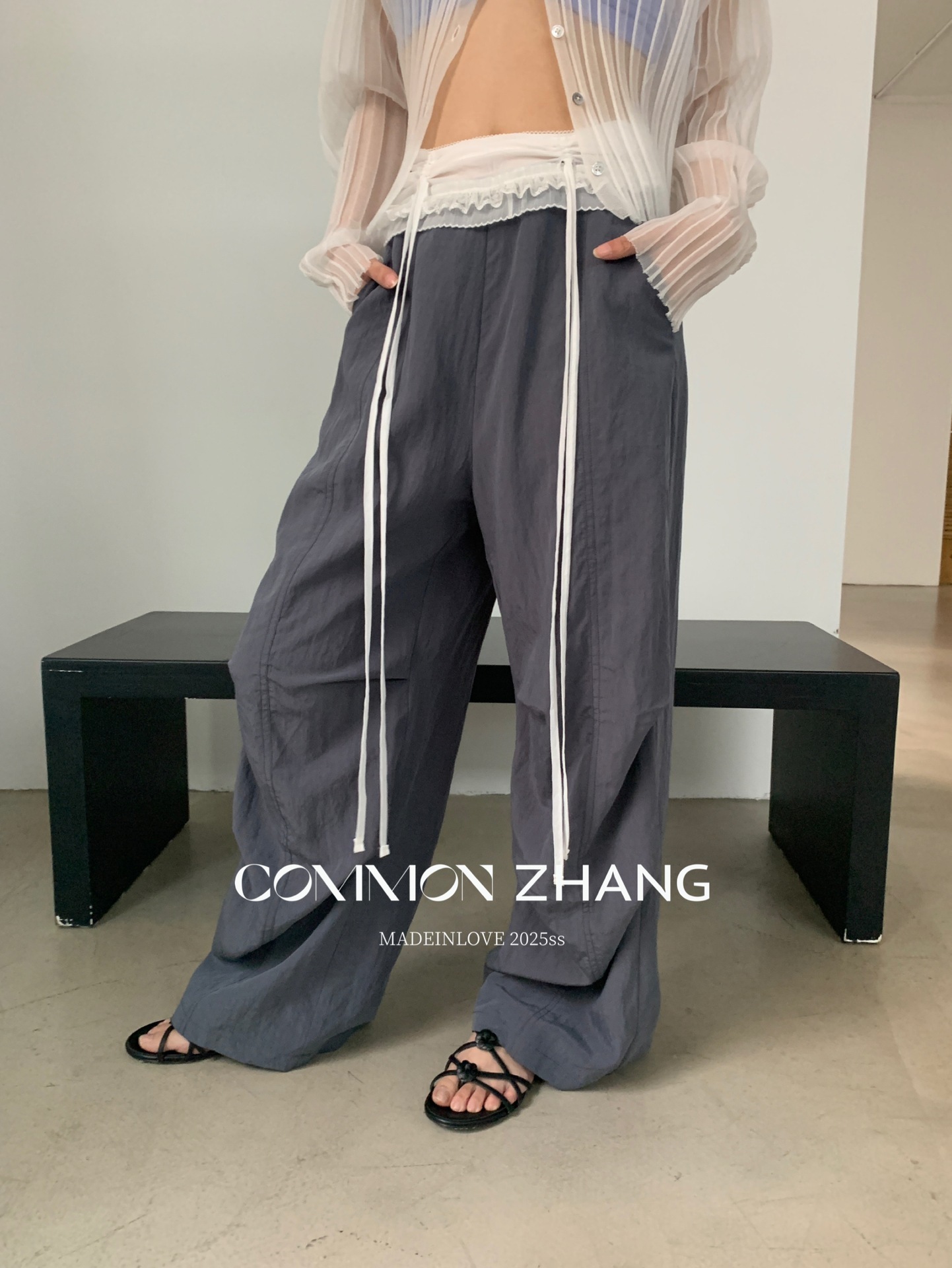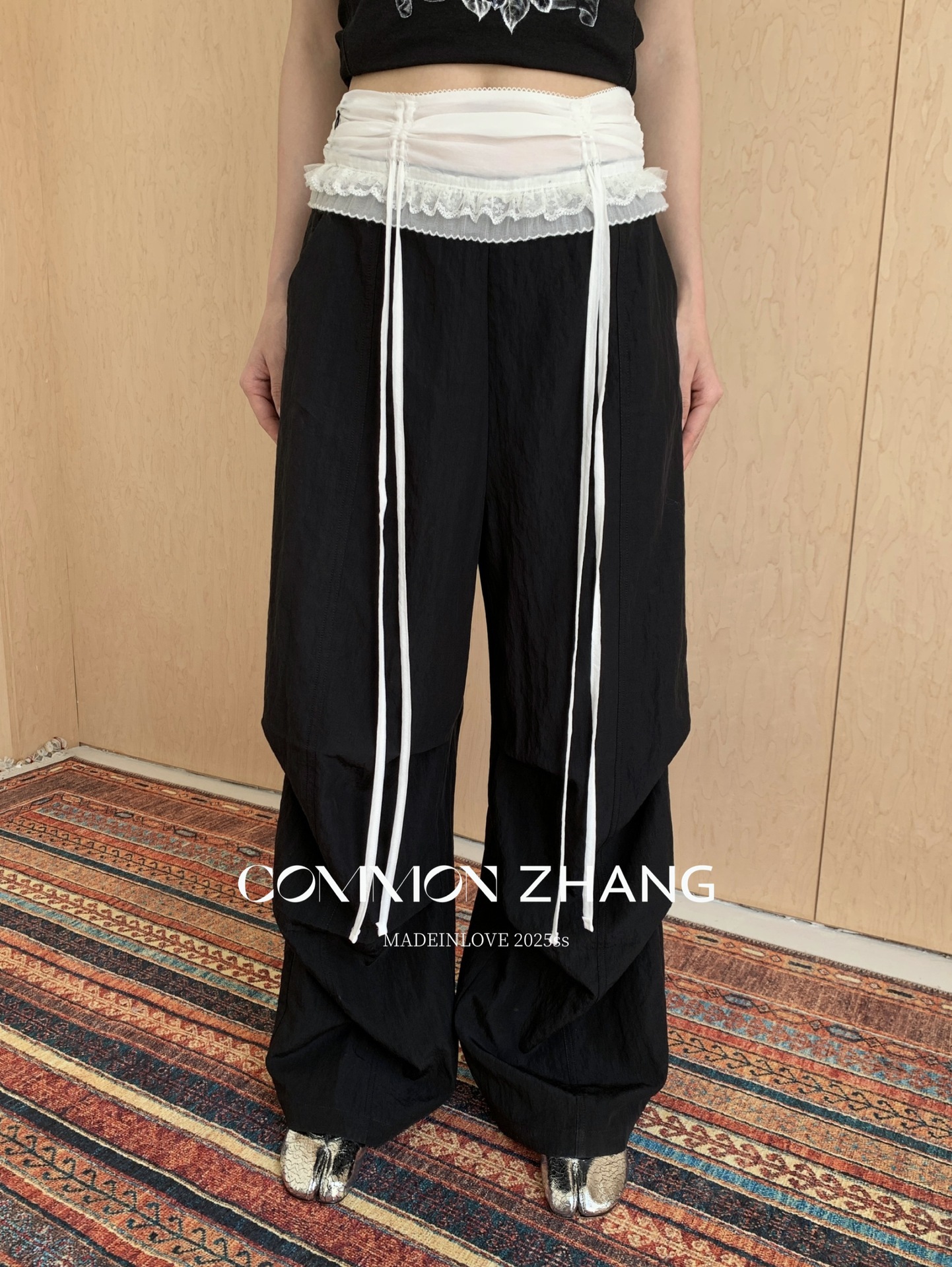 *o-ha-you*【FCZCB201813】夏季韓版蕾絲繫帶低腰闊腿垂感拖地天絲質感休閒褲-2色