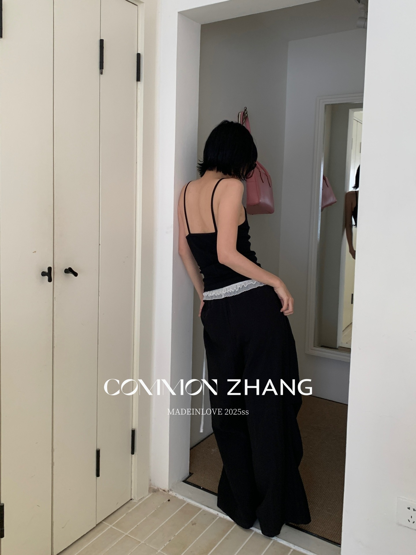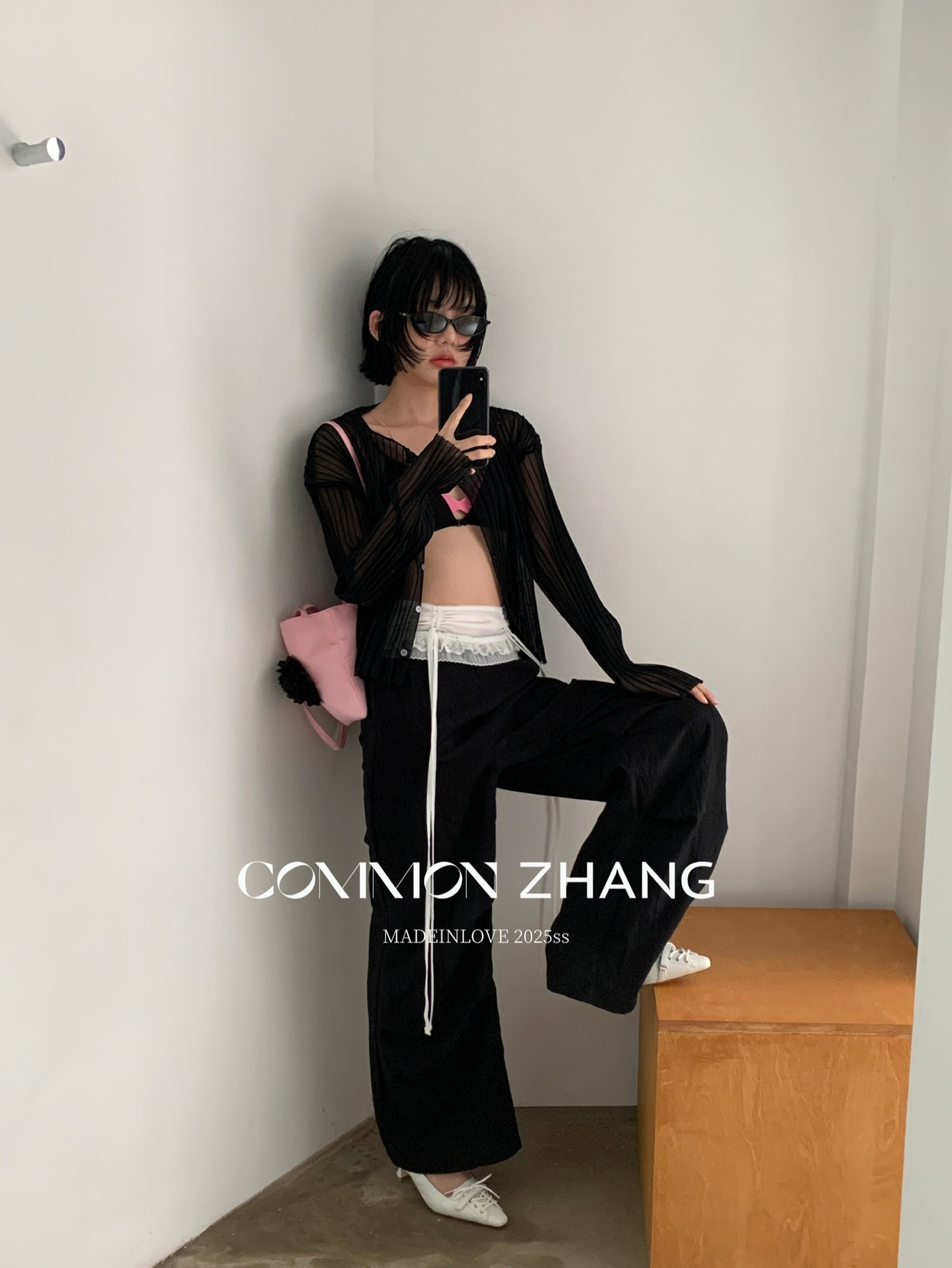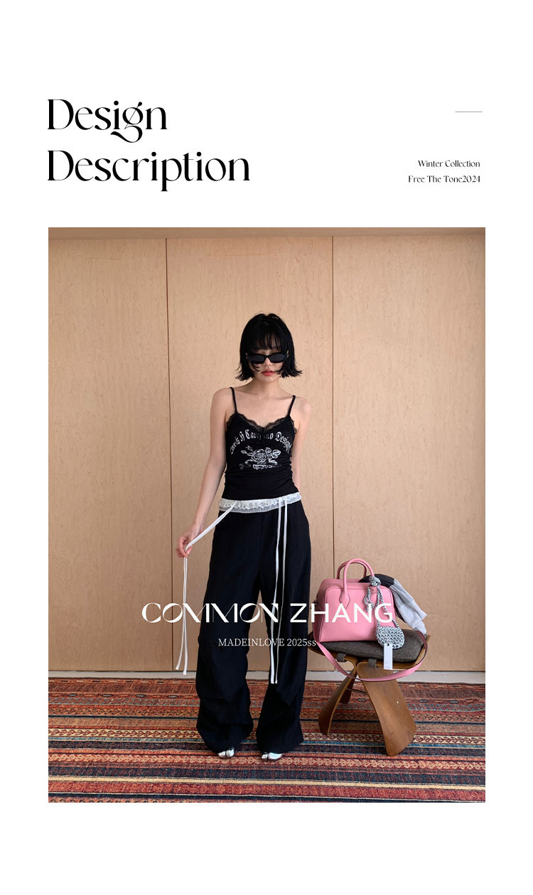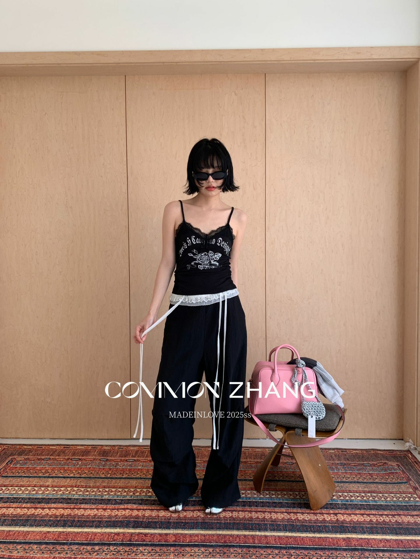 *o-ha-you*【FCZCB201813】夏季韓版蕾絲繫帶低腰闊腿垂感拖地天絲質感休閒褲-2色