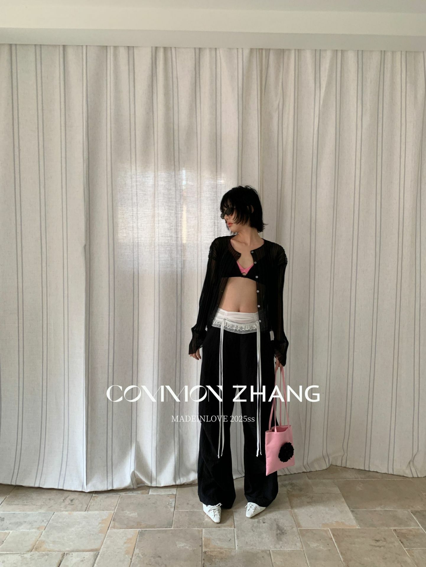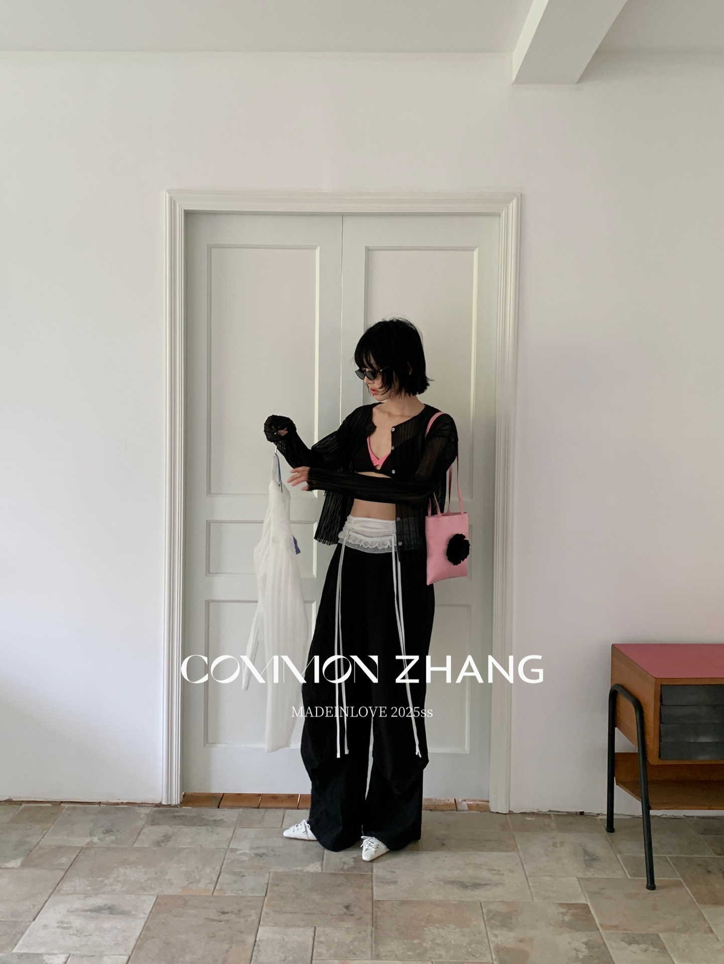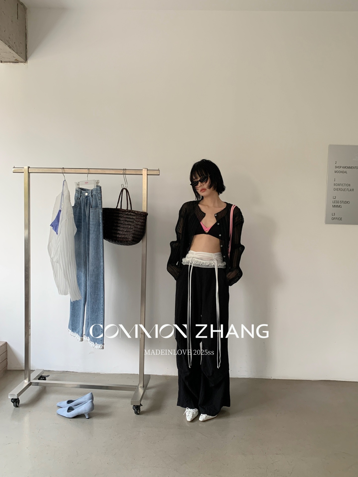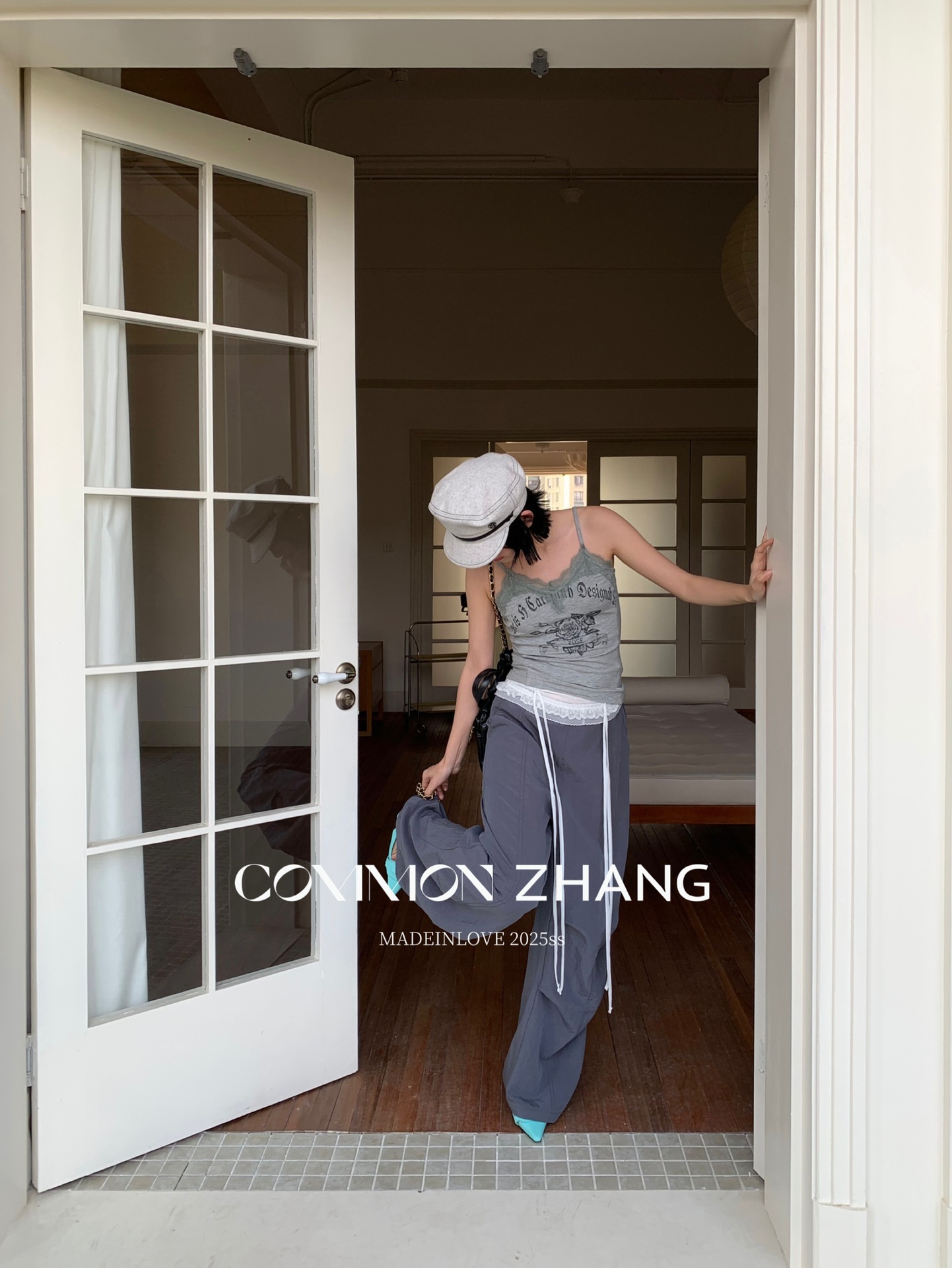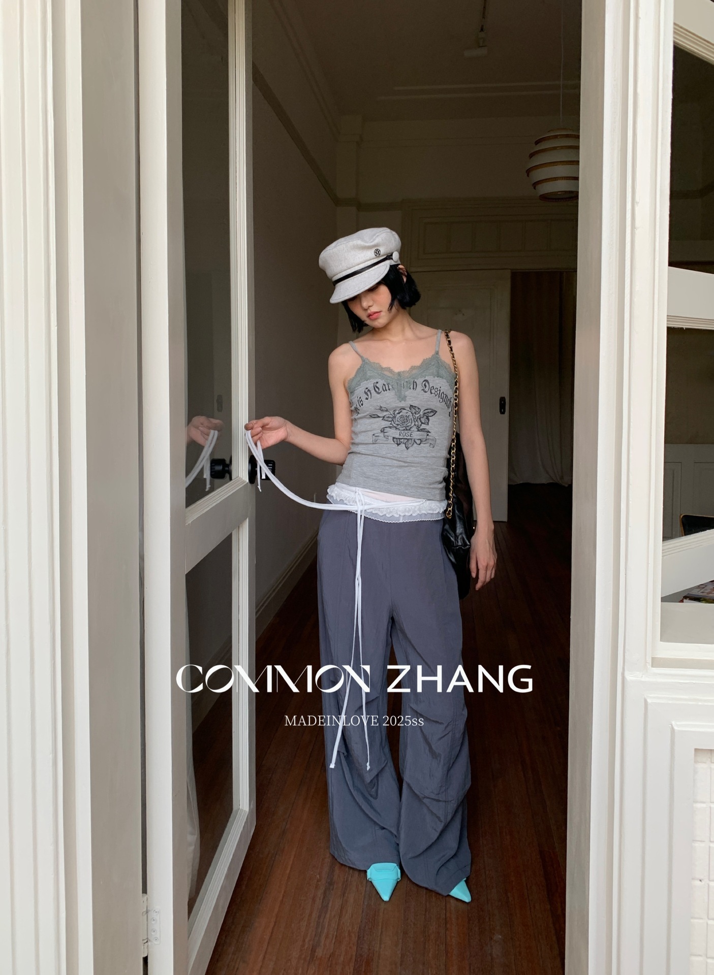 *o-ha-you*【FCZCB201813】夏季韓版蕾絲繫帶低腰闊腿垂感拖地天絲質感休閒褲-2色