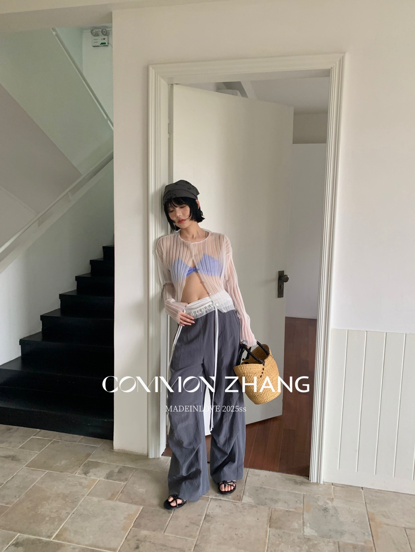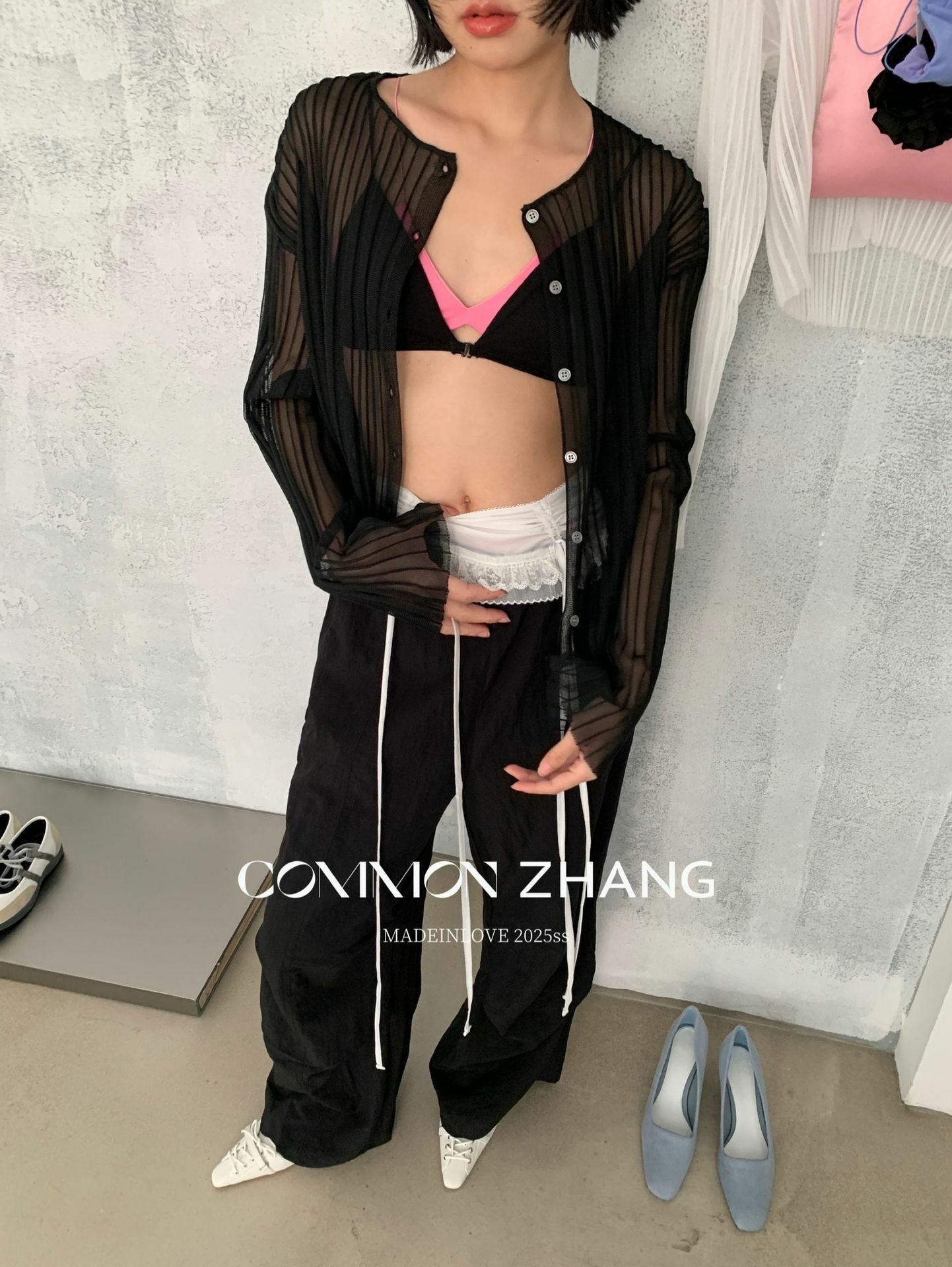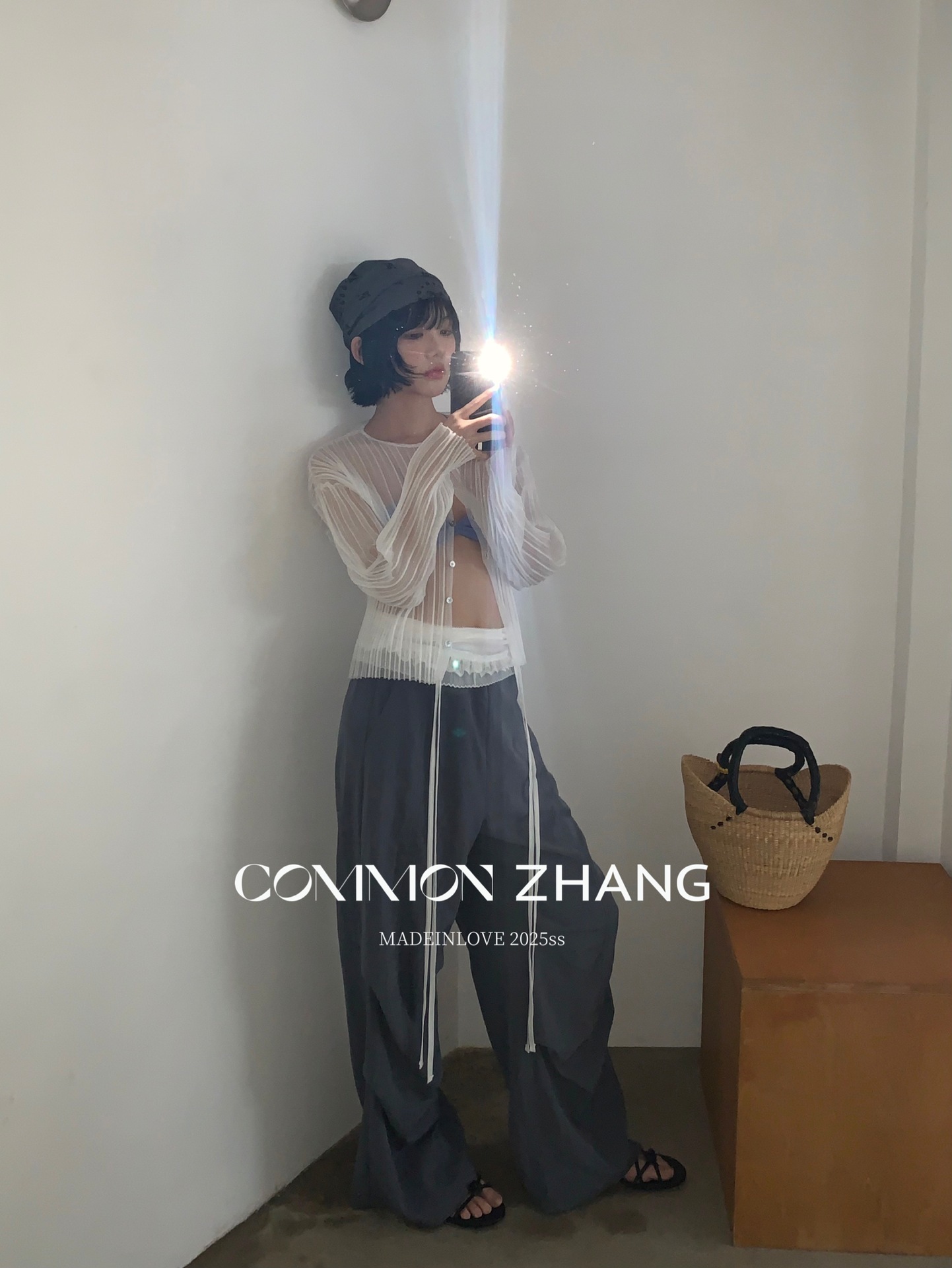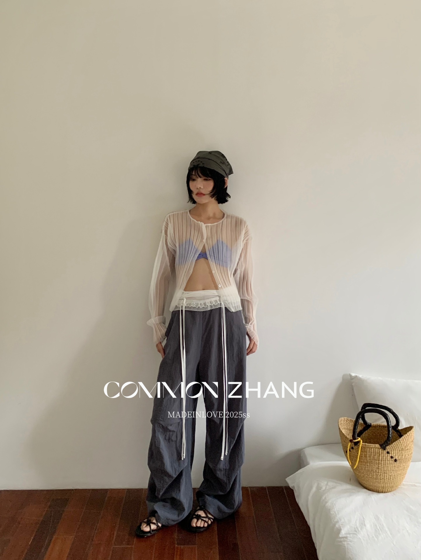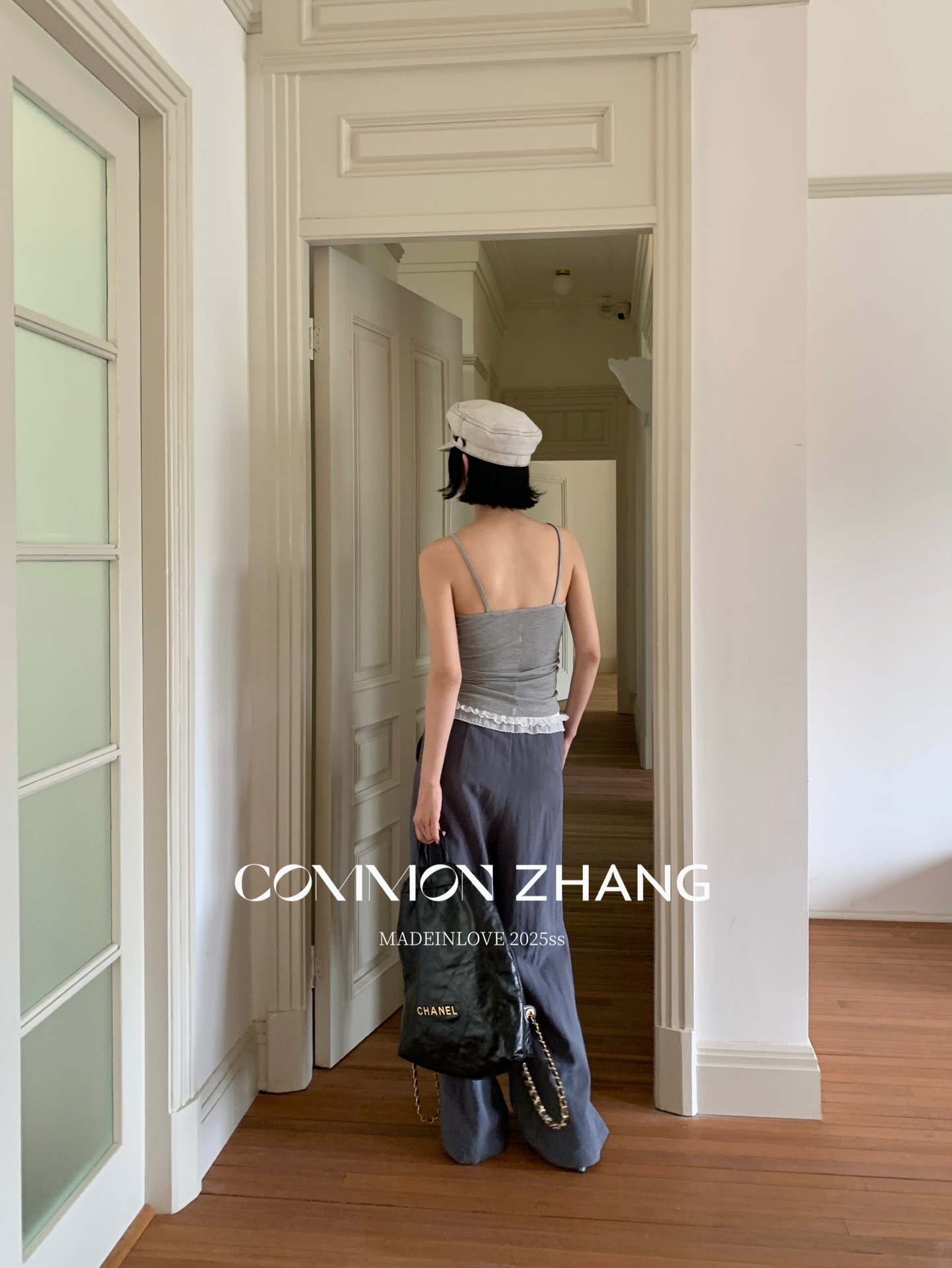 *o-ha-you*【FCZCB201813】夏季韓版蕾絲繫帶低腰闊腿垂感拖地天絲質感休閒褲-2色