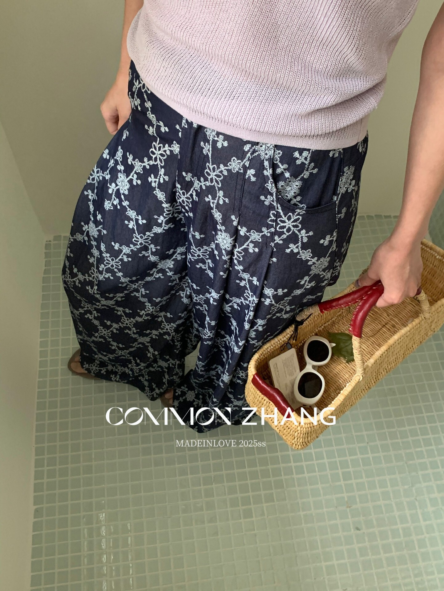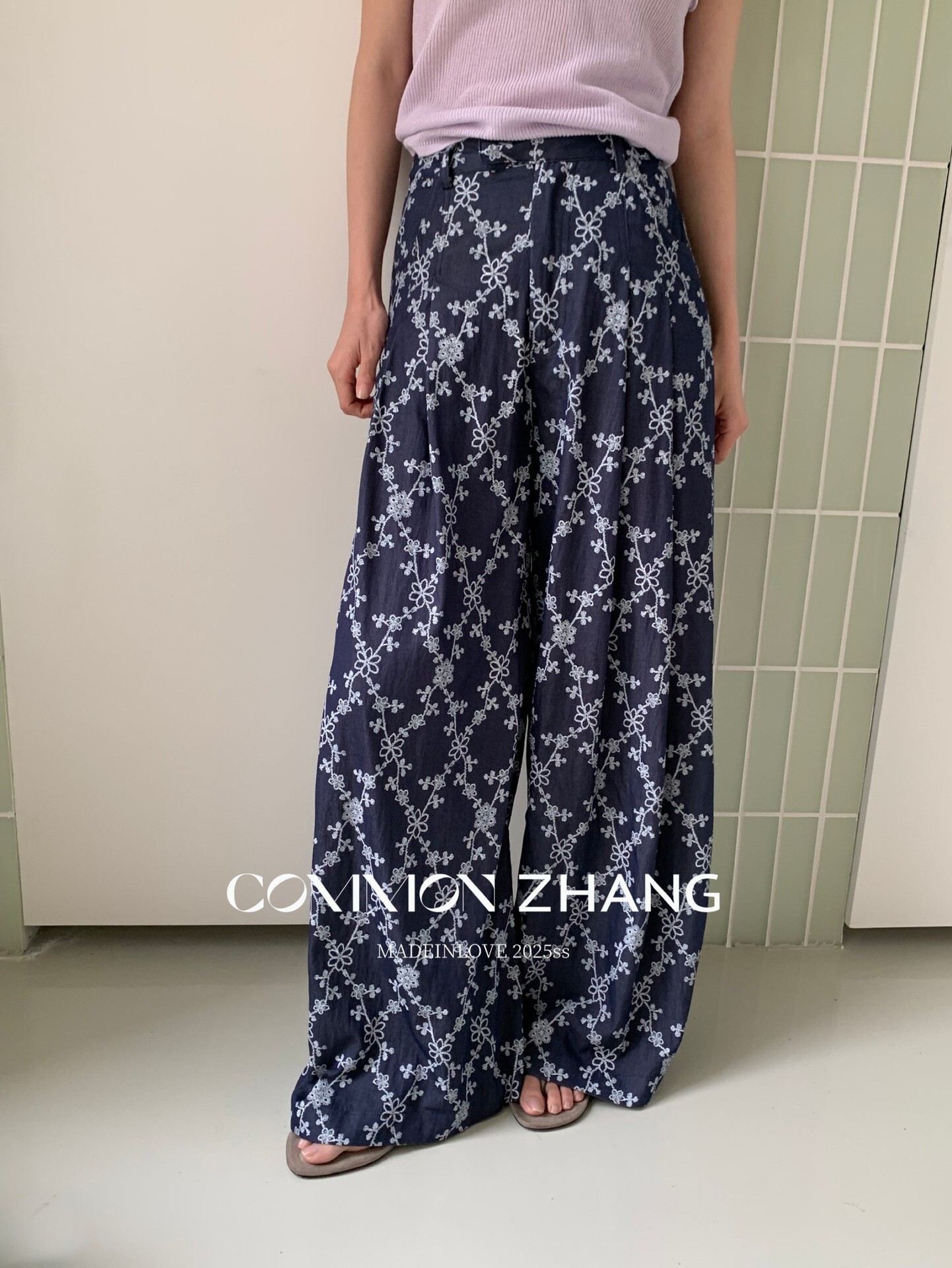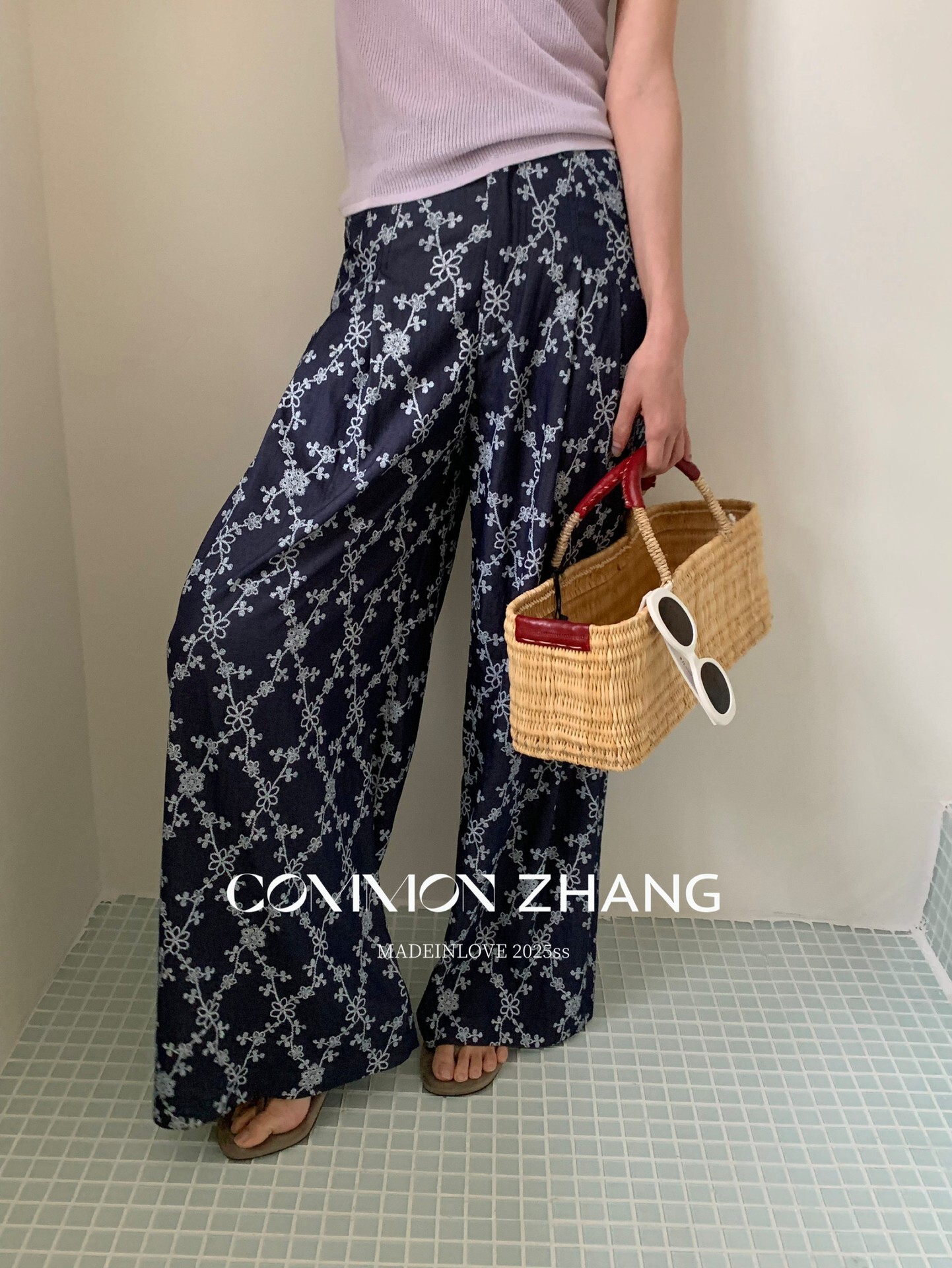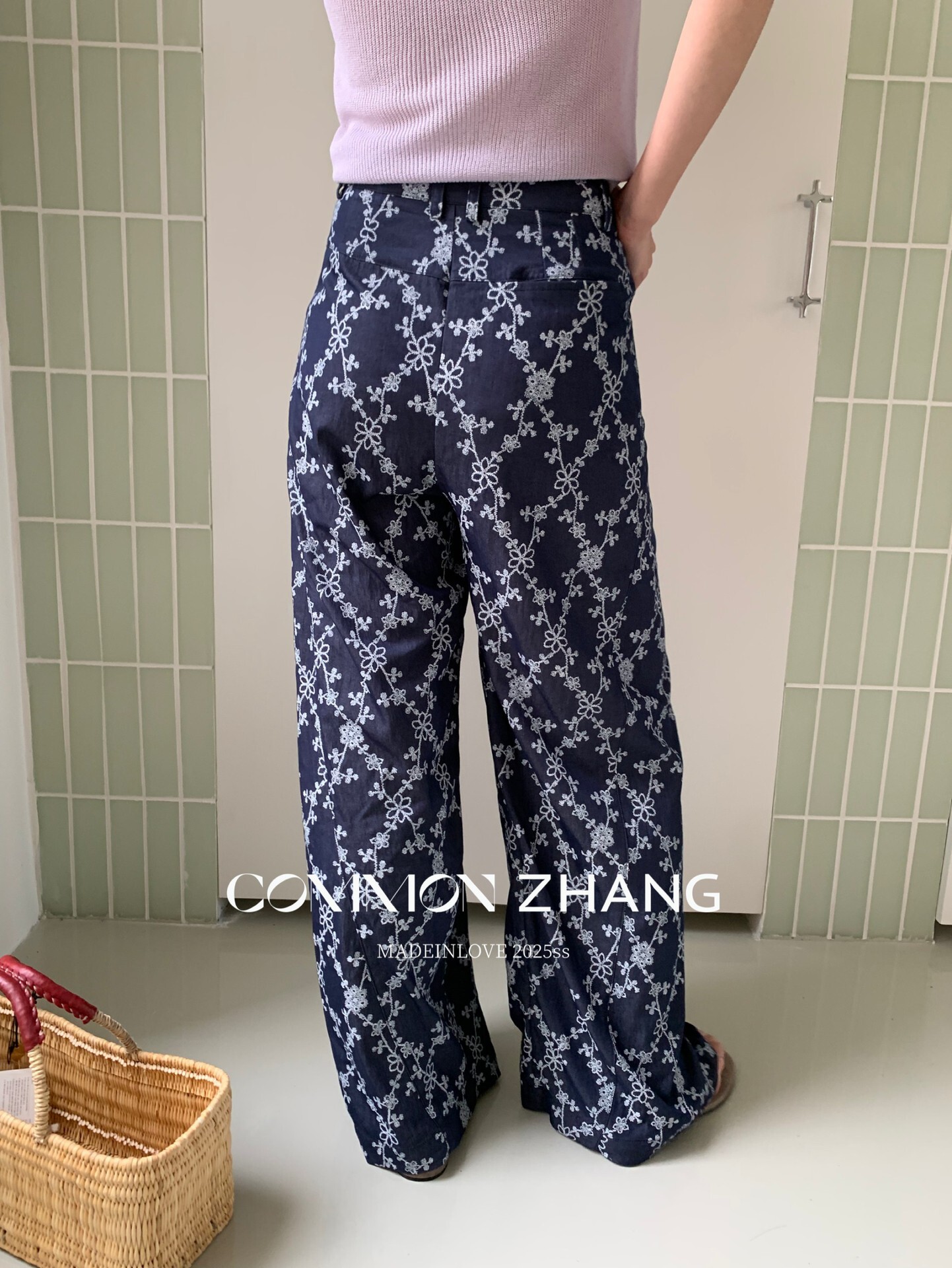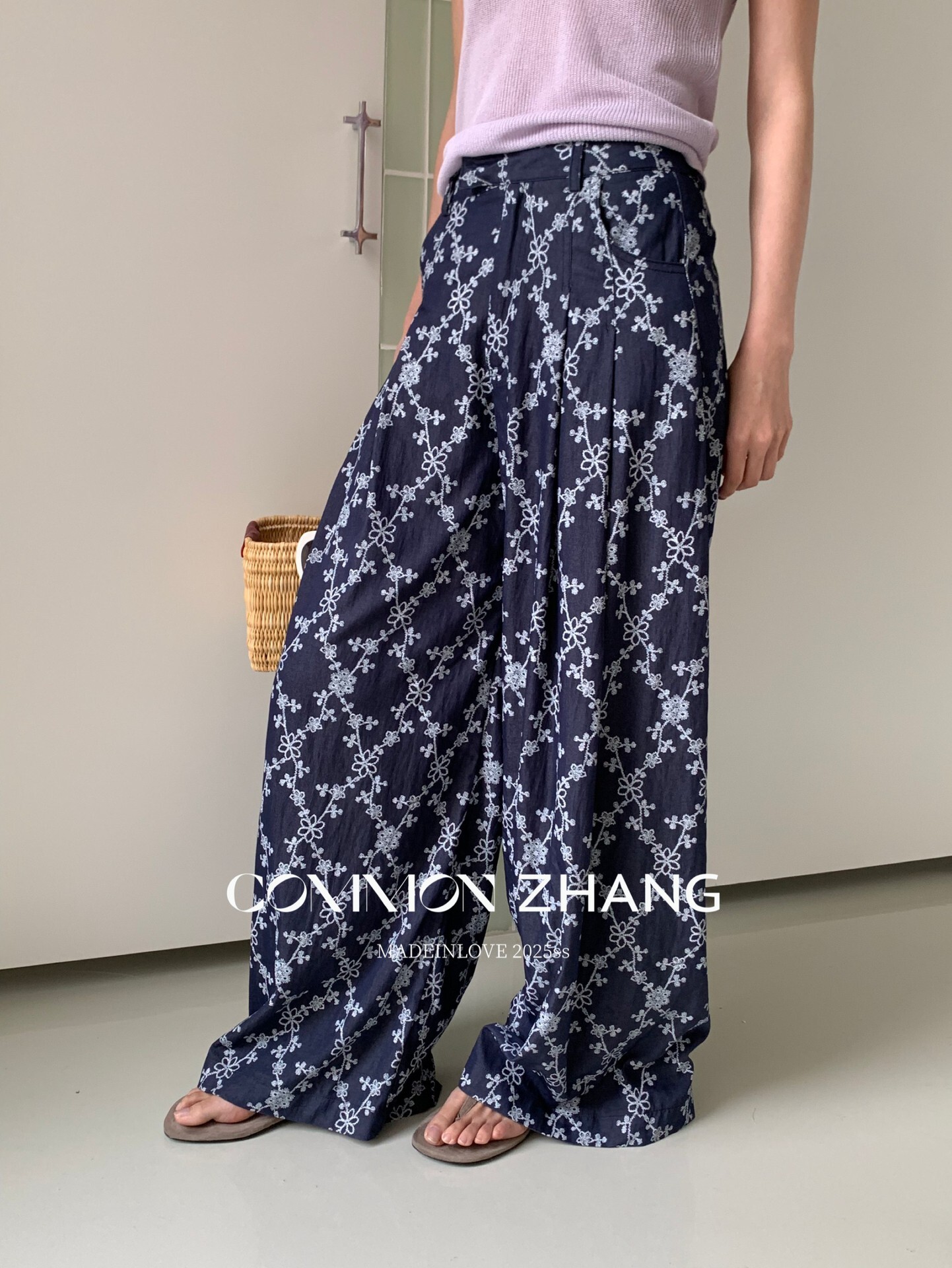 *o-ha-you*【FCZCB201995】夏季韓版時髦個性繡花質感百搭垂感闊腿拖地休閒褲-2色