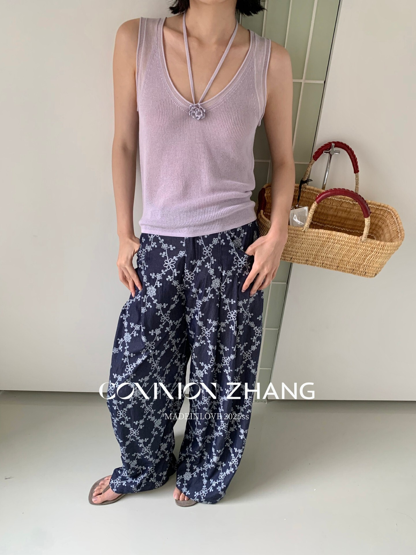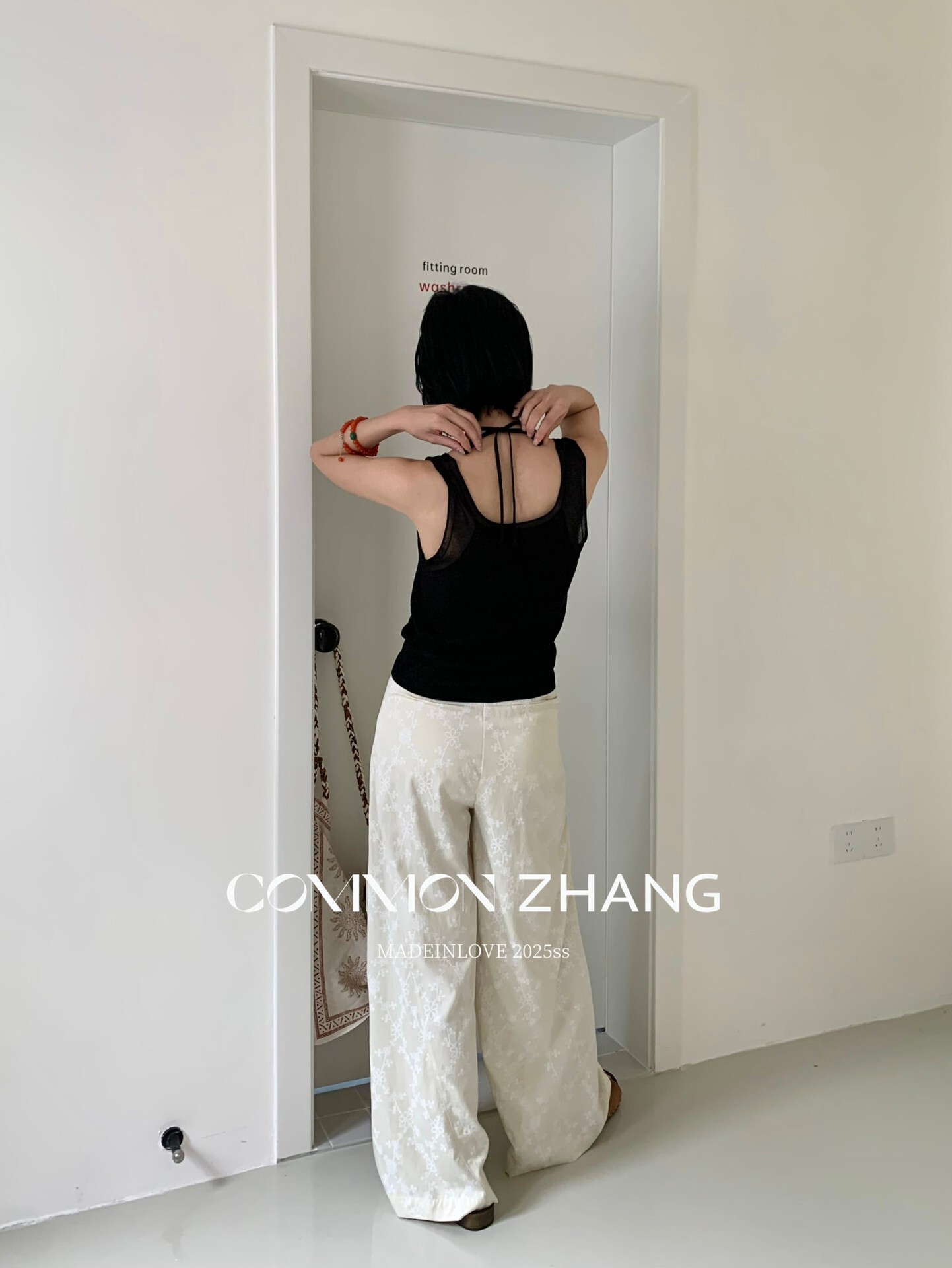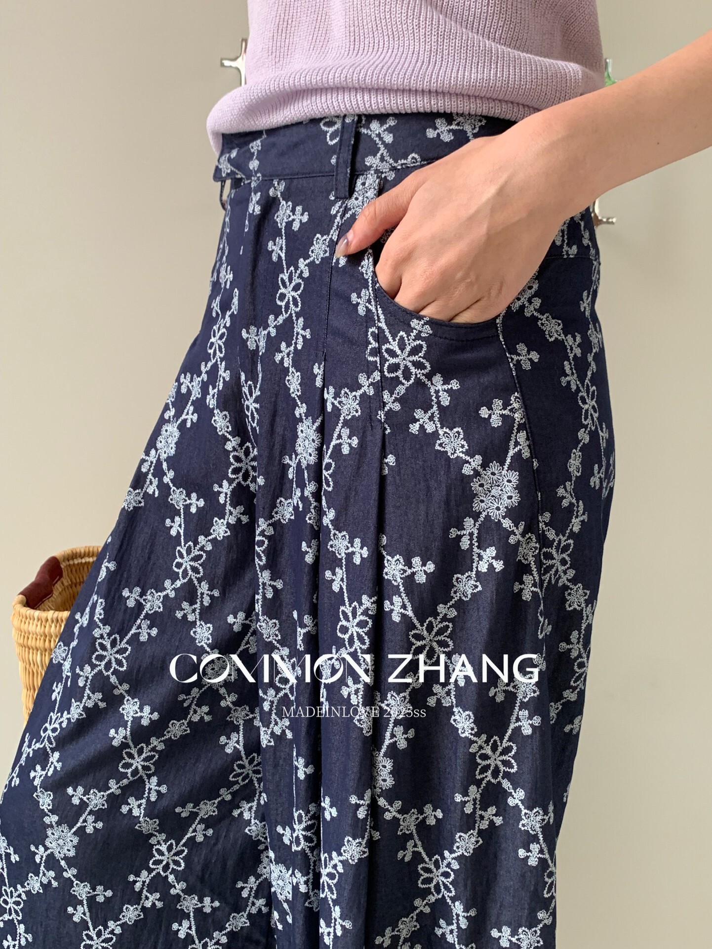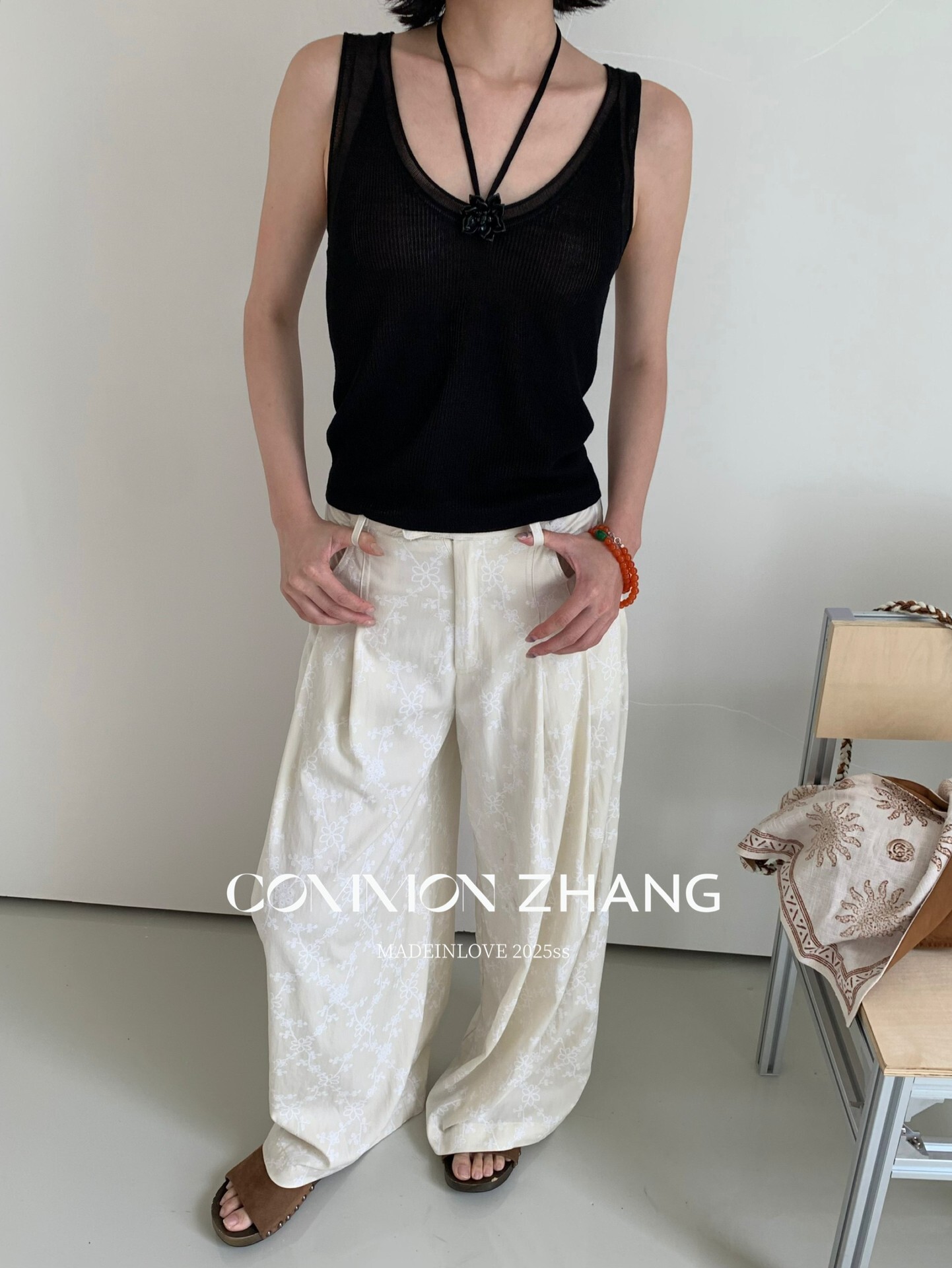 *o-ha-you*【FCZCB201995】夏季韓版時髦個性繡花質感百搭垂感闊腿拖地休閒褲-2色
