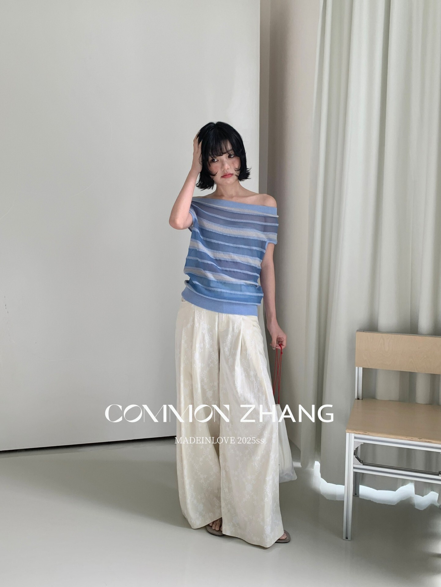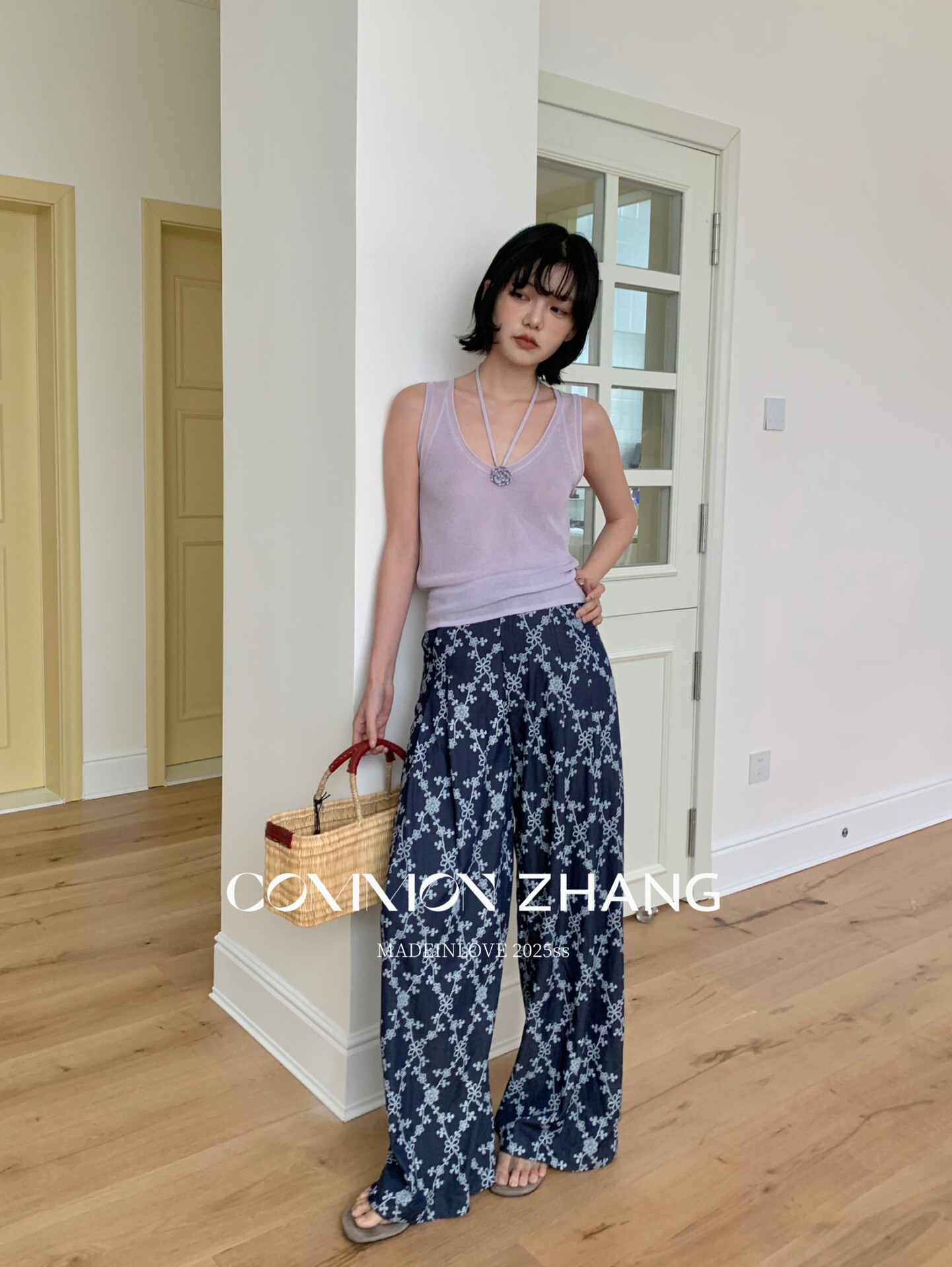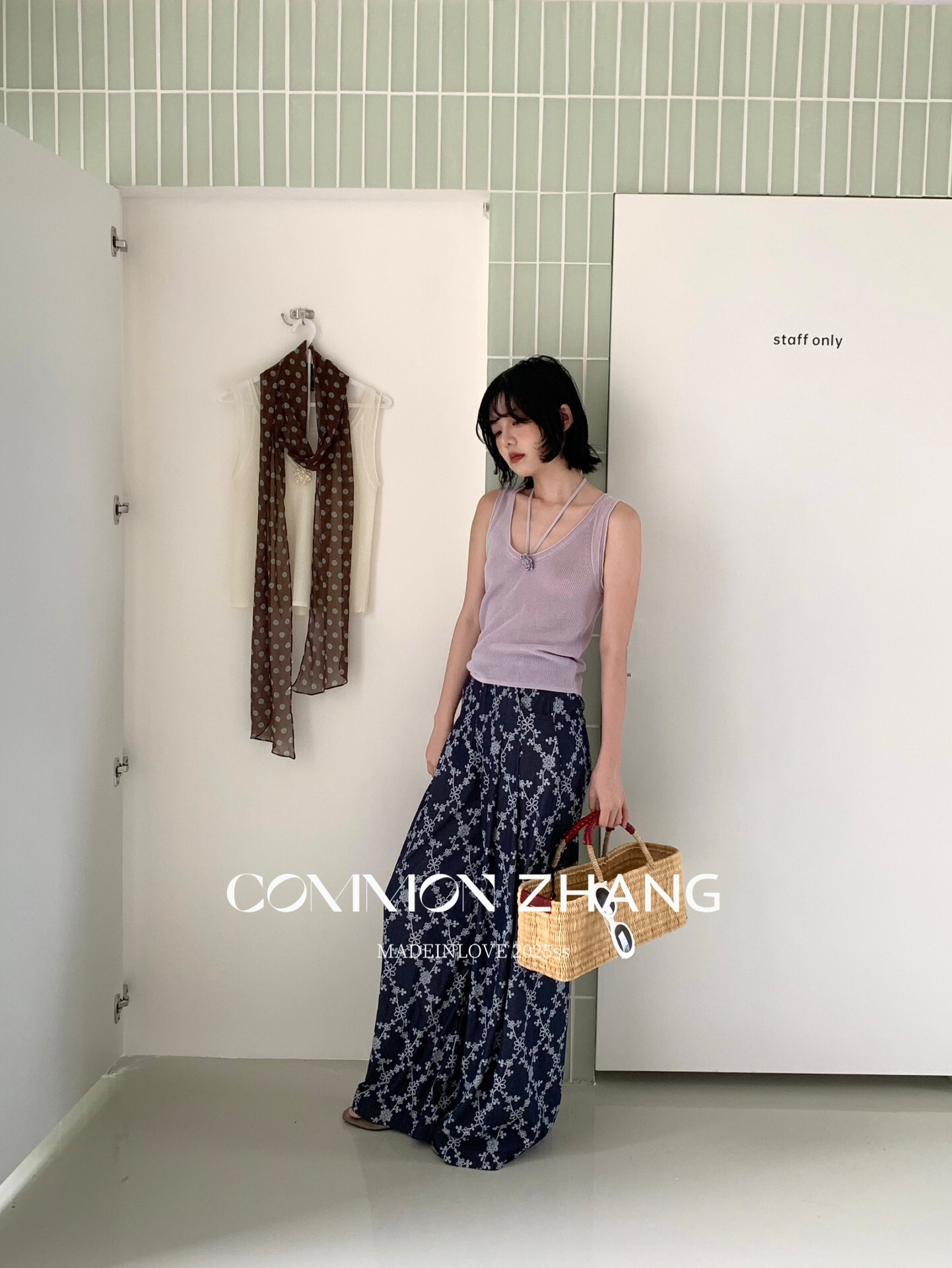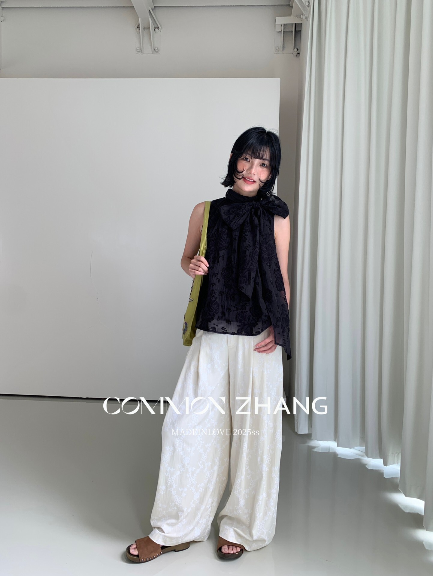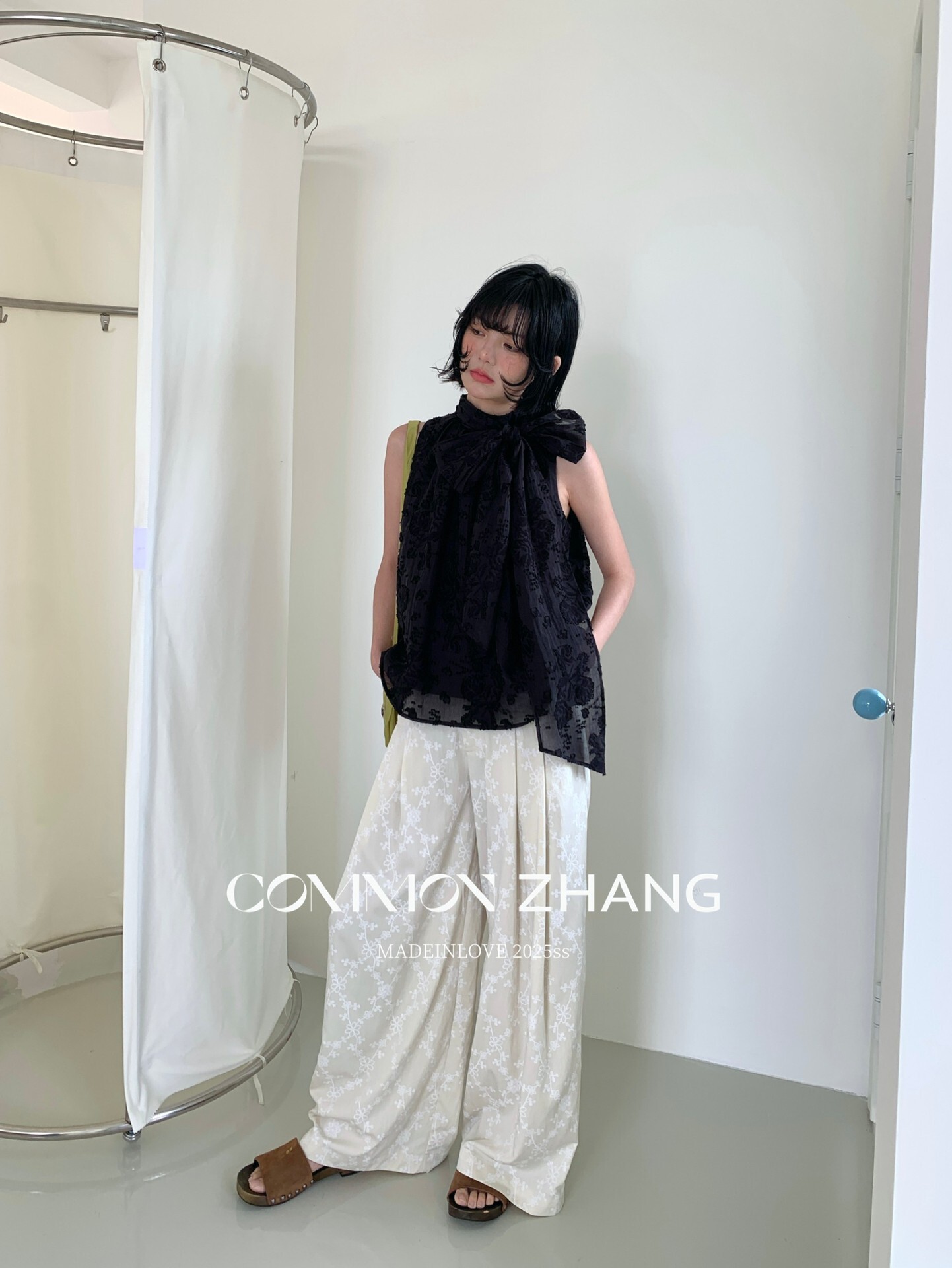 *o-ha-you*【FCZCB201995】夏季韓版時髦個性繡花質感百搭垂感闊腿拖地休閒褲-2色