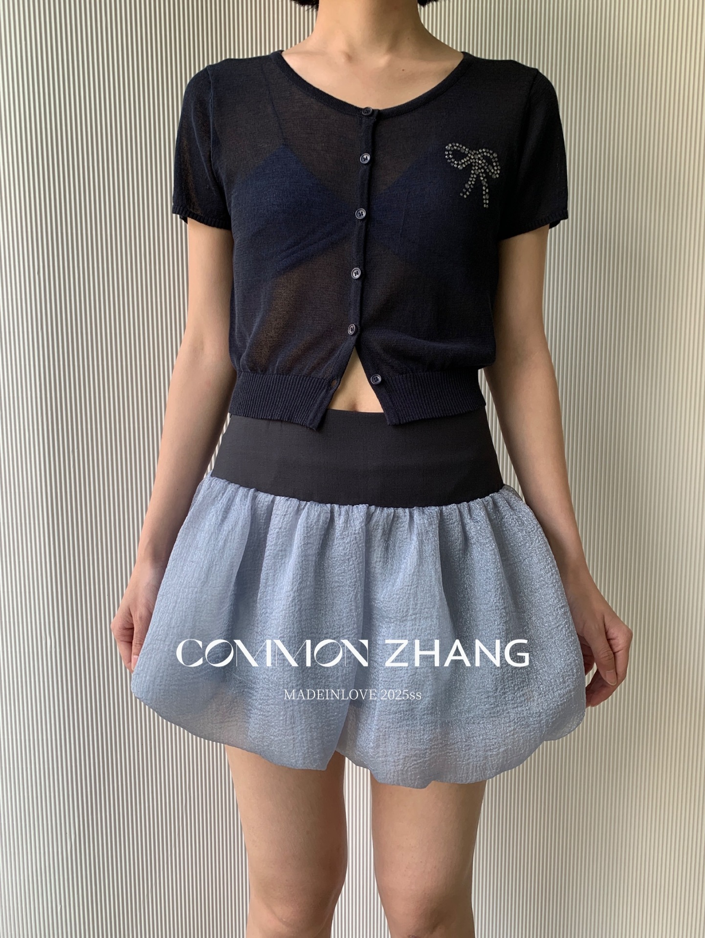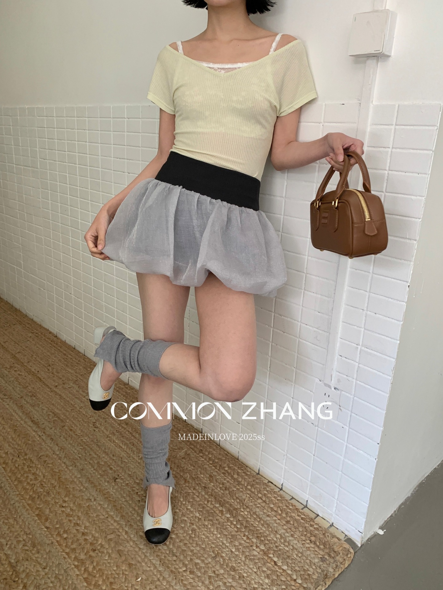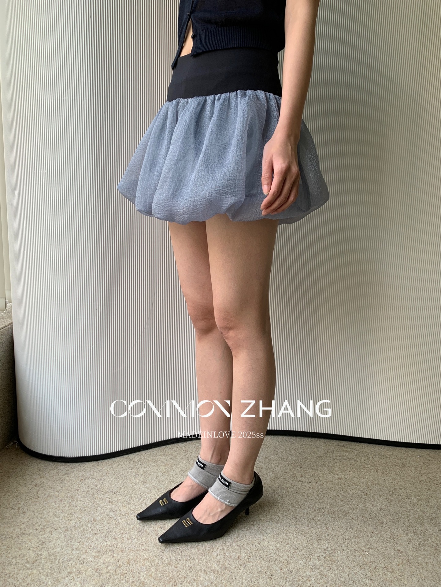 *o-ha-you*【FCZCB202736】夏季miu系減齡少女感拼色束帶低腰泡泡蓬蓬短裙-3色-如有需要請先諮詢