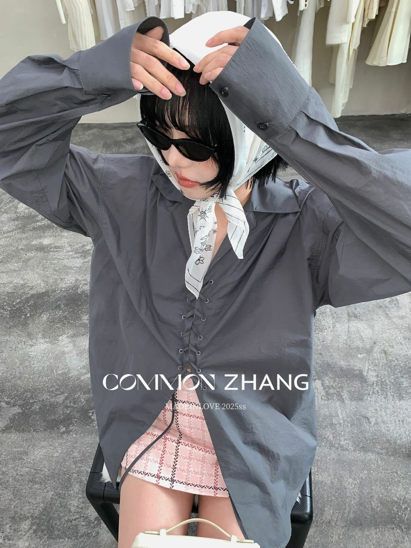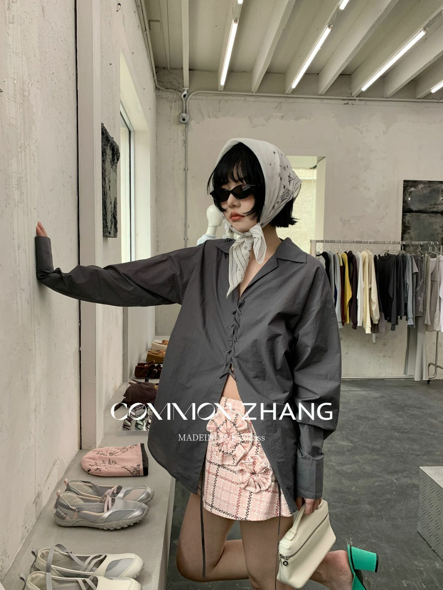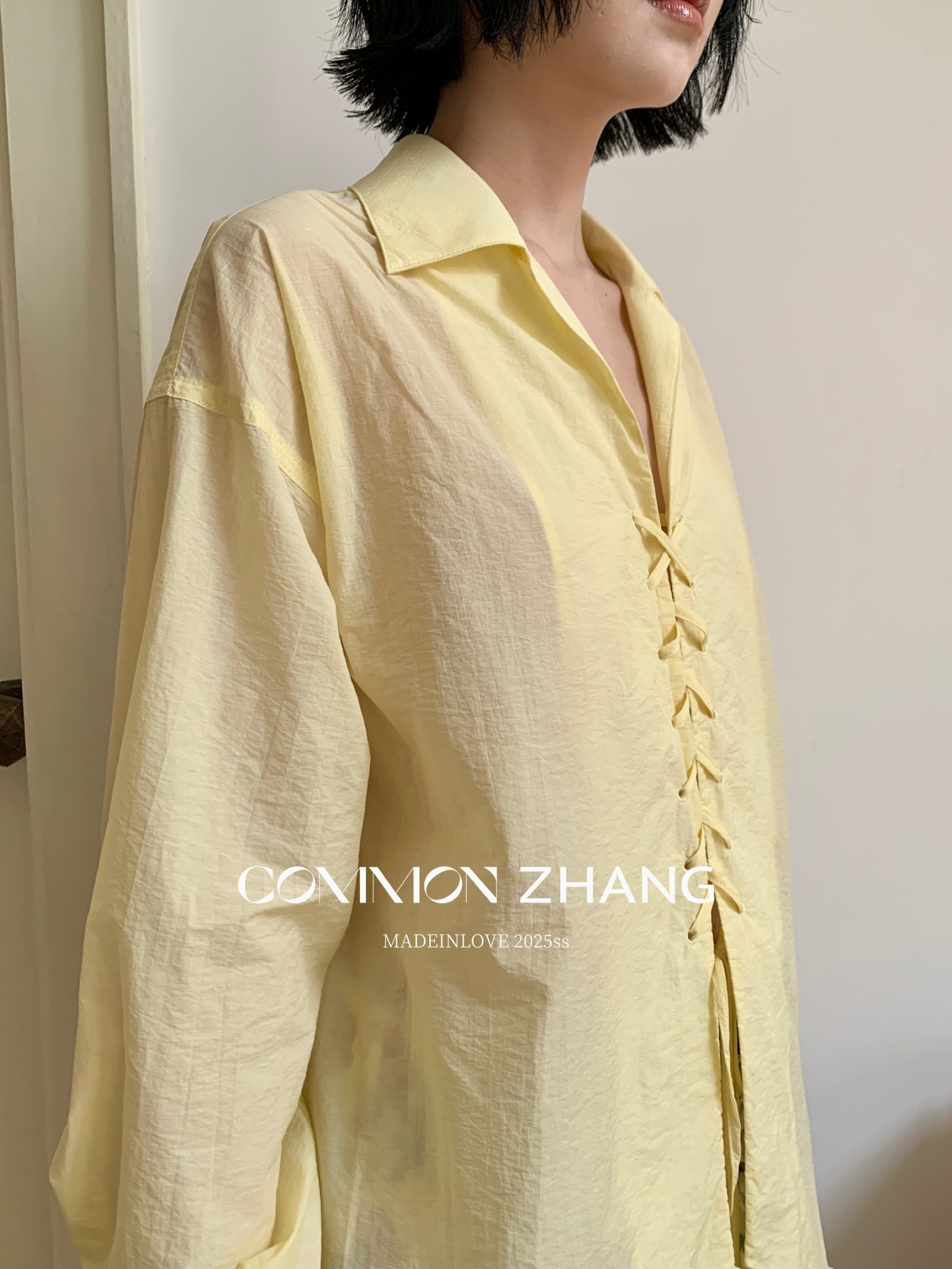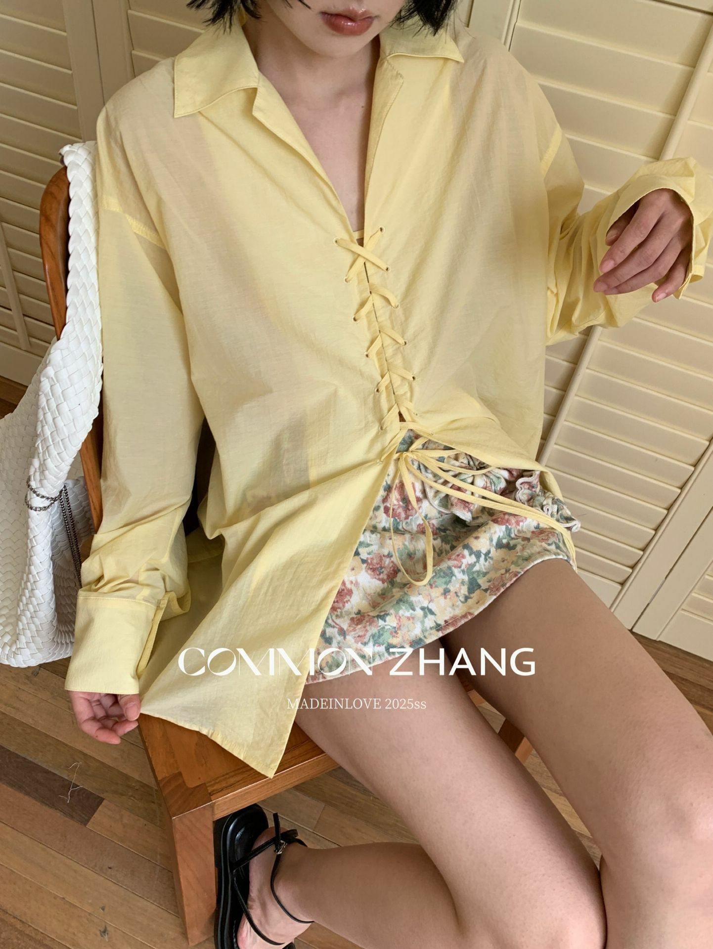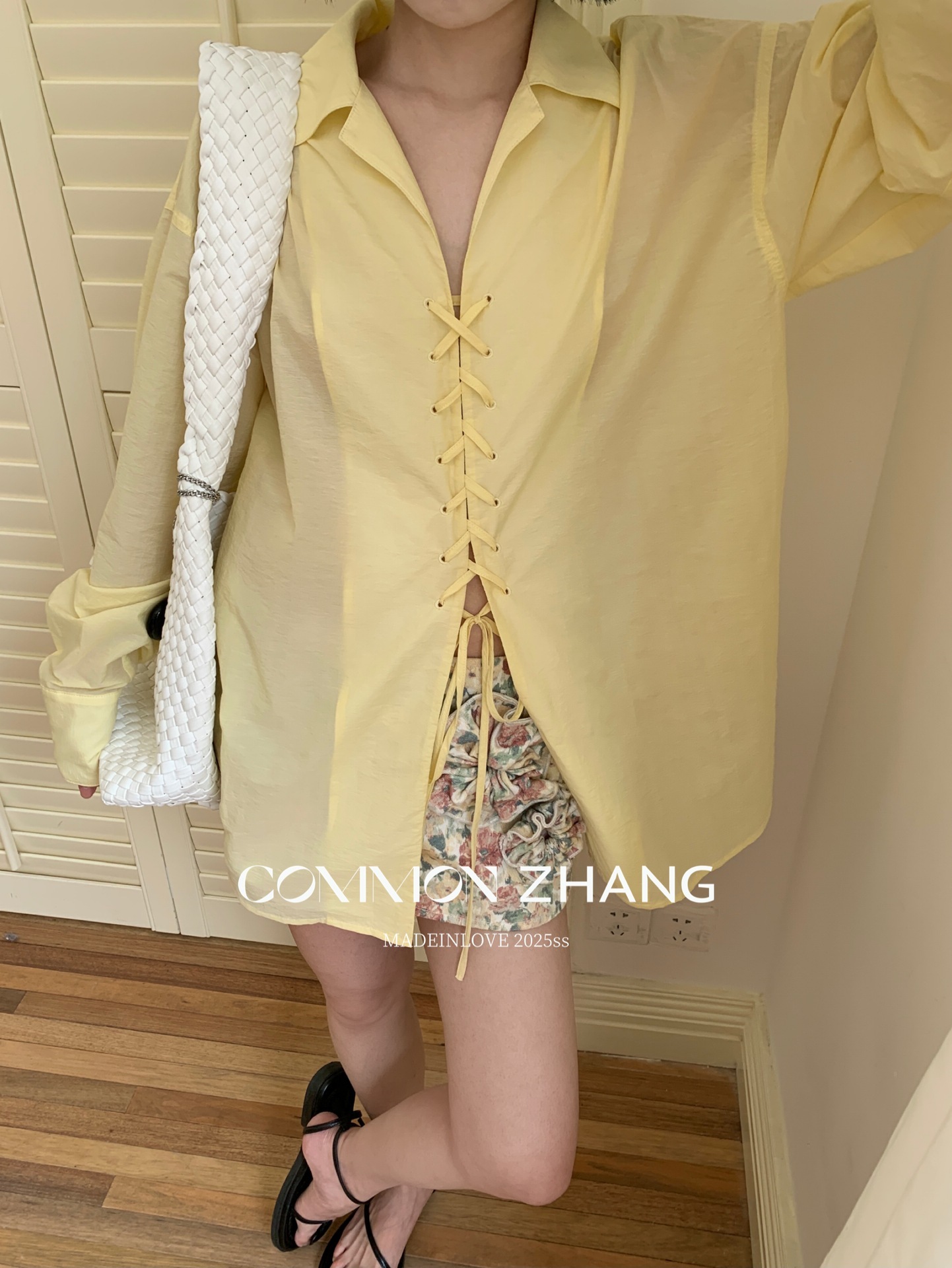 *o-ha-you*【FCZCB203588】夏季韓版簡約都市通勤繫帶開襟衫純色百搭微透襯衫-3色