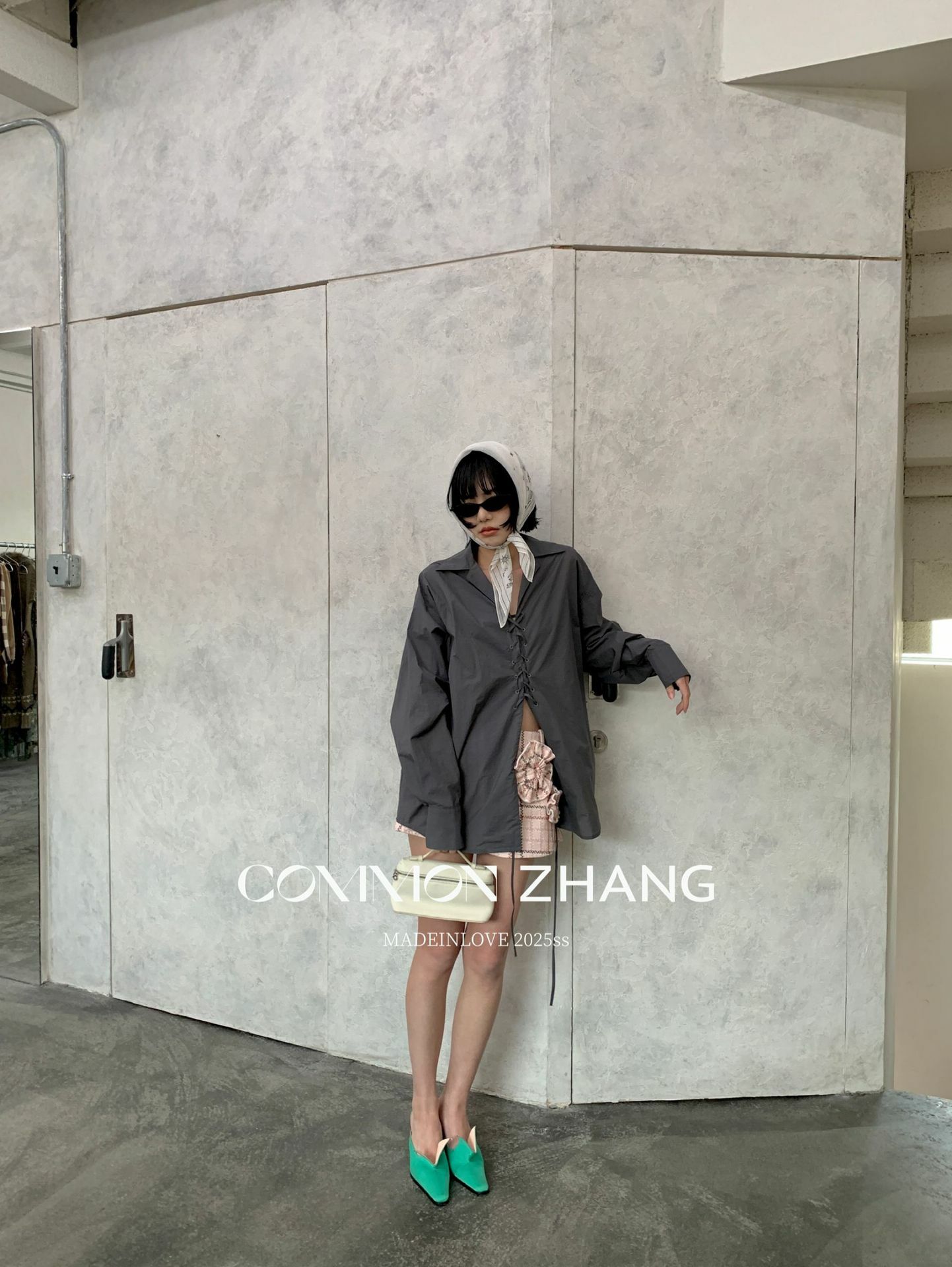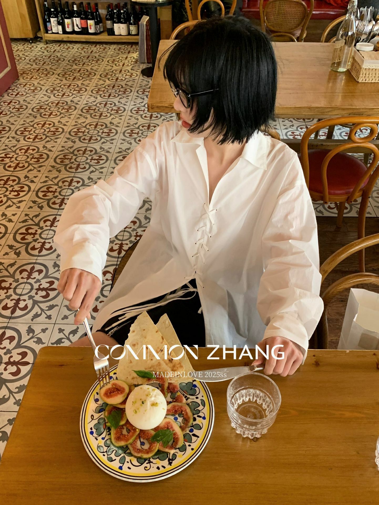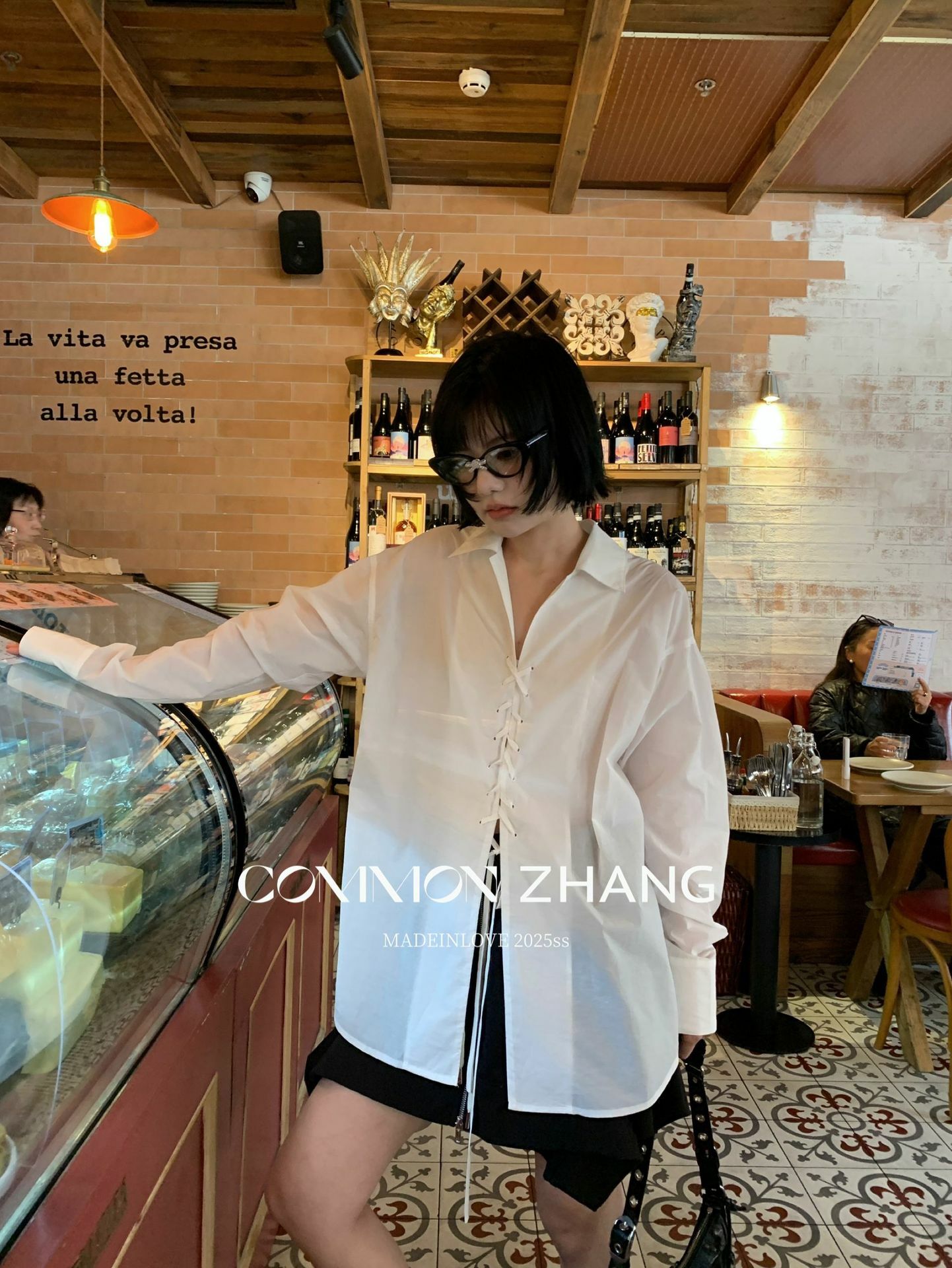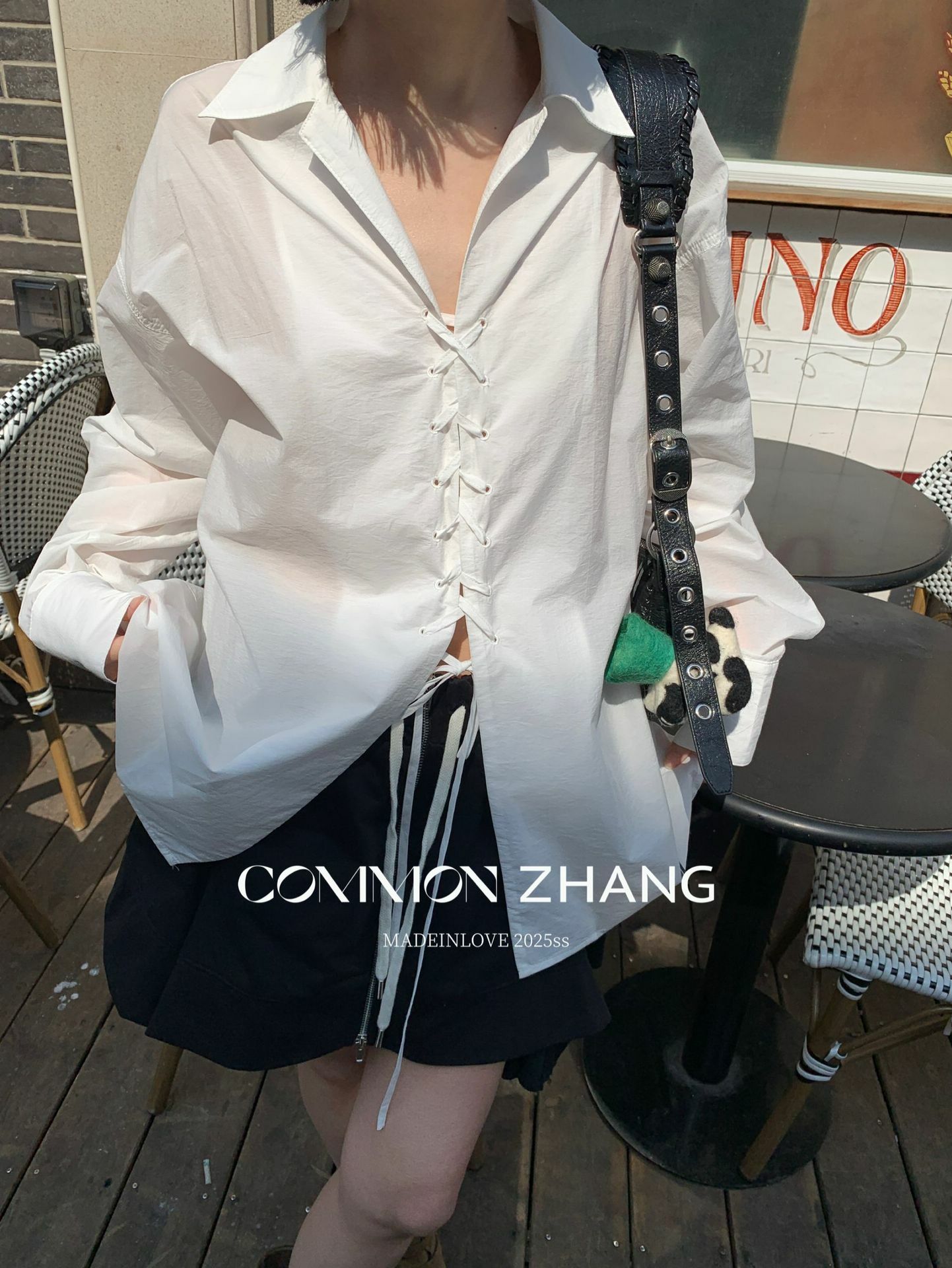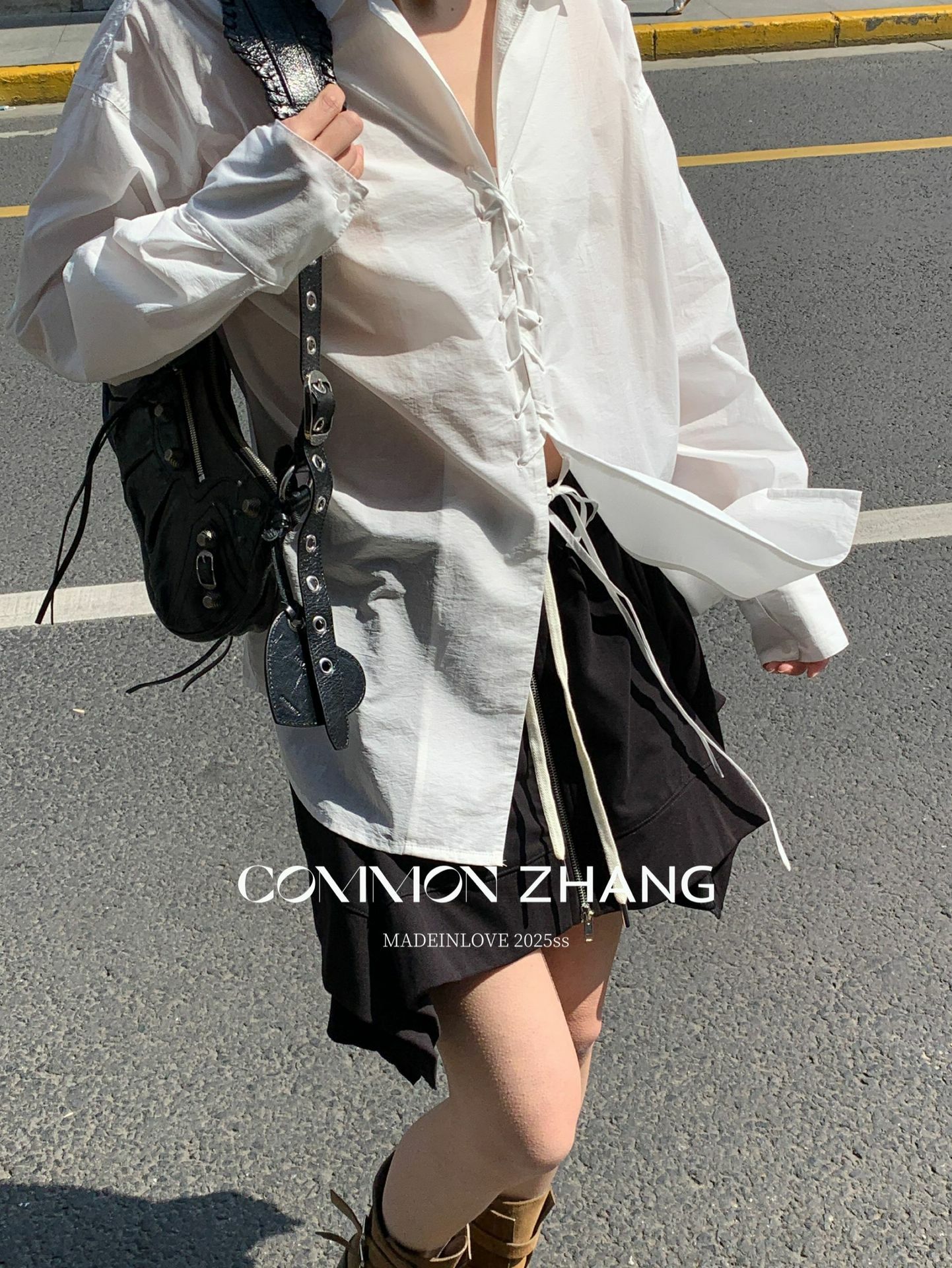 *o-ha-you*【FCZCB203588】夏季韓版簡約都市通勤繫帶開襟衫純色百搭微透襯衫-3色