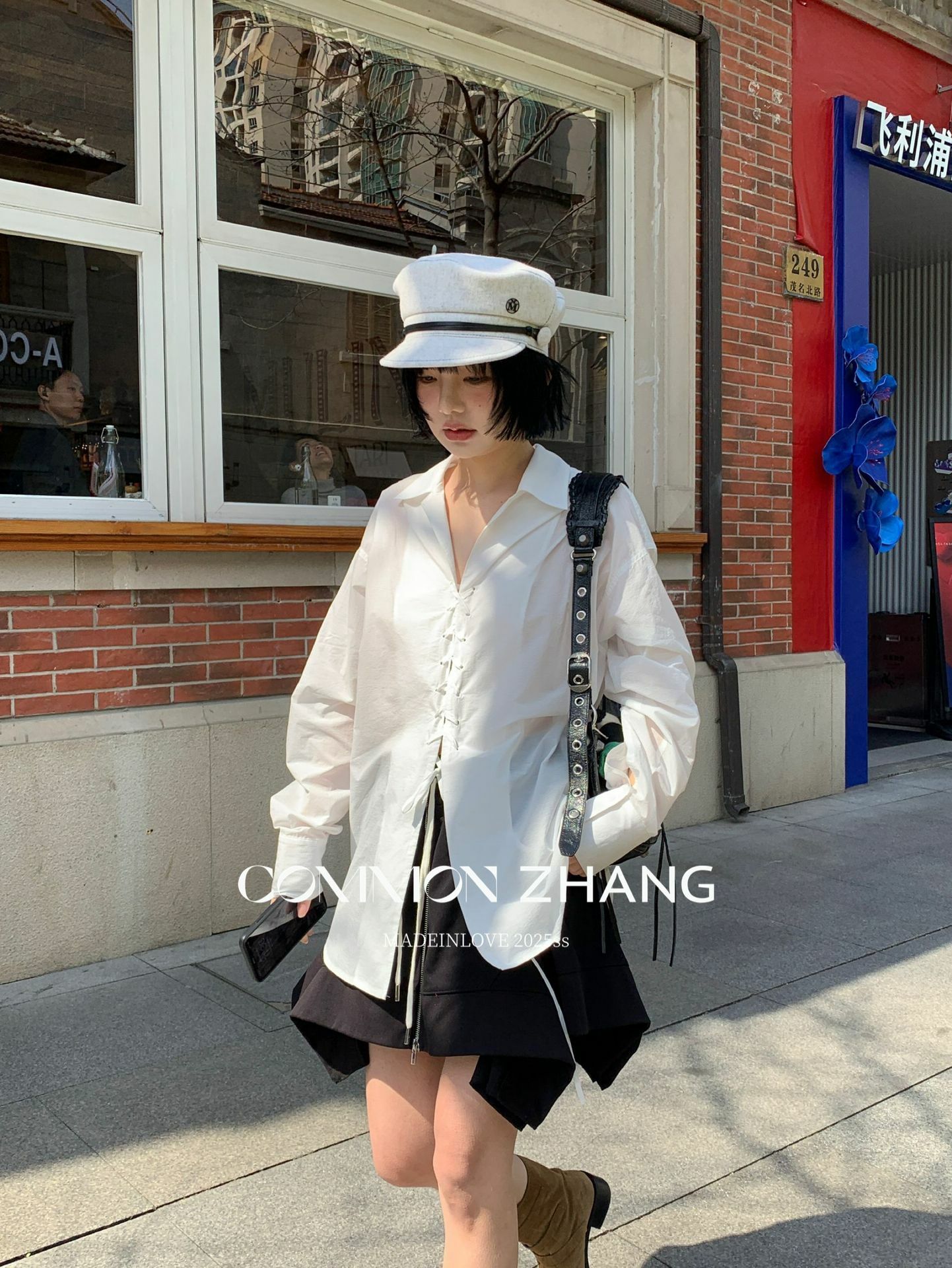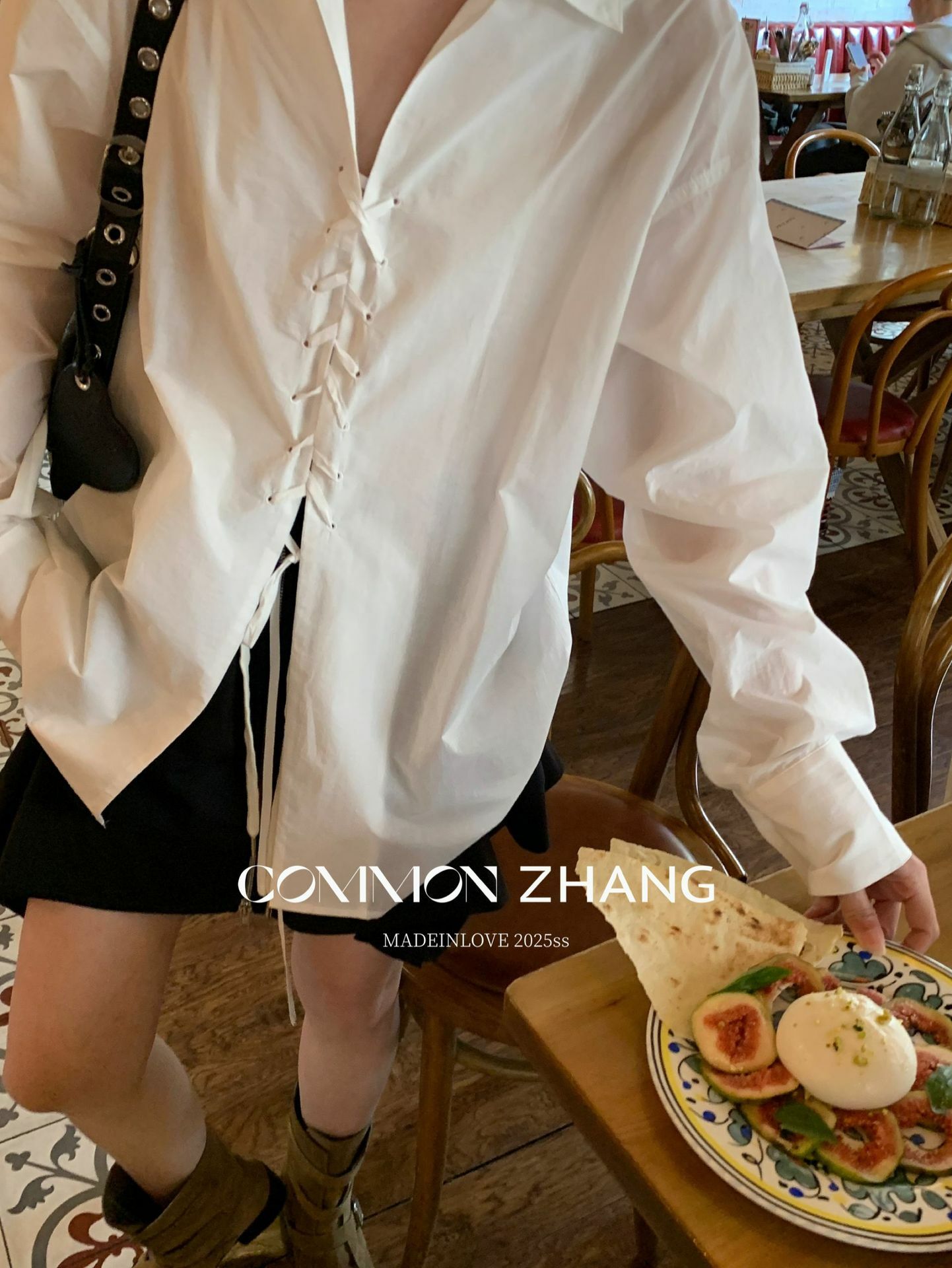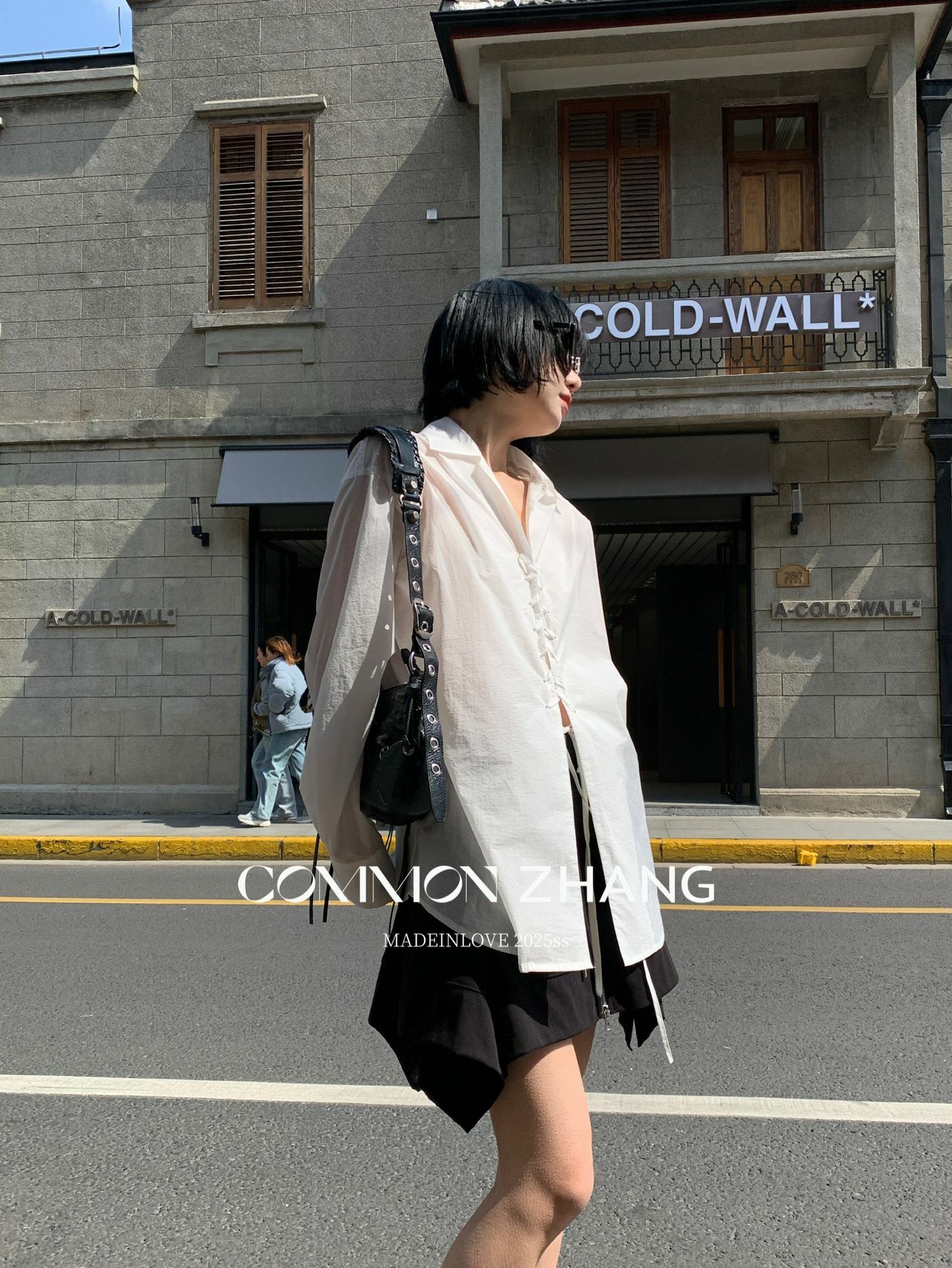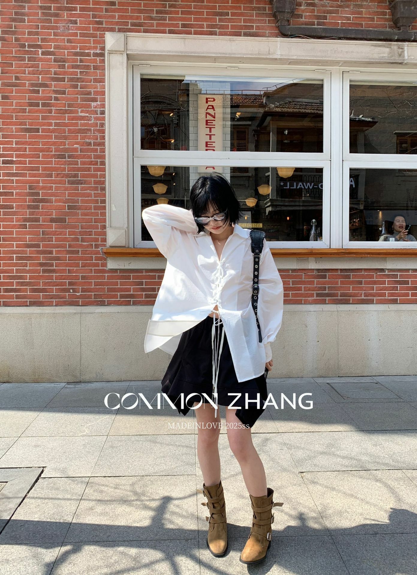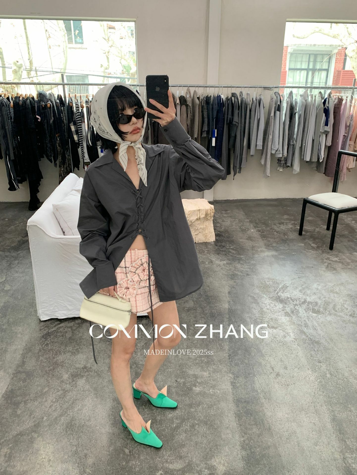 *o-ha-you*【FCZCB203588】夏季韓版簡約都市通勤繫帶開襟衫純色百搭微透襯衫-3色