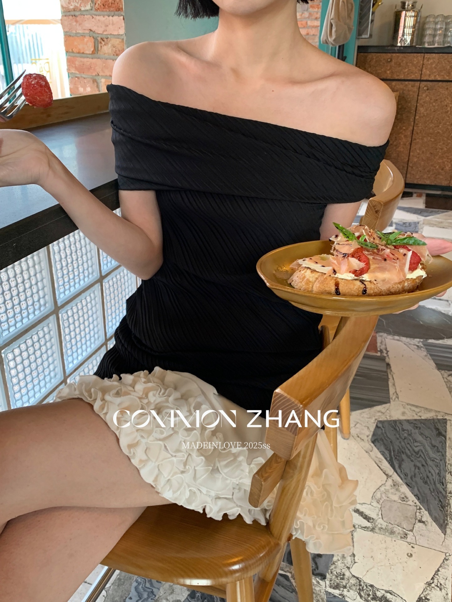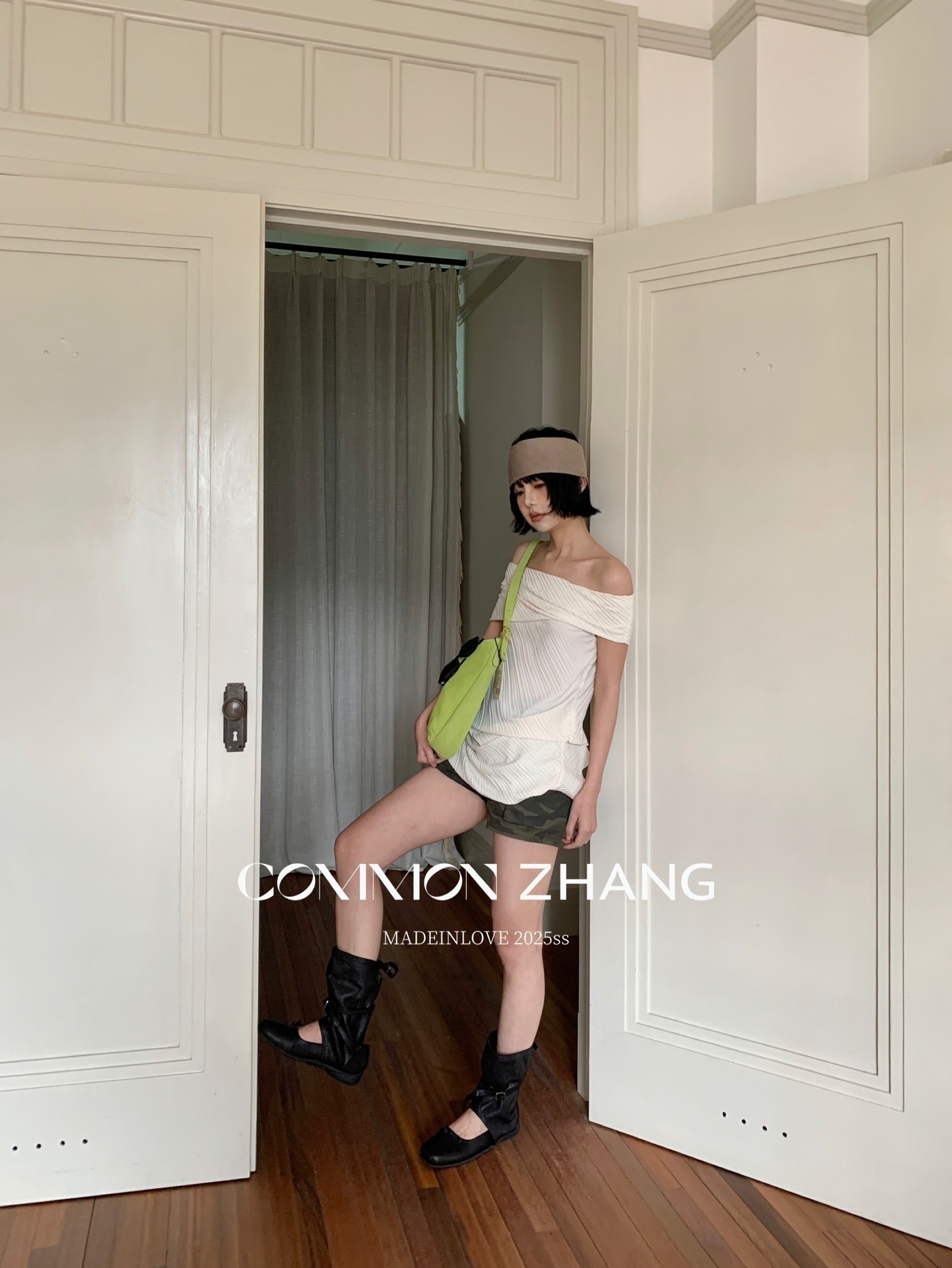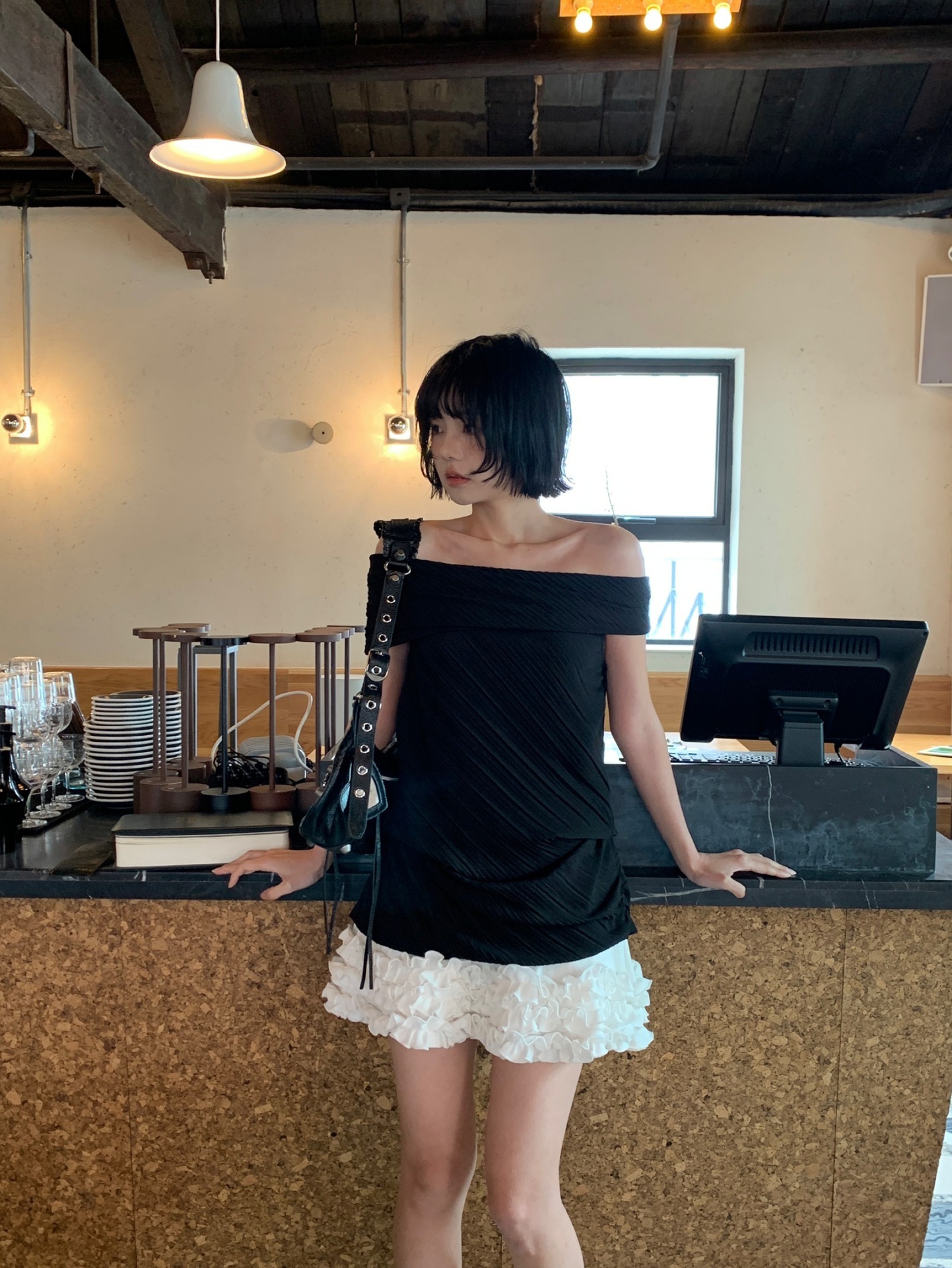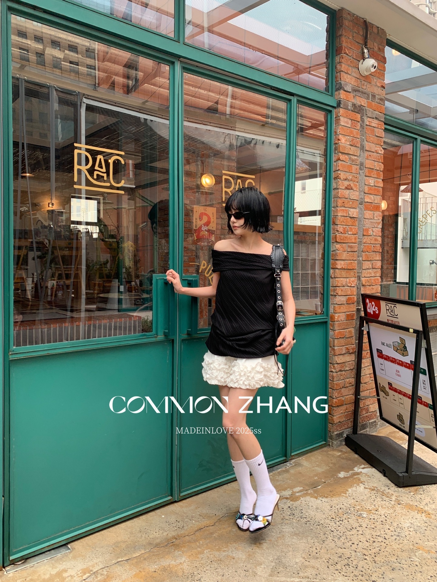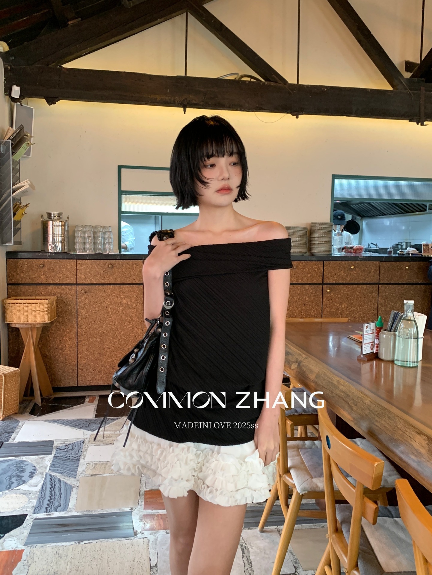 *o-ha-you*【FCZCB203600】夏季法式三宅風一字領露肩性感壓皺質感透視純色百搭小衫-3色