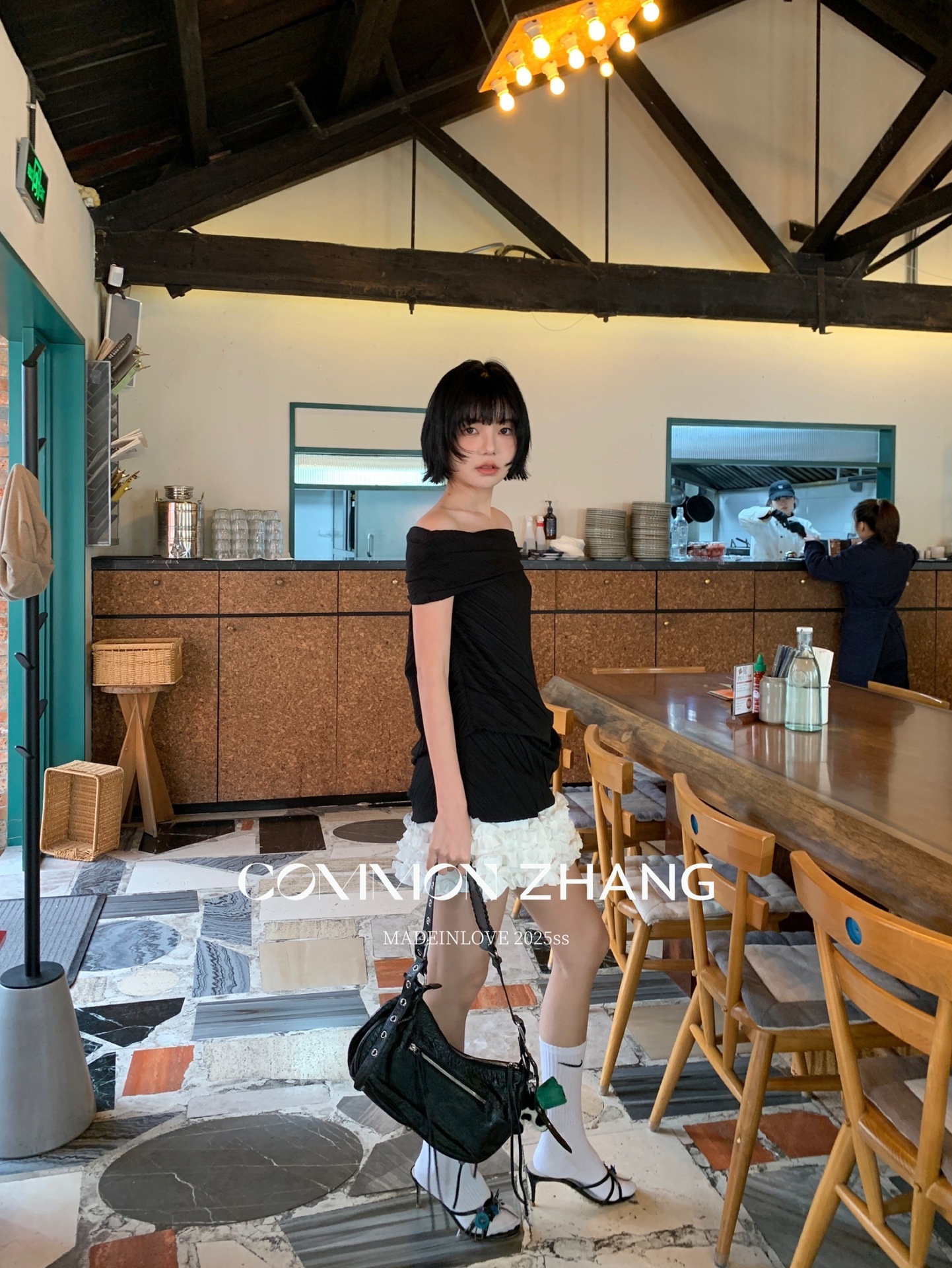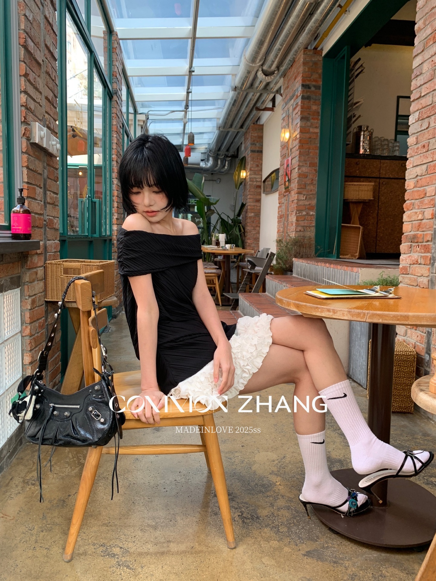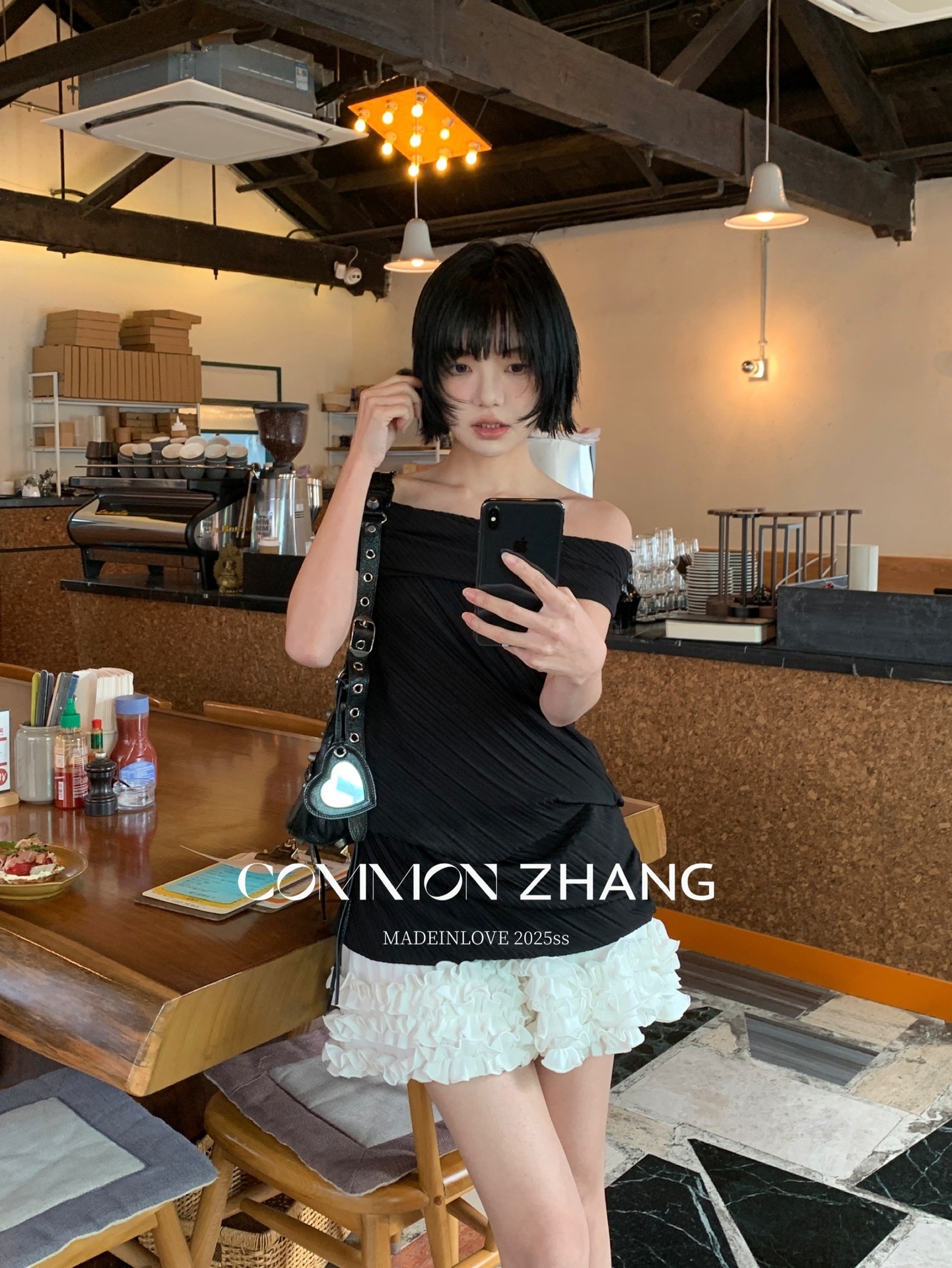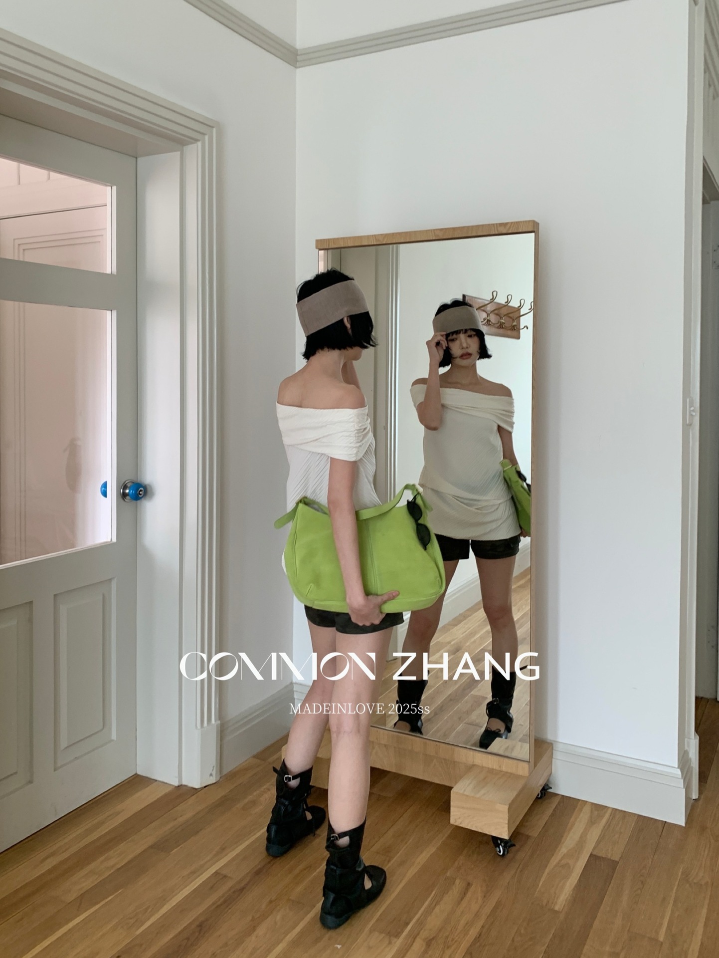 *o-ha-you*【FCZCB203600】夏季法式三宅風一字領露肩性感壓皺質感透視純色百搭小衫-3色