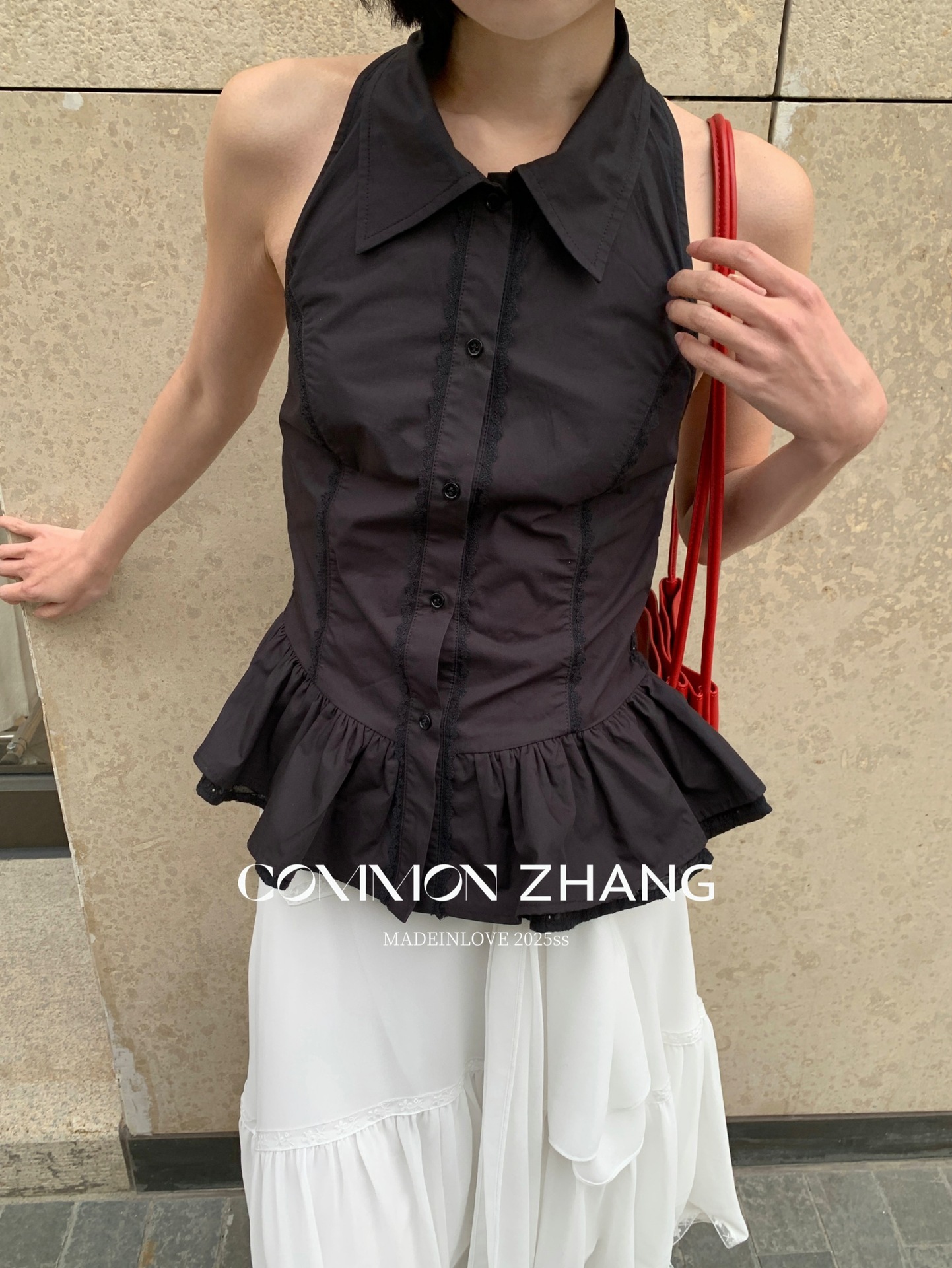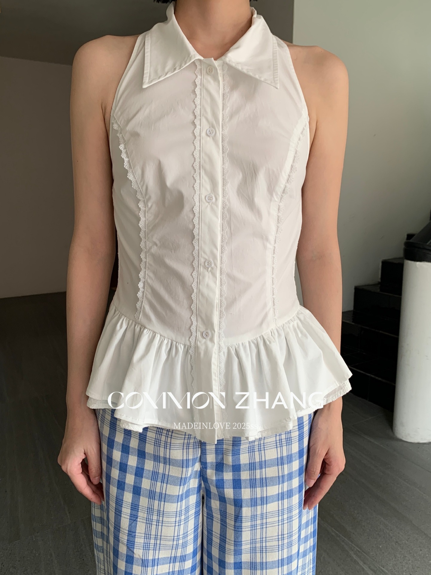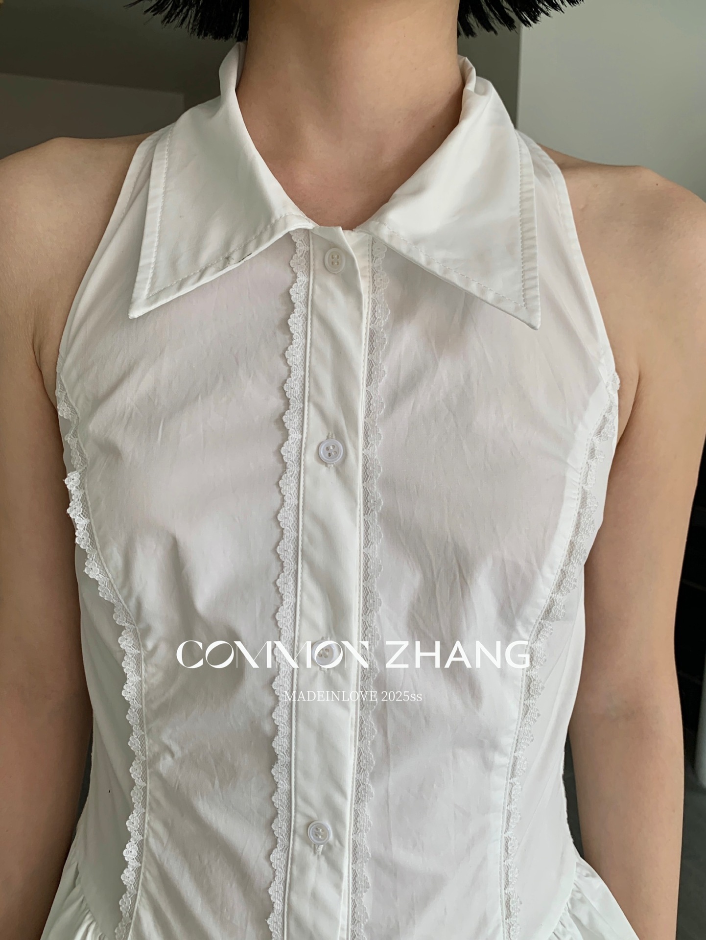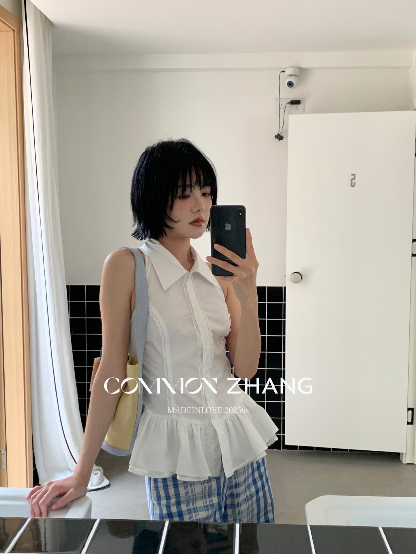 *o-ha-you*【FCZCB203603】夏季法式甜美減齡蕾絲邊拼接翻領開衫無袖坎肩背心小衫-2色-如有需要請先諮詢