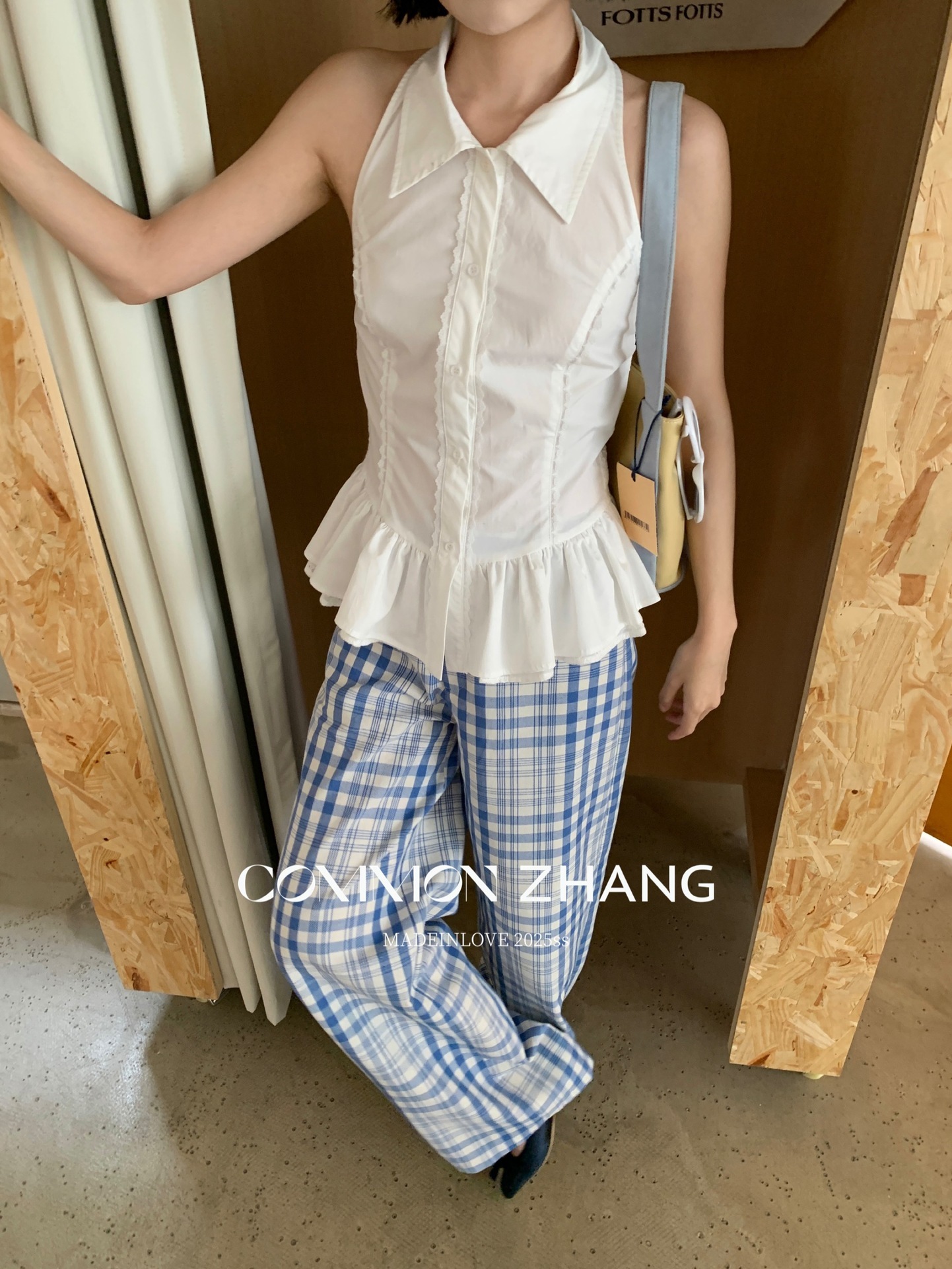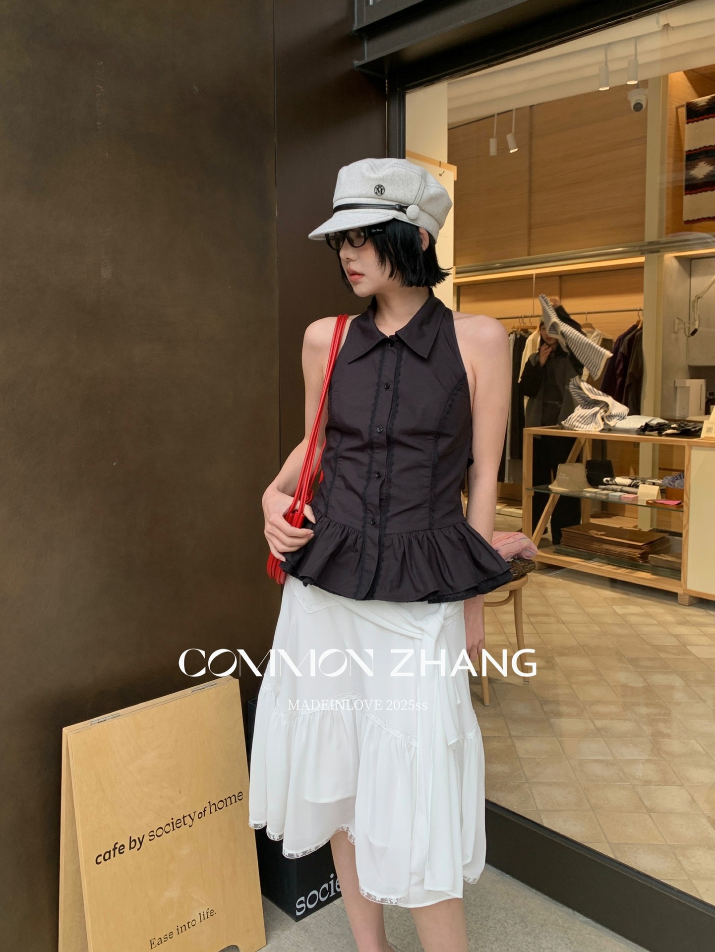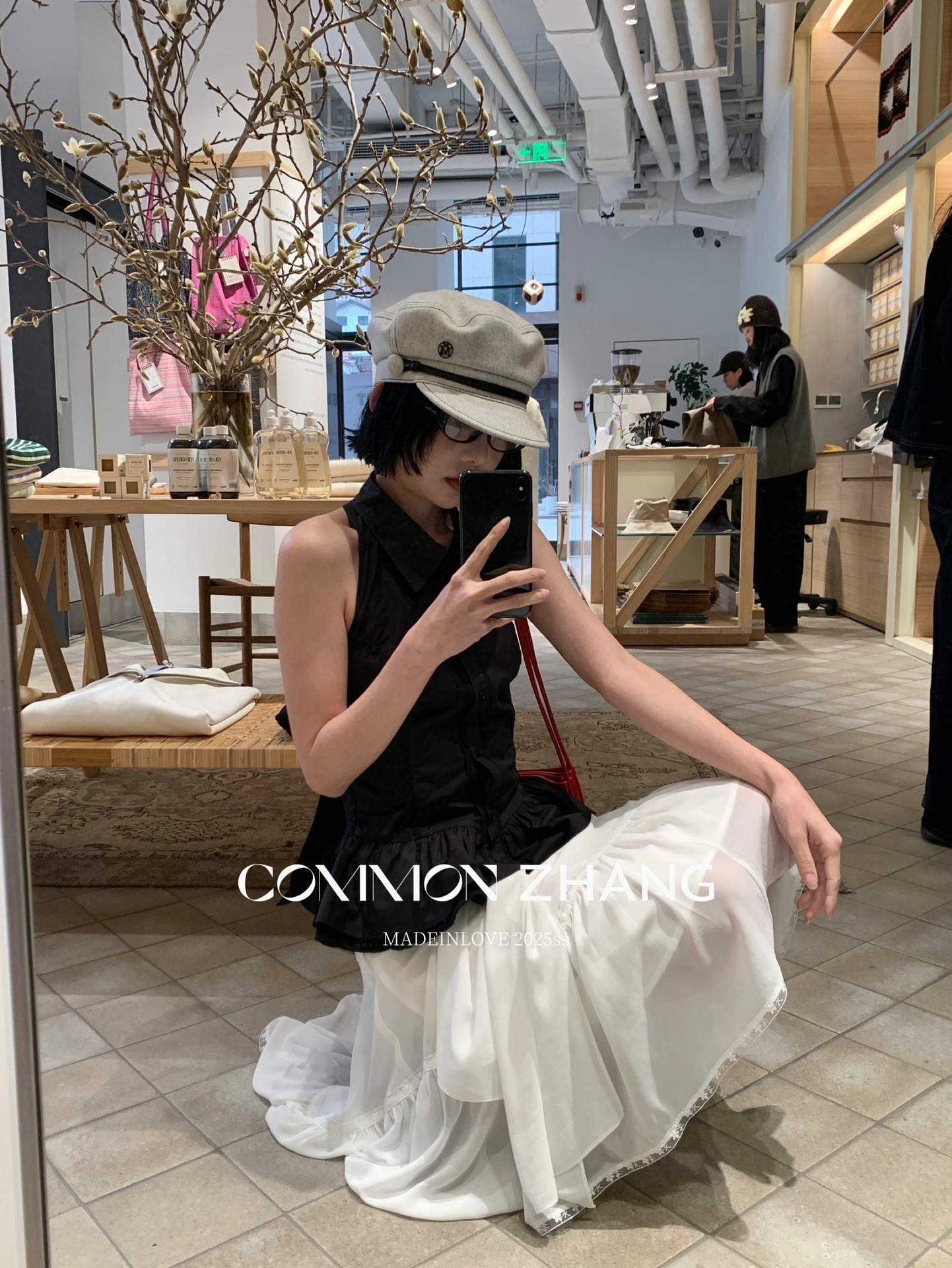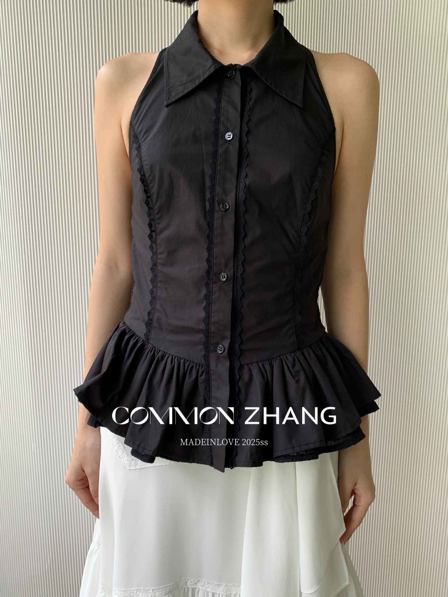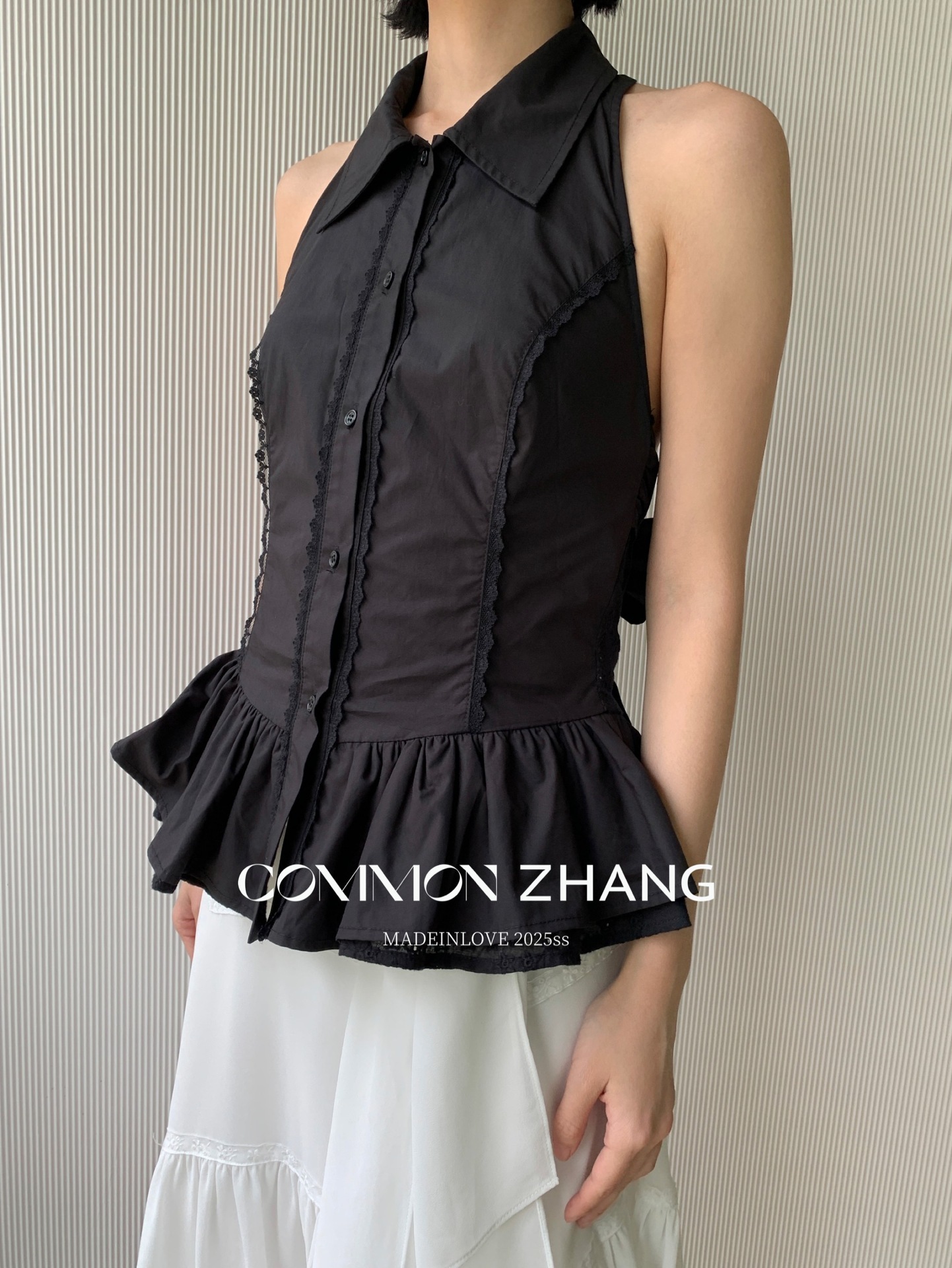 *o-ha-you*【FCZCB203603】夏季法式甜美減齡蕾絲邊拼接翻領開衫無袖坎肩背心小衫-2色-如有需要請先諮詢