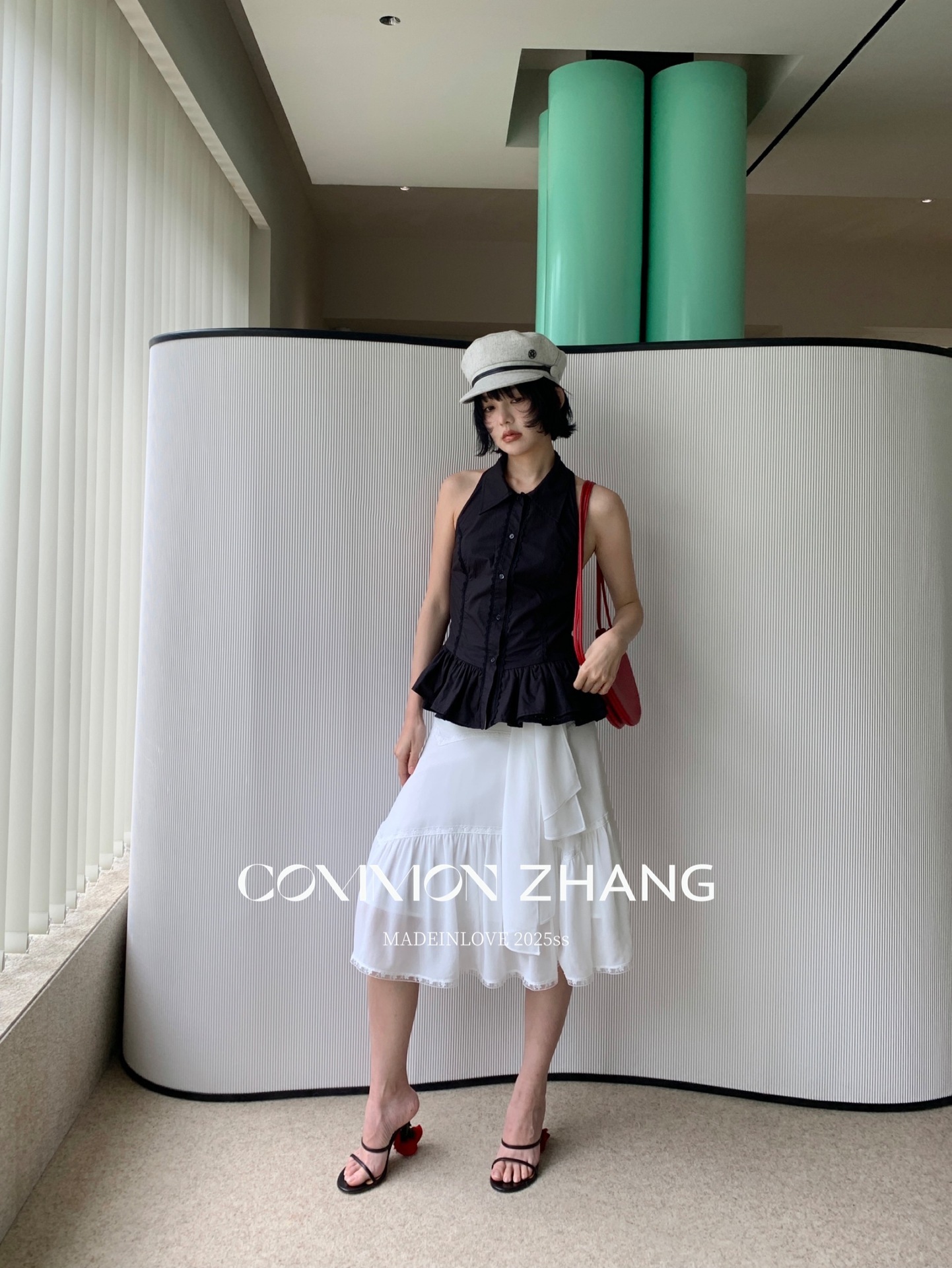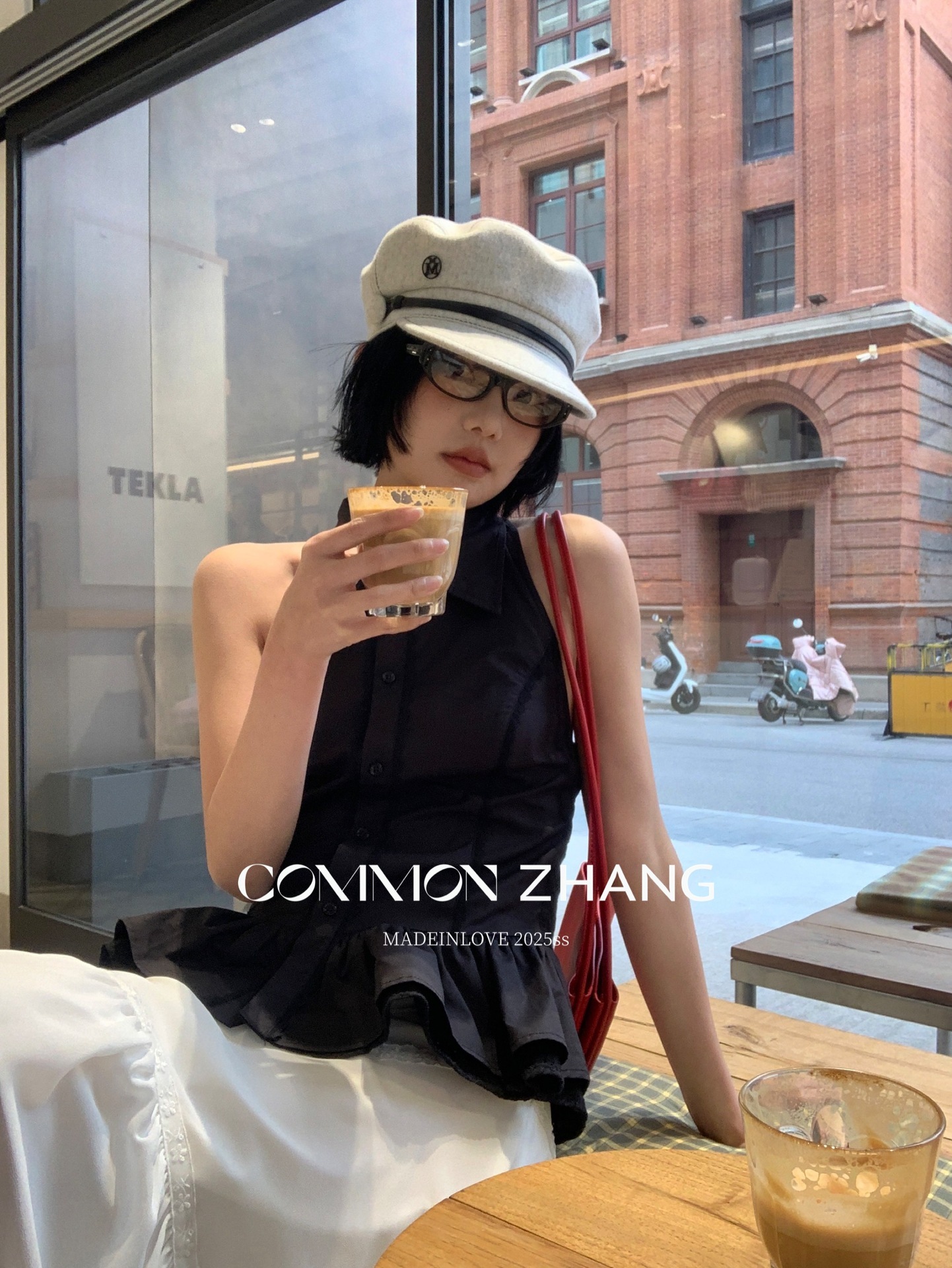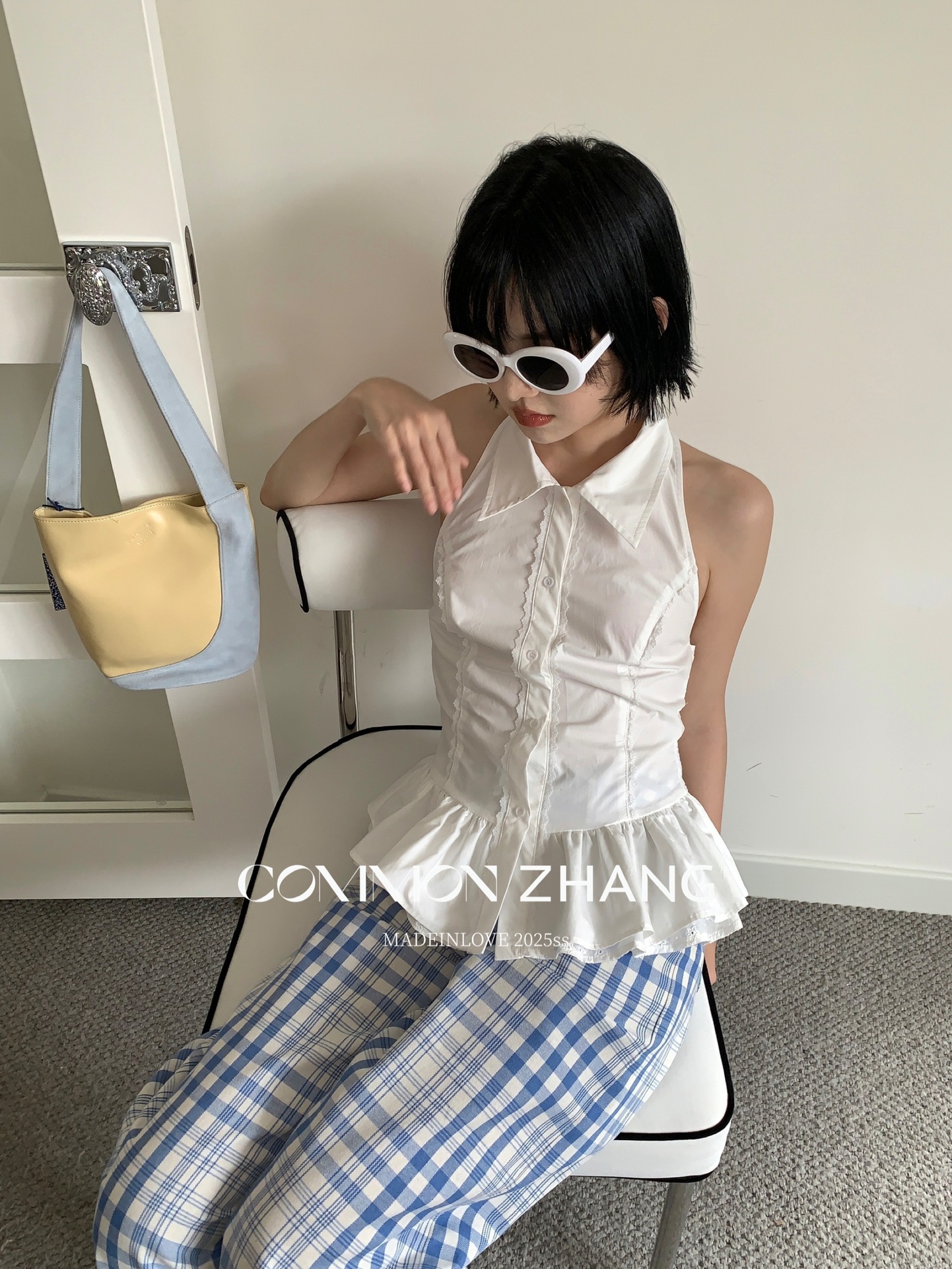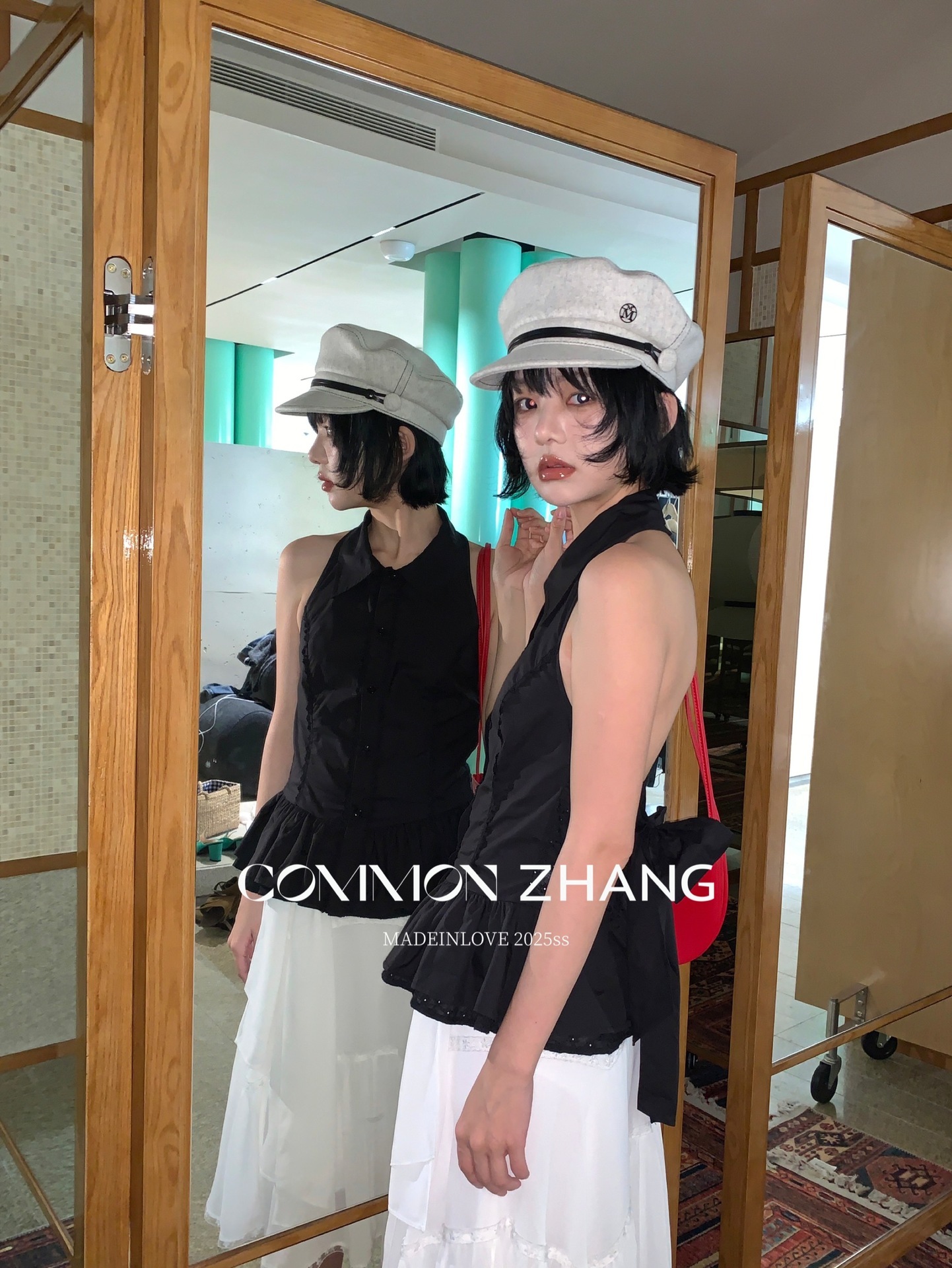 *o-ha-you*【FCZCB203603】夏季法式甜美減齡蕾絲邊拼接翻領開衫無袖坎肩背心小衫-2色-如有需要請先諮詢