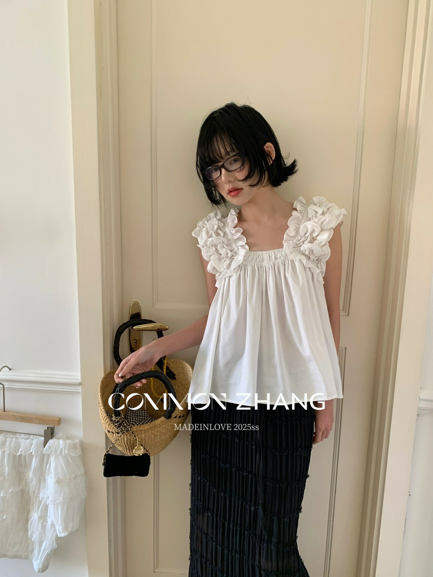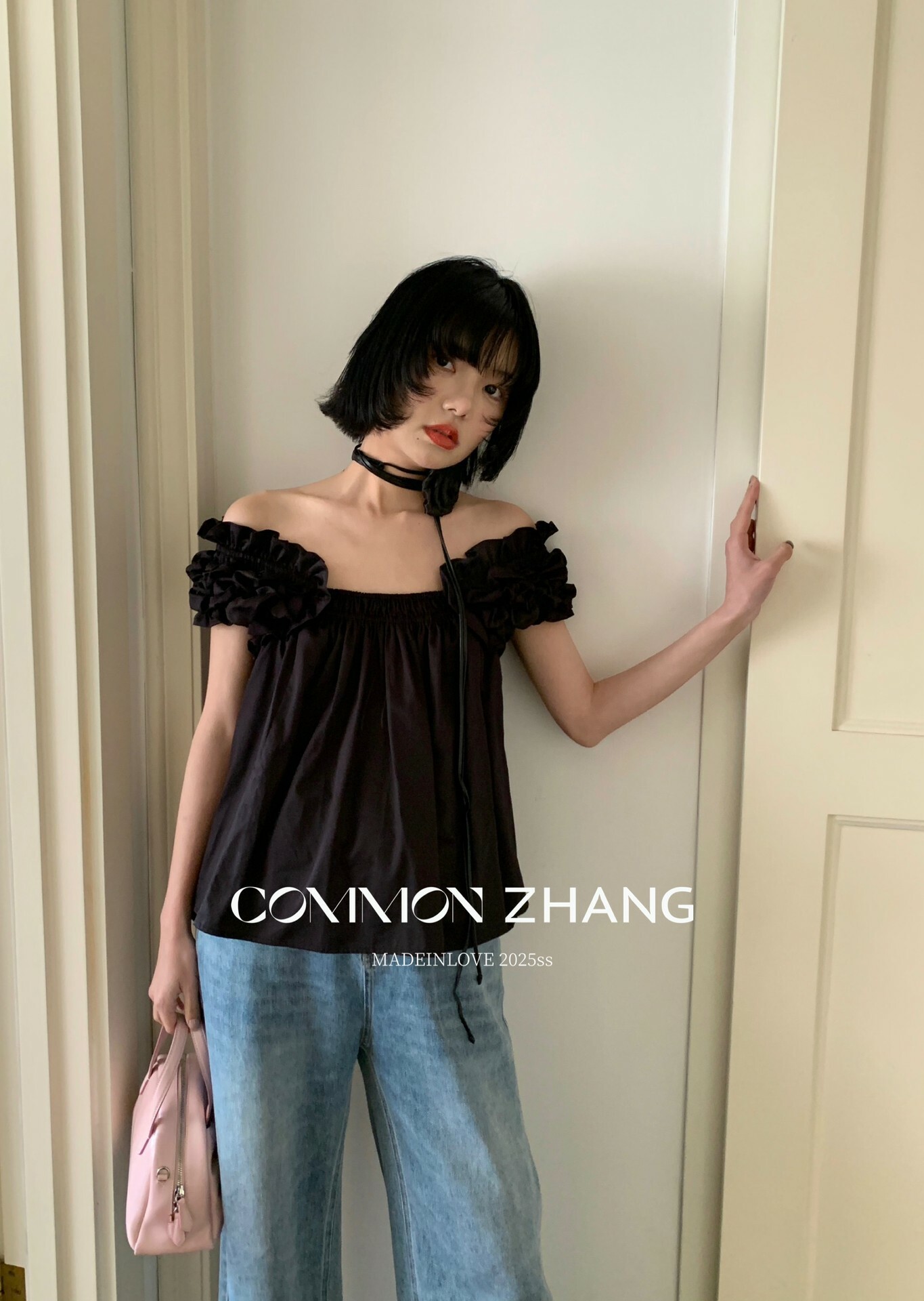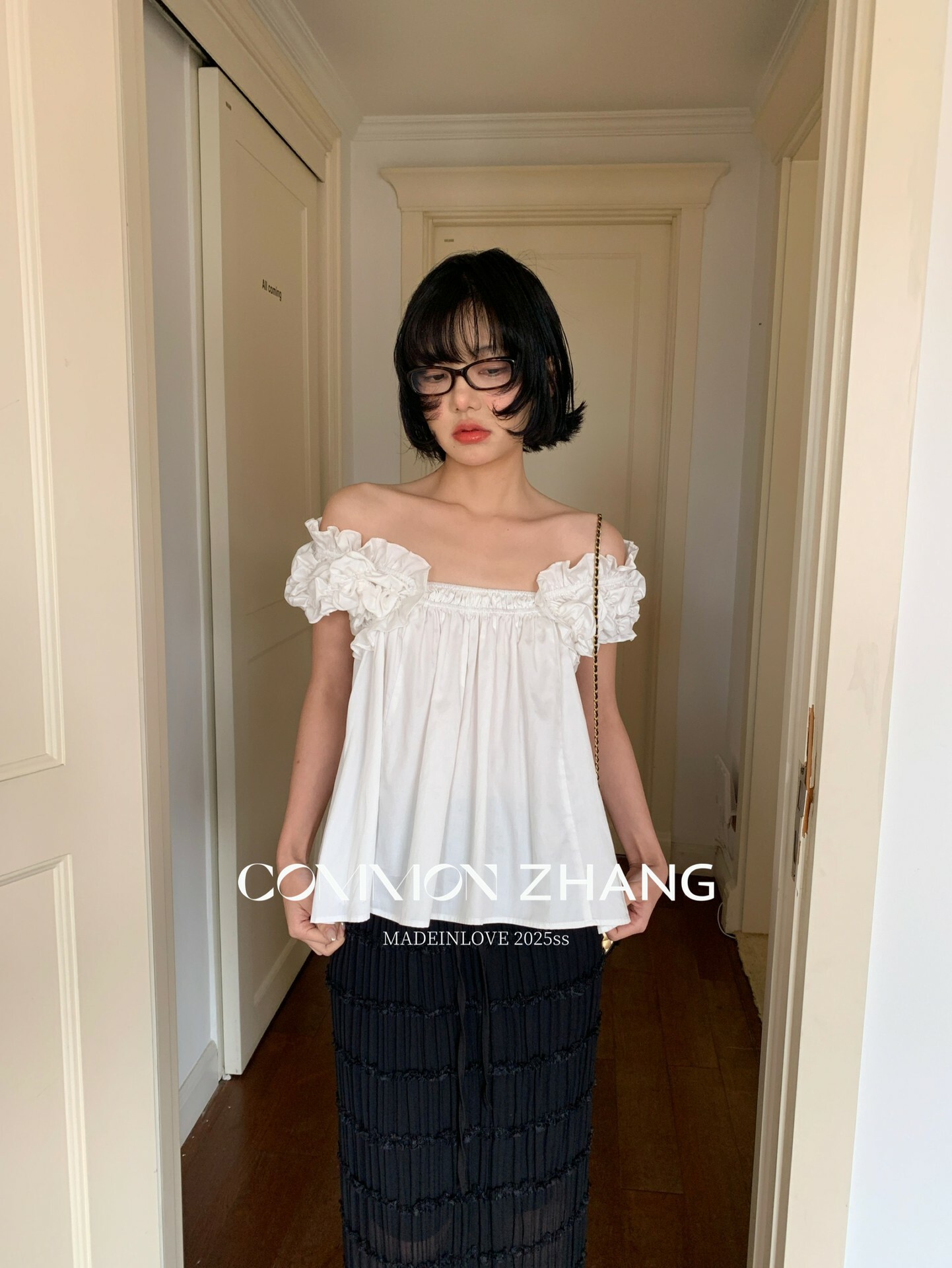 *o-ha-you*【FCZCB203643】夏季新款韓版甜美減齡花邊壓皺一字領露肩純色小衫-3色