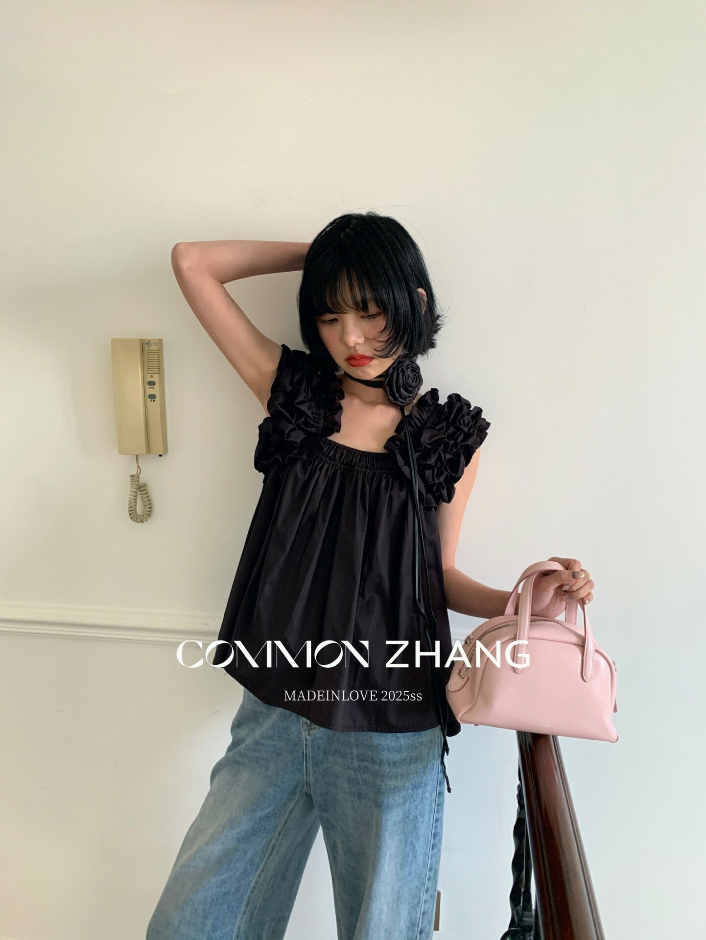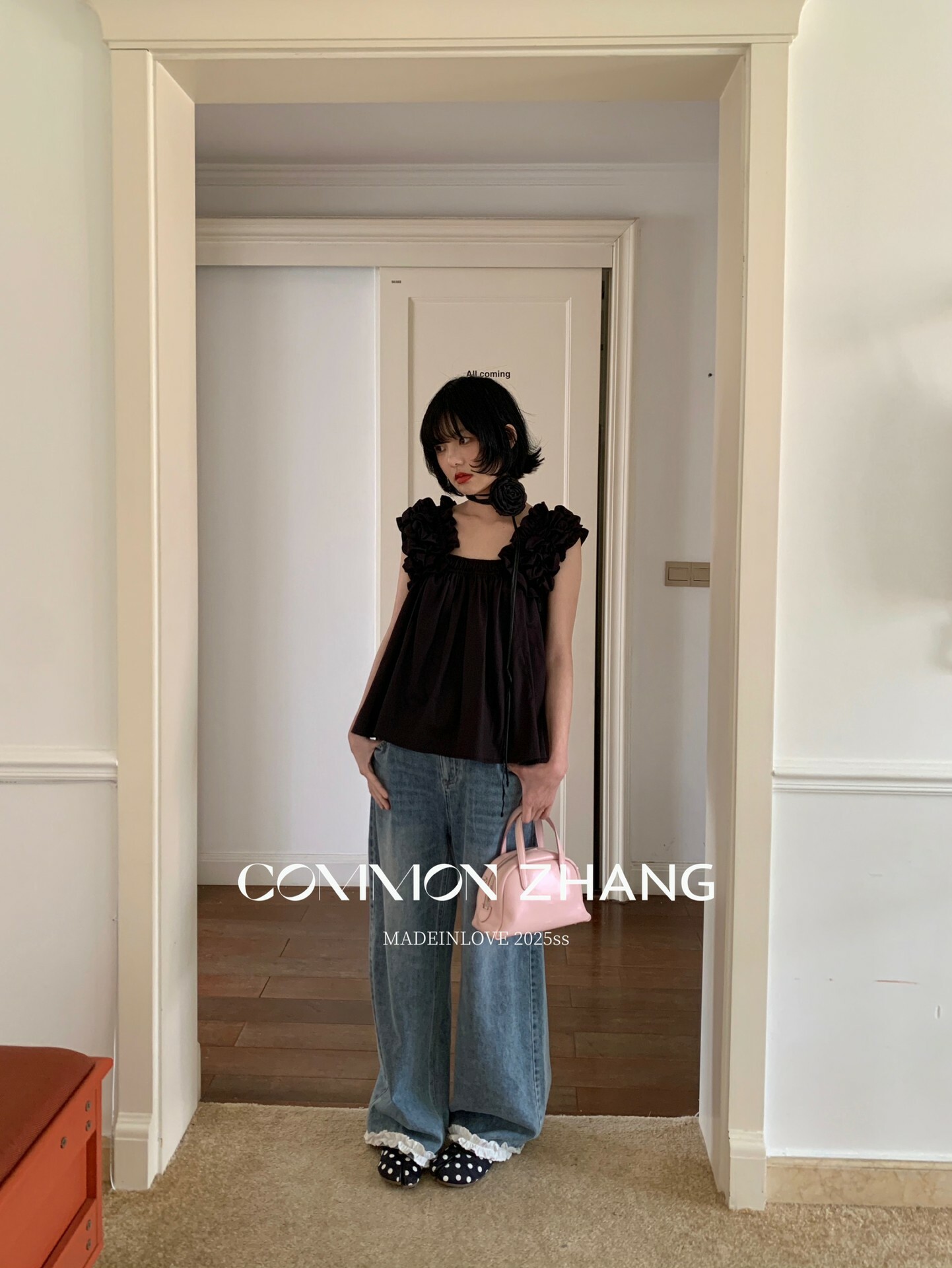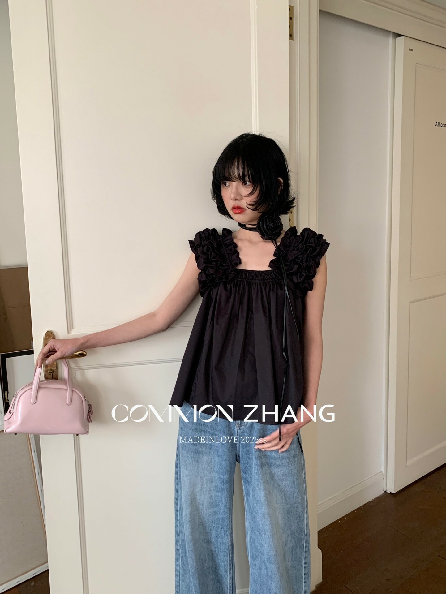*o-ha-you*【FCZCB203643】夏季新款韓版甜美減齡花邊壓皺一字領露肩純色小衫-3色