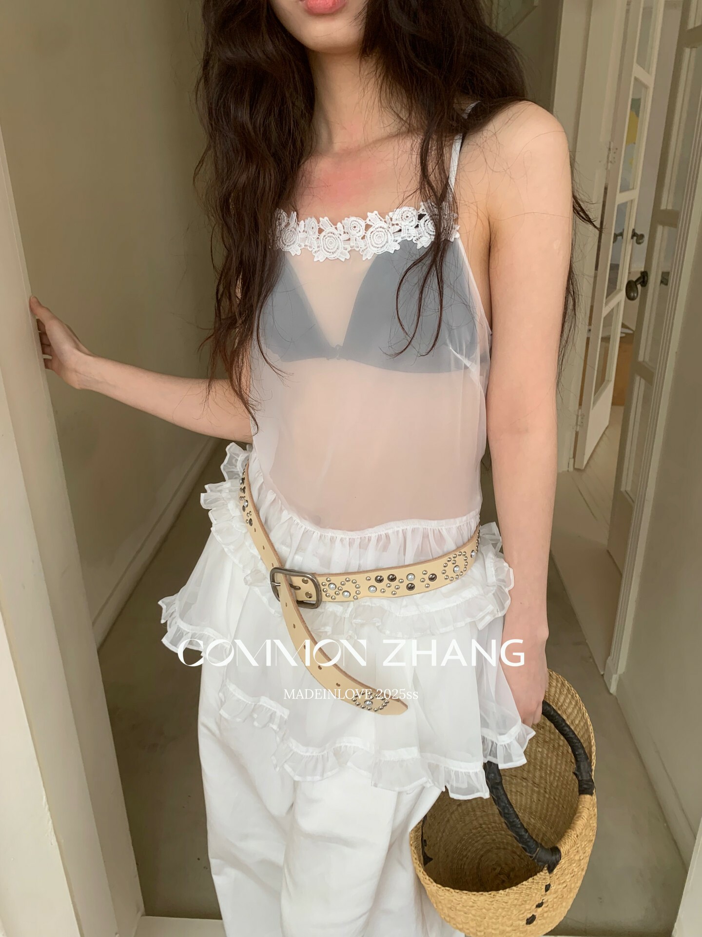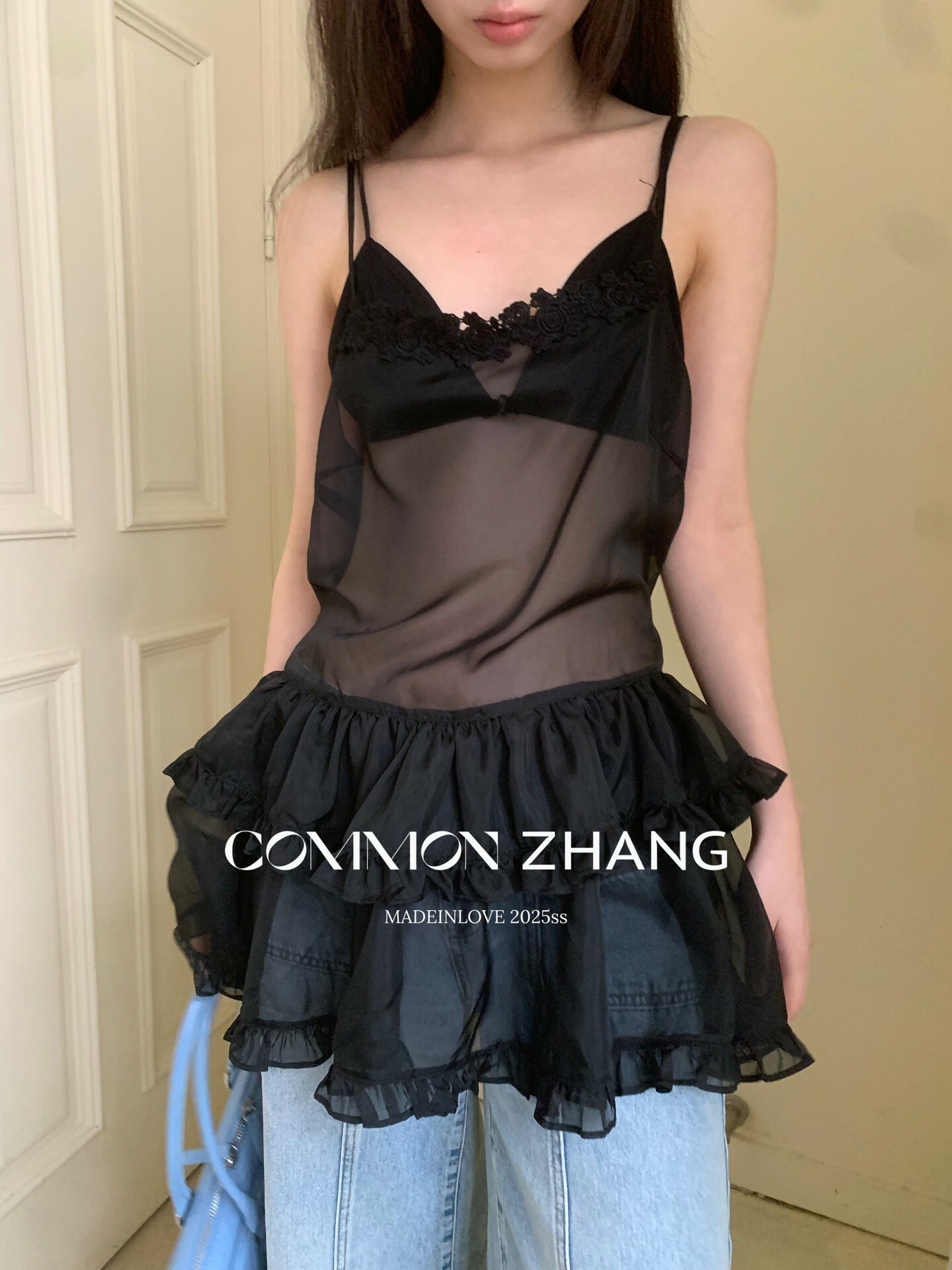 *o-ha-you*【FCZCB203673】夏季新款法式宮廷透視性感純欲蕾絲拼接吊帶小衫-2色