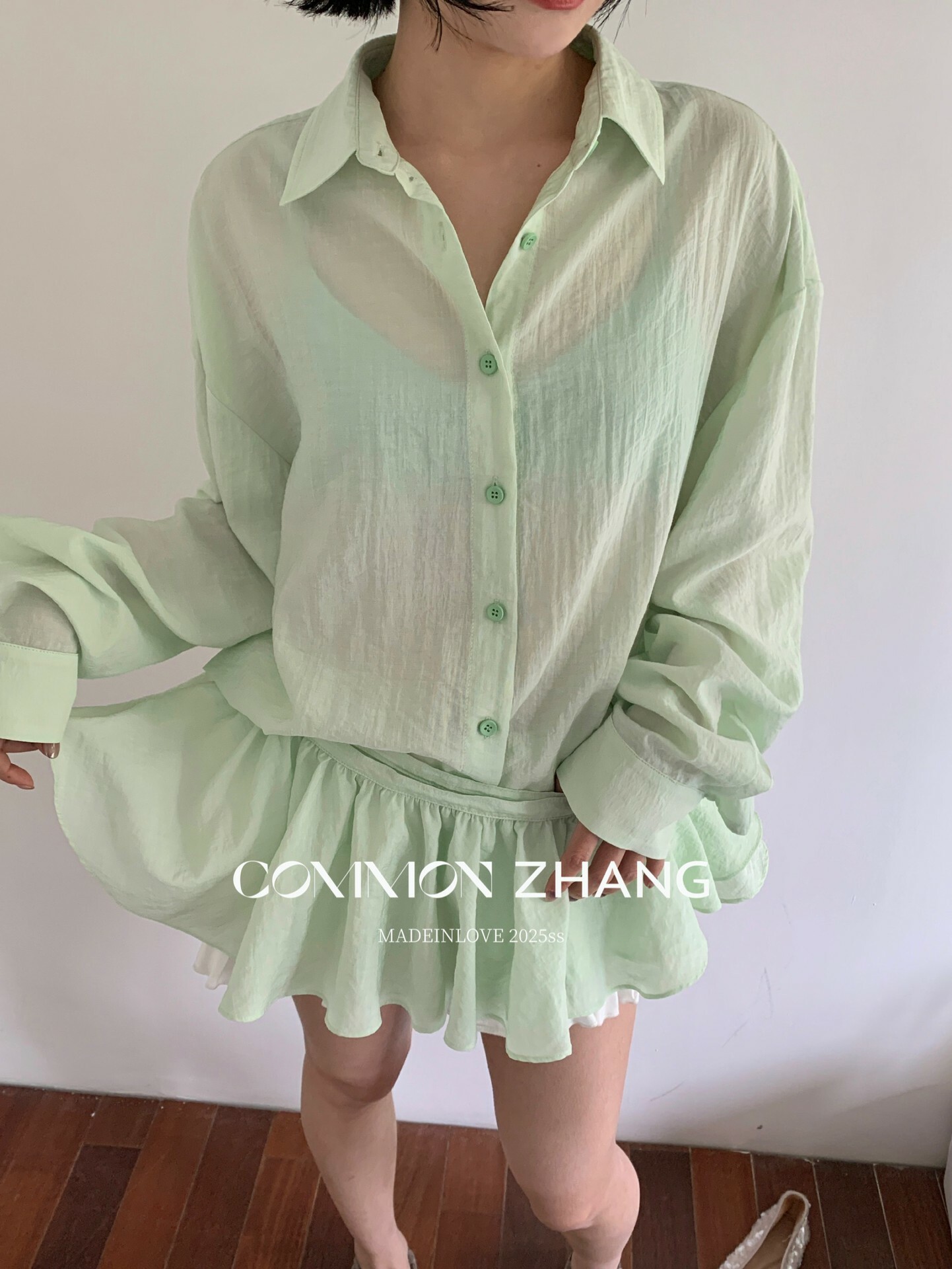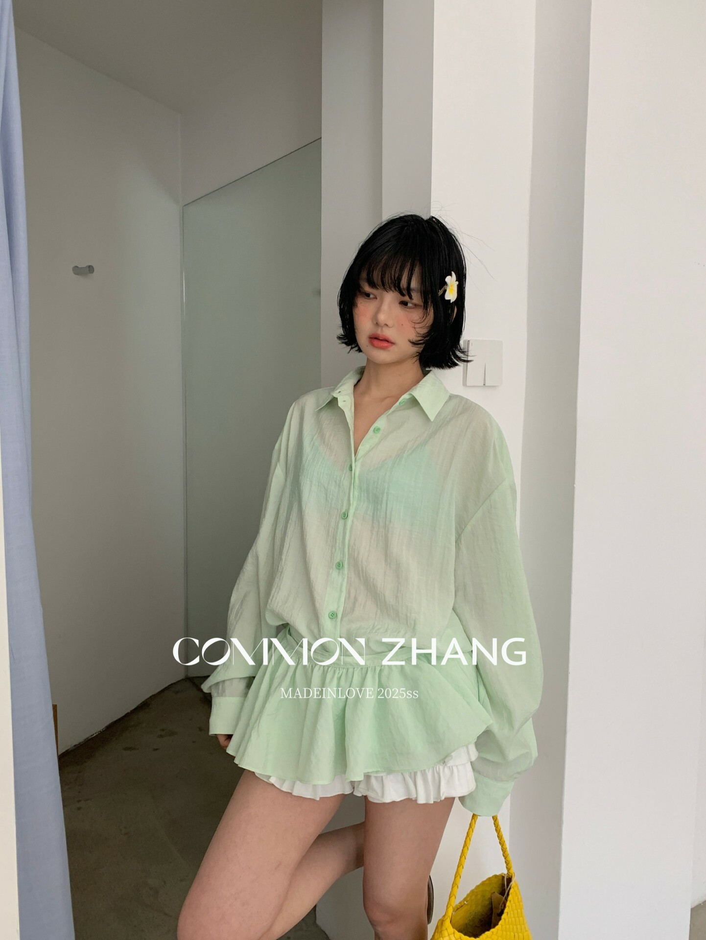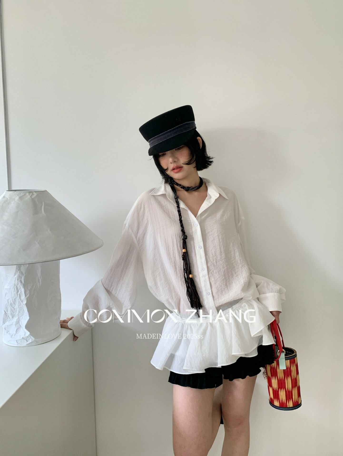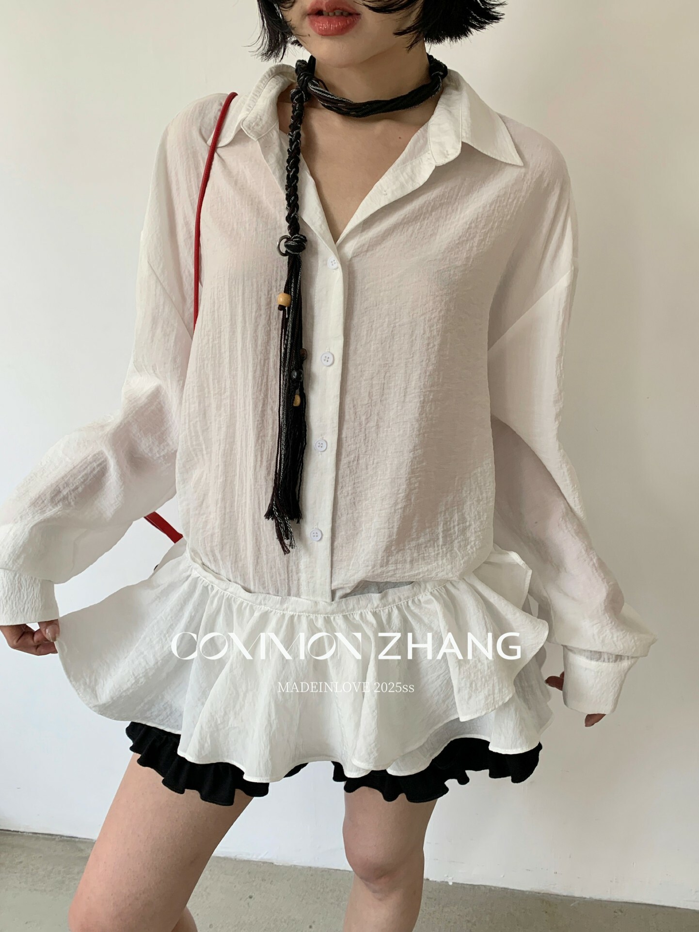 *o-ha-you*【FCZCB203710】夏季法式韓版質感甜酷微透性感純色短裙襯衫兩件套-2色