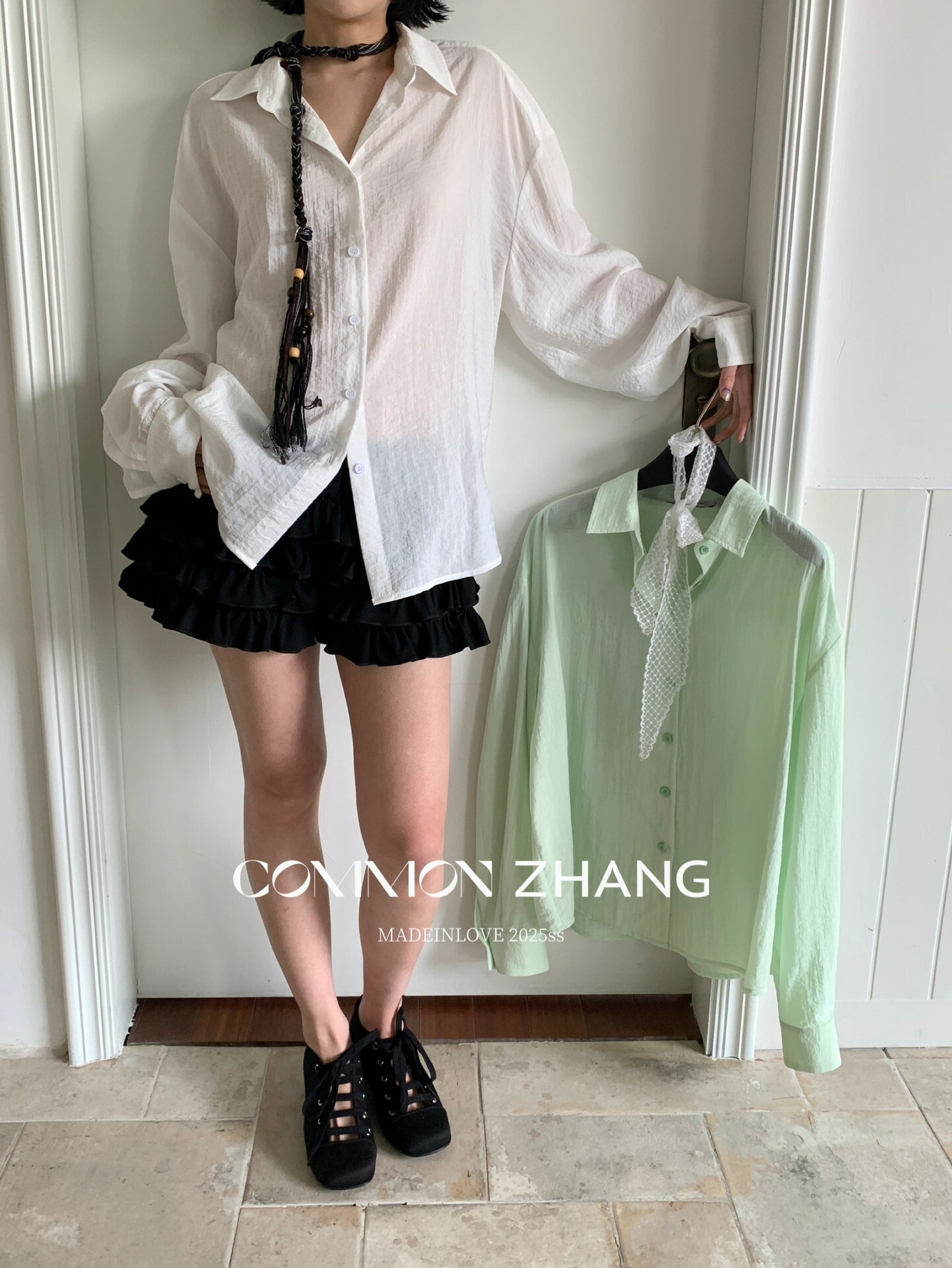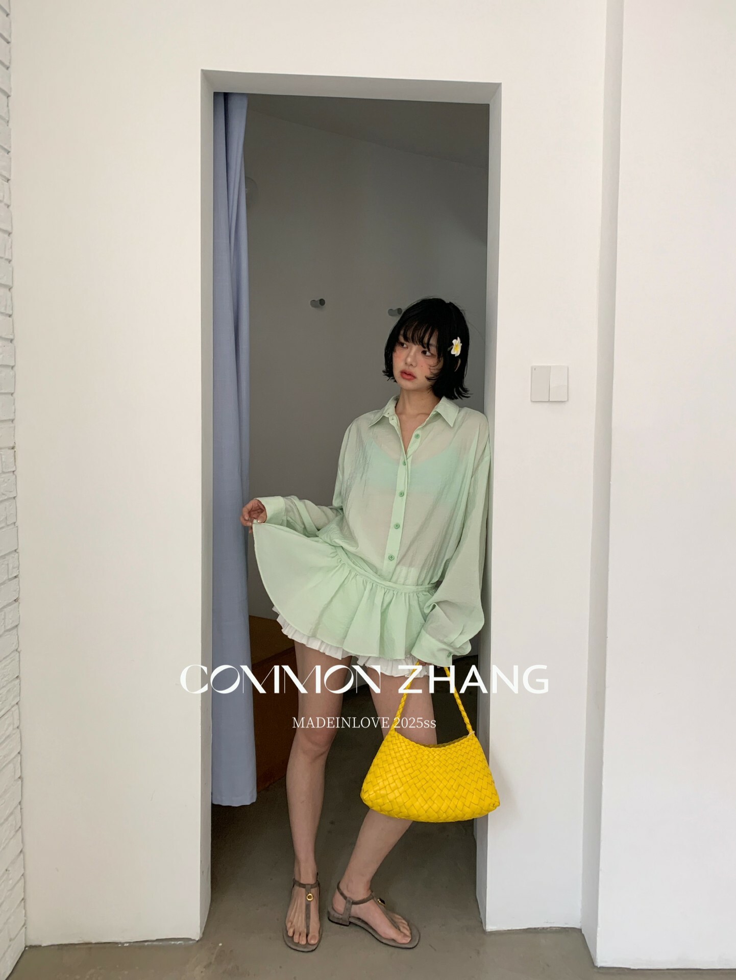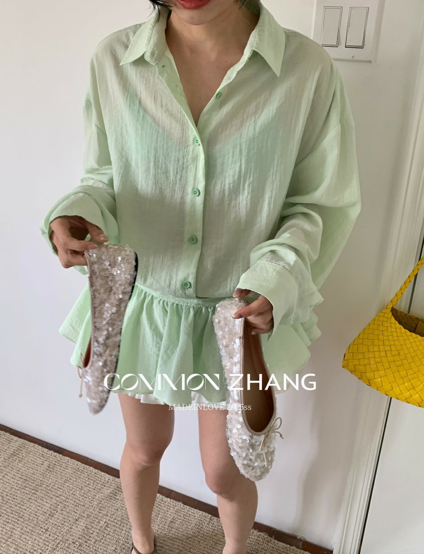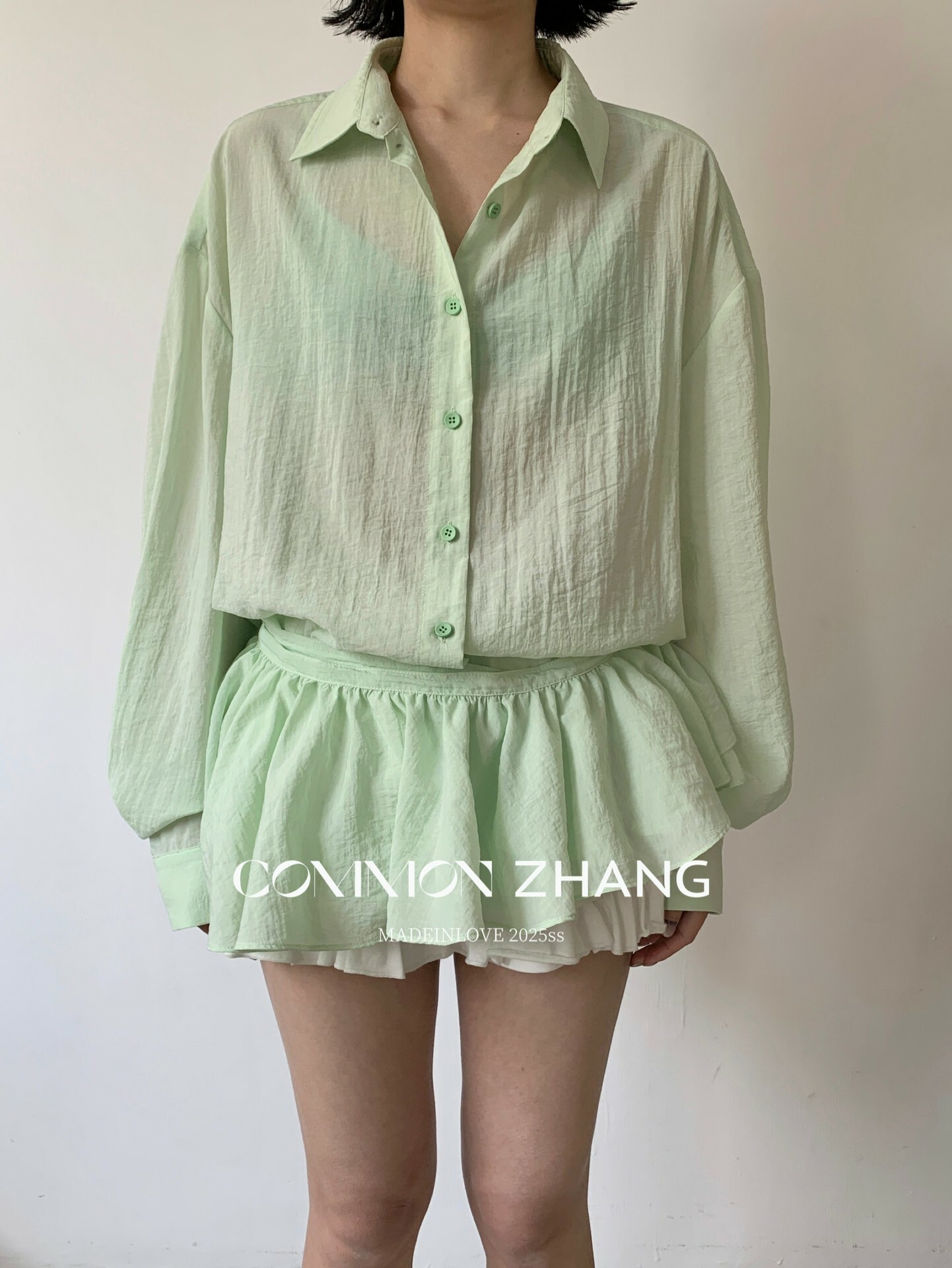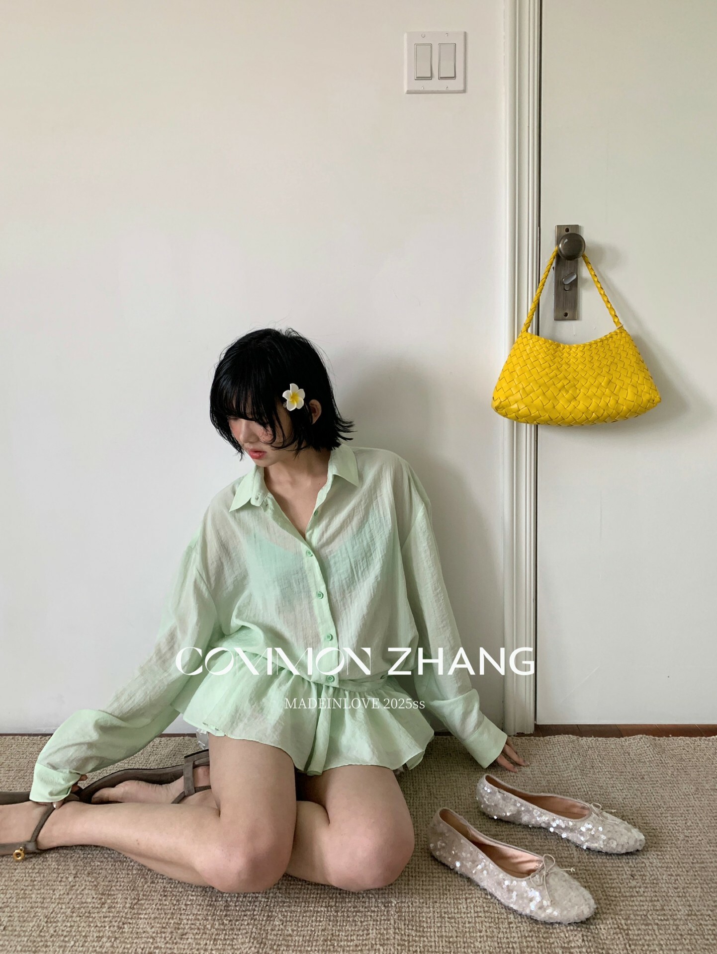*o-ha-you*【FCZCB203710】夏季法式韓版質感甜酷微透性感純色短裙襯衫兩件套-2色
