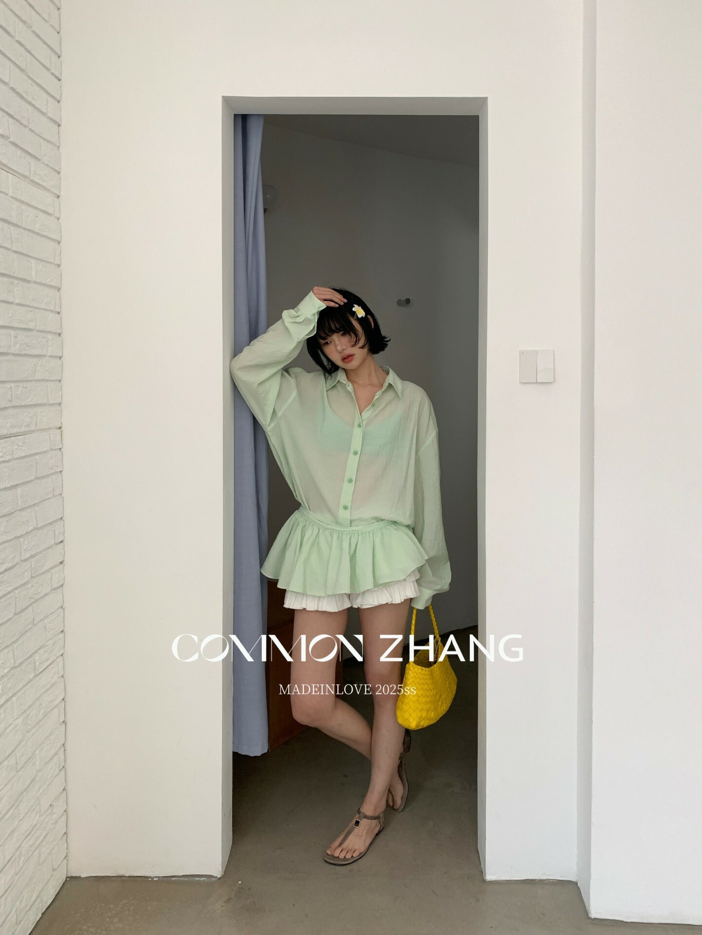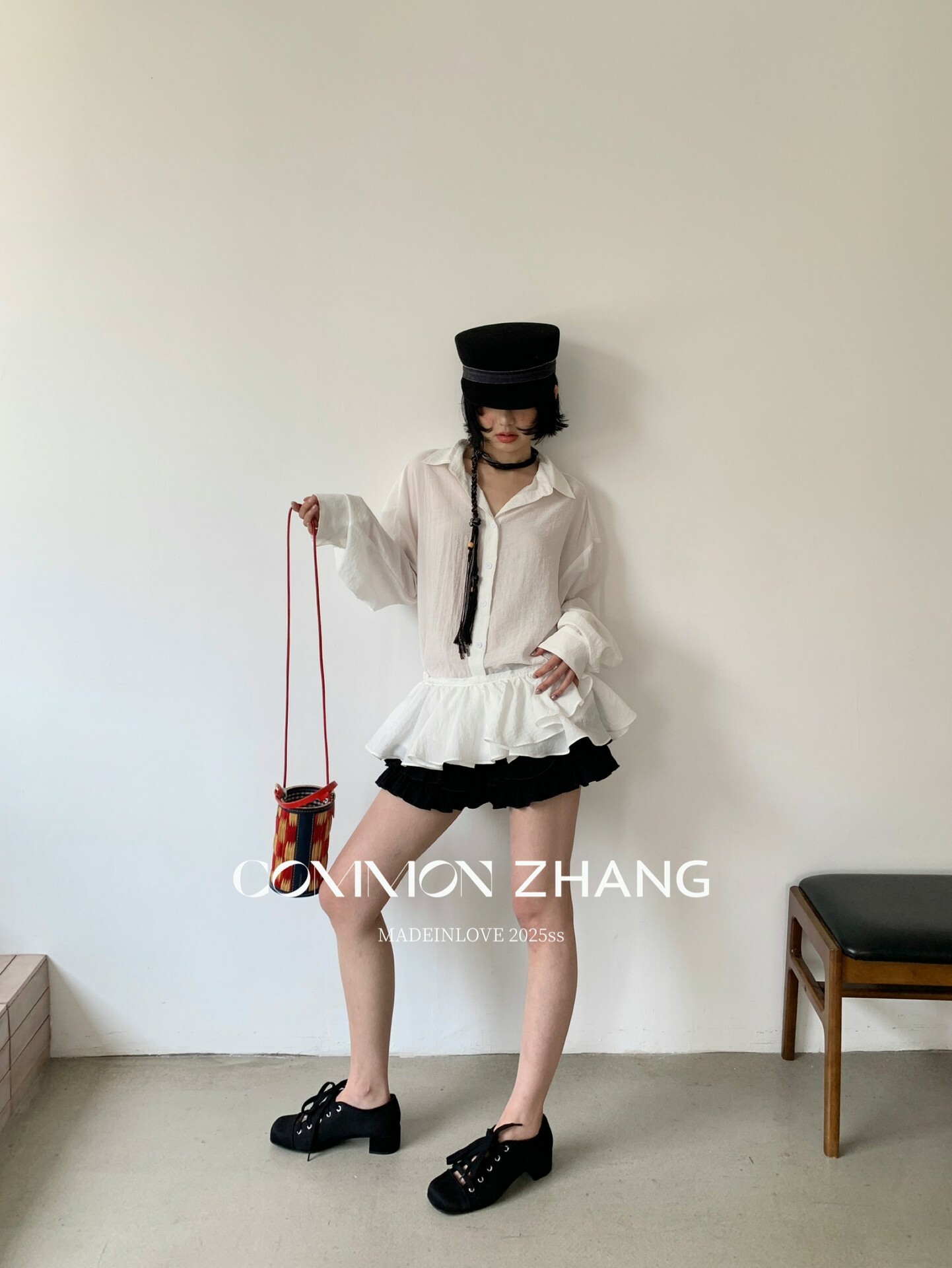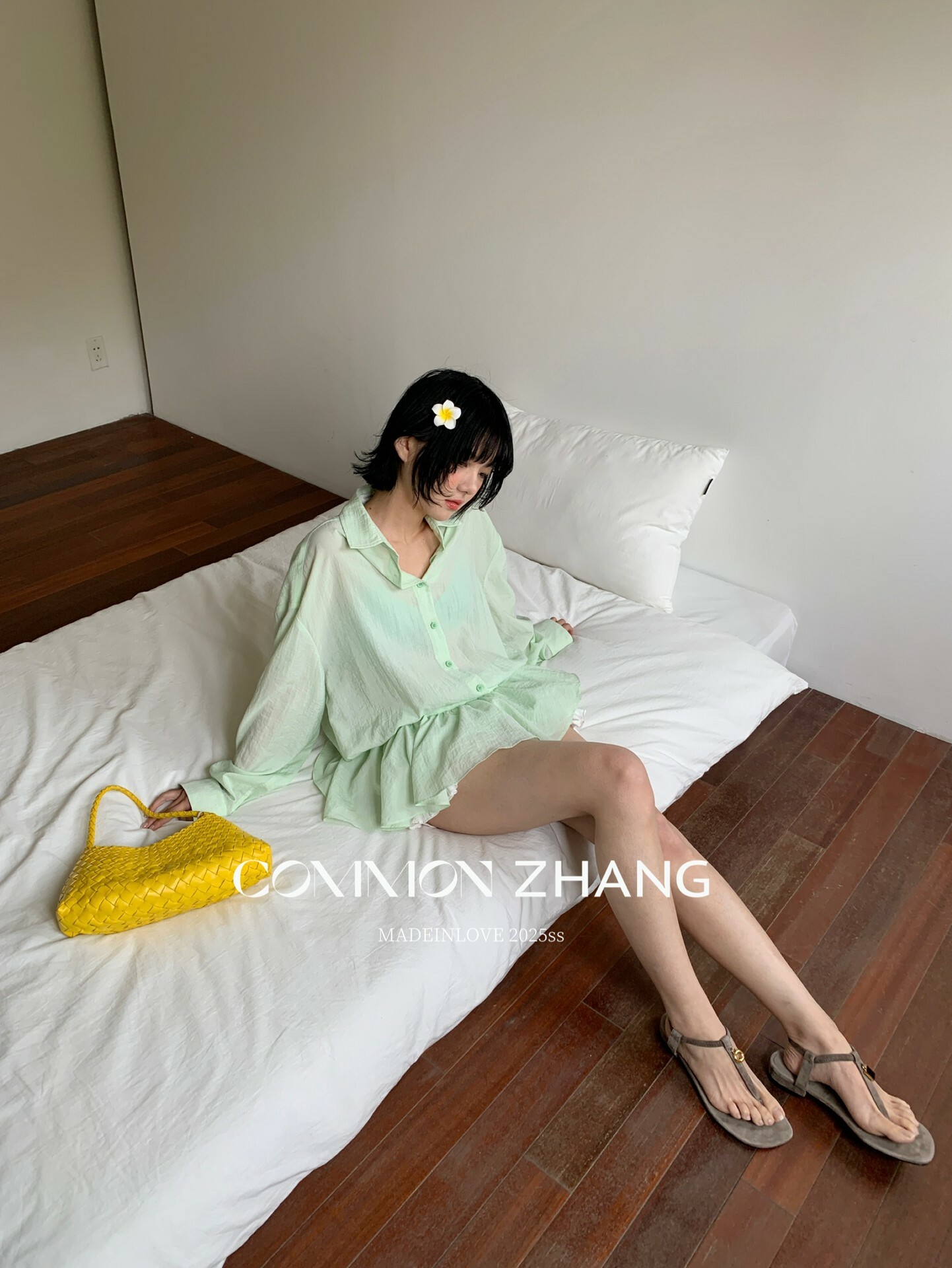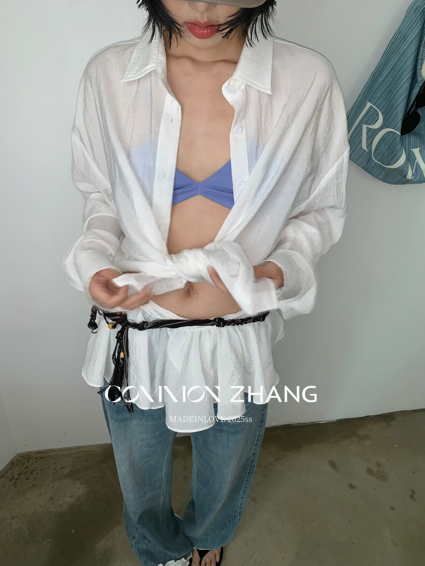 *o-ha-you*【FCZCB203710】夏季法式韓版質感甜酷微透性感純色短裙襯衫兩件套-2色