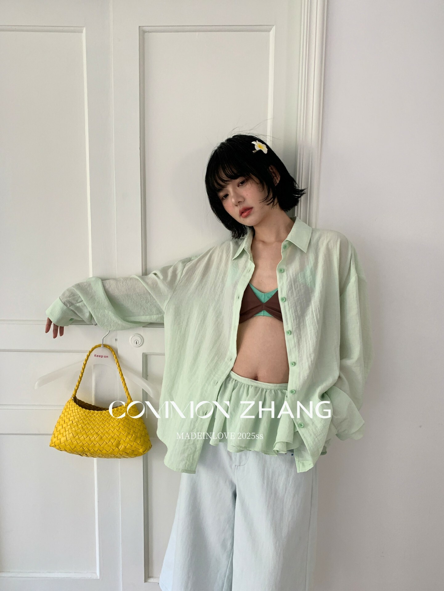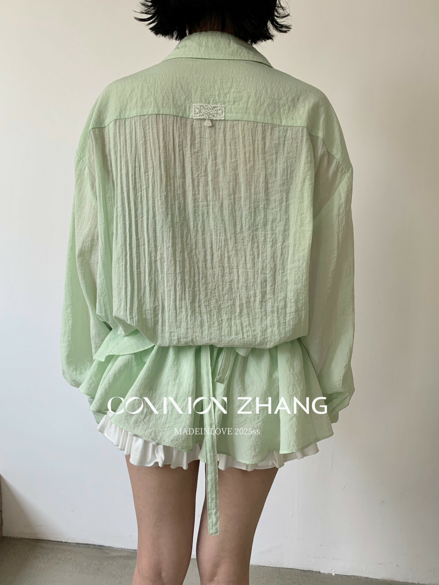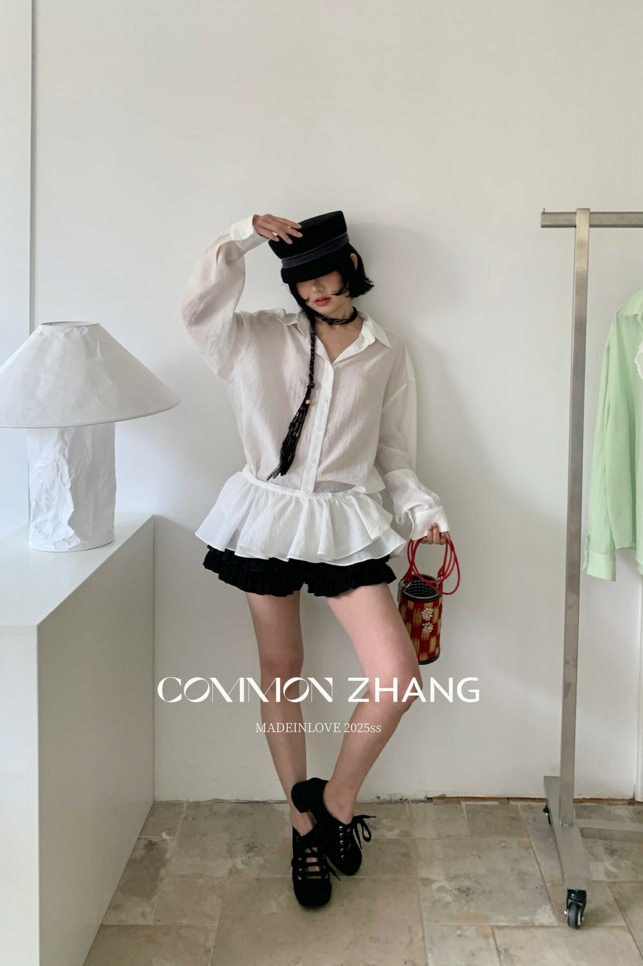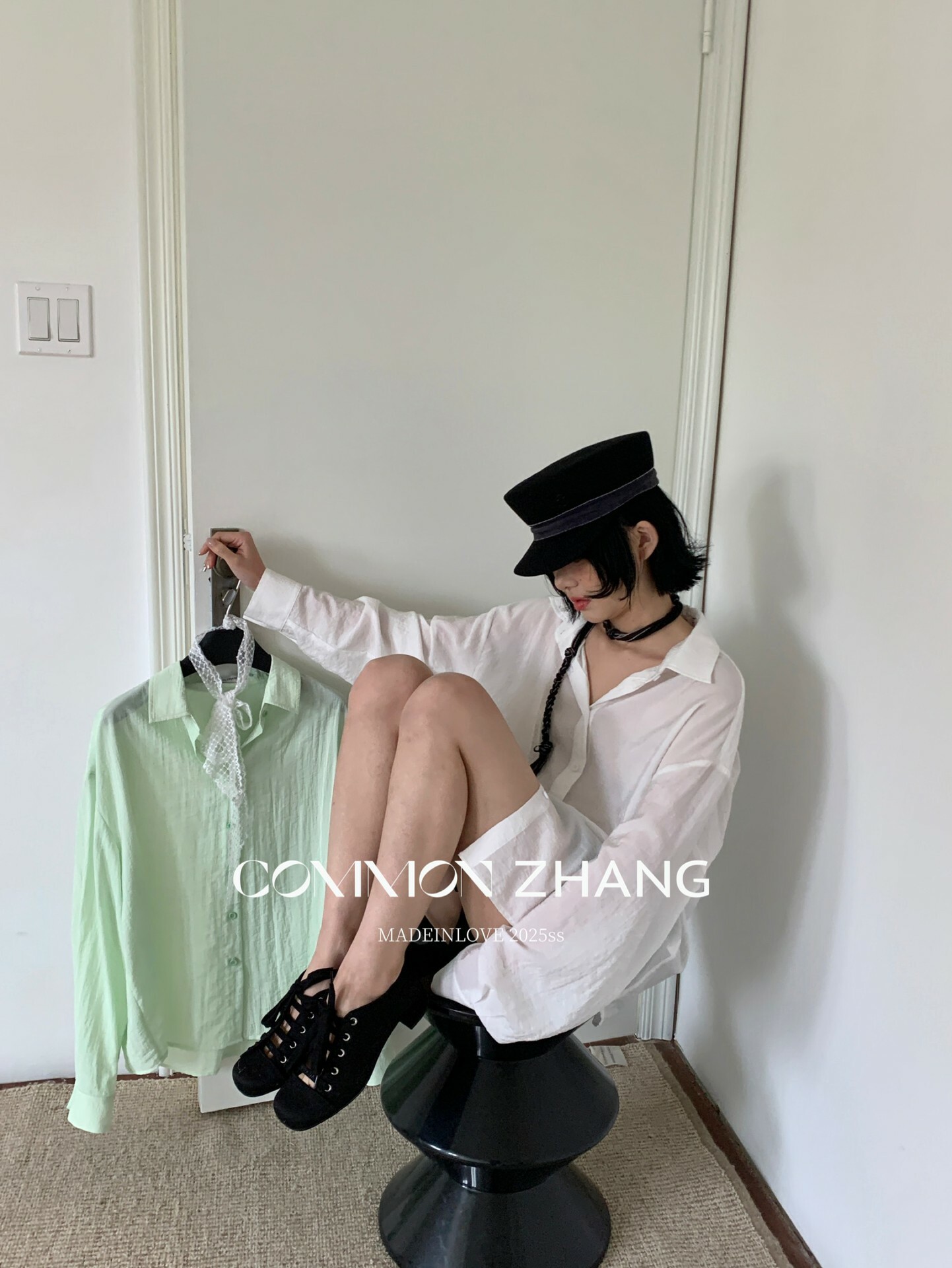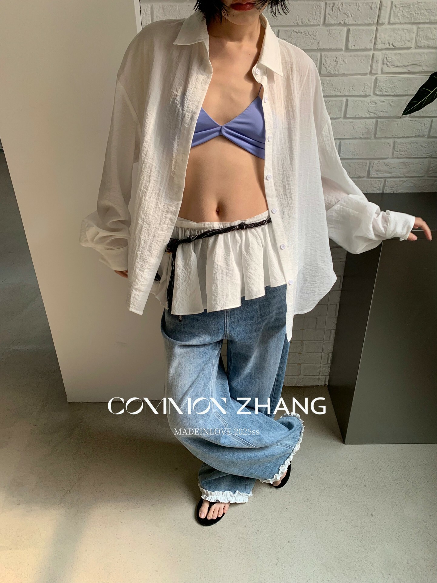 *o-ha-you*【FCZCB203710】夏季法式韓版質感甜酷微透性感純色短裙襯衫兩件套-2色