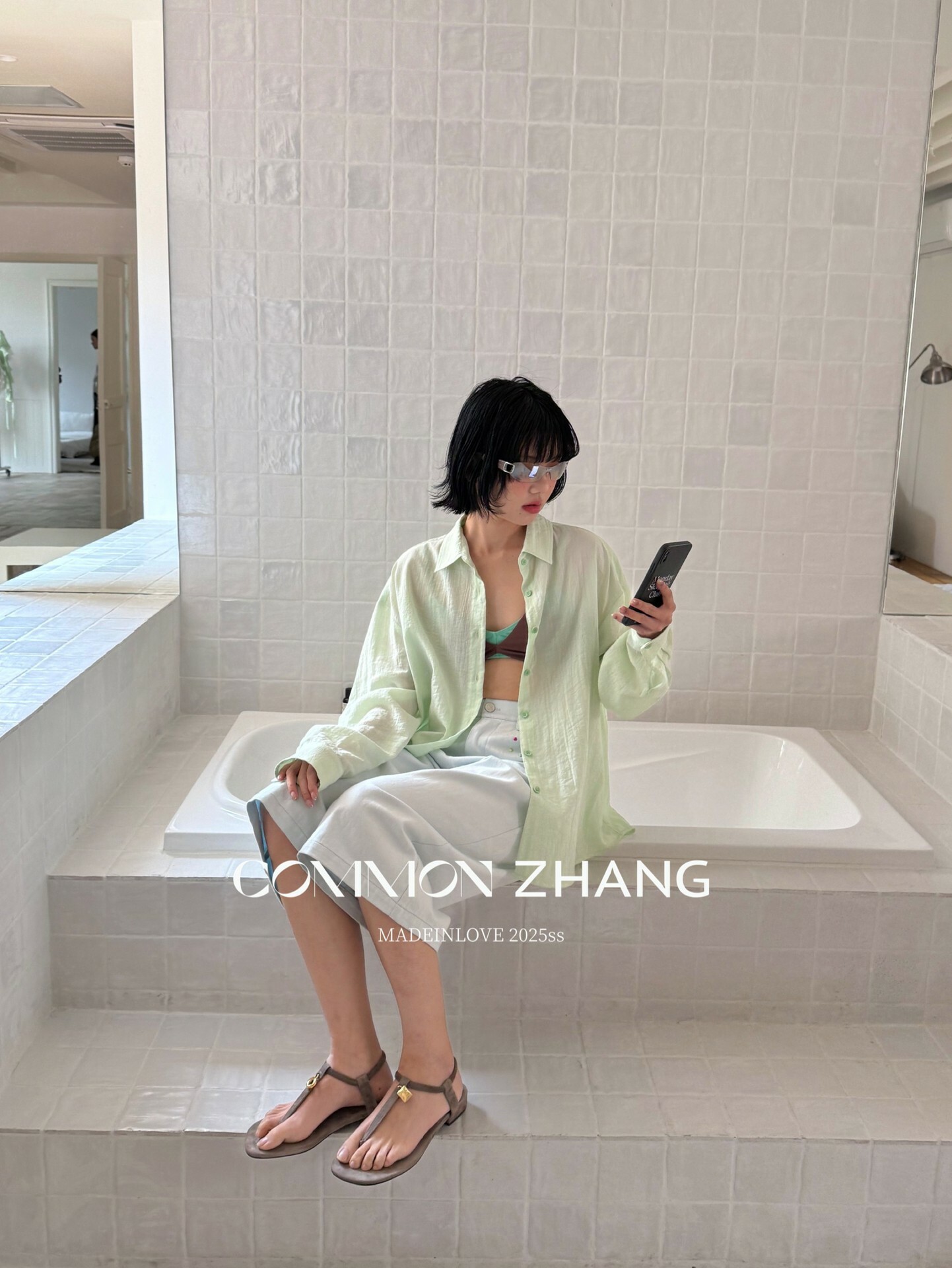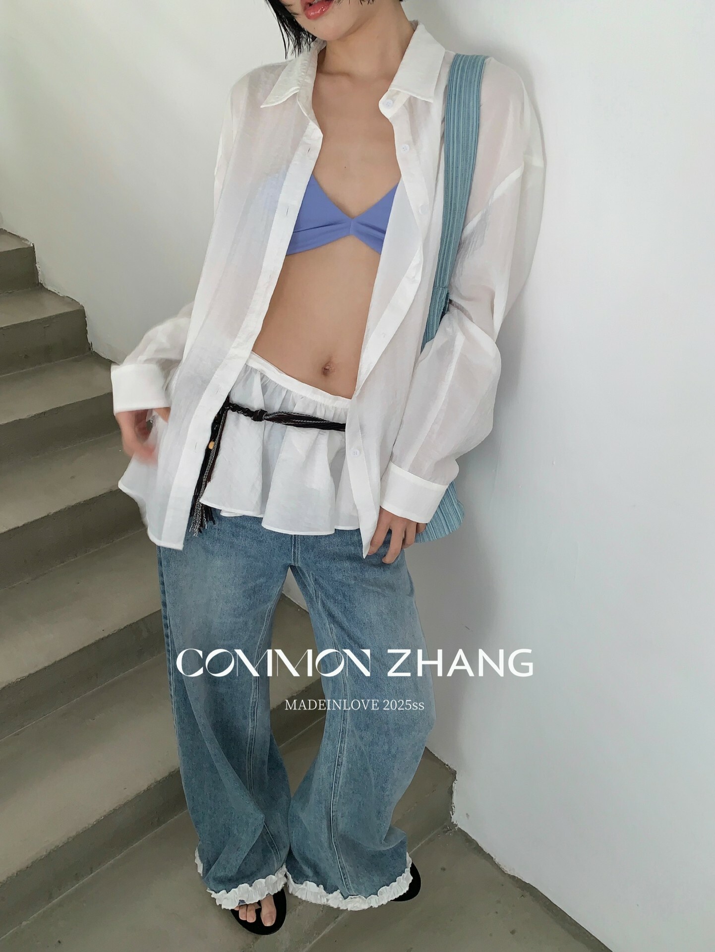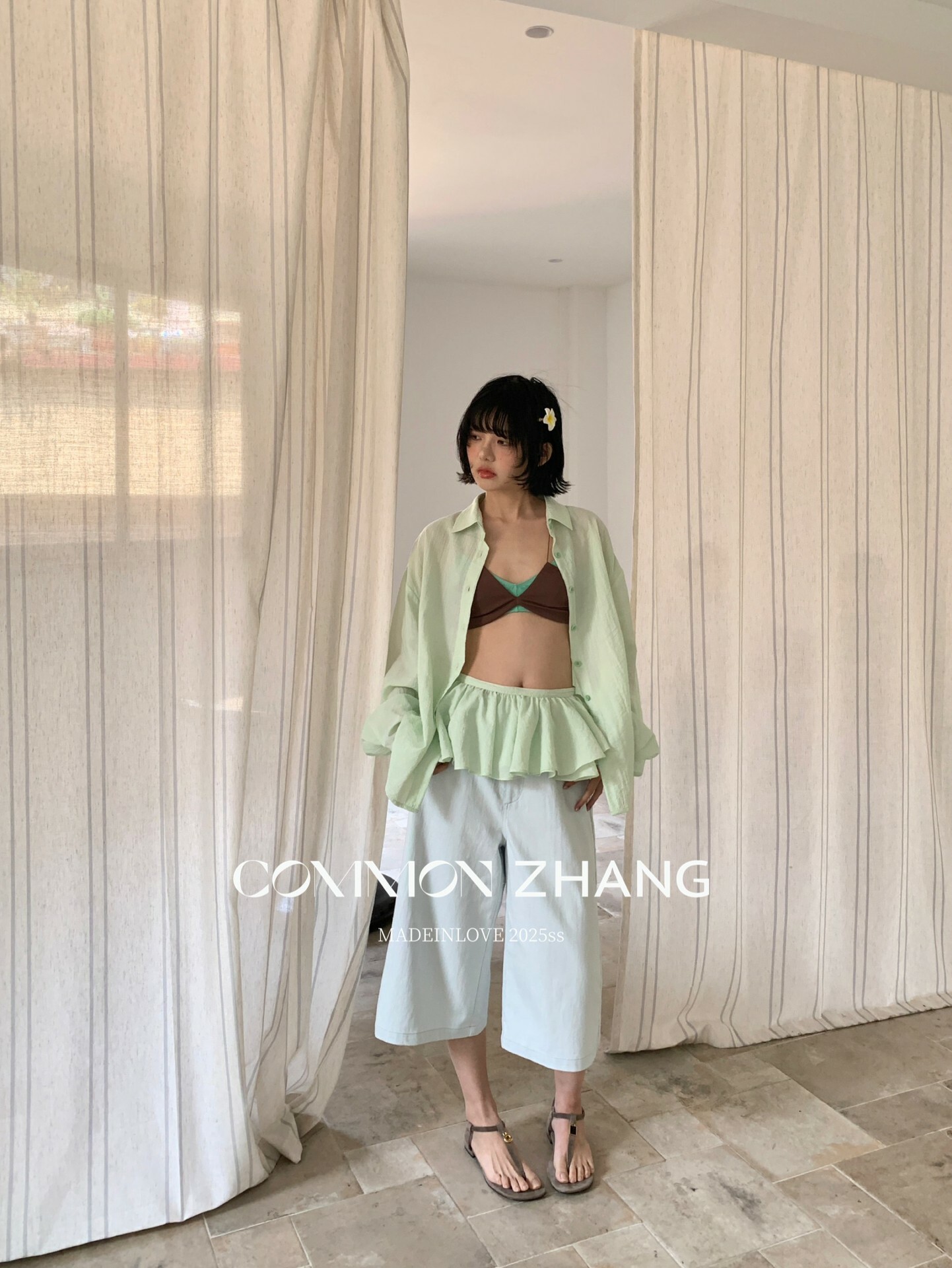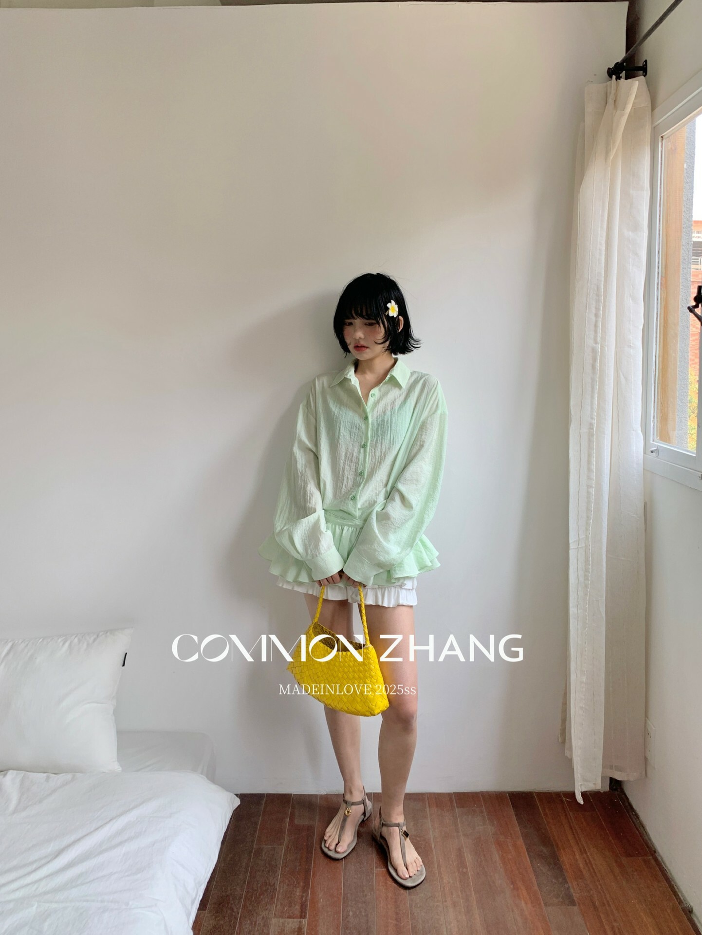 *o-ha-you*【FCZCB203710】夏季法式韓版質感甜酷微透性感純色短裙襯衫兩件套-2色