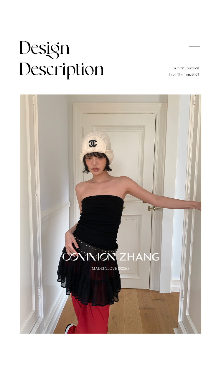 *o-ha-you*【FCZCB203755】夏季韓版甜美減齡抹胸露背性感屁簾拼接網紗小衫-3色