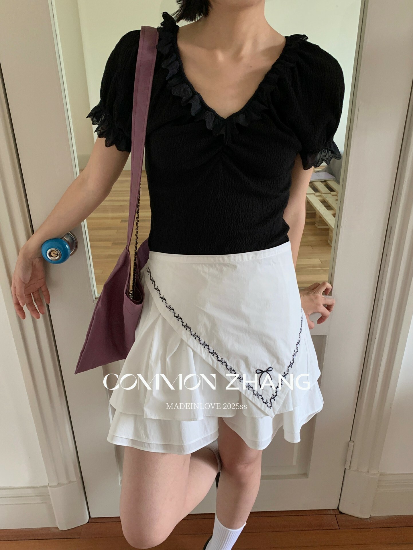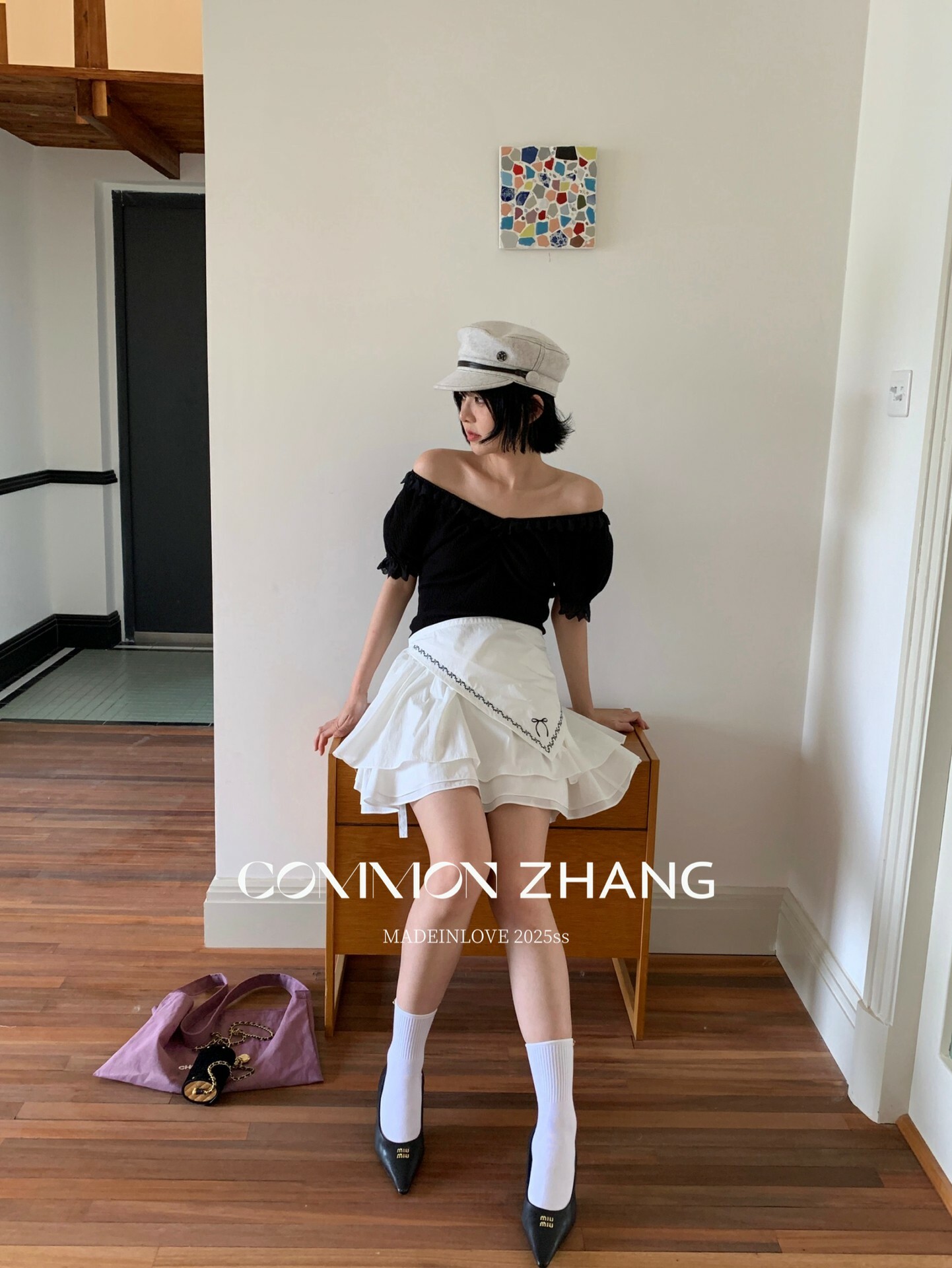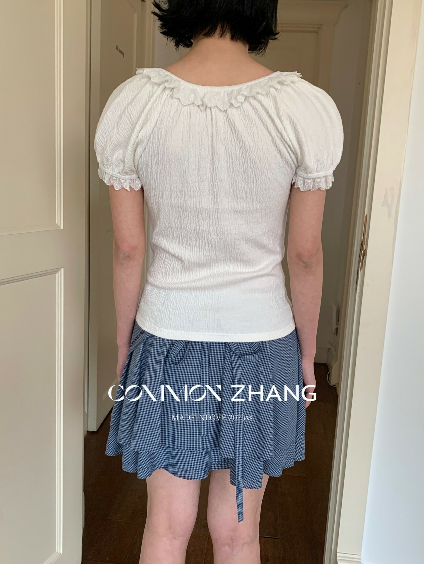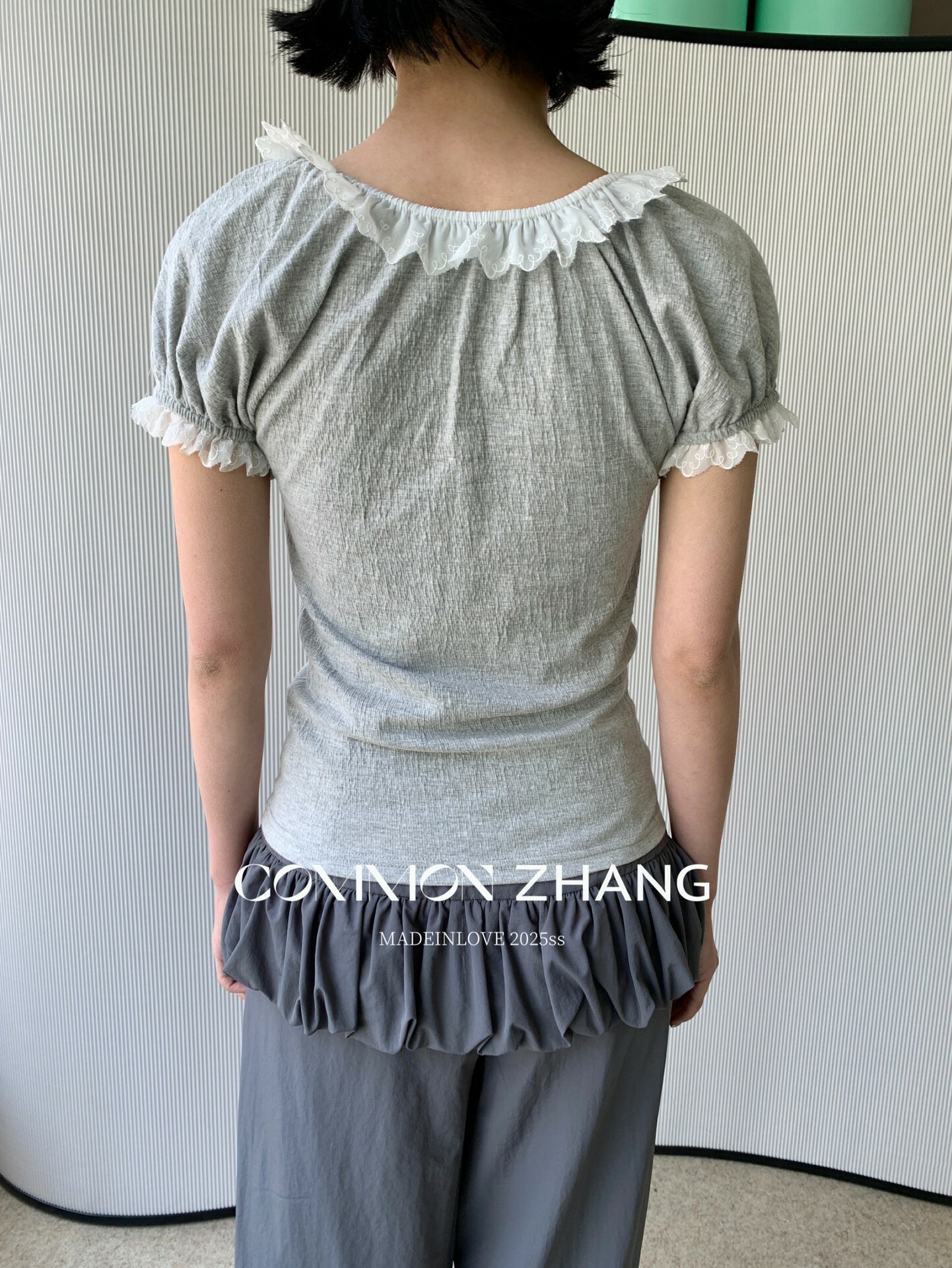 *o-ha-you*【FCZCB203759】夏季法式名媛質感一字領露肩純色百搭蕾絲拼接小衫-3色
