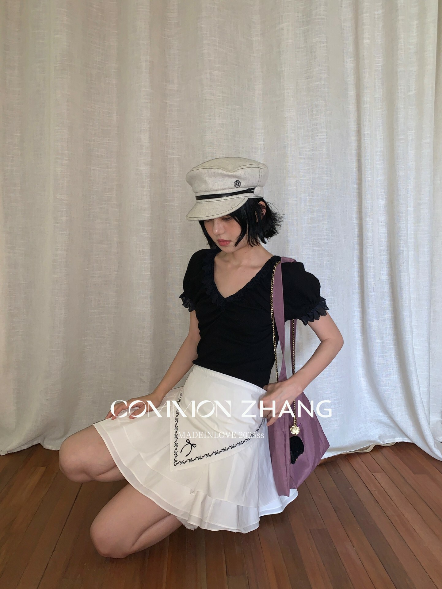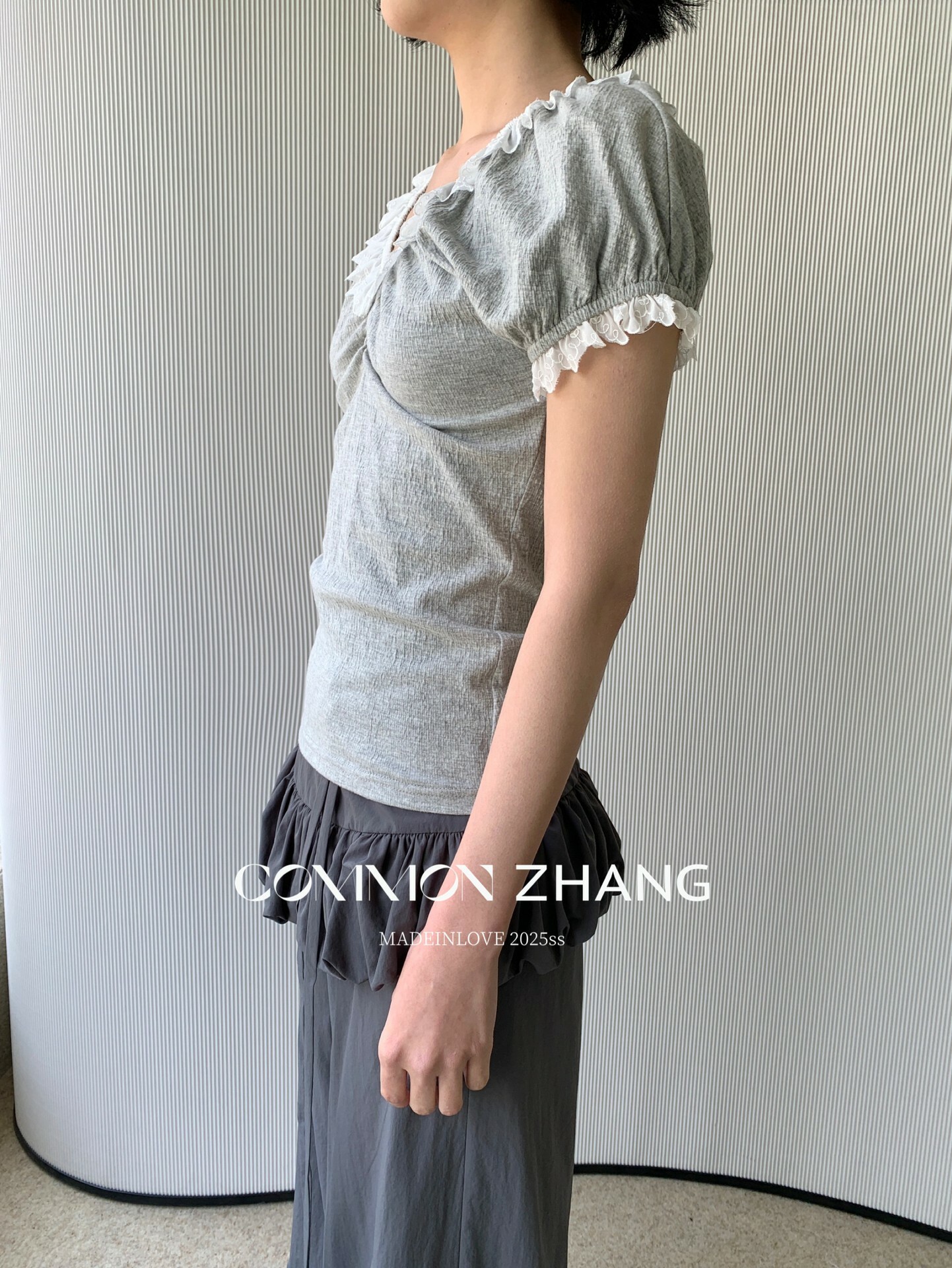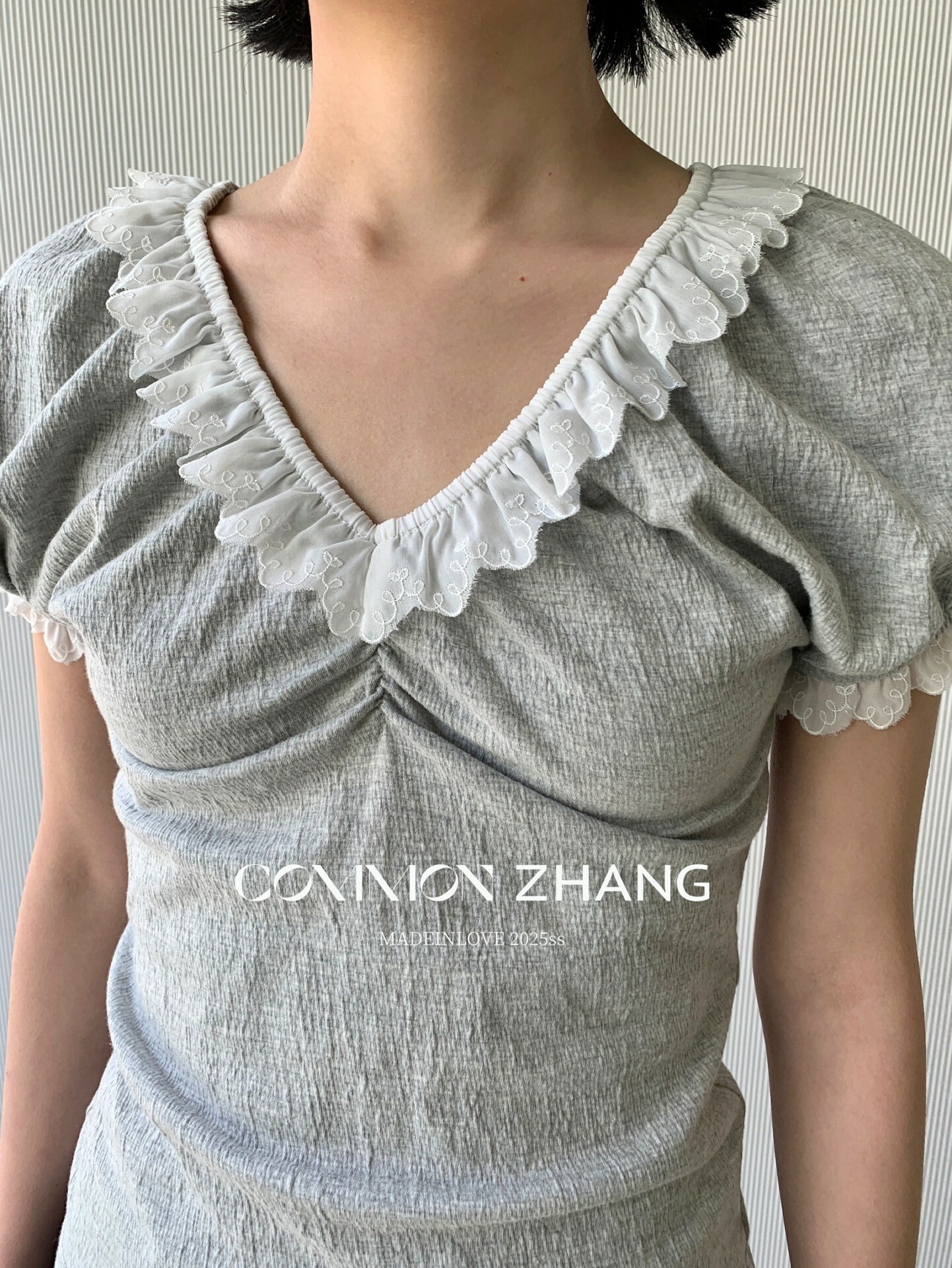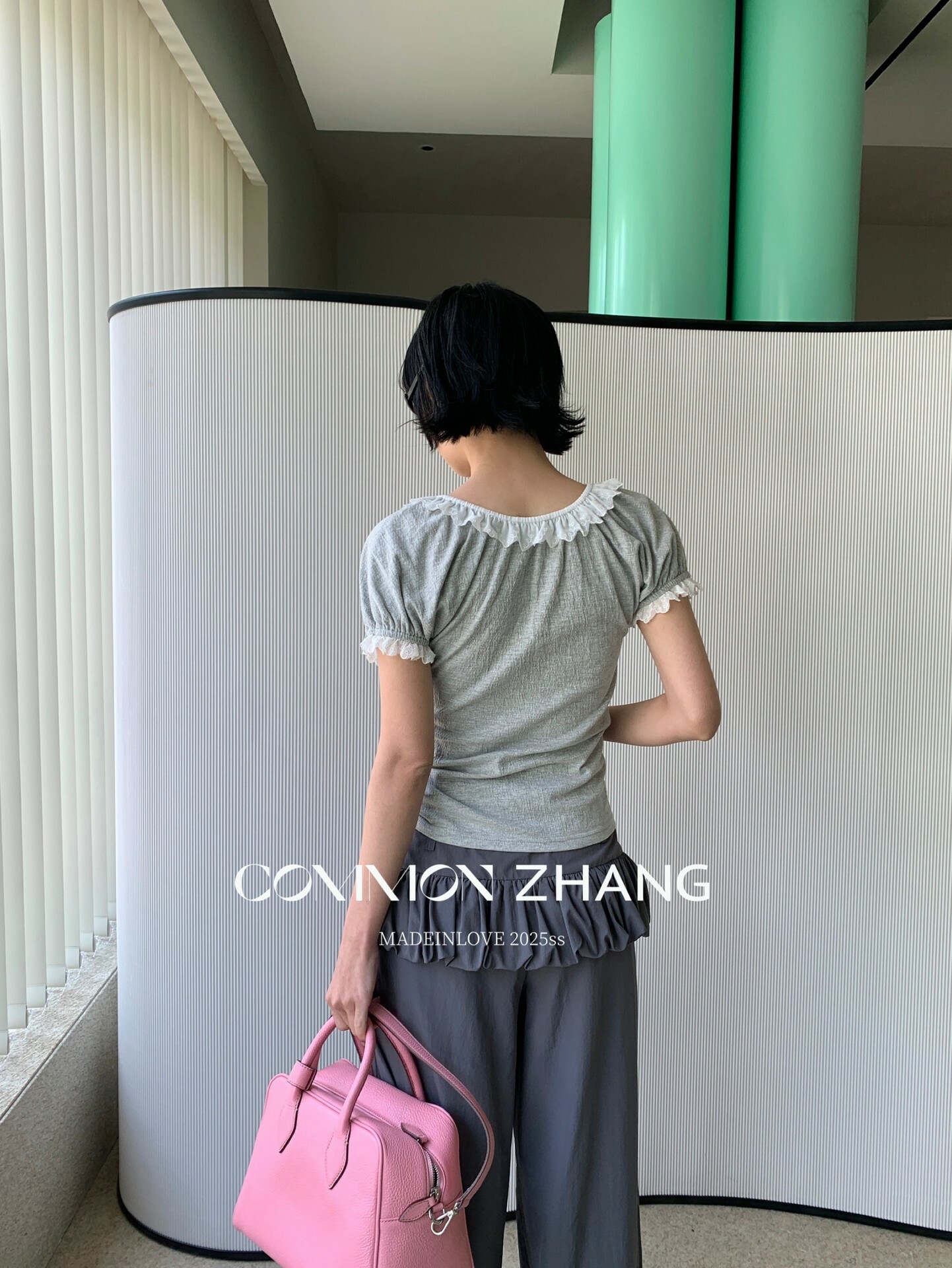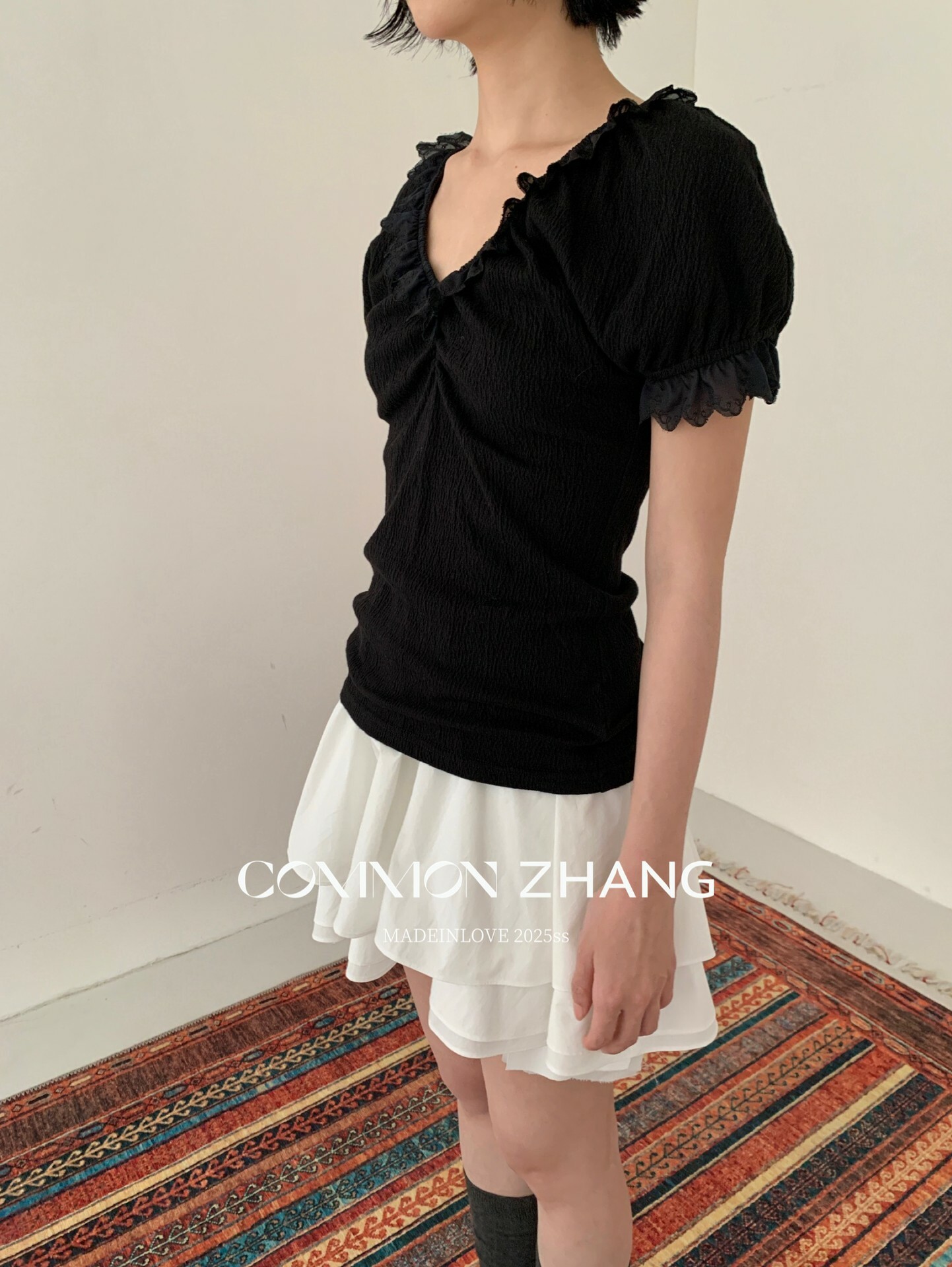 *o-ha-you*【FCZCB203759】夏季法式名媛質感一字領露肩純色百搭蕾絲拼接小衫-3色
