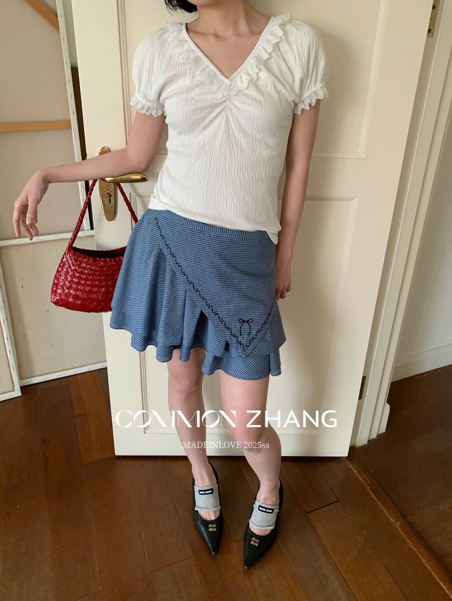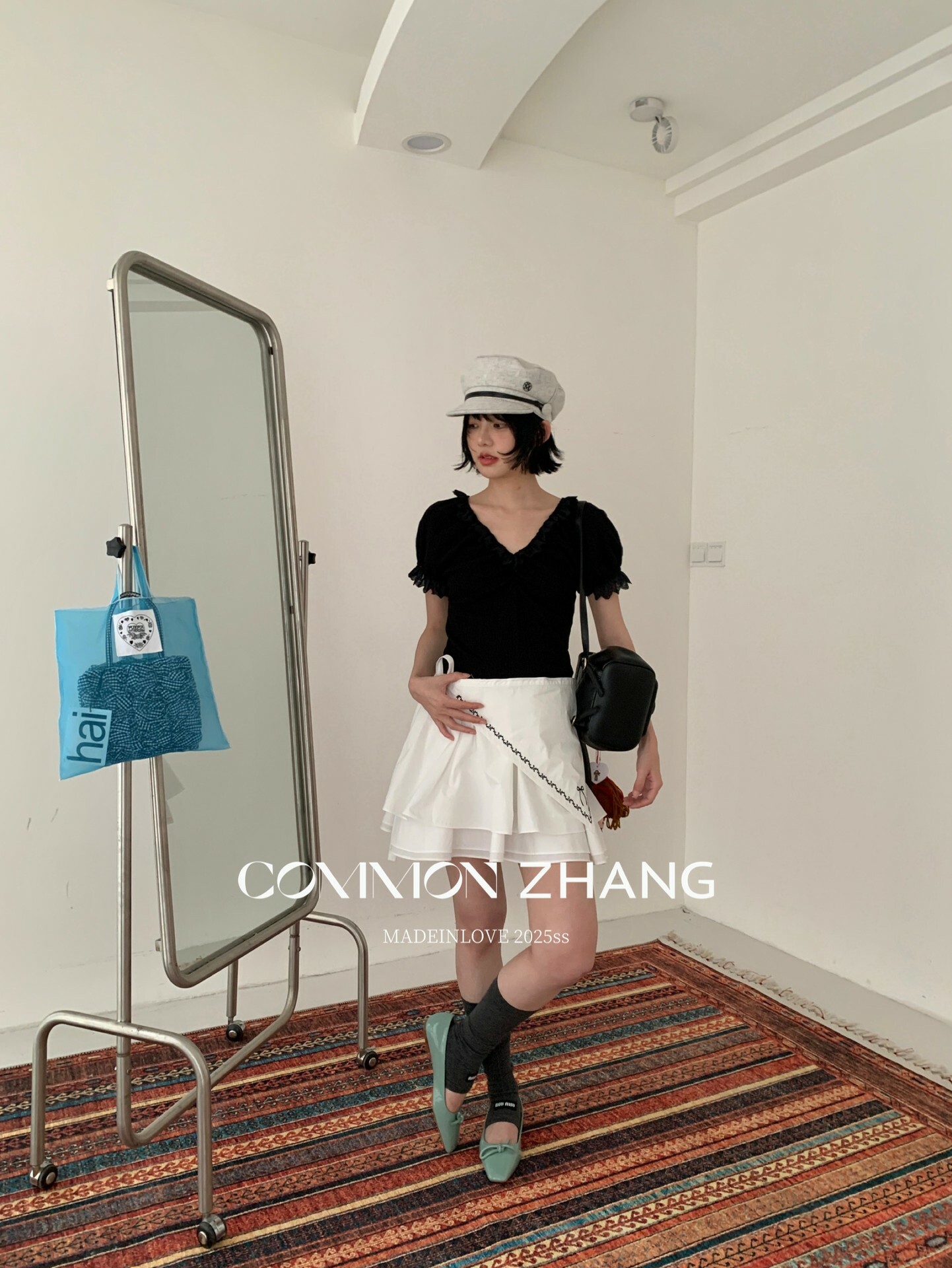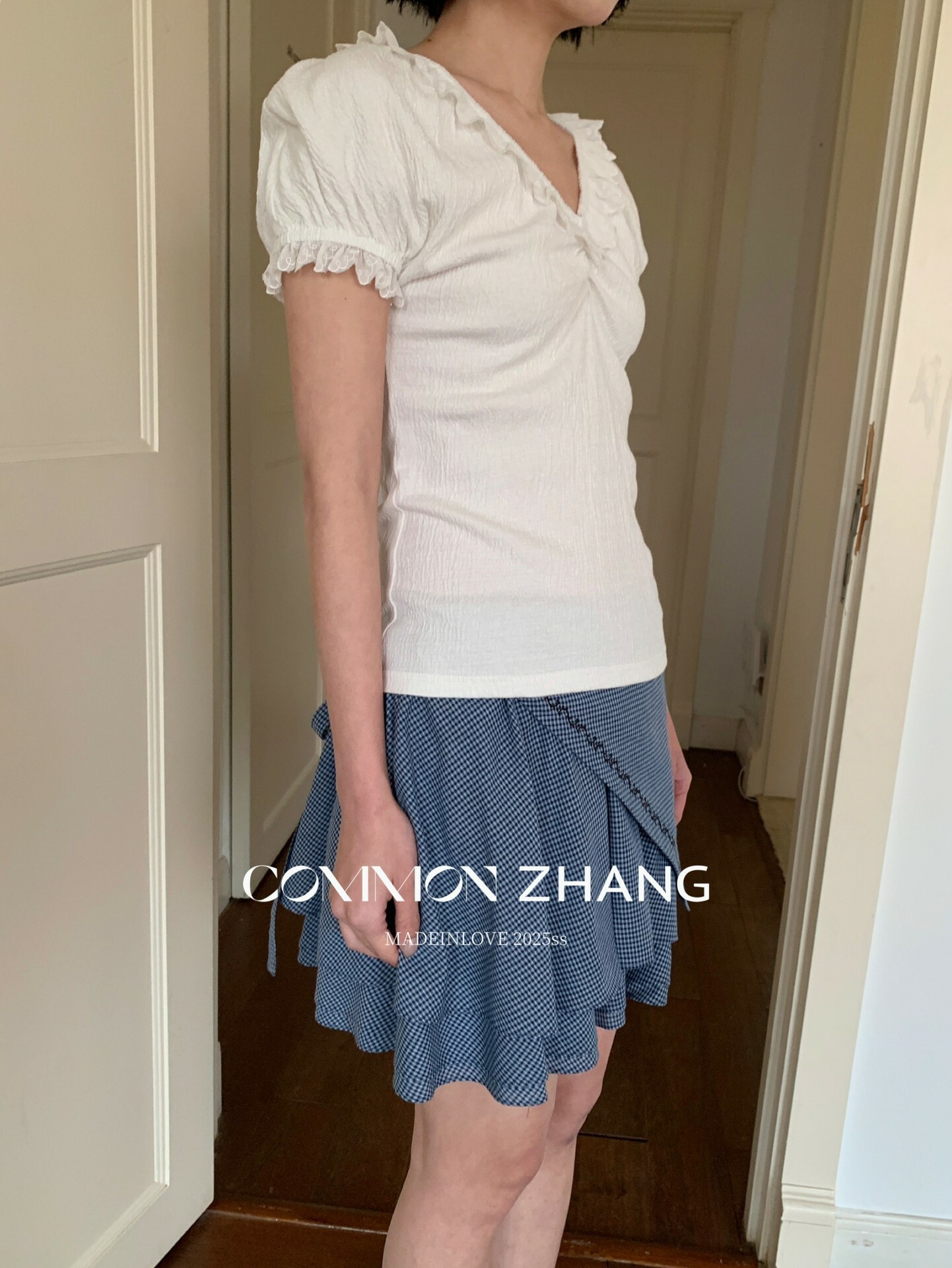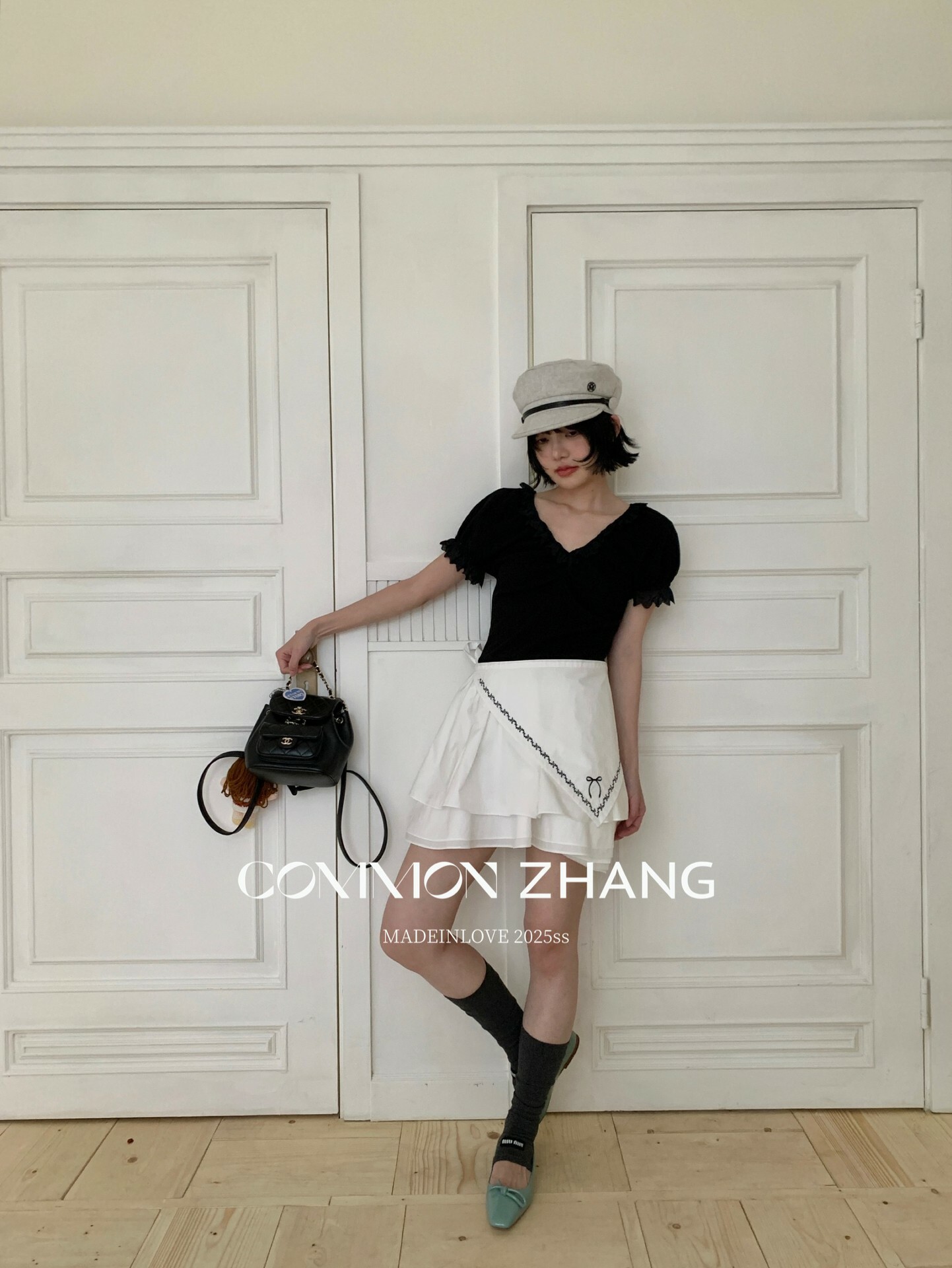 *o-ha-you*【FCZCB203759】夏季法式名媛質感一字領露肩純色百搭蕾絲拼接小衫-3色