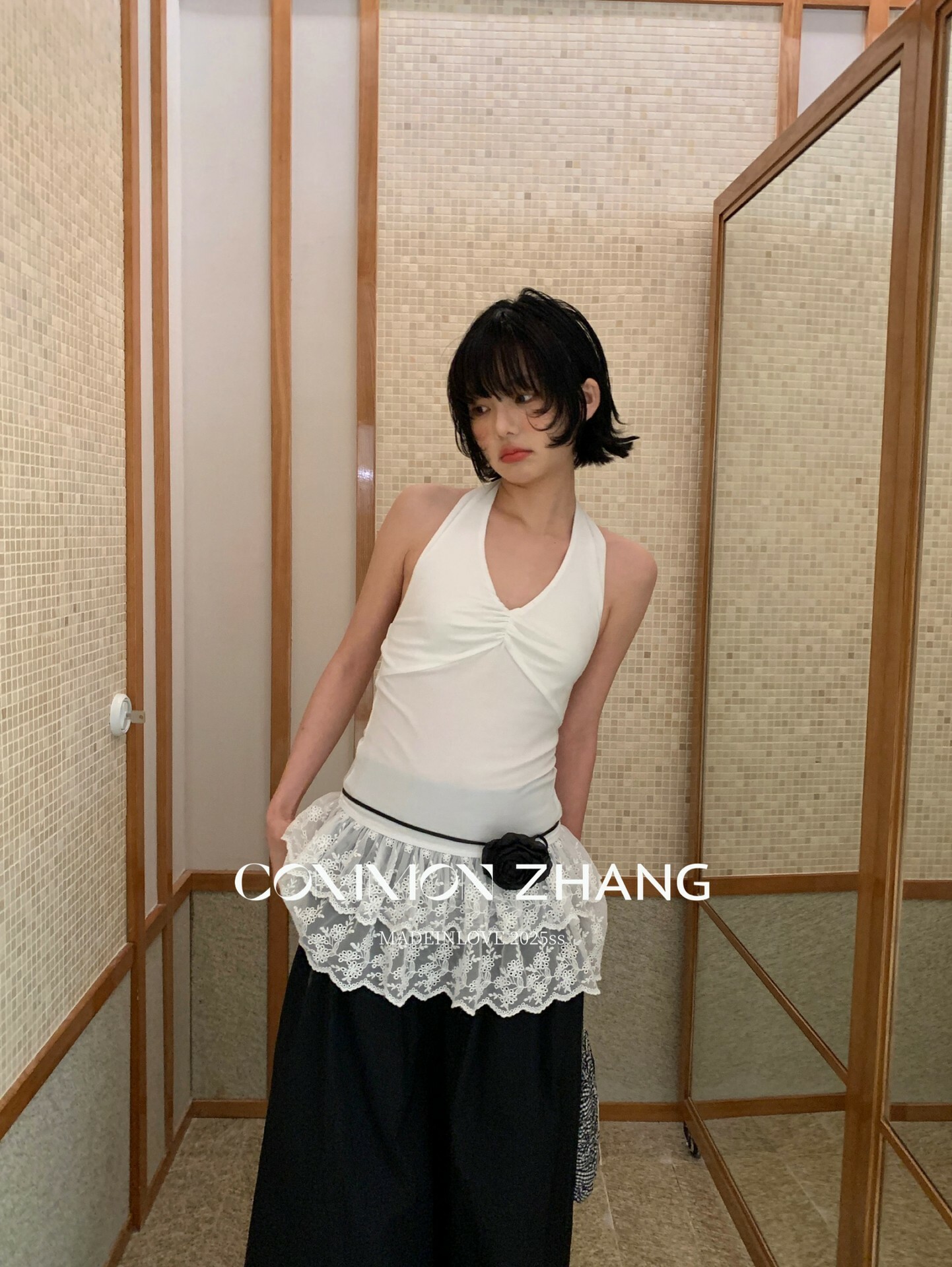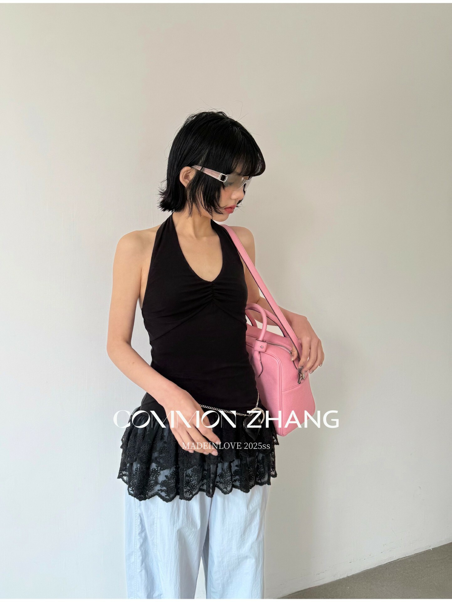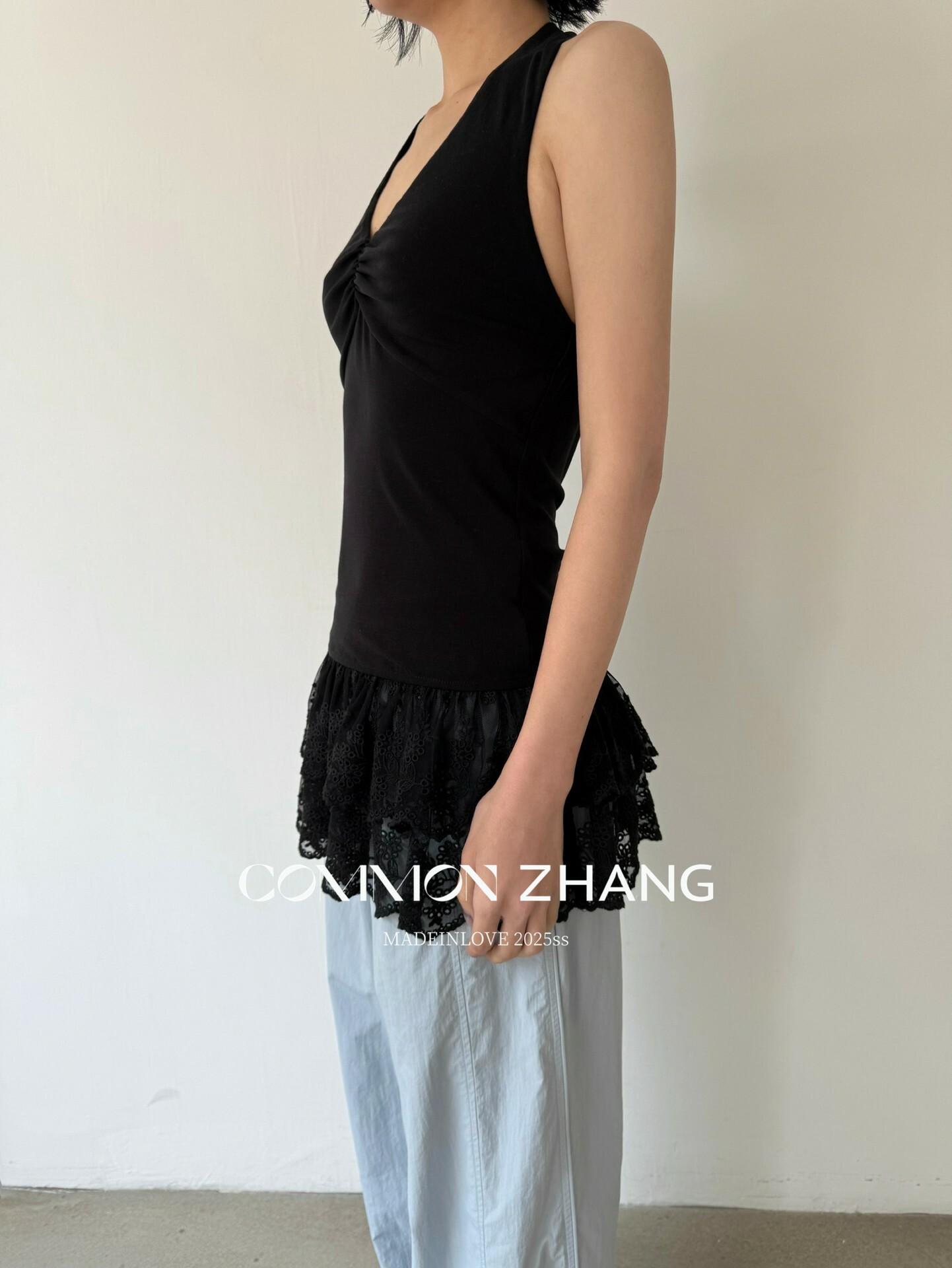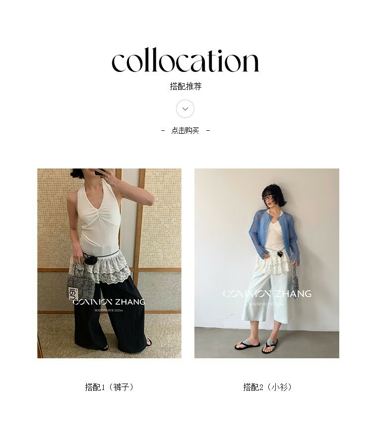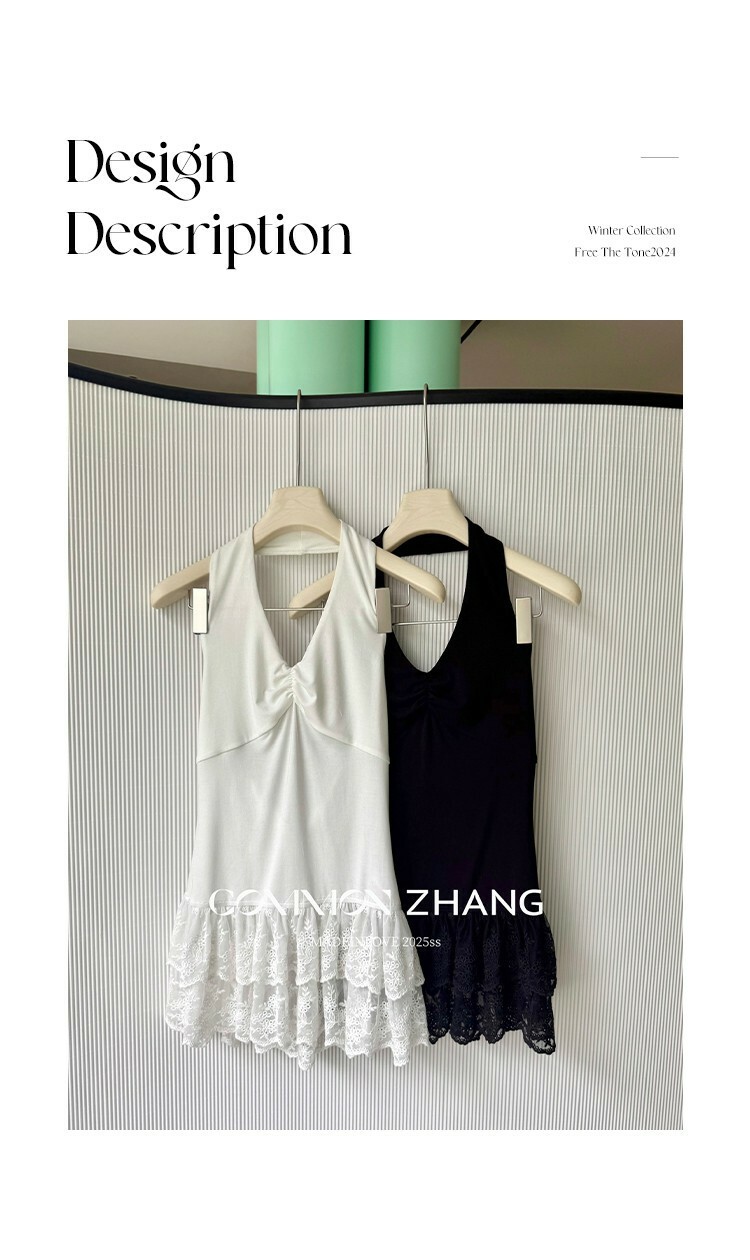 *o-ha-you*【FCZCB203802】夏季法式掛脖露背性感蕾絲拼接收腰顯瘦百搭背心小衫-2色