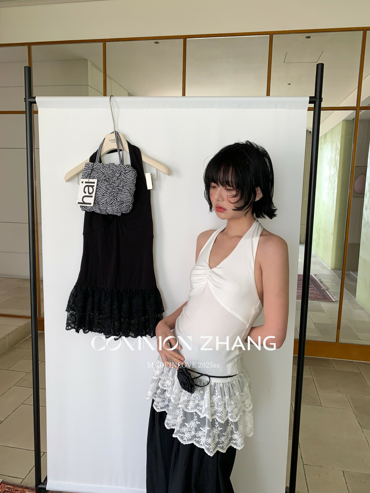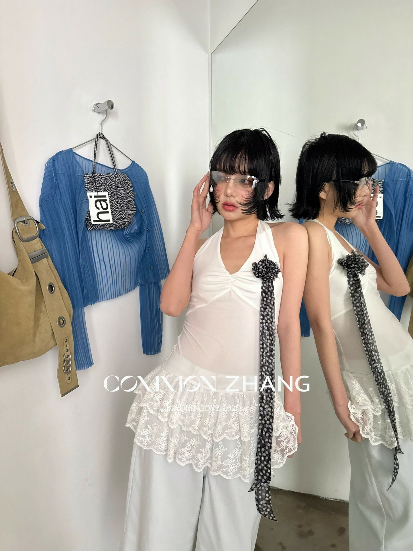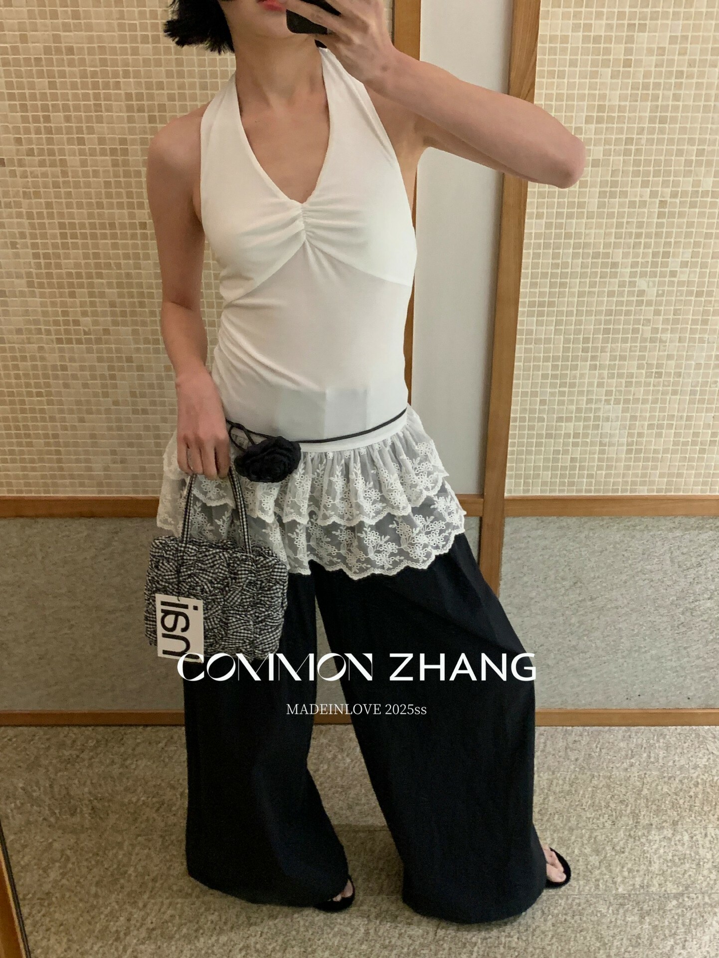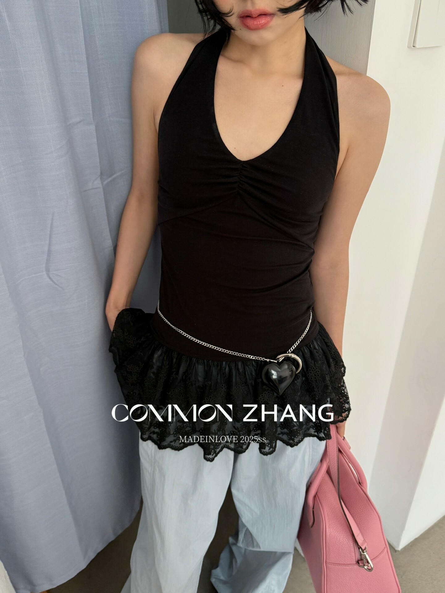 *o-ha-you*【FCZCB203802】夏季法式掛脖露背性感蕾絲拼接收腰顯瘦百搭背心小衫-2色