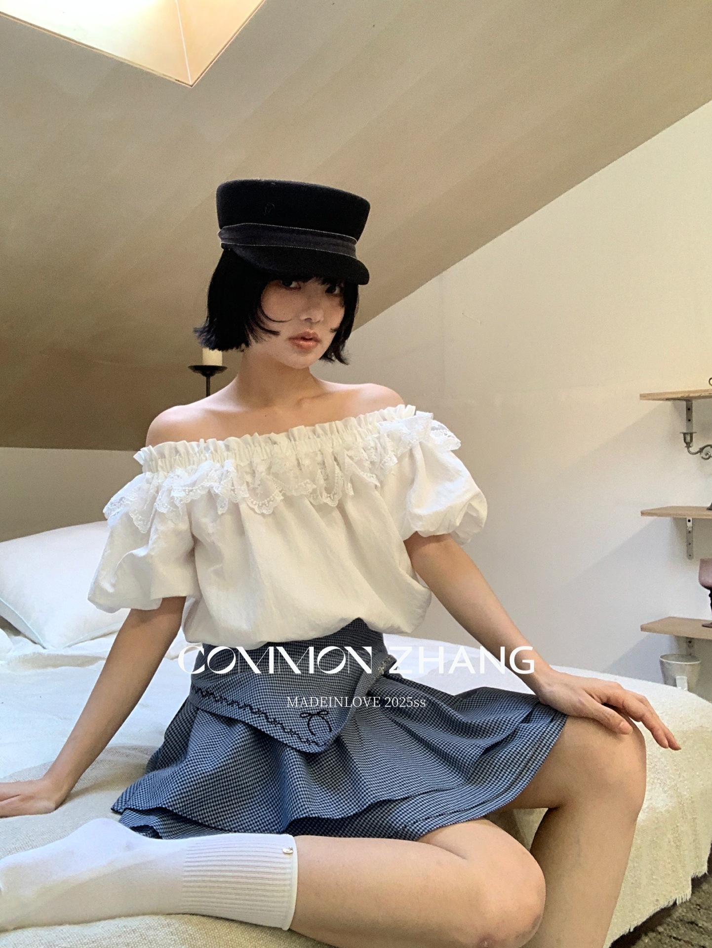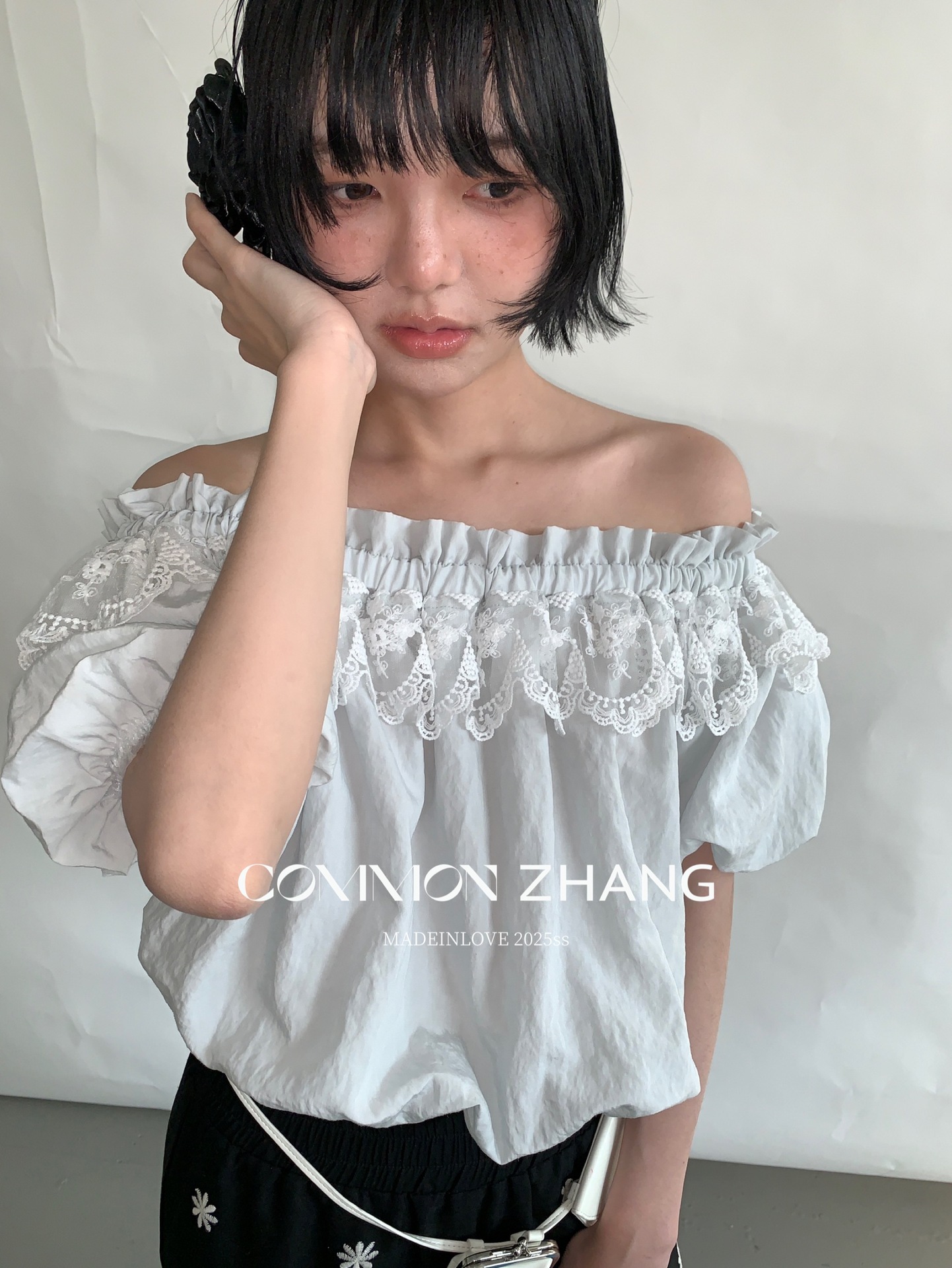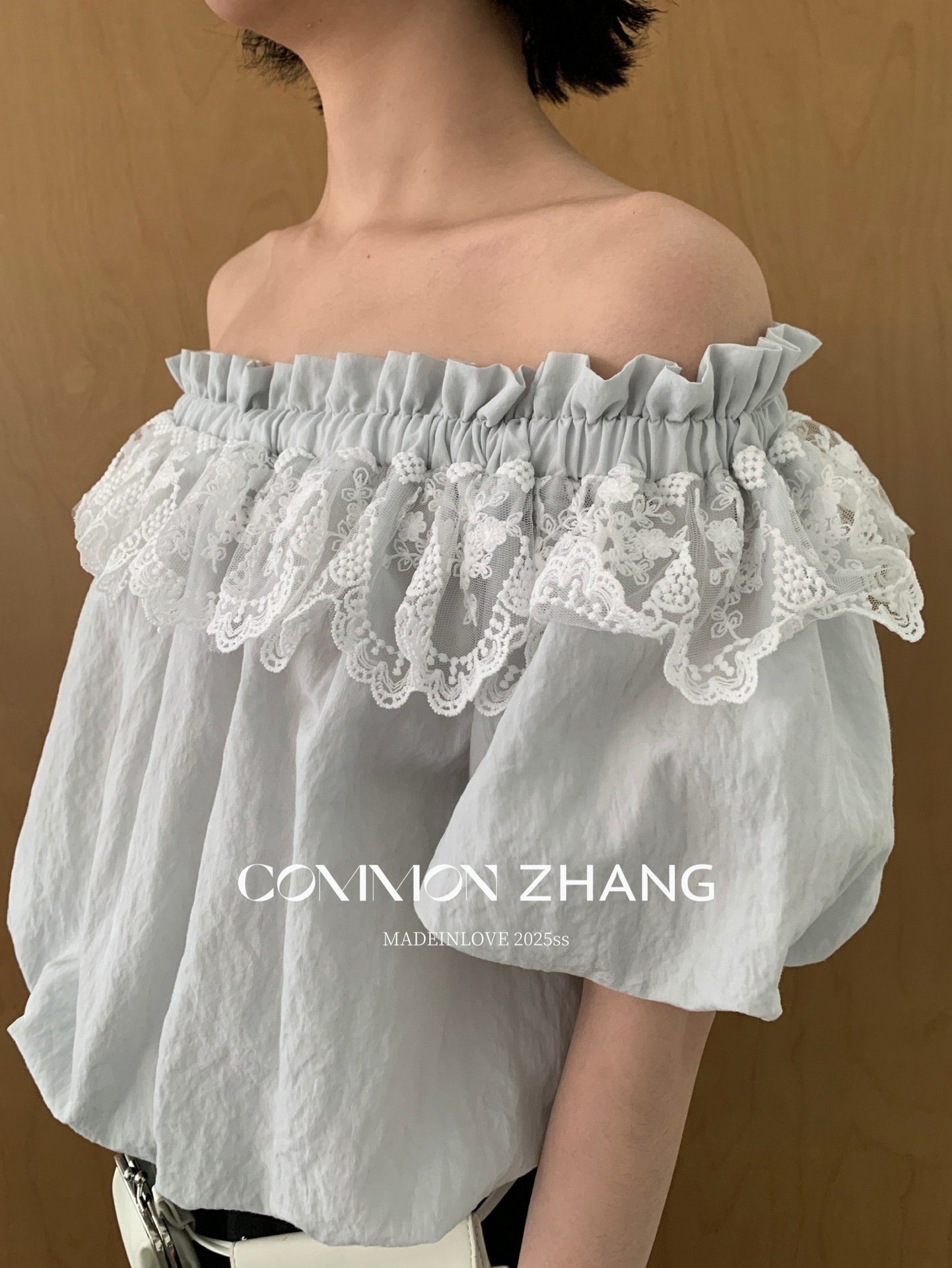 *o-ha-you*【FCZCB203809】夏季新款法式蕾絲花邊一字領露肩甜美性感天絲小衫-2色-如有需要請先諮詢