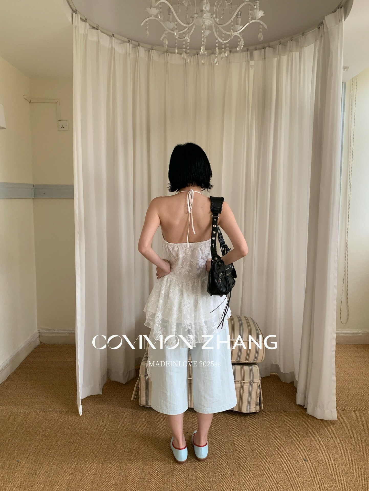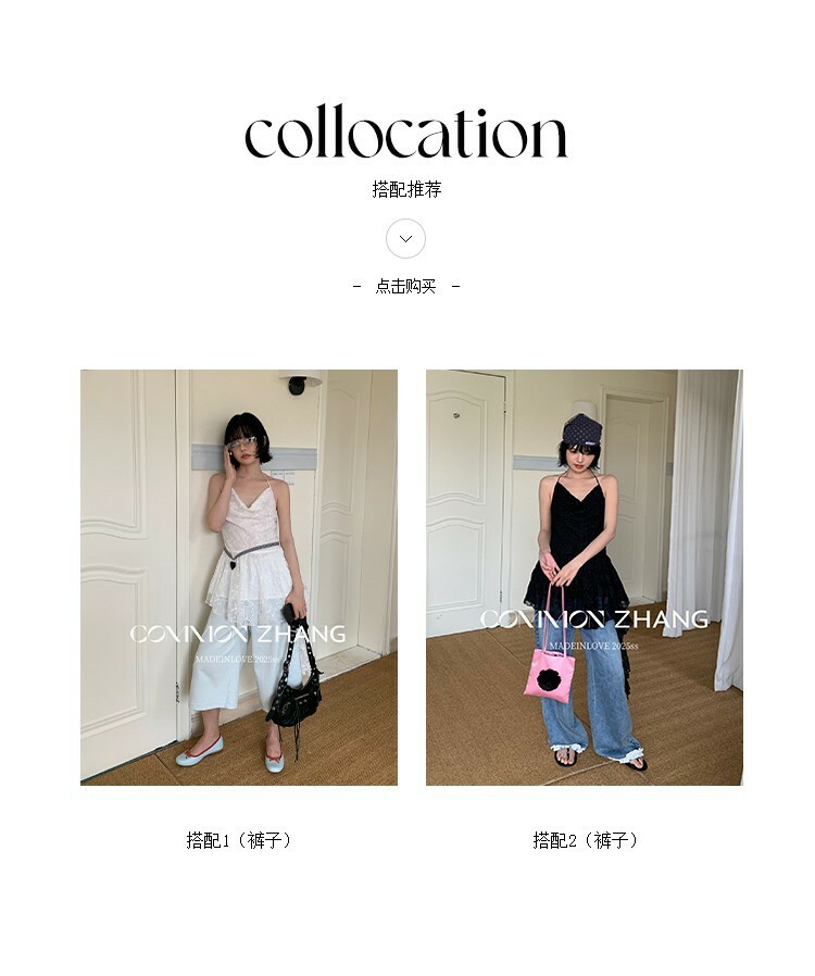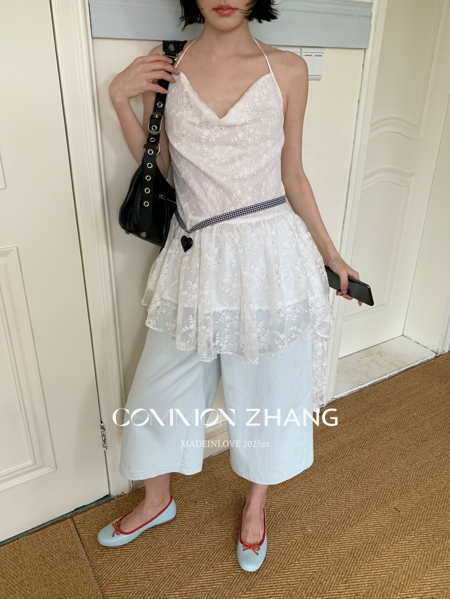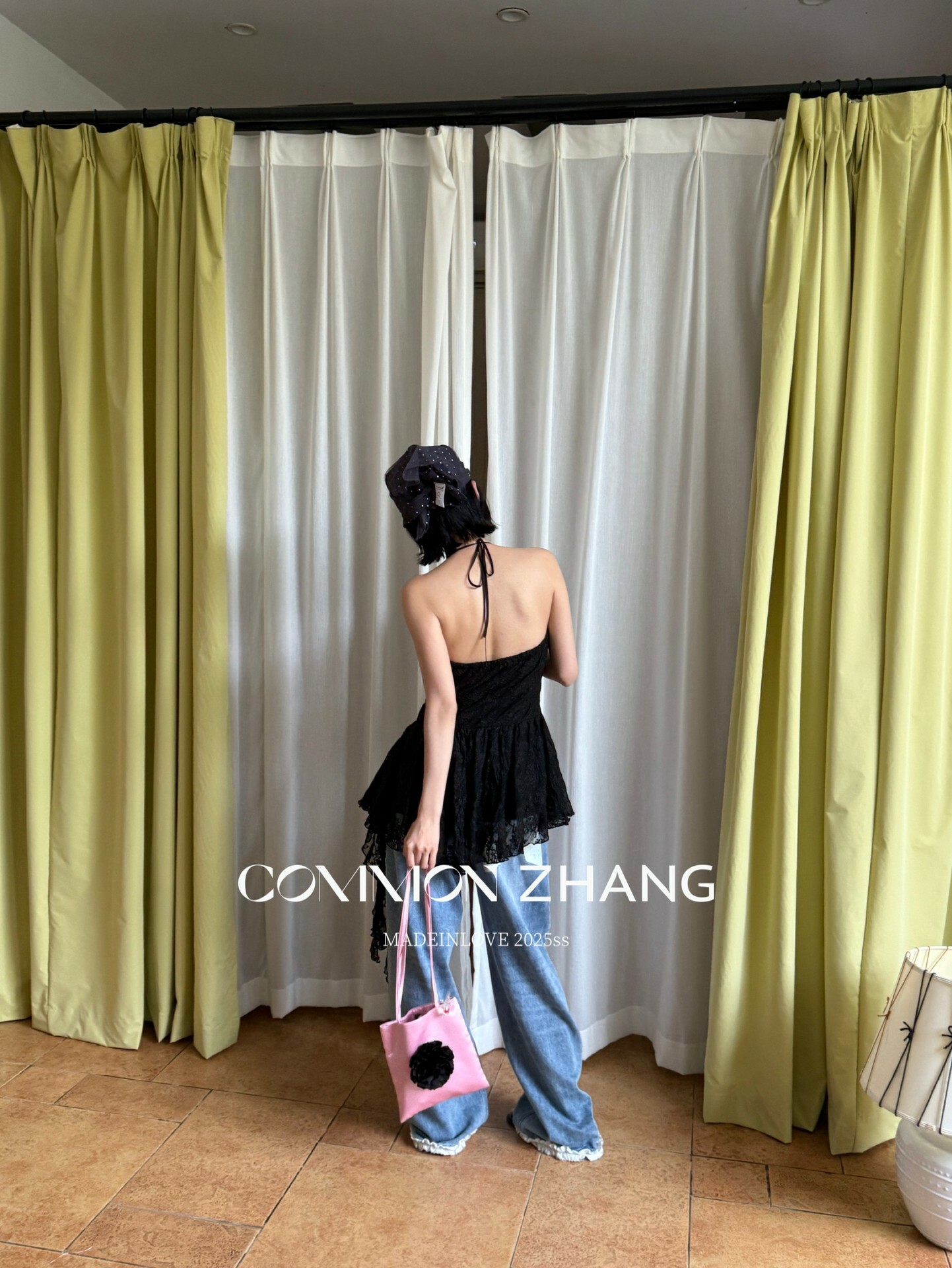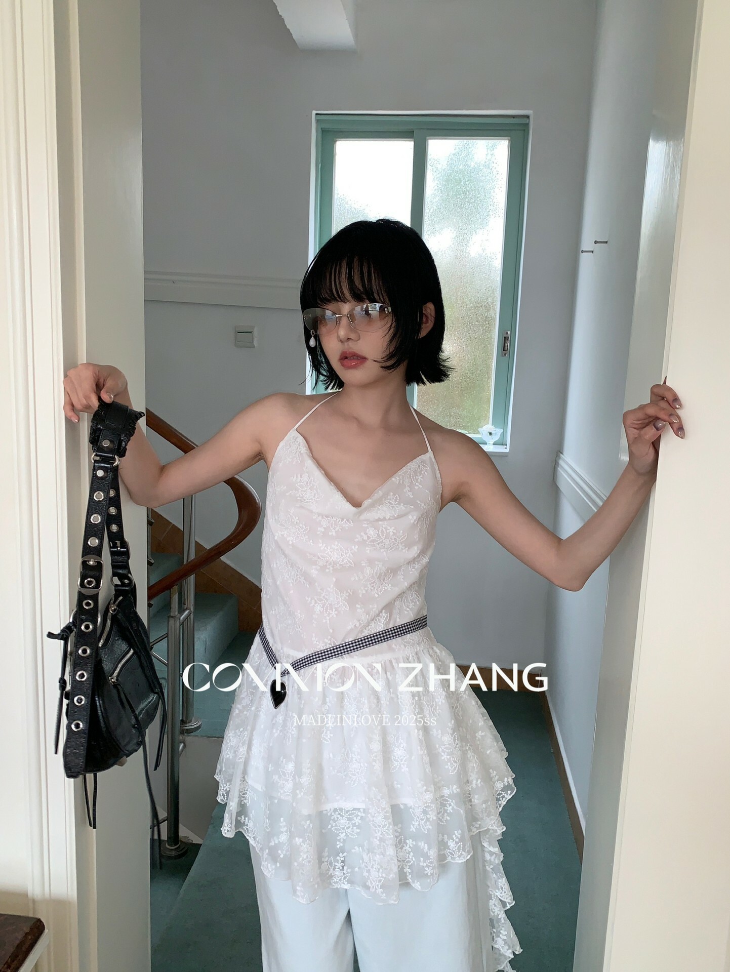 *o-ha-you*【FCZCB203840】夏季新款韓版名媛掛脖露背性感百搭蕩領緹花小衫-2色-如有需要請先諮詢